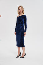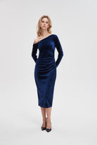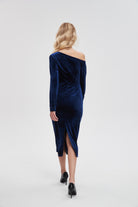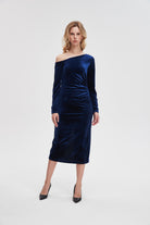 فستان ساده ميدي ضيق بأكمام طويله أوف شولدر