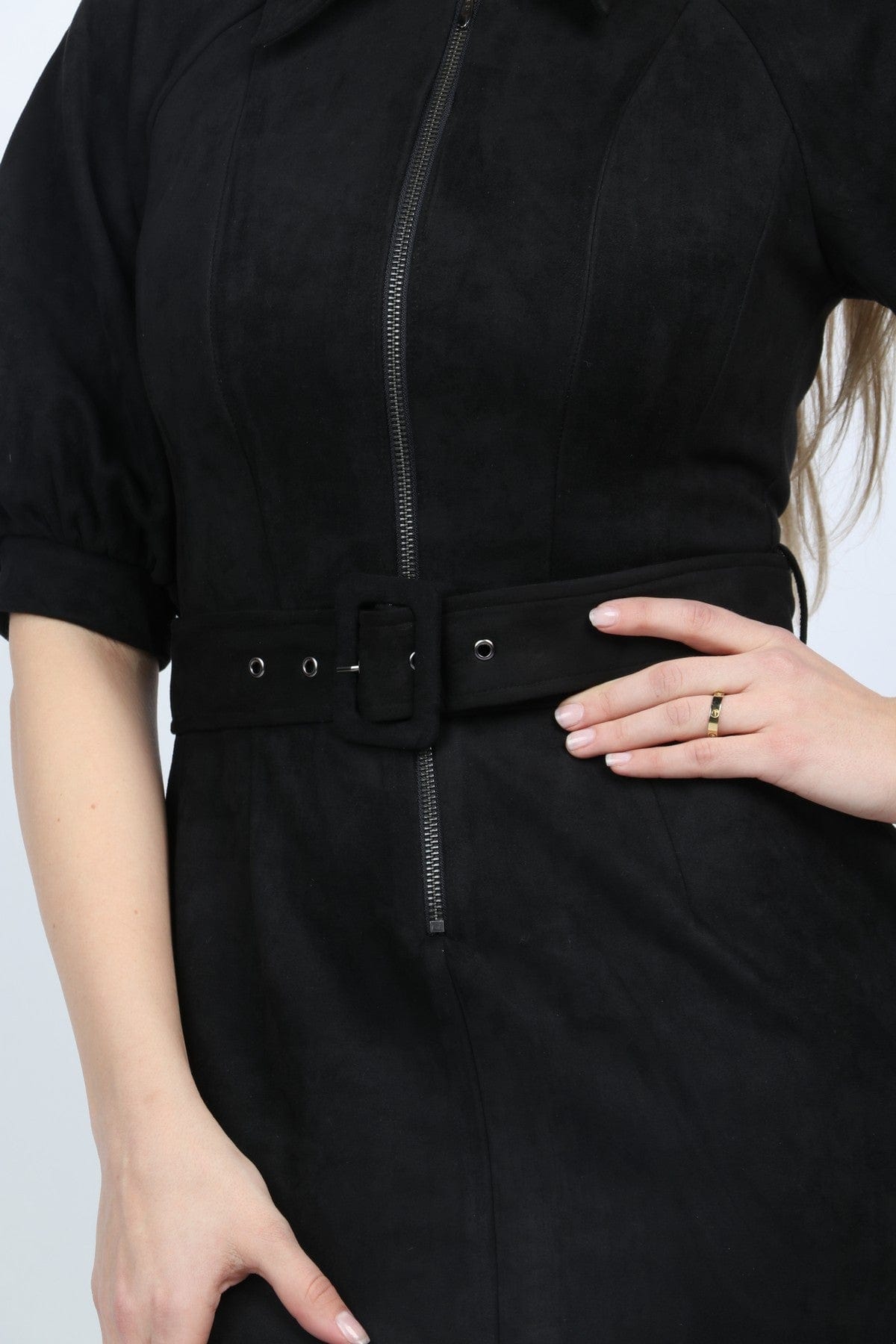 - إغلاق كامل بسحاب مع حزام مرفق لتحديد الخصر