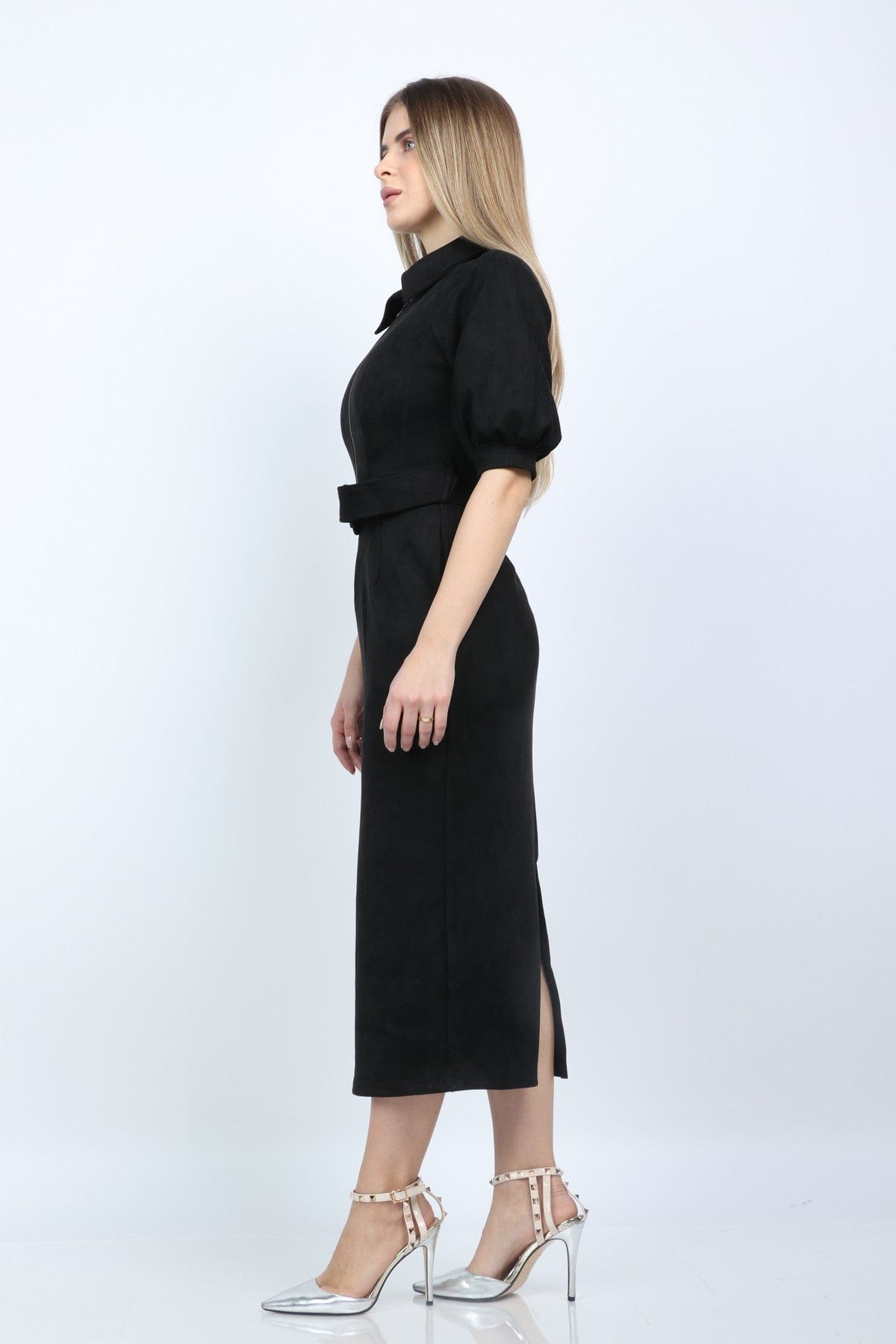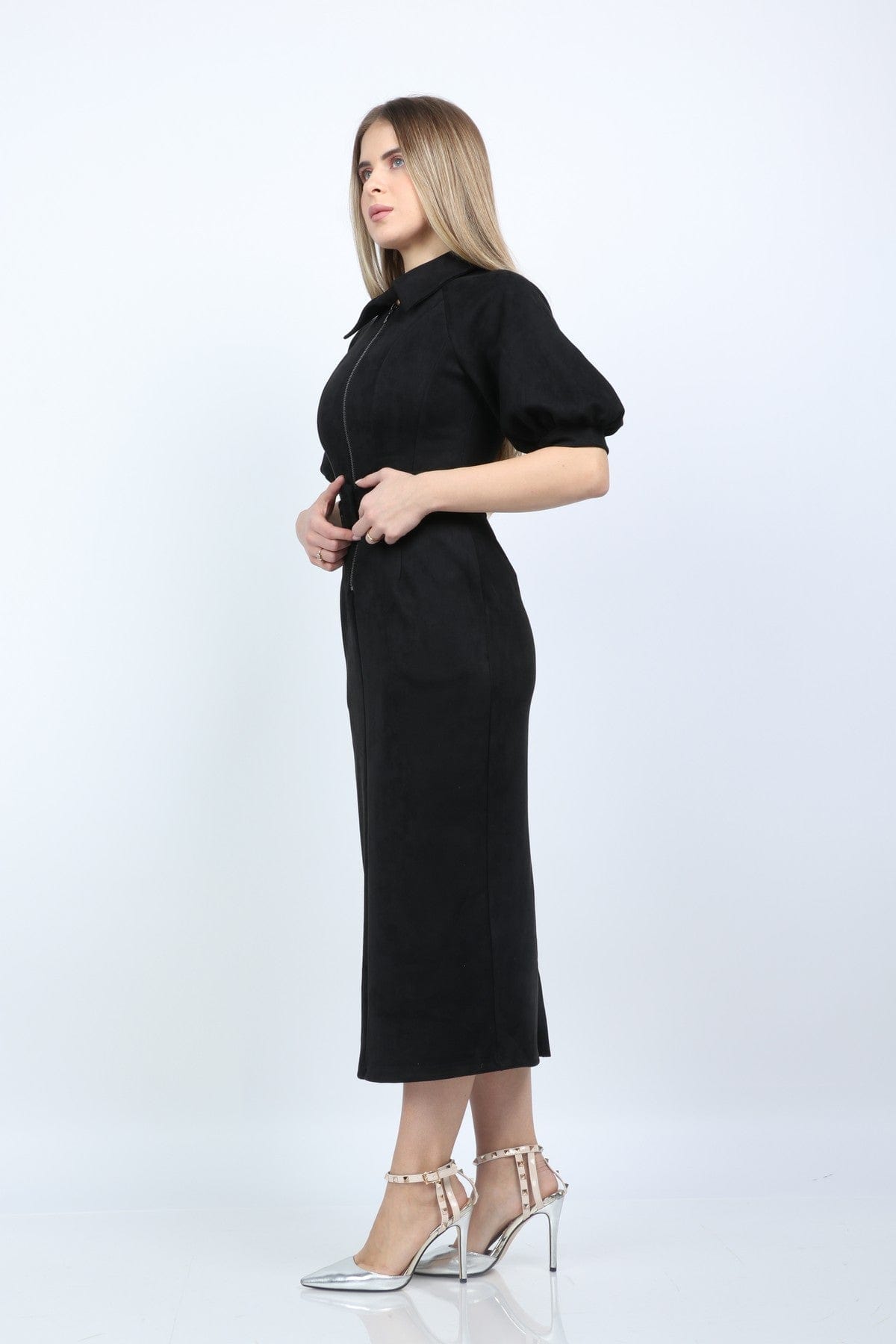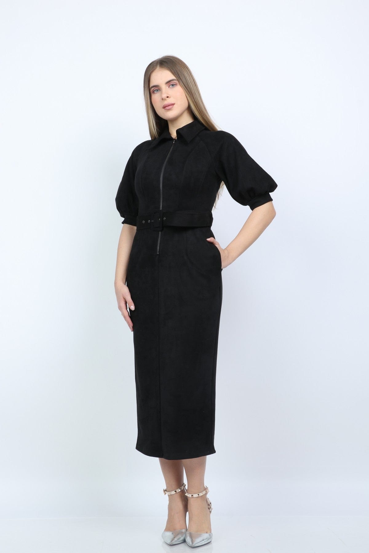 لو تبحثين عن فستان عملي وأنيق للمكتب، هذا الفستان خيار رائع. القماش مكوّن من بوليستر 95% وإيلاستين 5%، فستشعرين أنه محتفظ بالشكل مع لمسة مرونة للحركة اليومية. القصة مستقيمة بطول ميدي تمنحك مظهرًا محترفًا ومنظمًا، وياقة قميص تضيف لمسة رسمية كلاسيكية. الأكمام المنفوخة القصيرة تعطي طابع أنثوي دون المبالغة، والفستان بلون أسود سادة يصلح بسهولة لتنسيق إطلالات المكتب والاجتماعات. مزود بإغلاق كامل بسحاب وحزام مرفق لتحديد الخصر عند الرغبة، ولا يوجد جيوب أو بطانة مما يجعله خفيفًا ومتوسط السماكة لكل المواسم. ستعجبك بساطته العملية؛ مناسب للاجتماعات الرسمية وأمسيات العمل الهادئة، وستحبين كيف يظهر مرتبًا مع حذاء كلاسيكي أو جاكيت. اعثري على مقاسك في فاشن السعودية وأضيفي هذه القطعة المتنوعة إلى خزانة ملابسك اليوم.