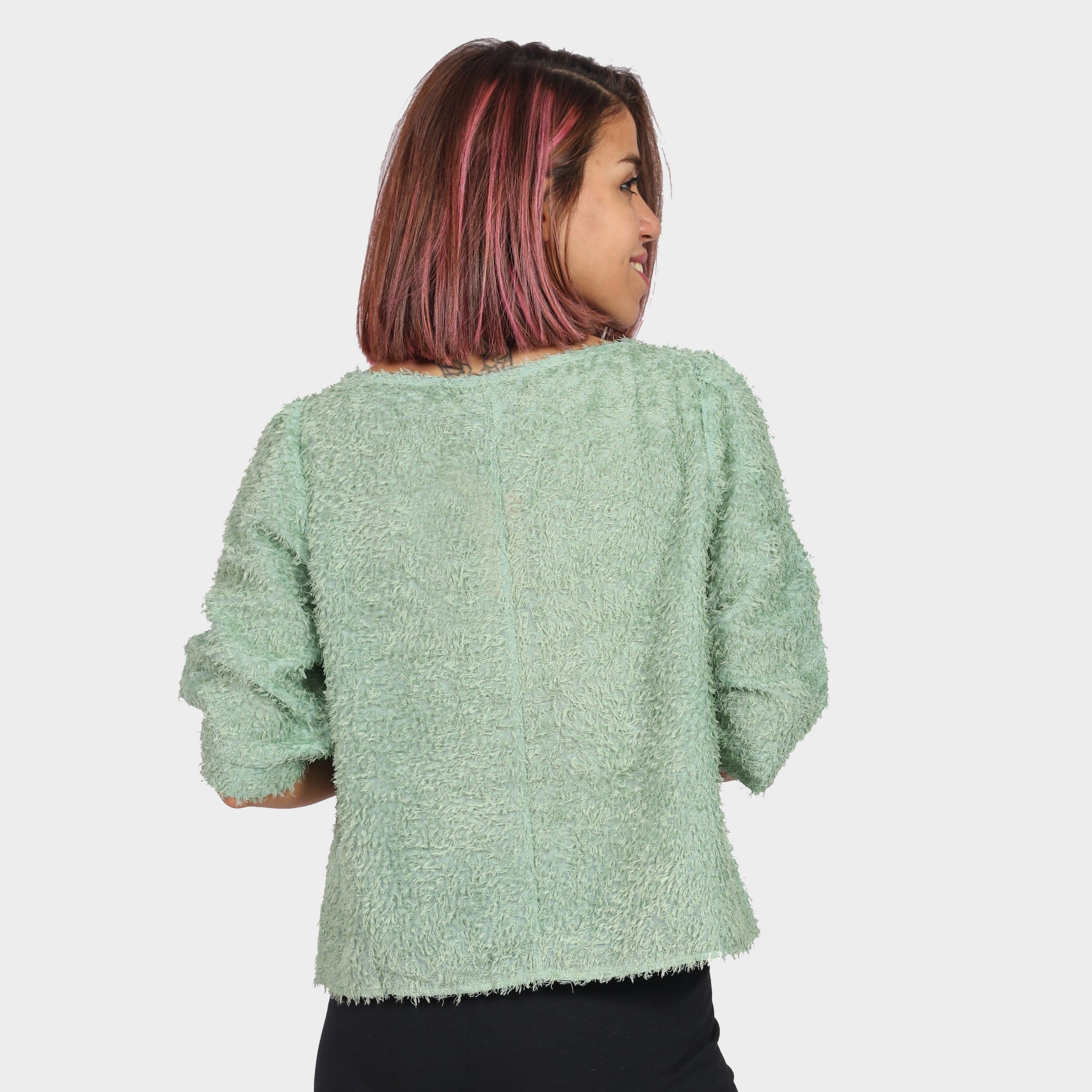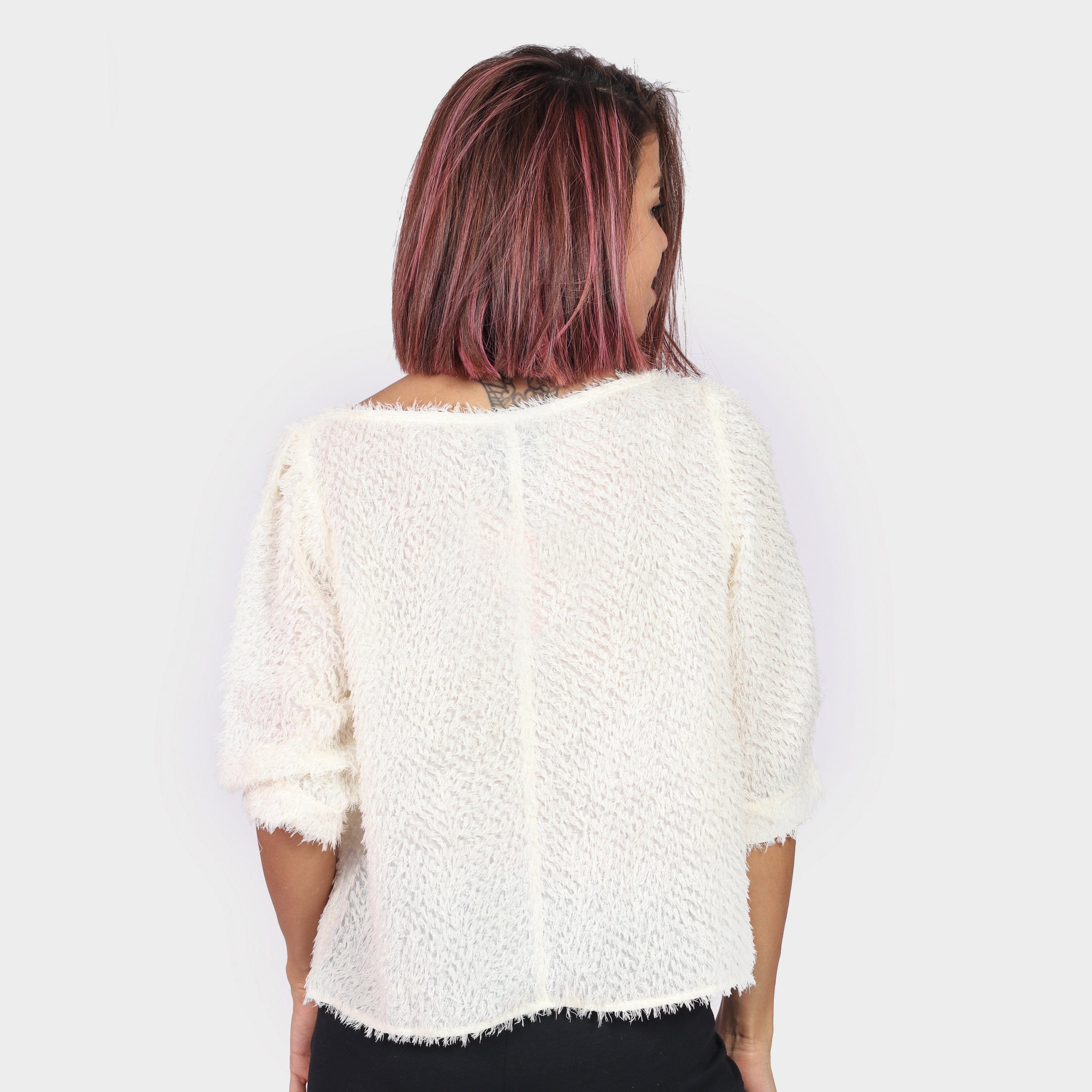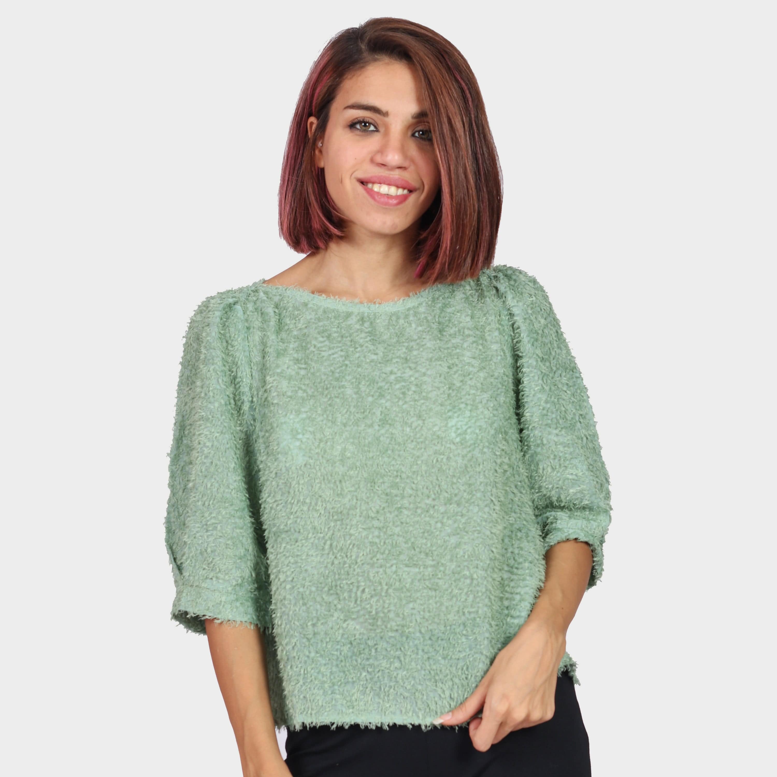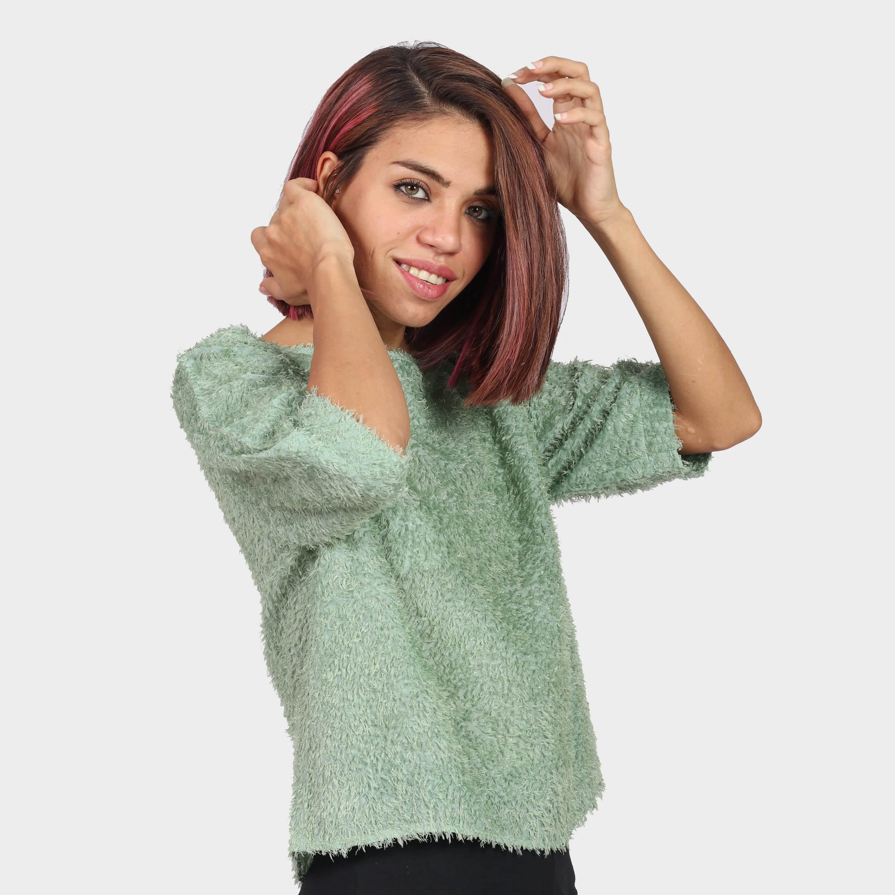بلوزة ريش برقبة دائرية نص كم نسائي