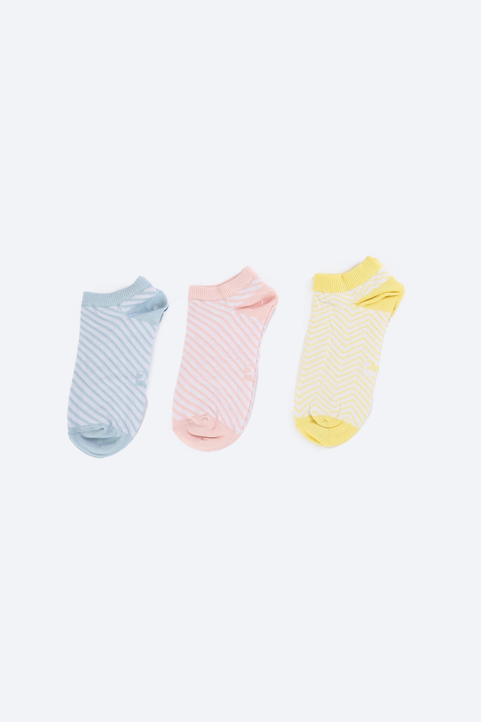 جوارب قطن قصيرة متعددة الألوان - 3 أزواج