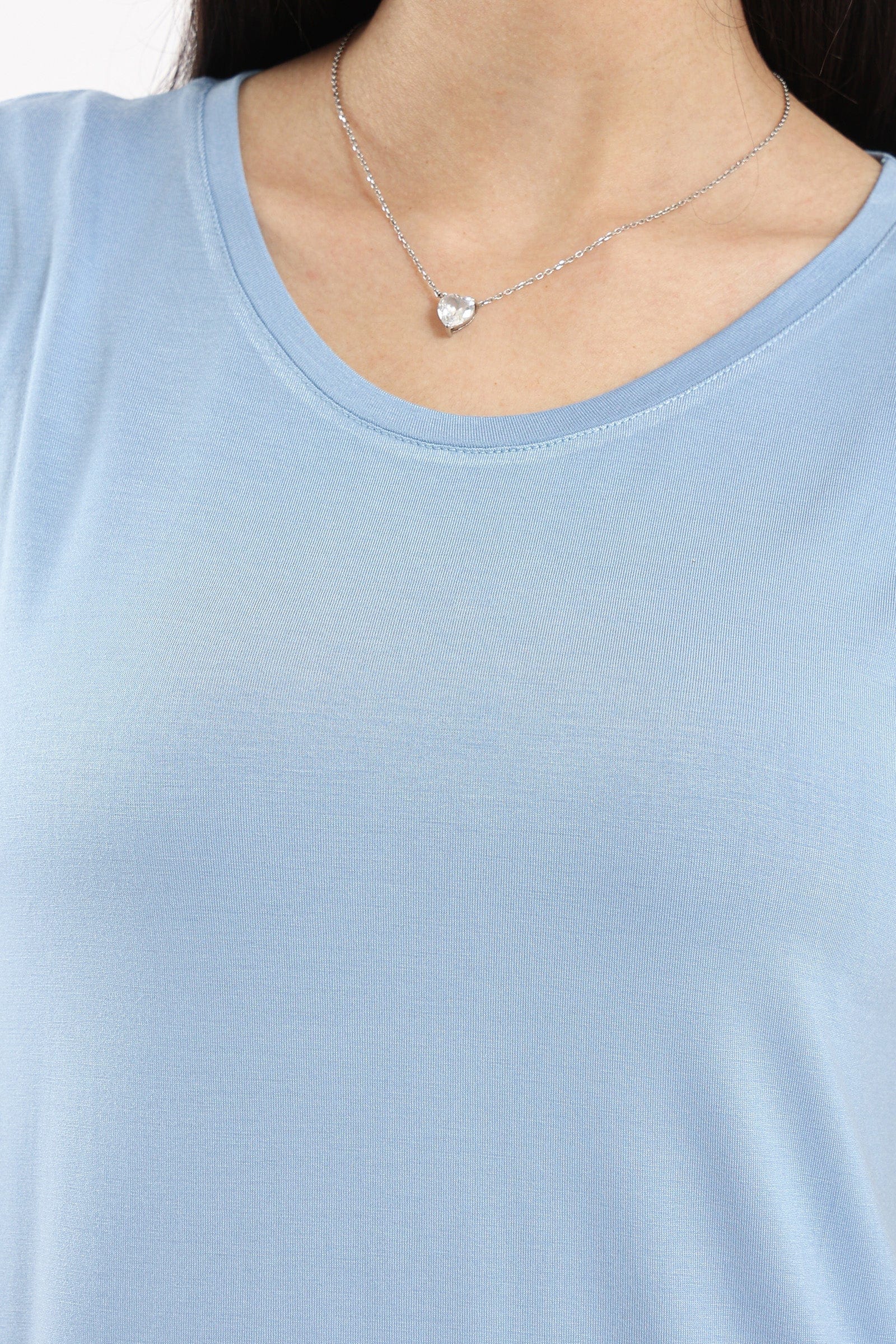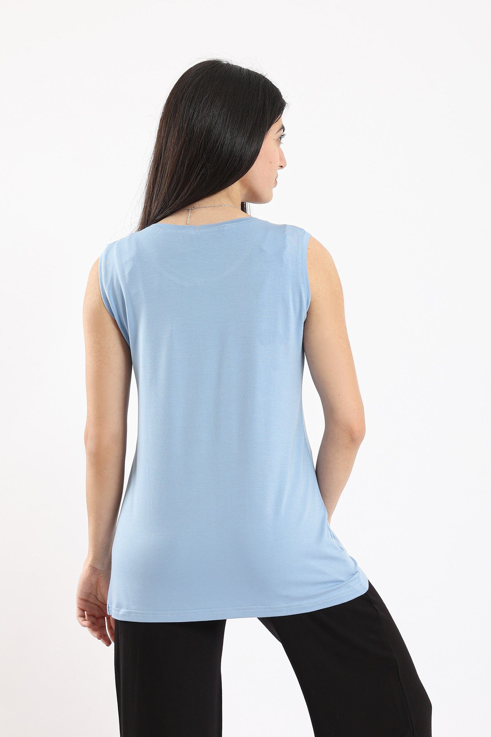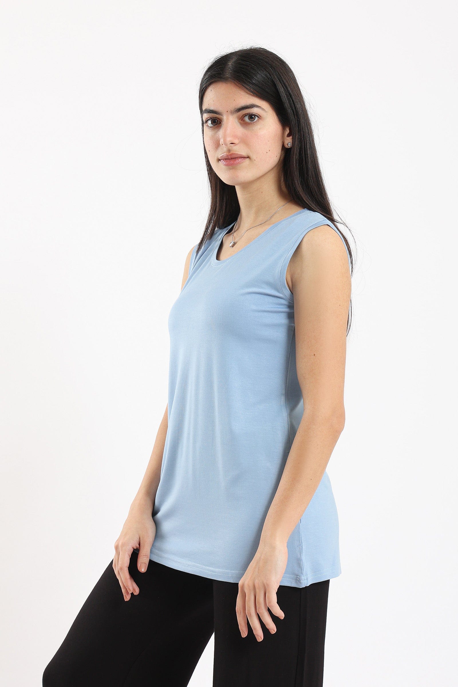 بلوزة سادة بيزك بياقة مستديرة بدون كم