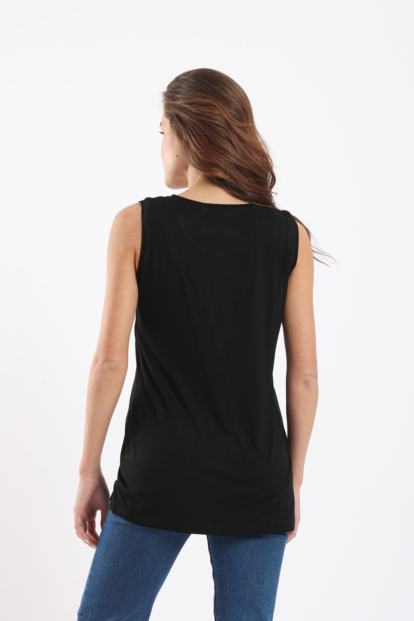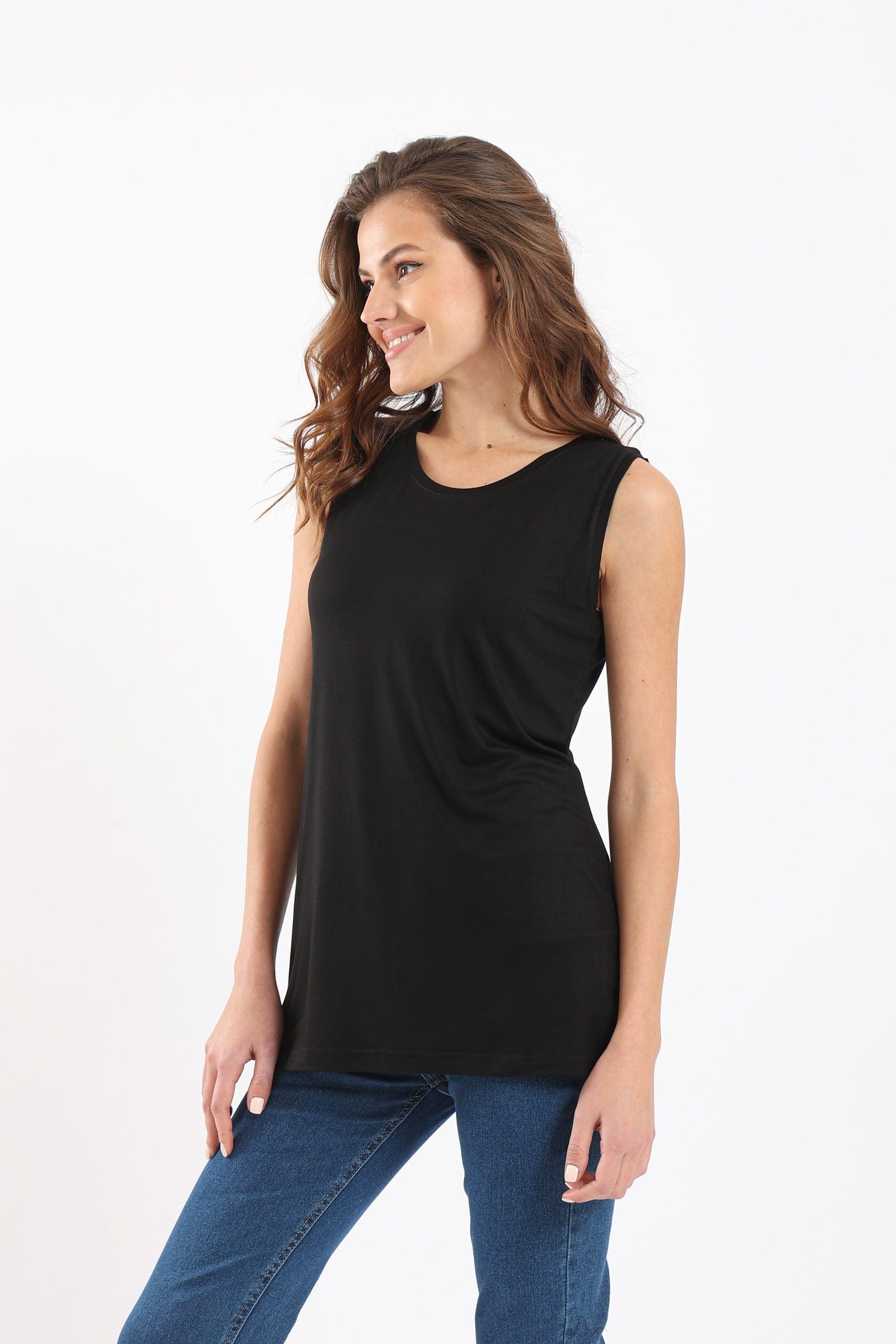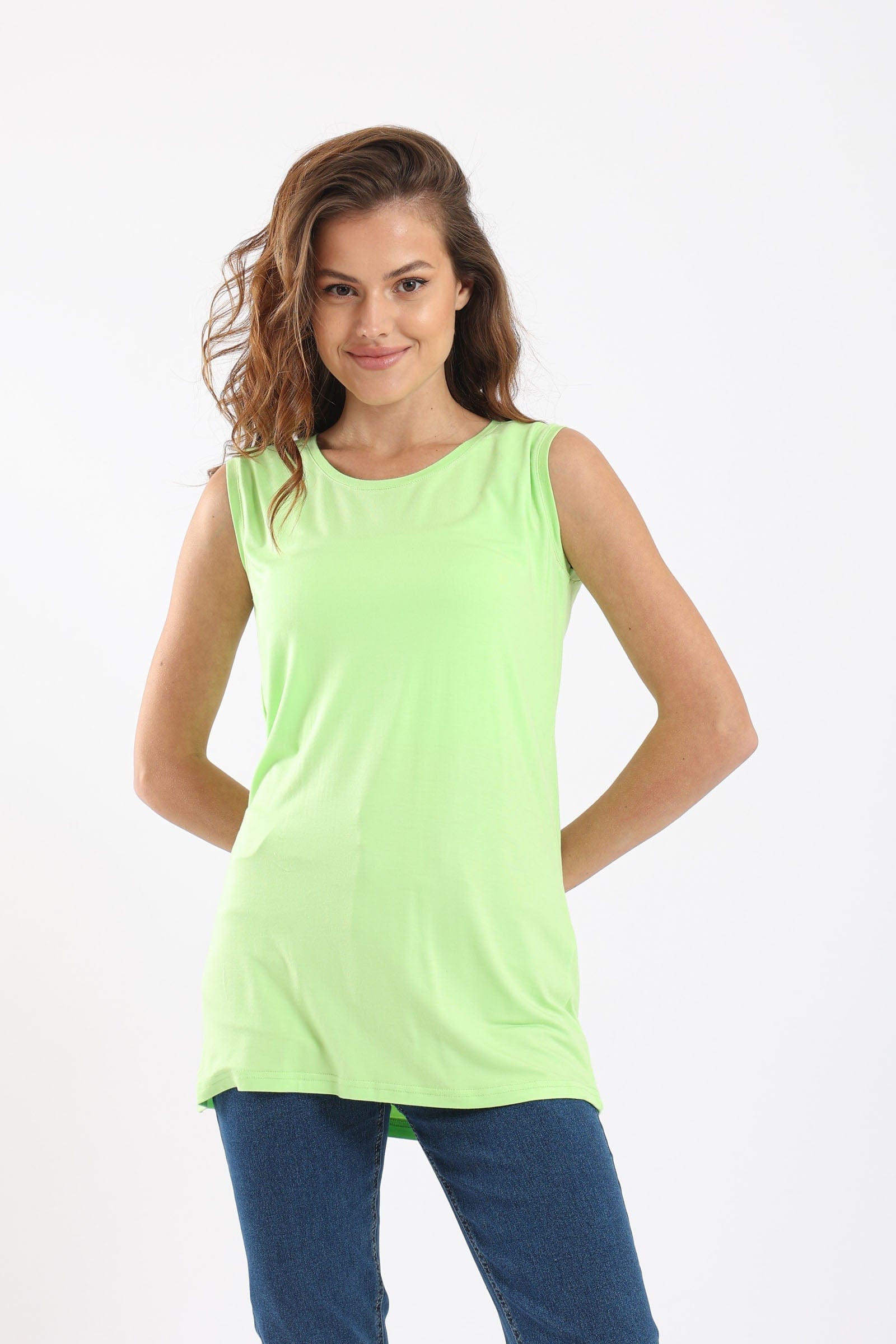 بلوزة سادة بيزك بياقة مستديرة بدون كم