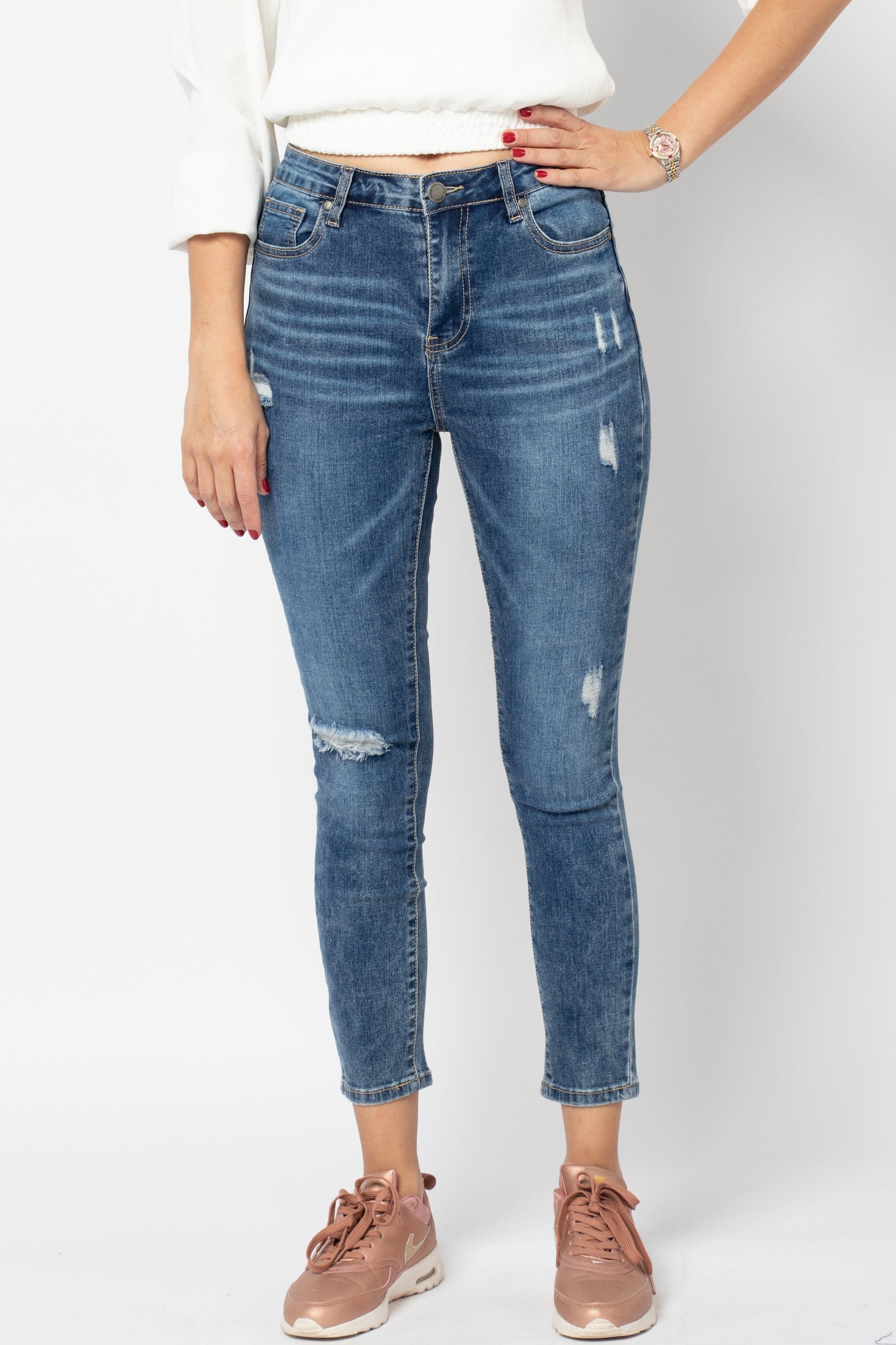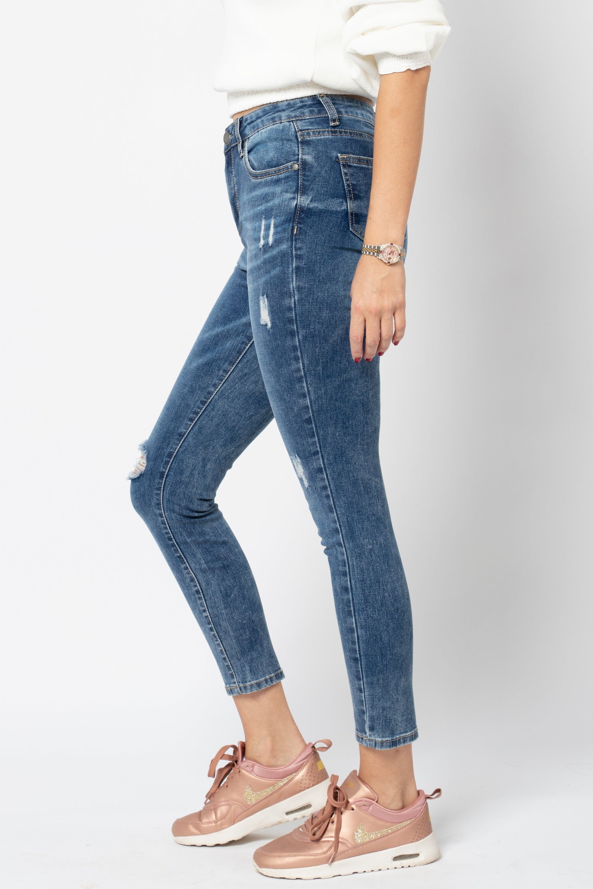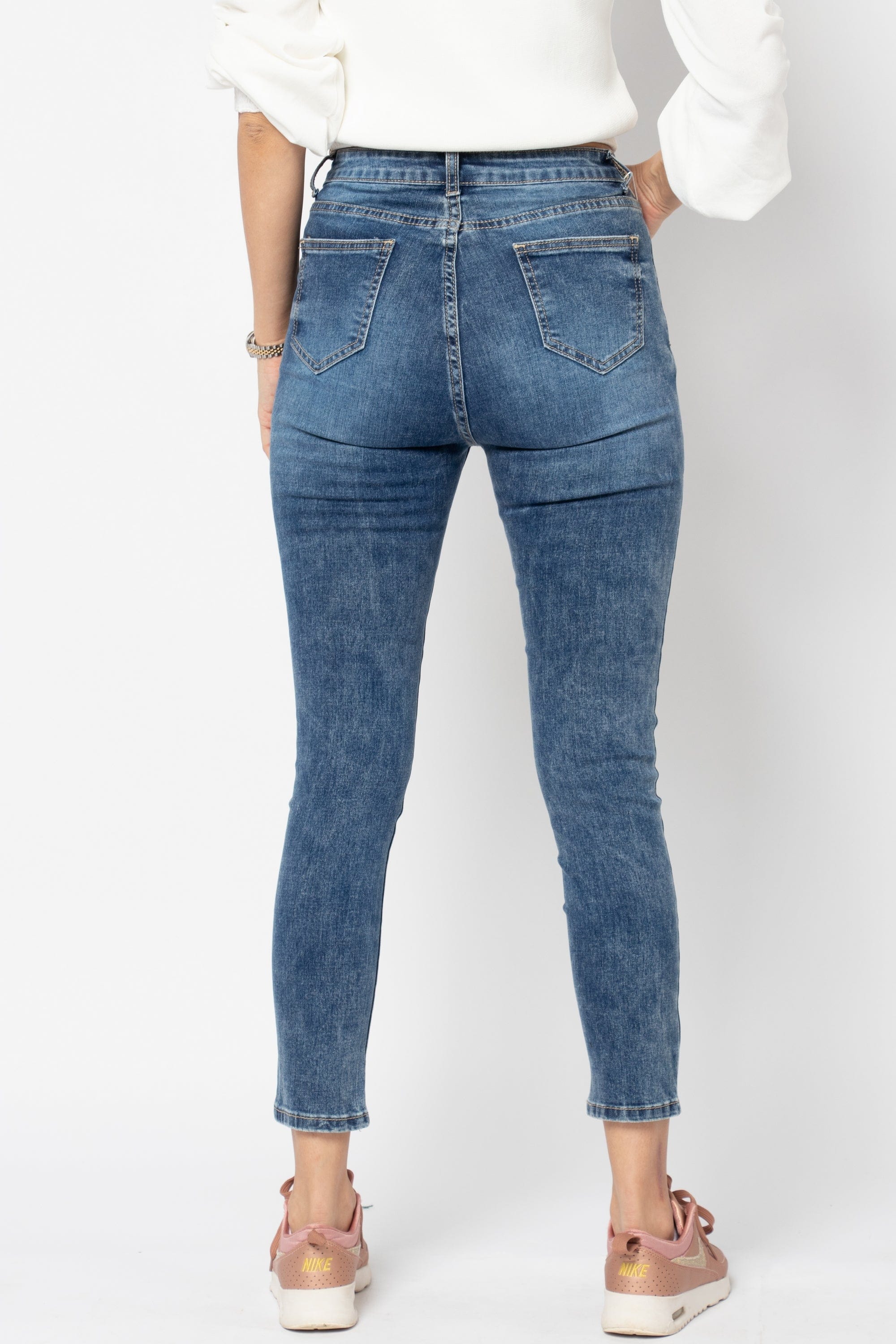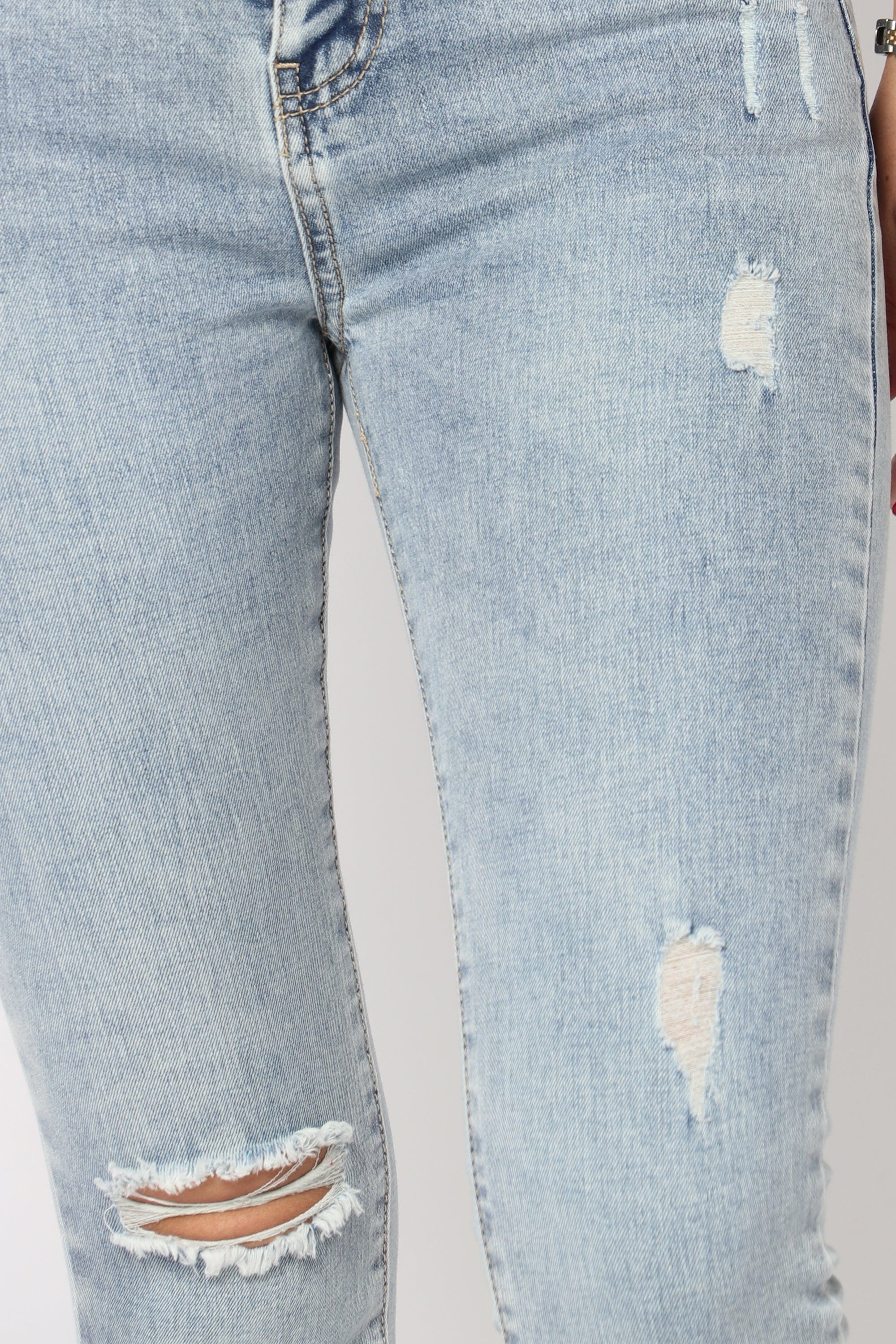 بنطلون جينز مقطع بسحاب وزرار وجيوب سكيني طويل نسائي