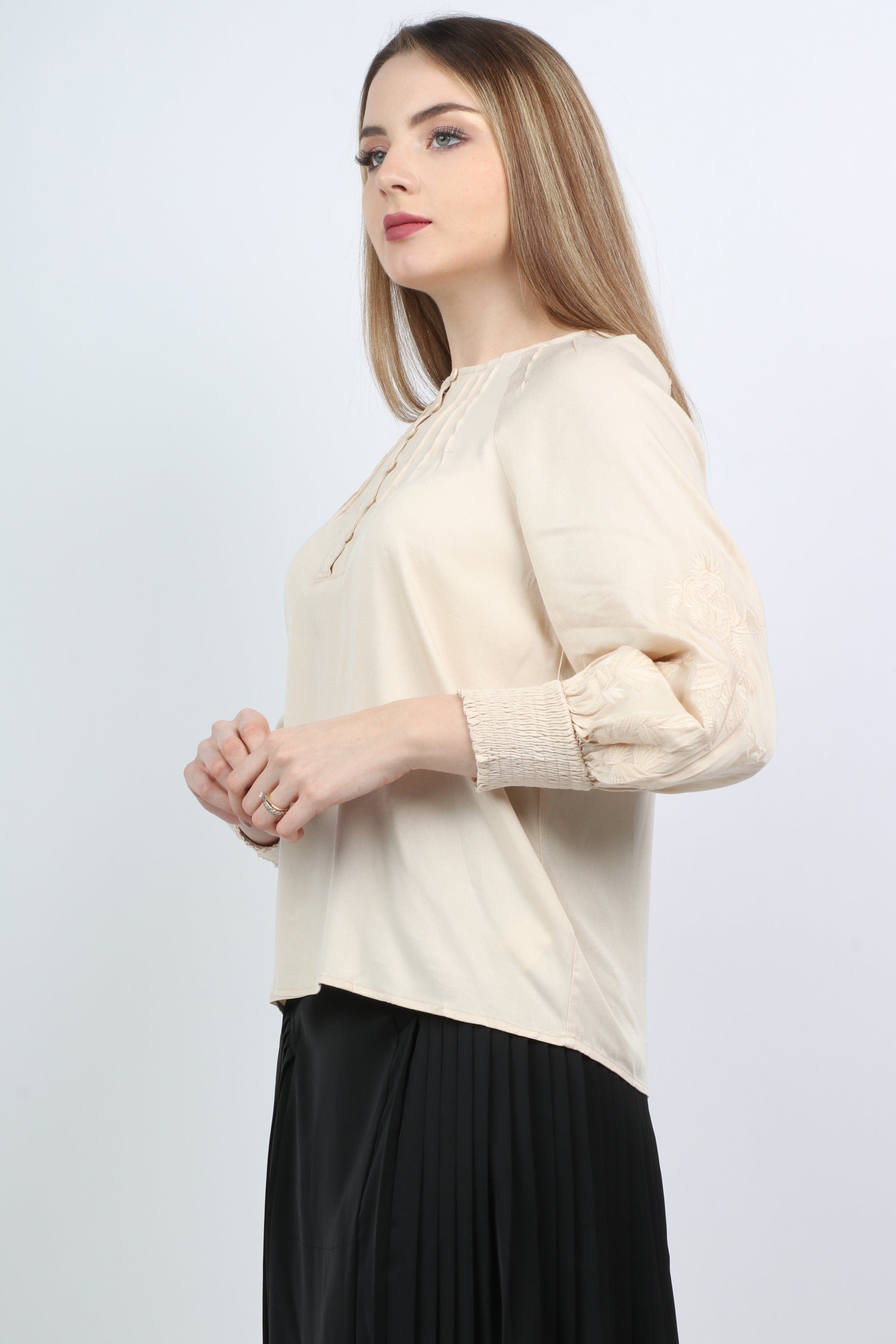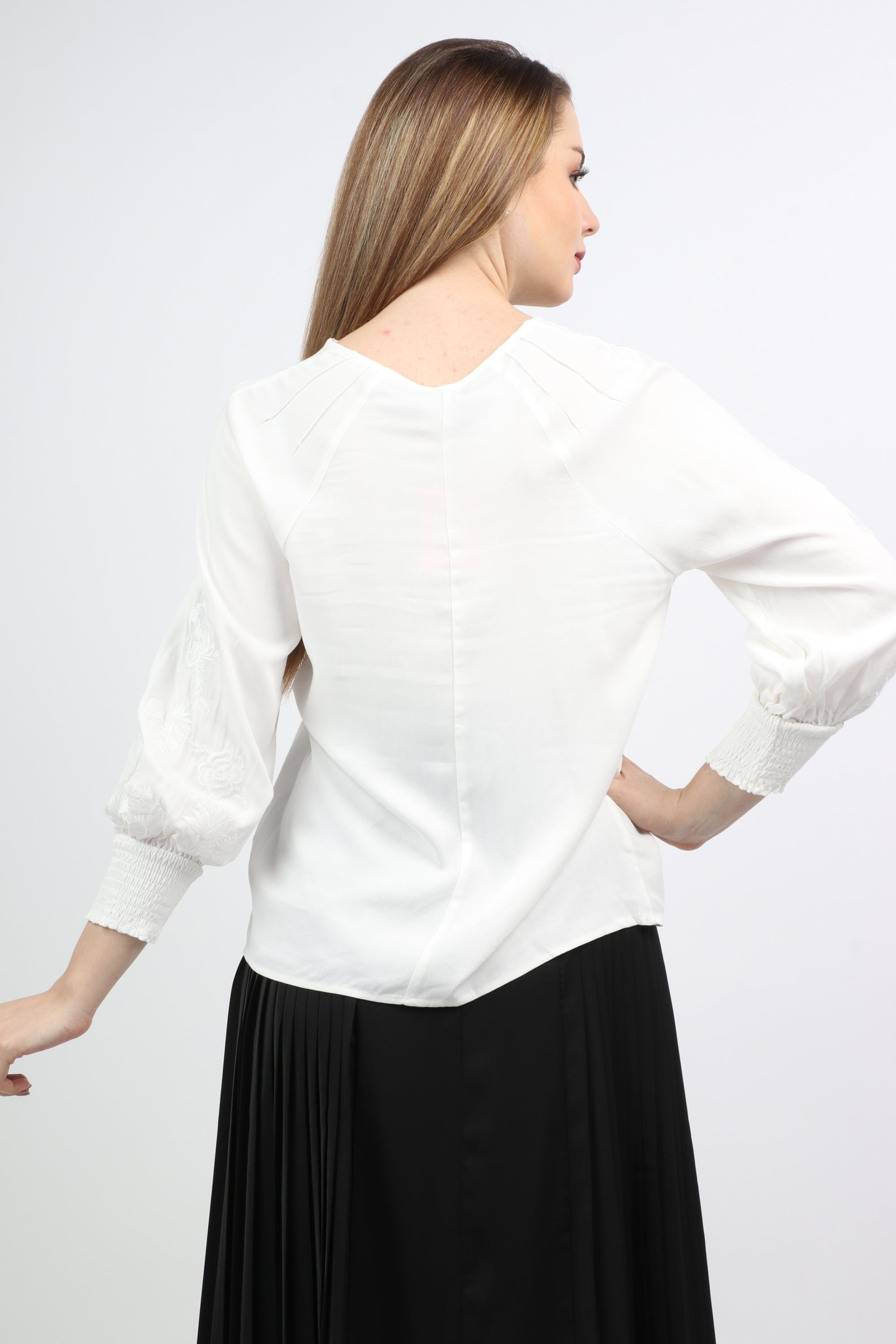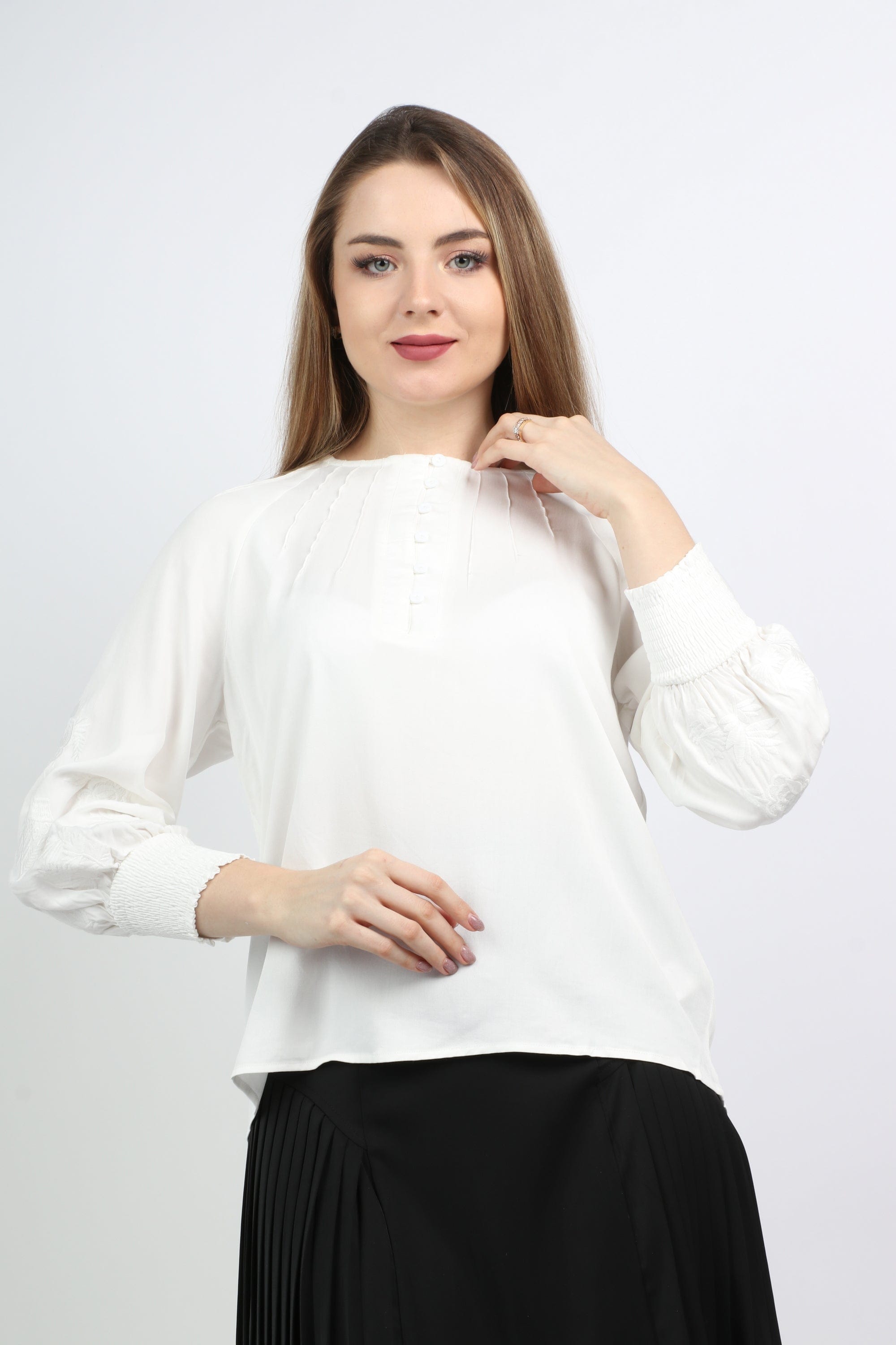 بلوزة بأكمام طويلة مزينة بجزء مطاطي