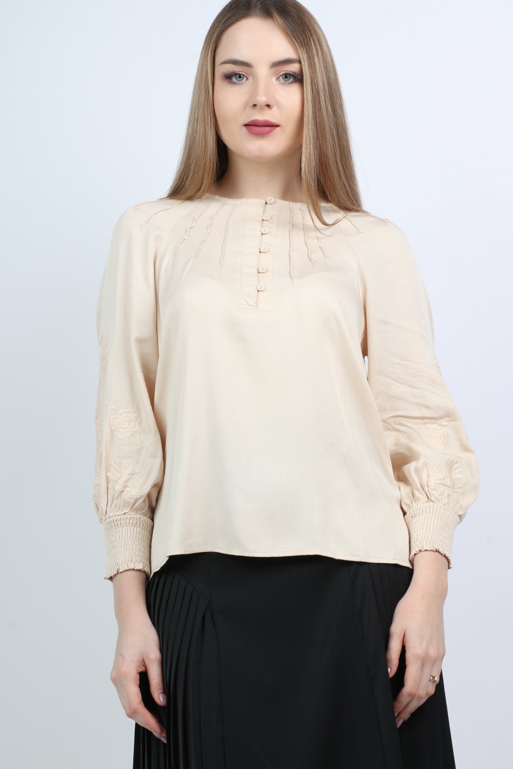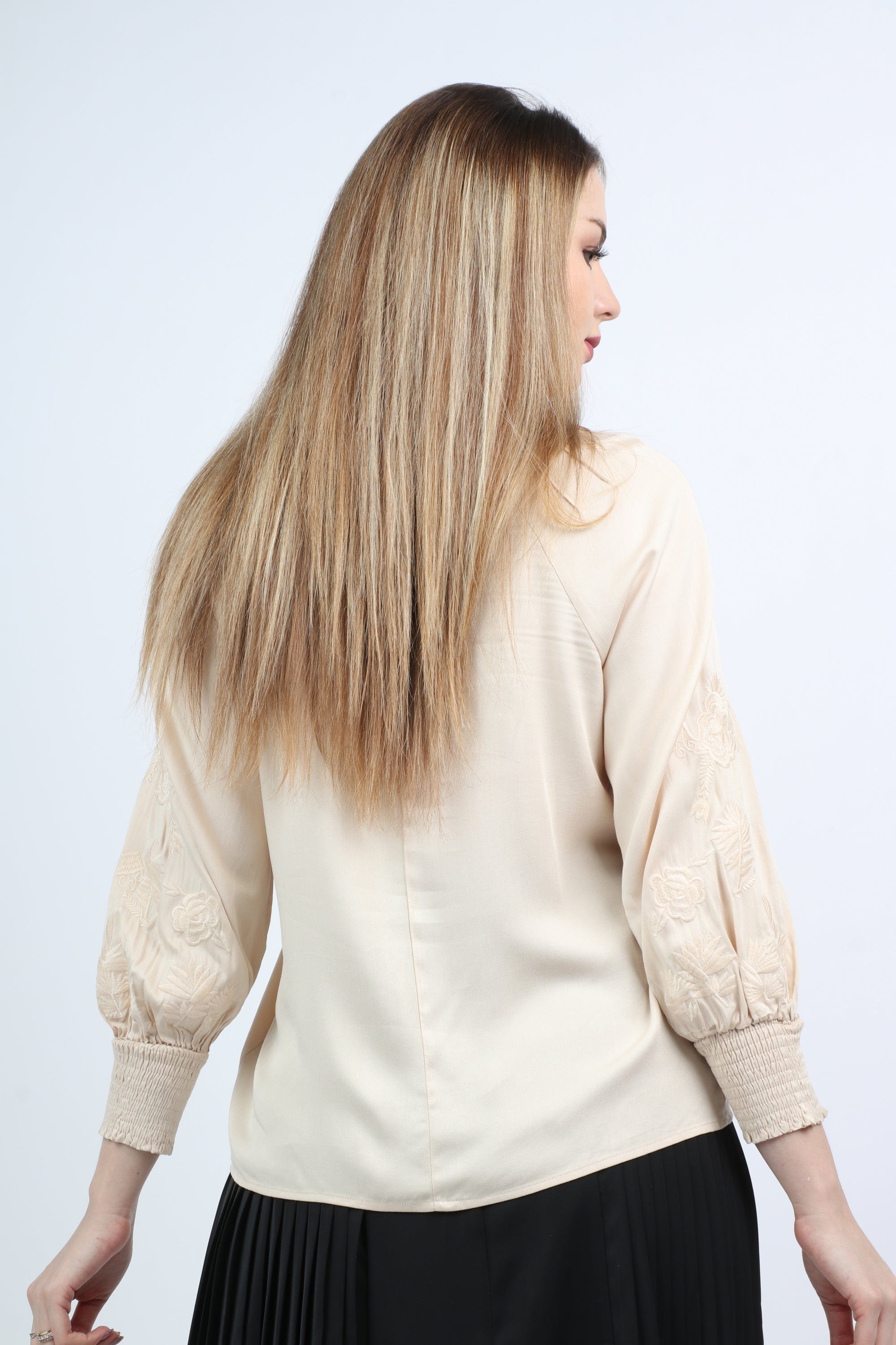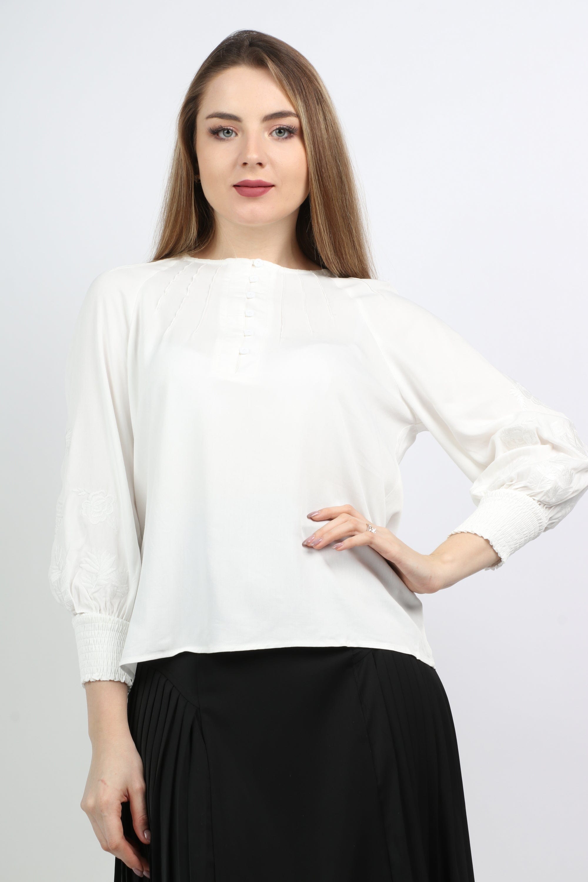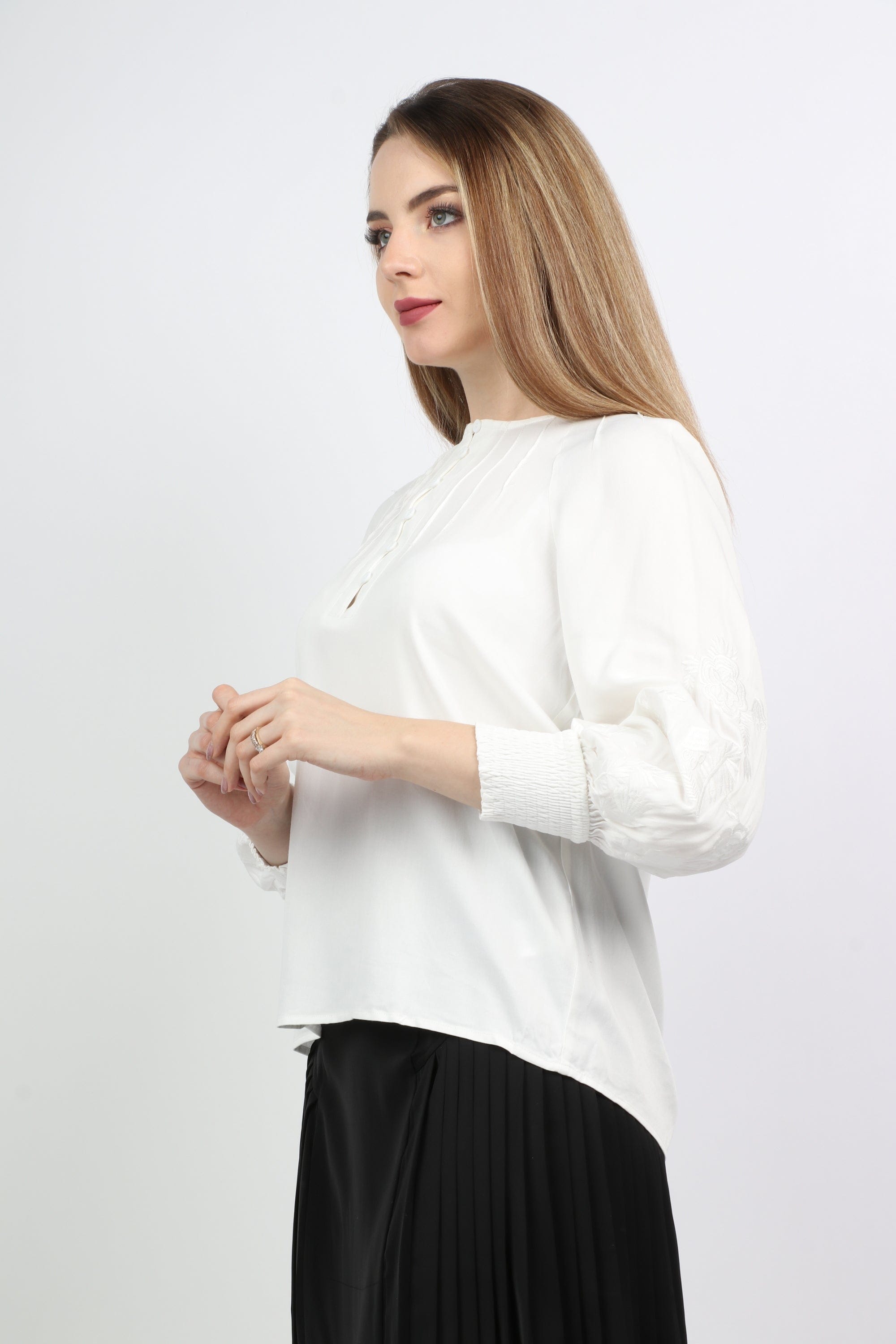 بلوزة بأكمام طويلة مزينة بجزء مطاطي