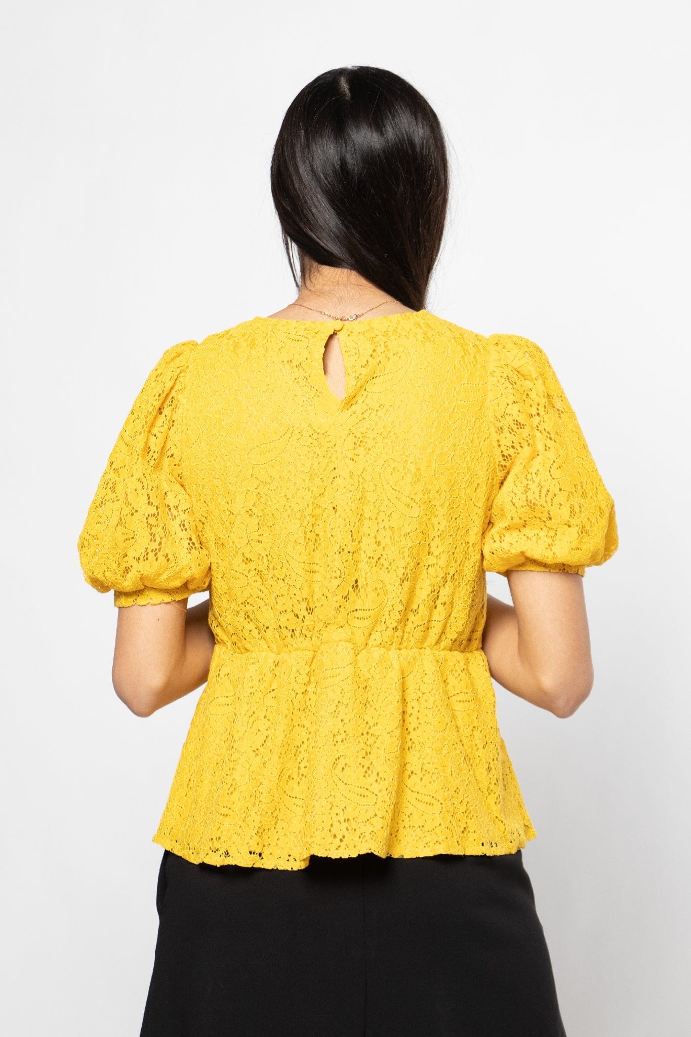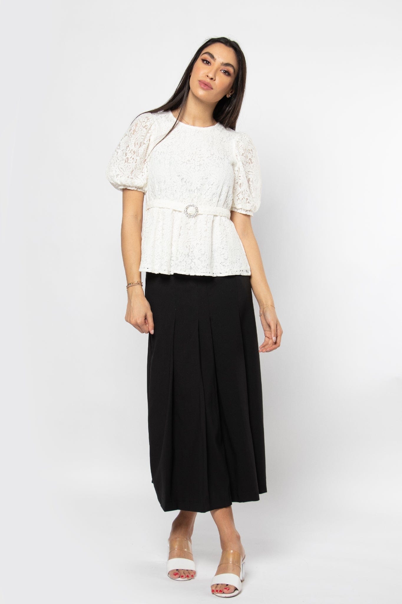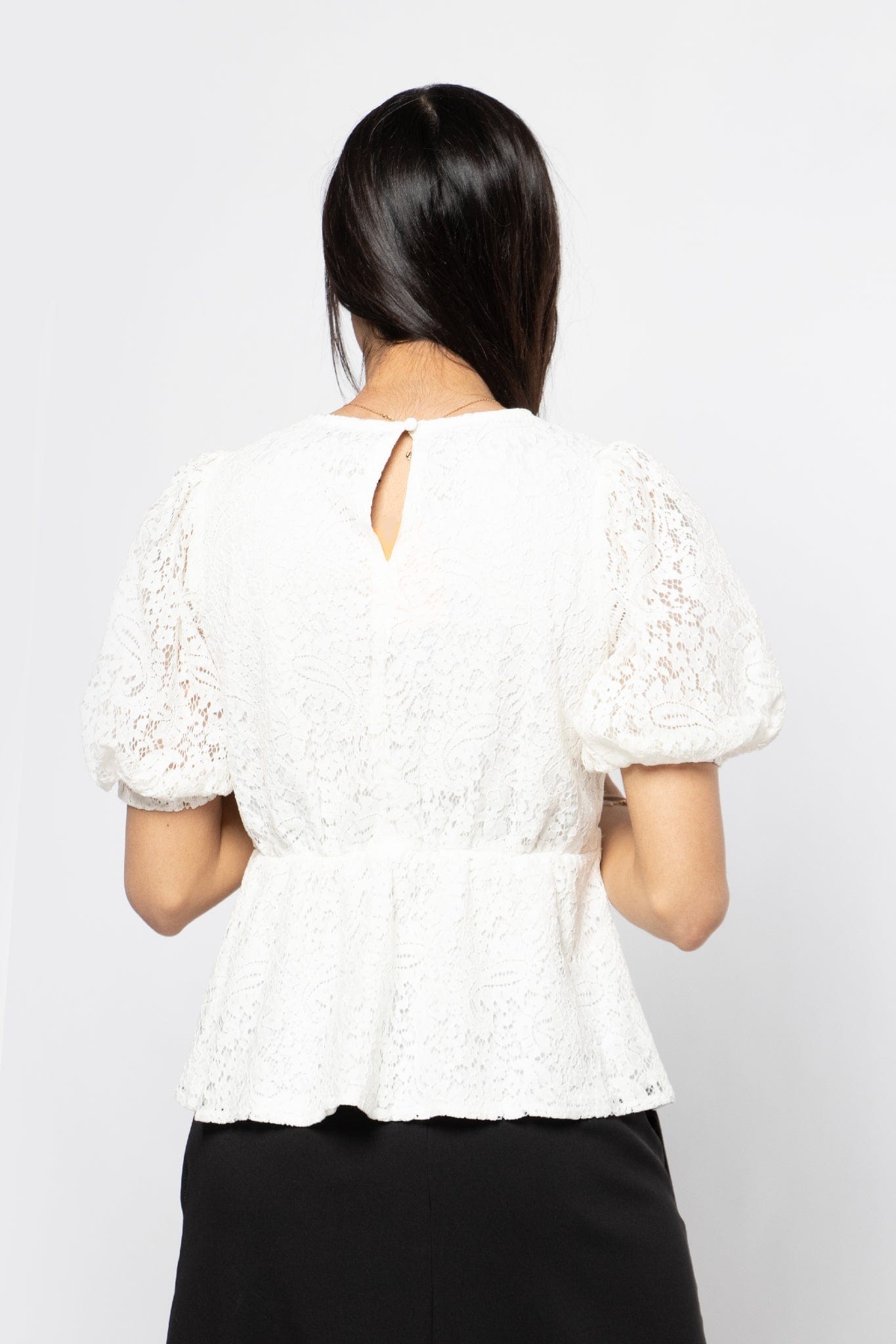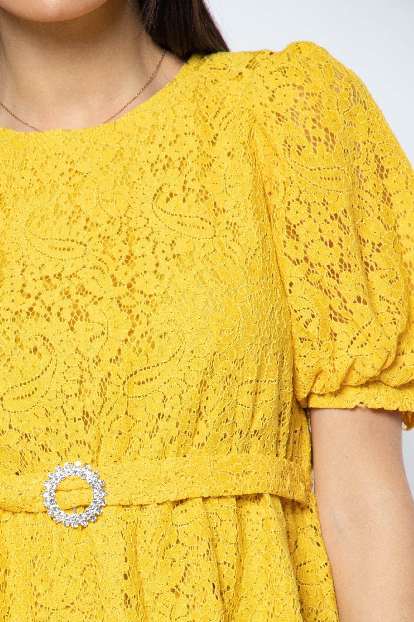 بلوزة دانتيل بحزام كم قصير منفوخ نسائي