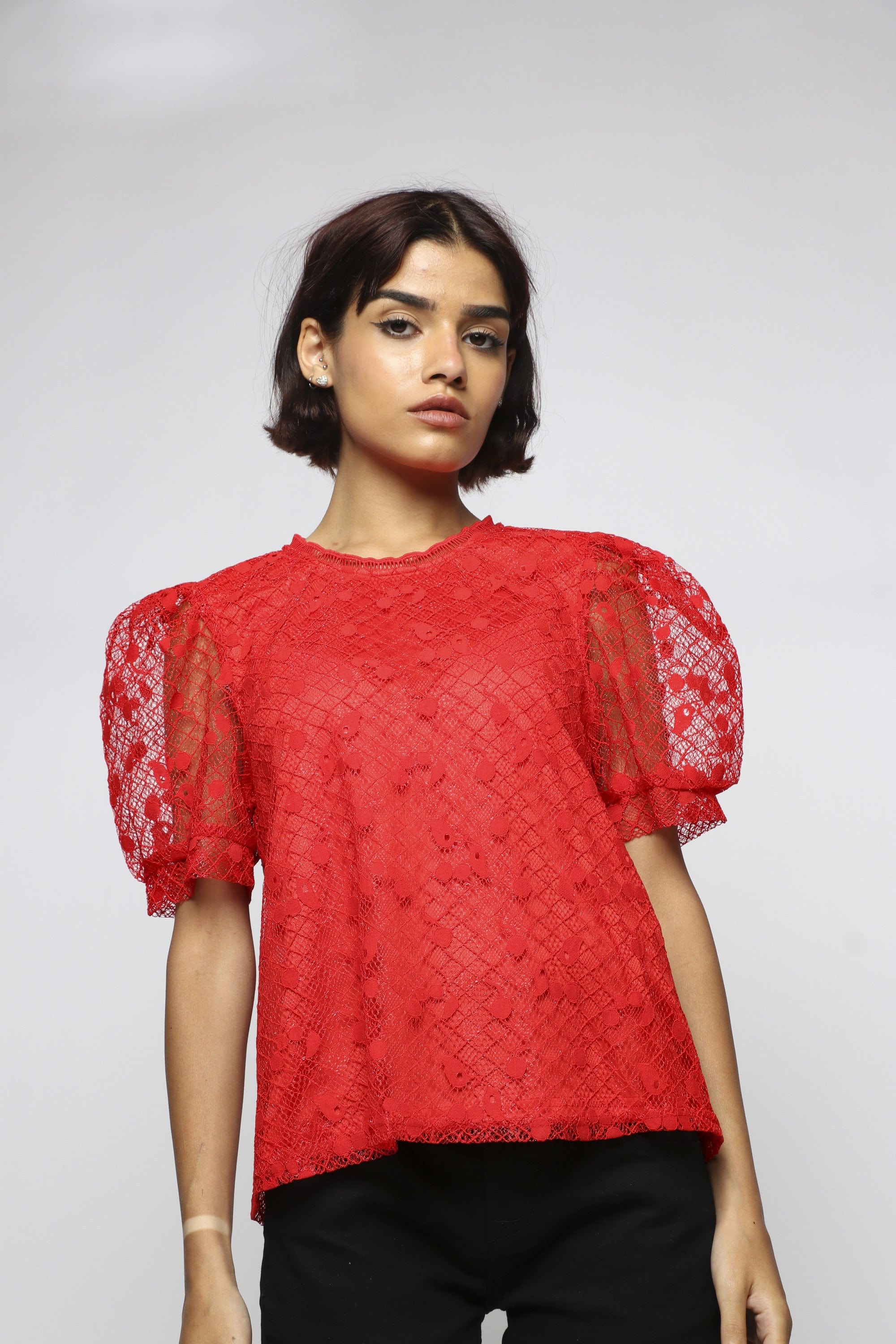انغمسي في روعة الموضة مع بلوزة بأكمام قصيرة شفافة بياقة دائرية من ميكا. تأتي هذه البلوزة بتصميم رائع يتميز بأكمام قصيرة وقماش شفاف يضفي لمسة جمالية على إطلالتك. بلوزة مثالية للمناسبات الخاصة والأمسيات الراقية. تتوفر بلوزة بأكمام قصيرة شفافة بياقة دائرية في تشكيلة من الألوان المذهلة مثل الأسود والأحمر، مما يتيح لك الاختيار المثالي الذي يناسب ذوقك وأسلوبك الشخصي. احصلي الآن على بلوزة بأكمام قصيرة شفافة بياقة دائرية من ميكا وأضف لمسة من الأناقة والجمال إلى مظهرك. اطلبي الآن عبر فاشن السعودية واستمتعي بأفضل العروض والتوصيل السريع. رقم المنتج: mgl0222-21q302