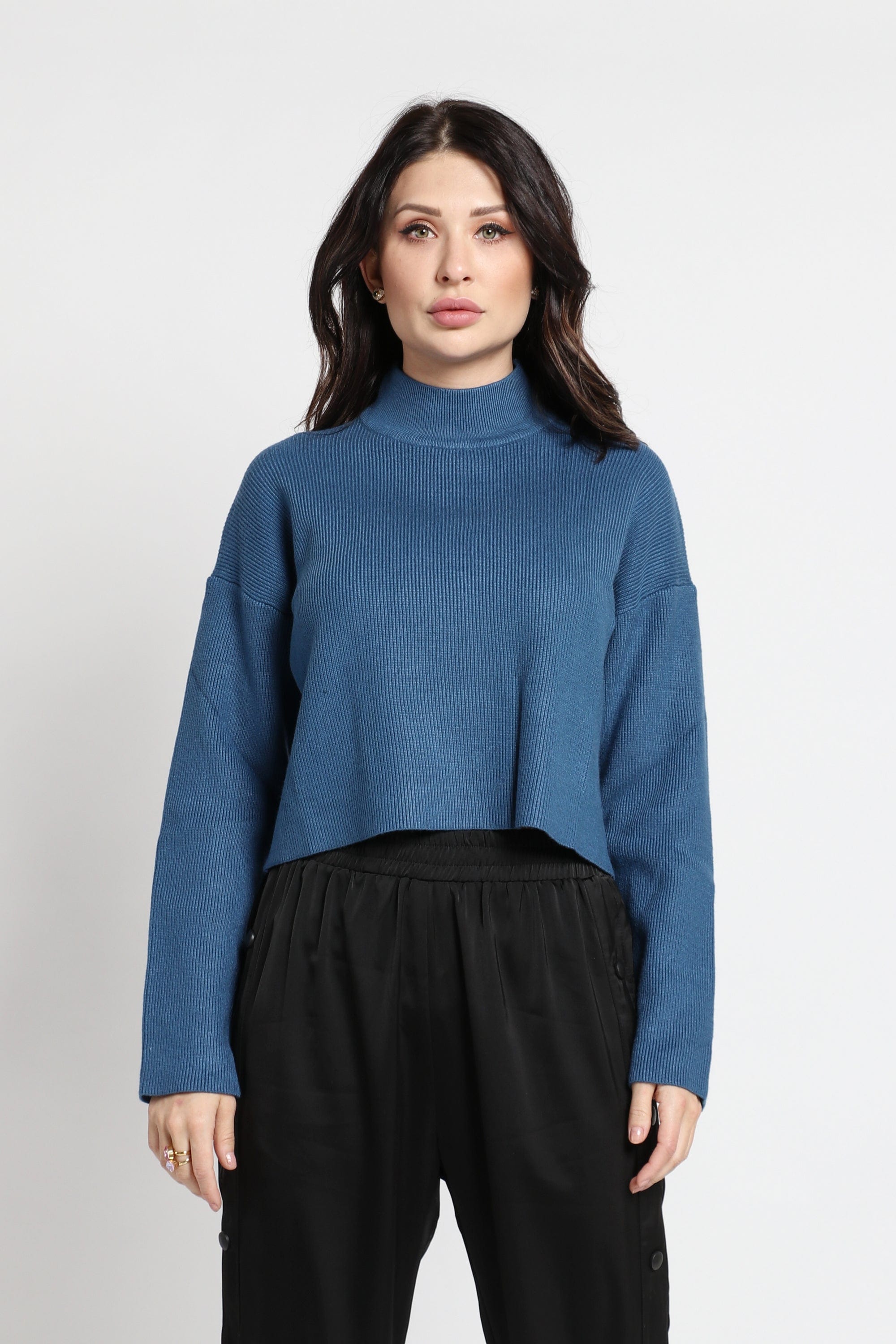 بلوفر أوفر سايز كروب بكم طويل وياقة عالية نسائي