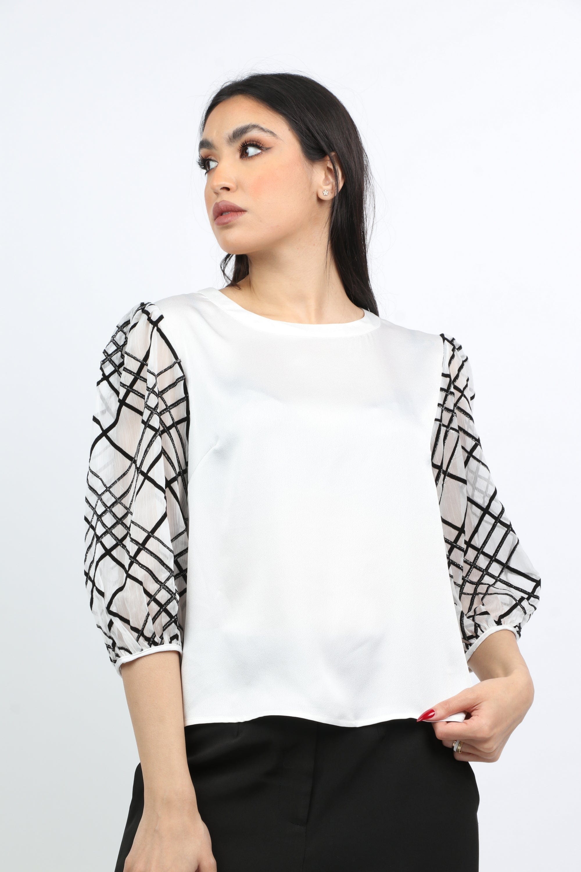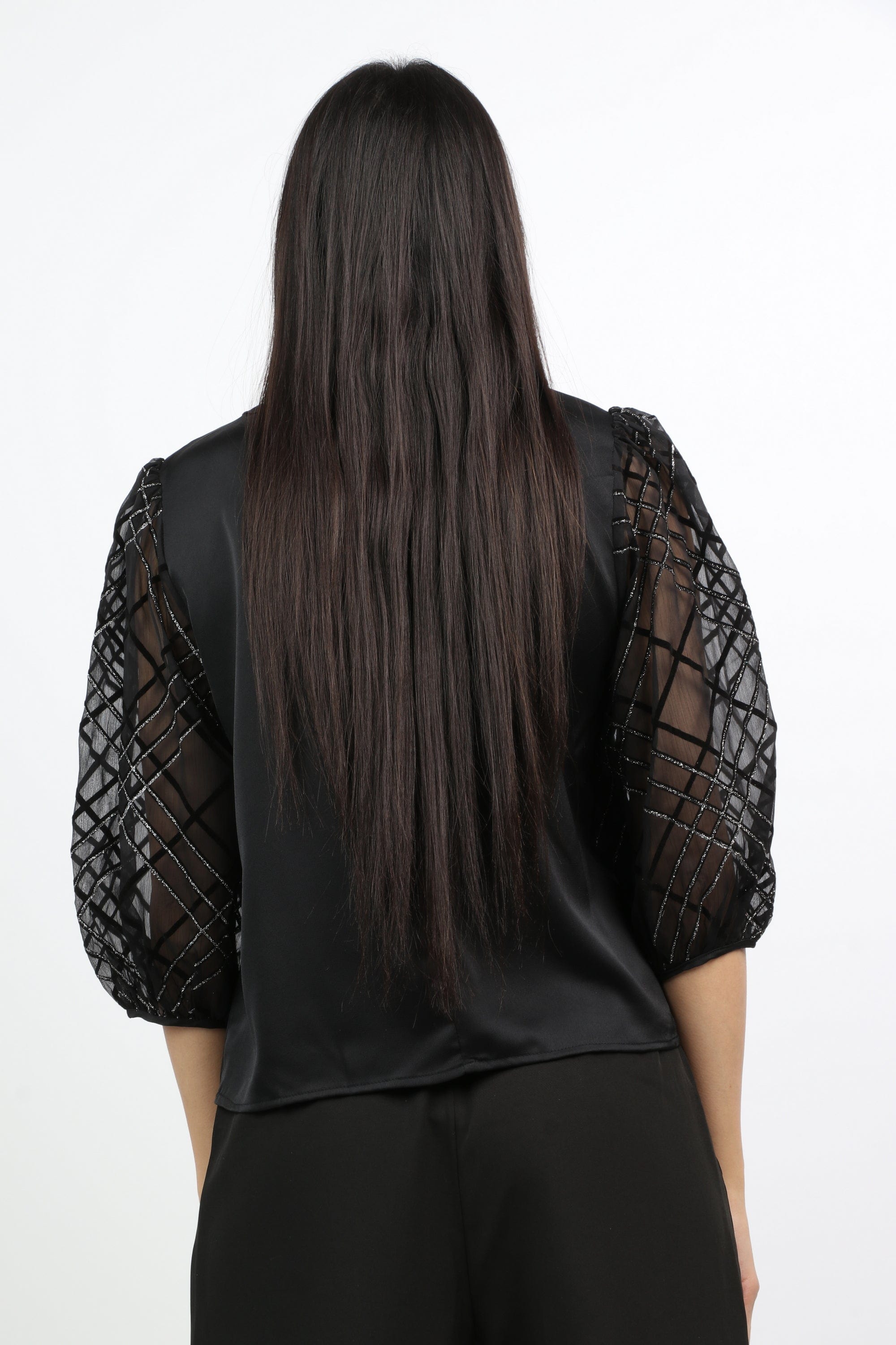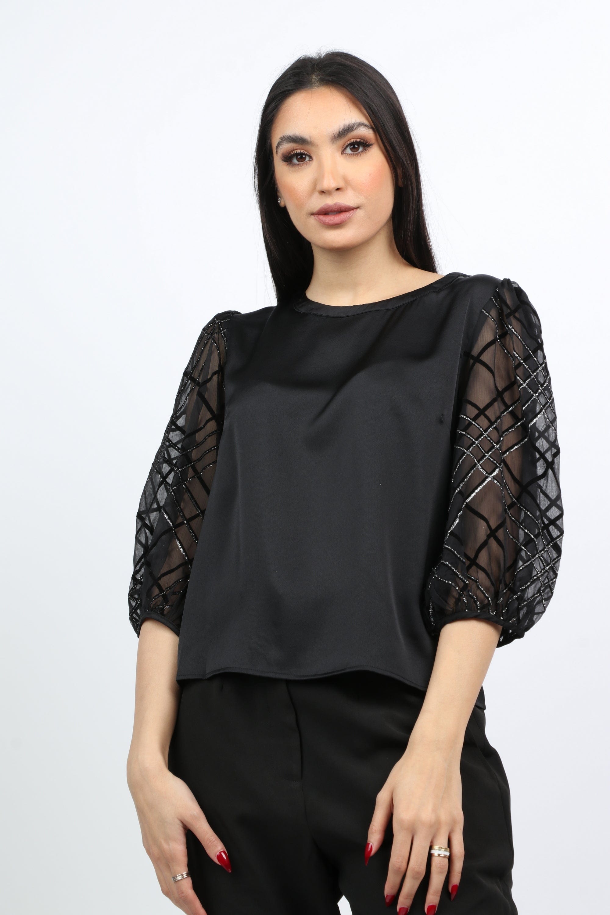 بلوزة سهرة سادة أكمام طويلة منفوخة نسائي