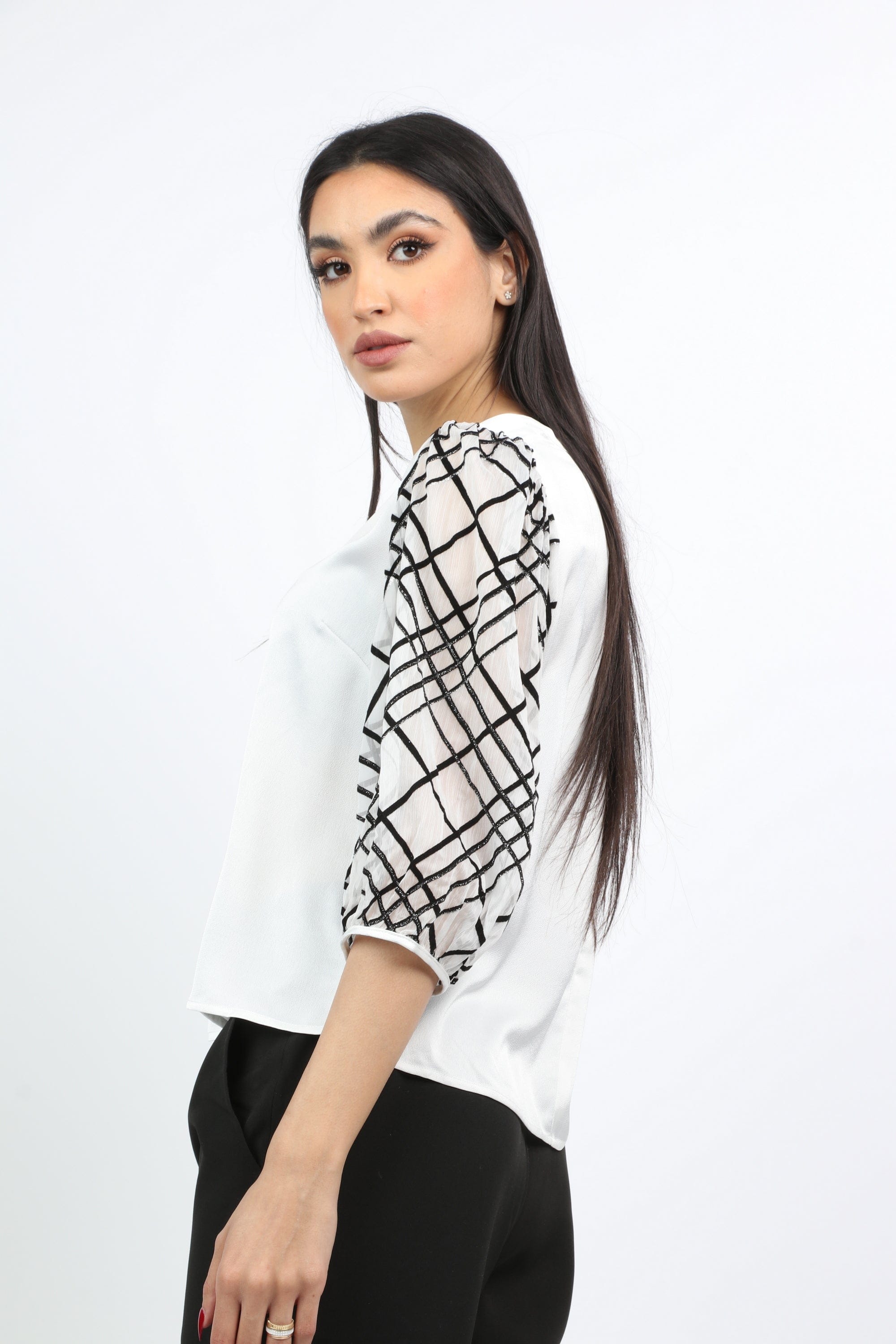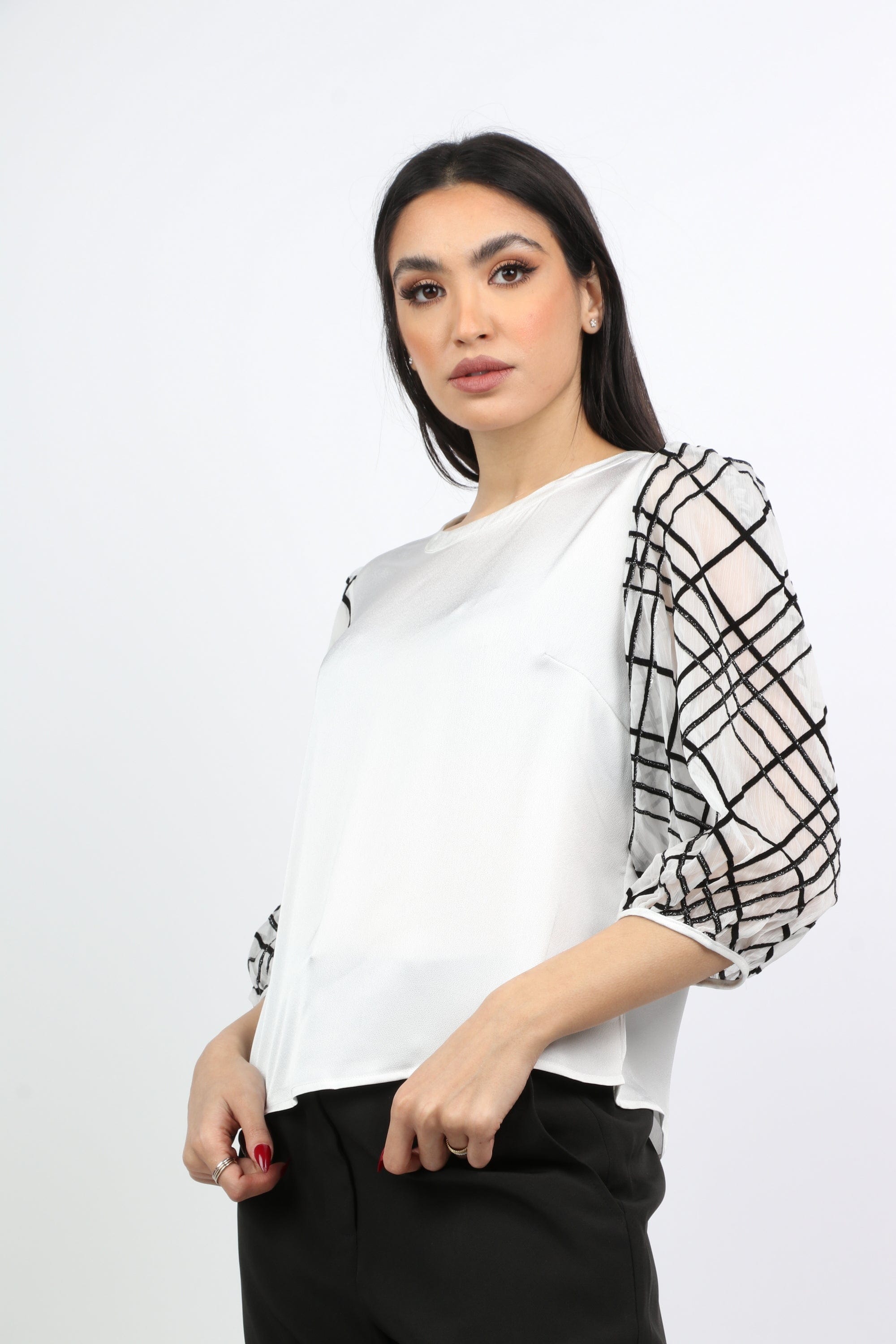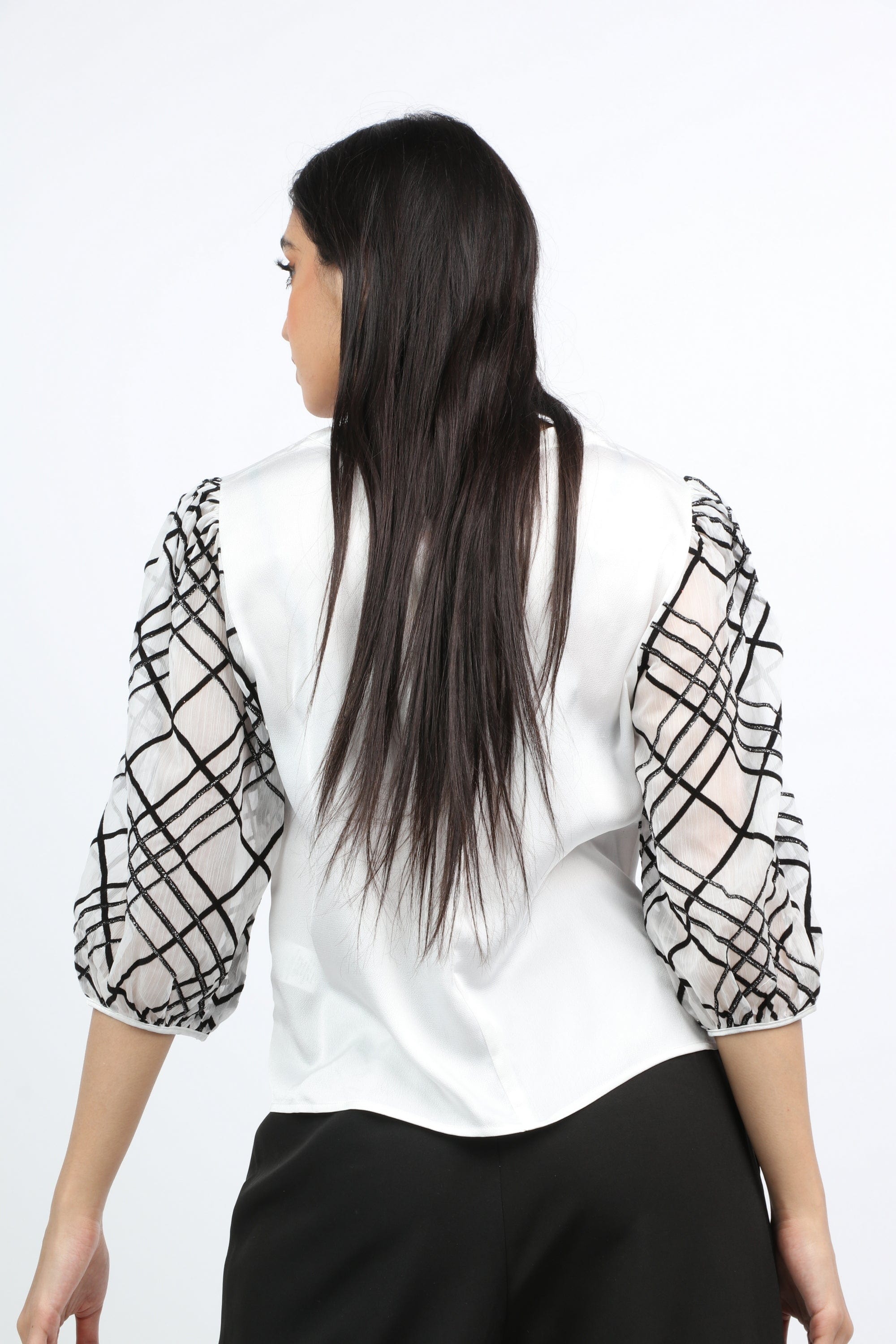 بلوزة سهرة سادة أكمام طويلة منفوخة نسائي