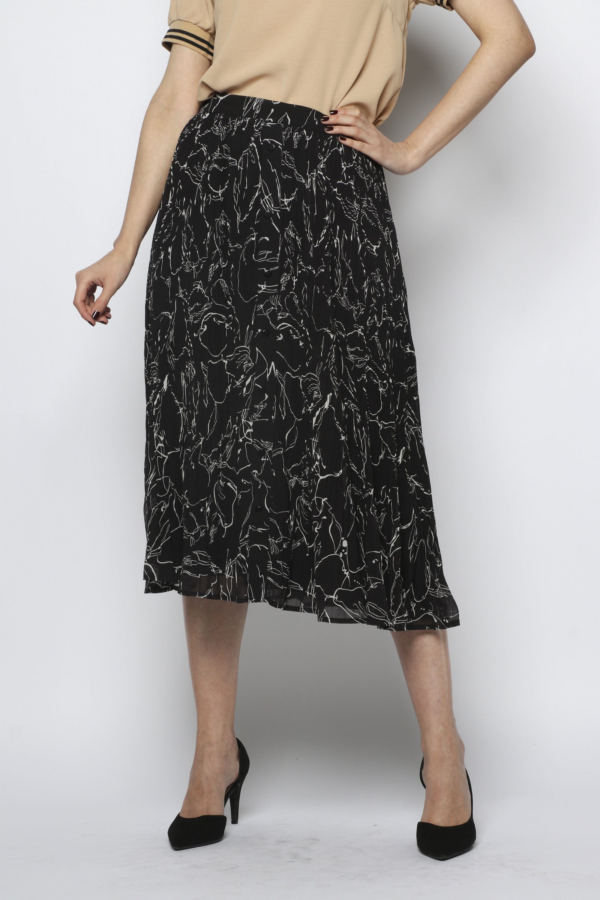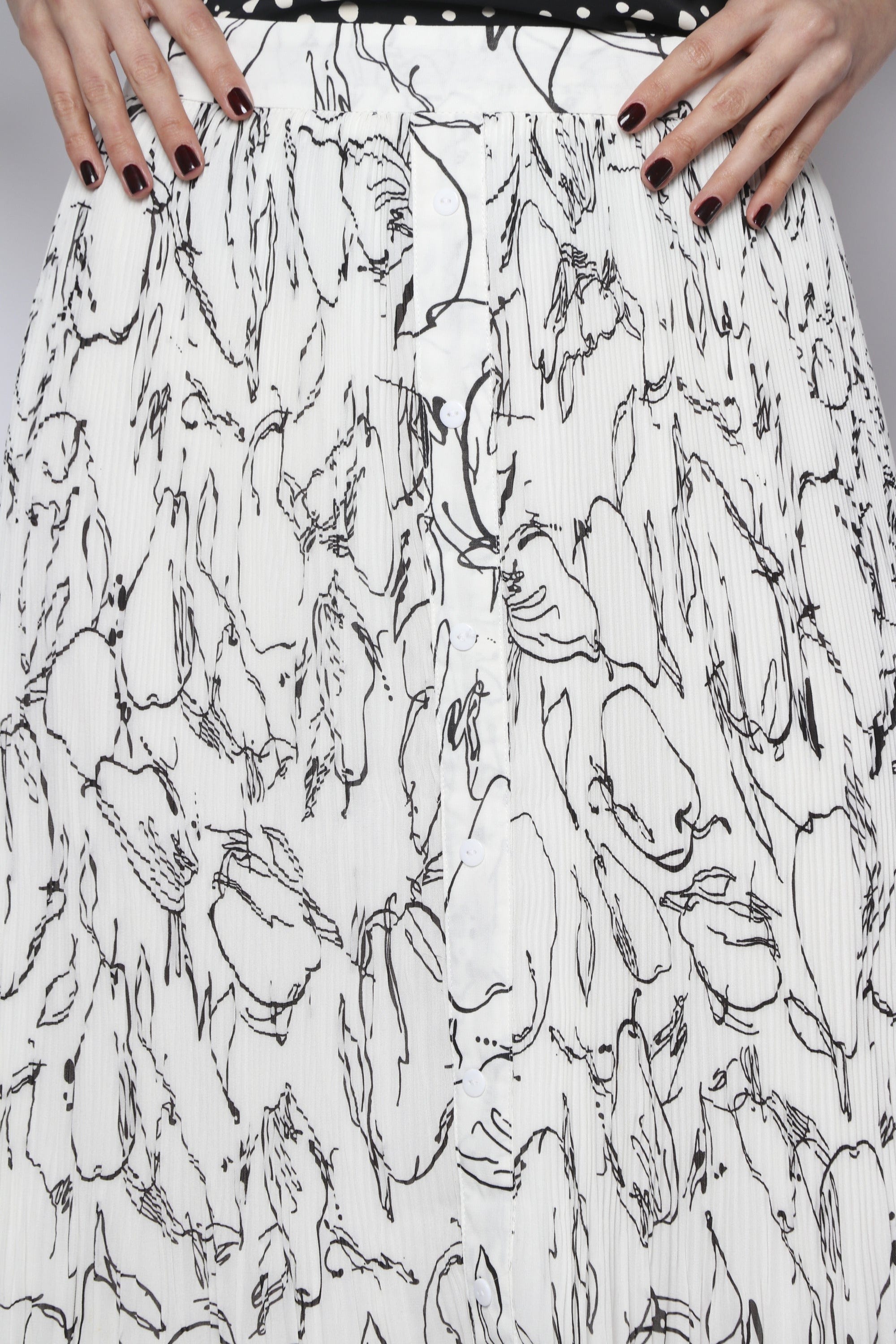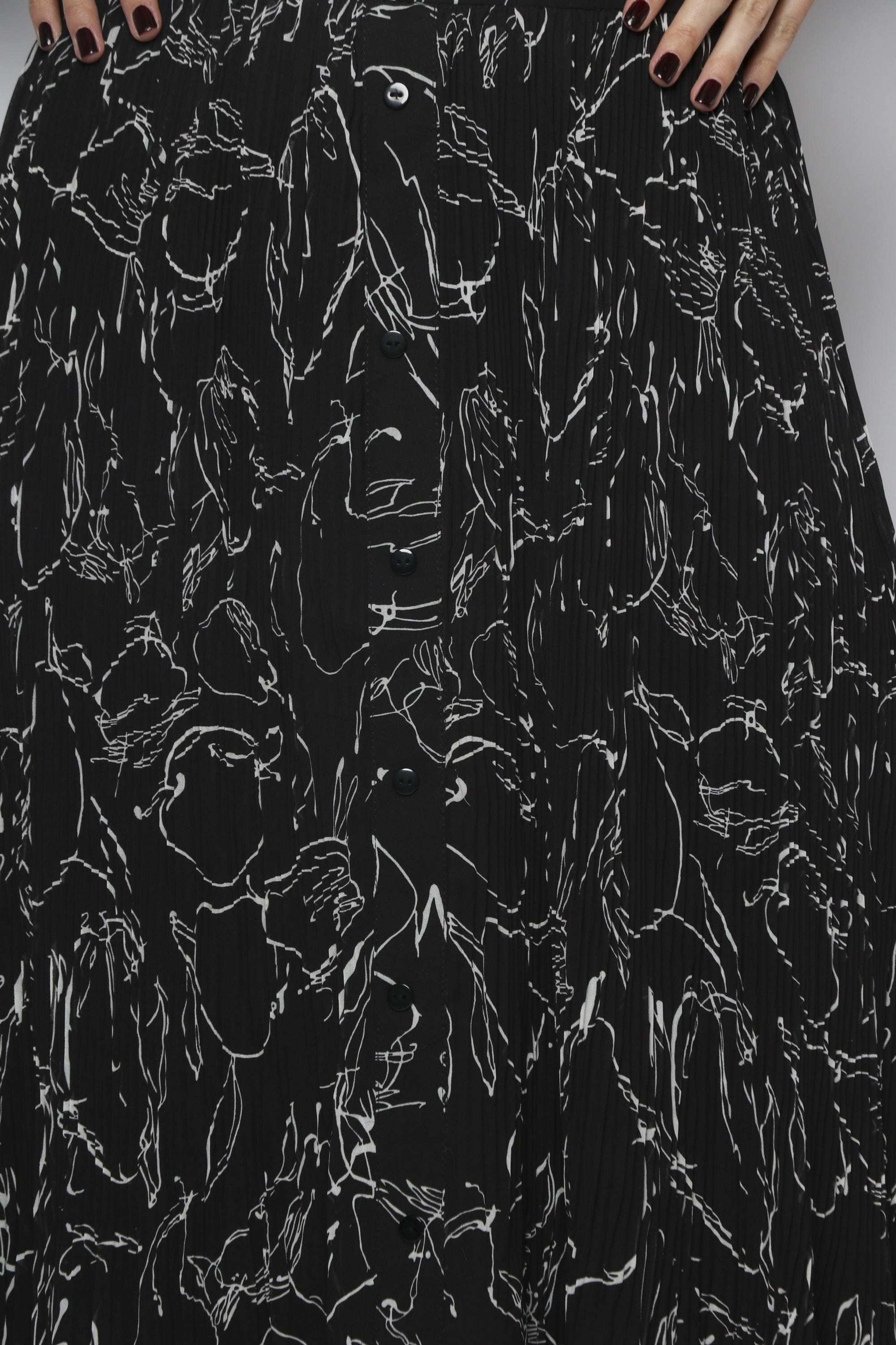 تنورة ميدي شيفون مزينة بطبعات مزودة بأزرار أمامية