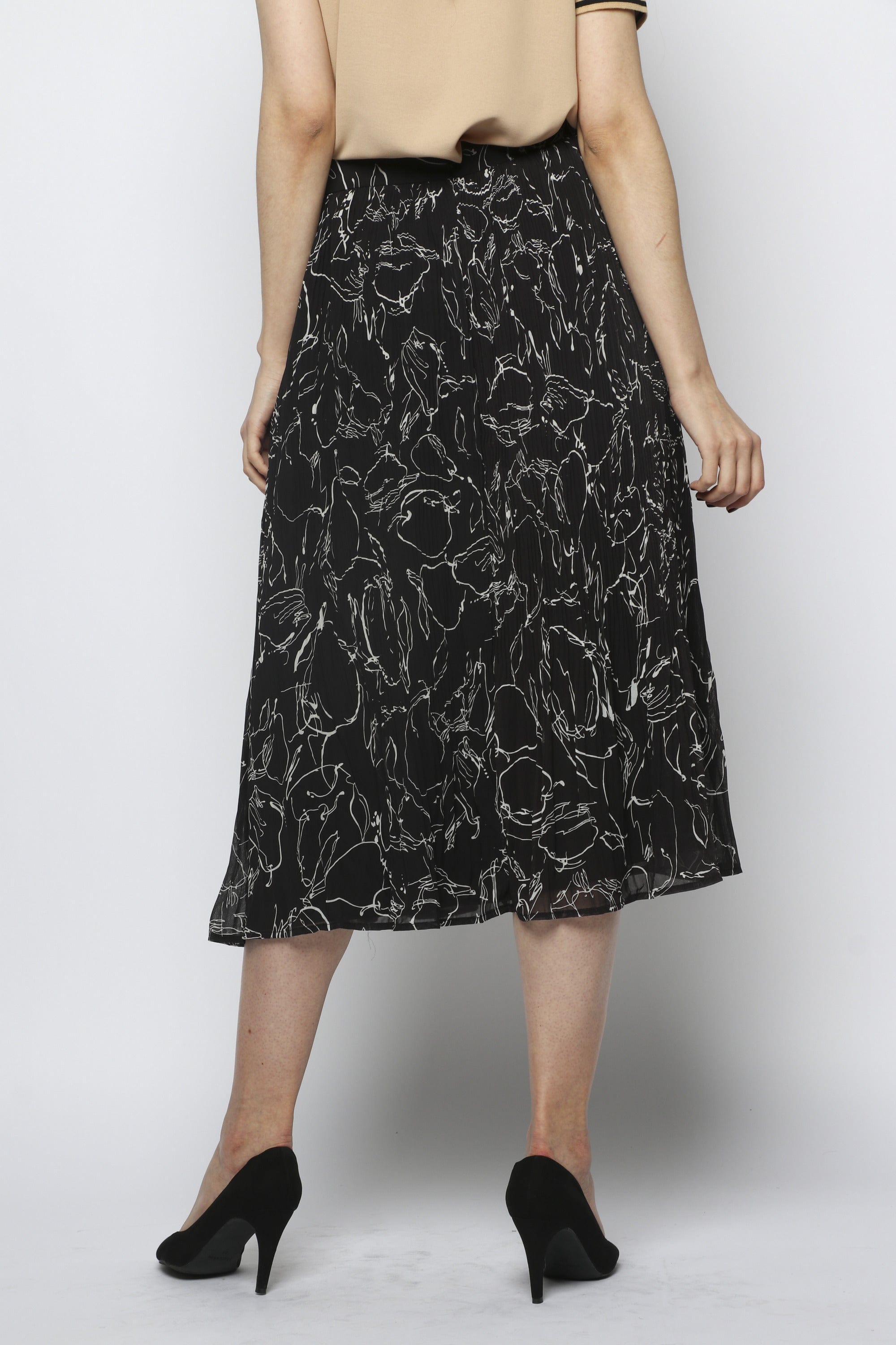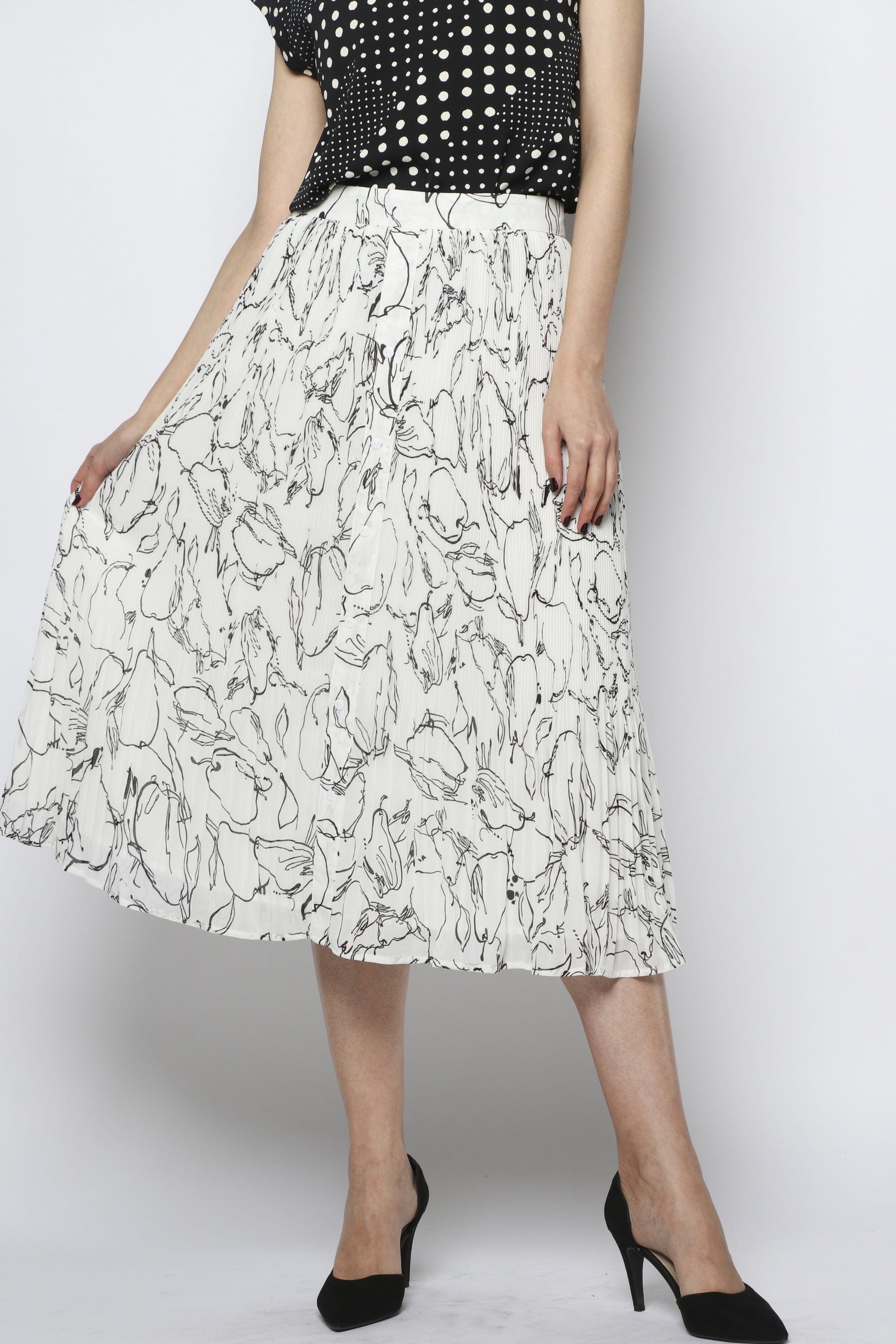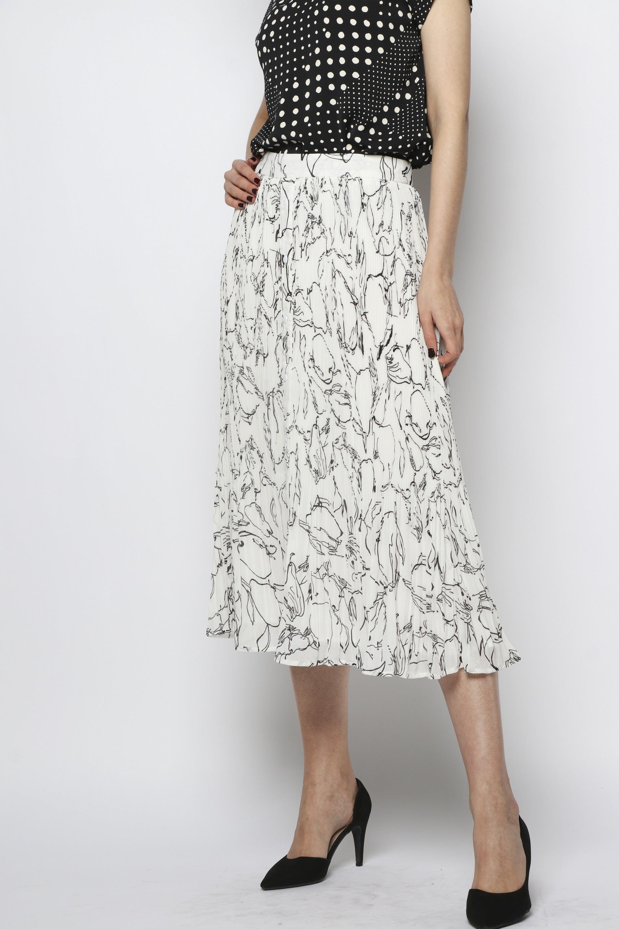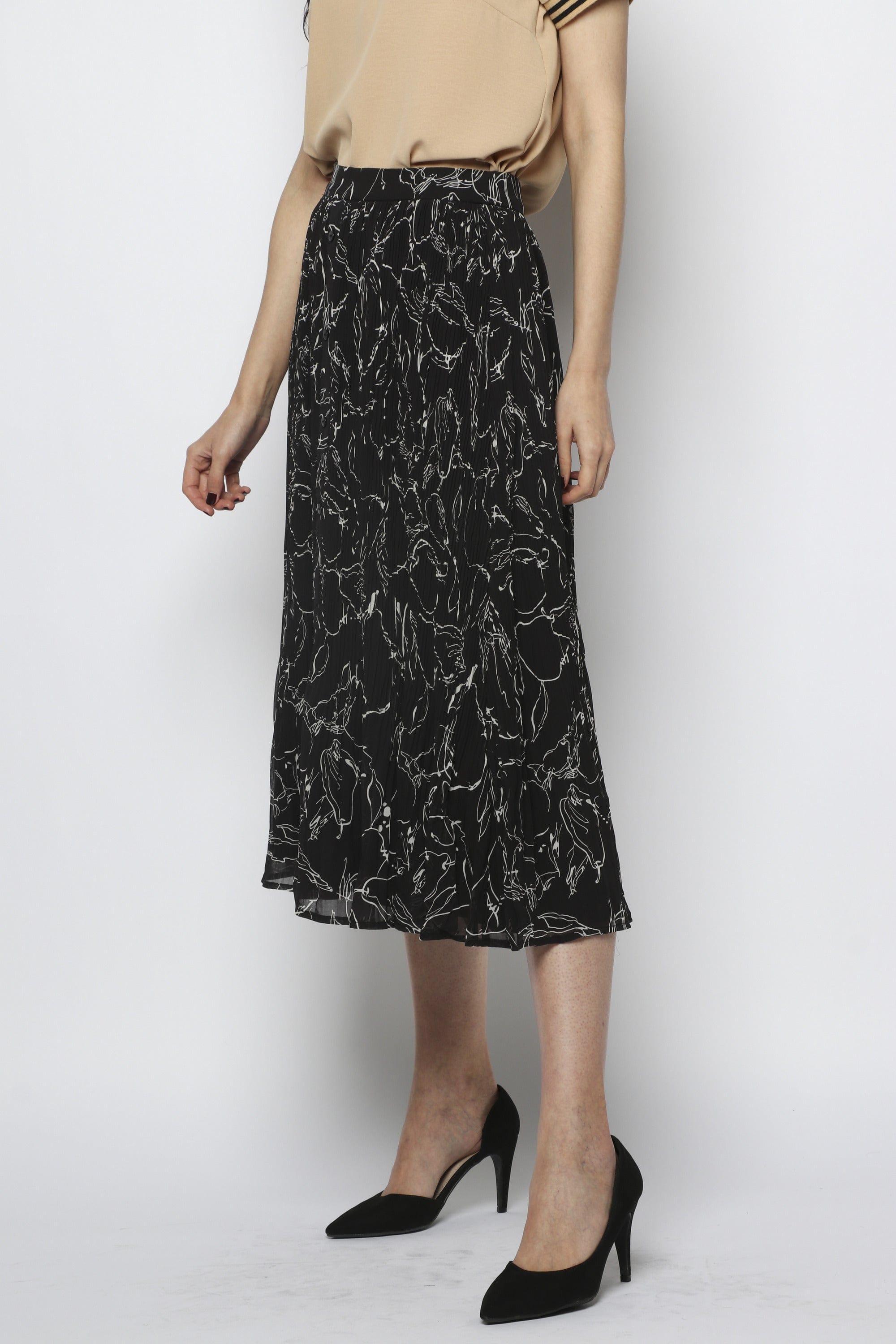 تنورة ميدي شيفون مزينة بطبعات مزودة بأزرار أمامية