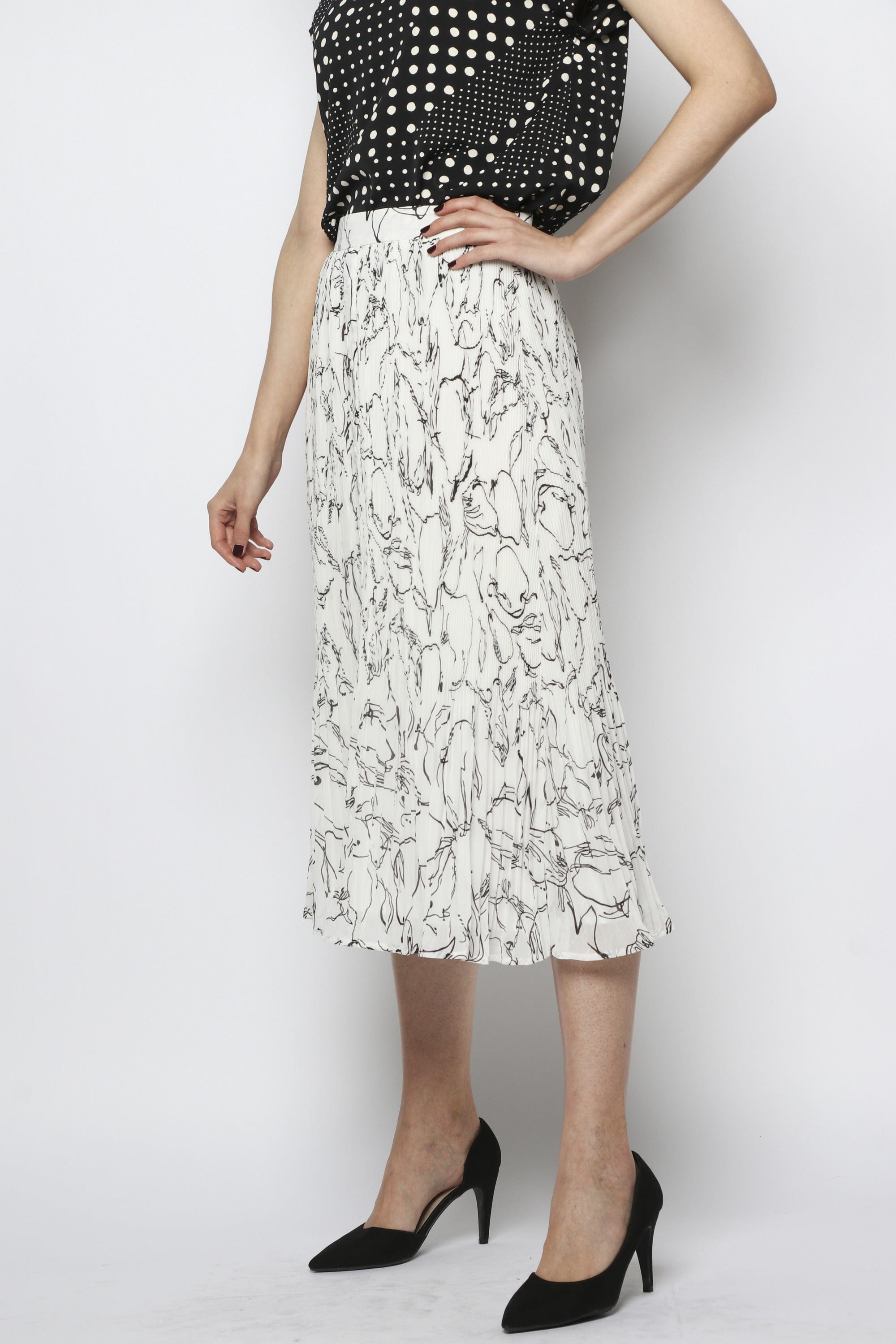 انغمسي في روعة الموضة مع تنورة ميدي شيفون المزينة بطبعات مزودة بأزرار أمامية من ماركة نتشي. تتميز هذه القطعة الفريدة بتصميم أنيق وعصري يجمع بين الرقة والجاذبية في آن واحد. تتوفر بألوان أسود وأوف وايت لتناسب ذوقك الفريد وتكمل إطلالتك بأناقة لا مثيل لها. قم بإضافة لمسة من الأناقة إلى مظهرك اليومي أو الخاص بالمناسبات بارتداء هذه التنورة الرائعة. احصلي عليها الآن واستعدي لاستقبال الإطراءات والثناء على أناقتك وذوقك الرفيع. قومي بطلبها الآن من فاشن السعودية واستمتعي بالأناقة في كل وقت. رقم المنتج: wz676-21q303