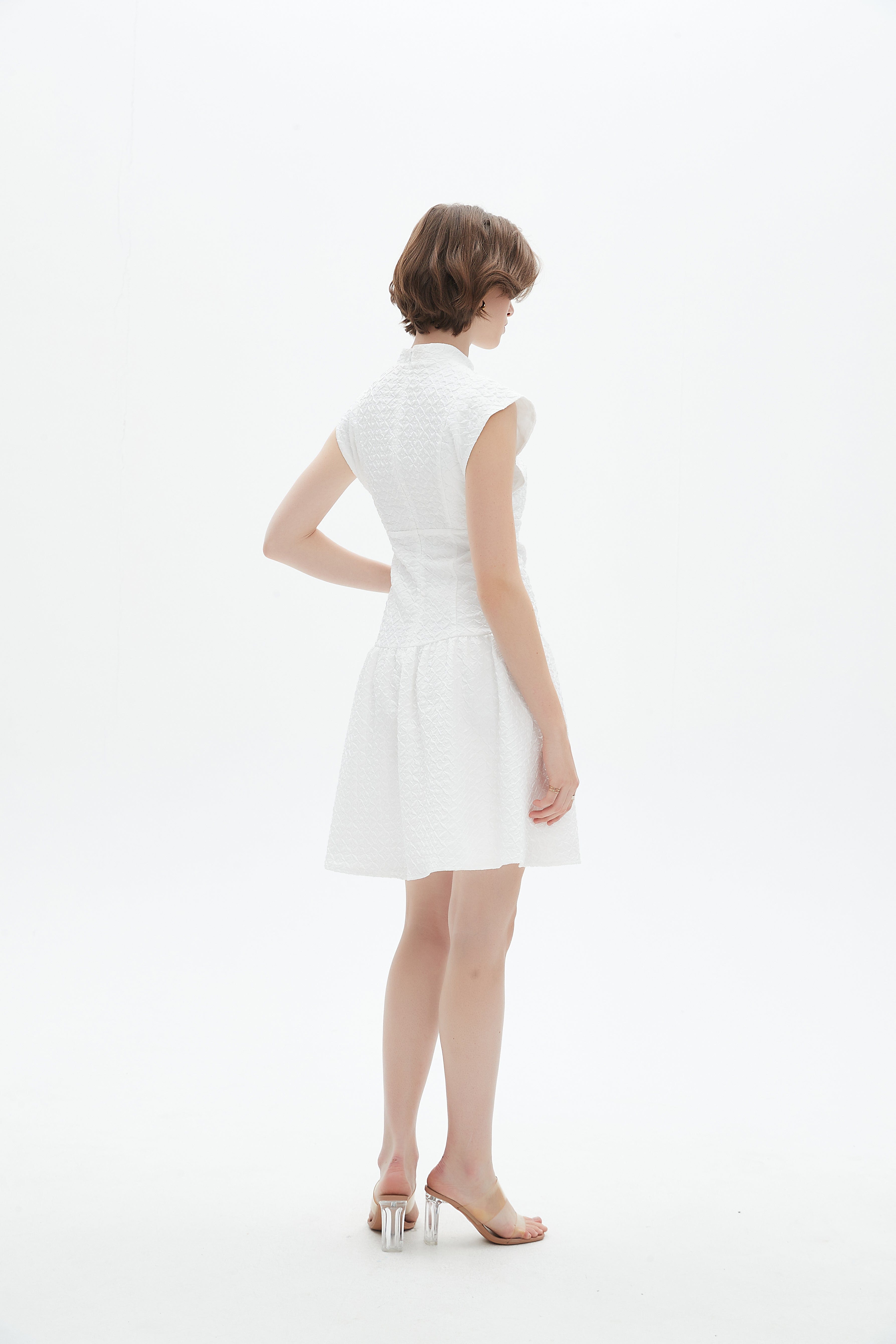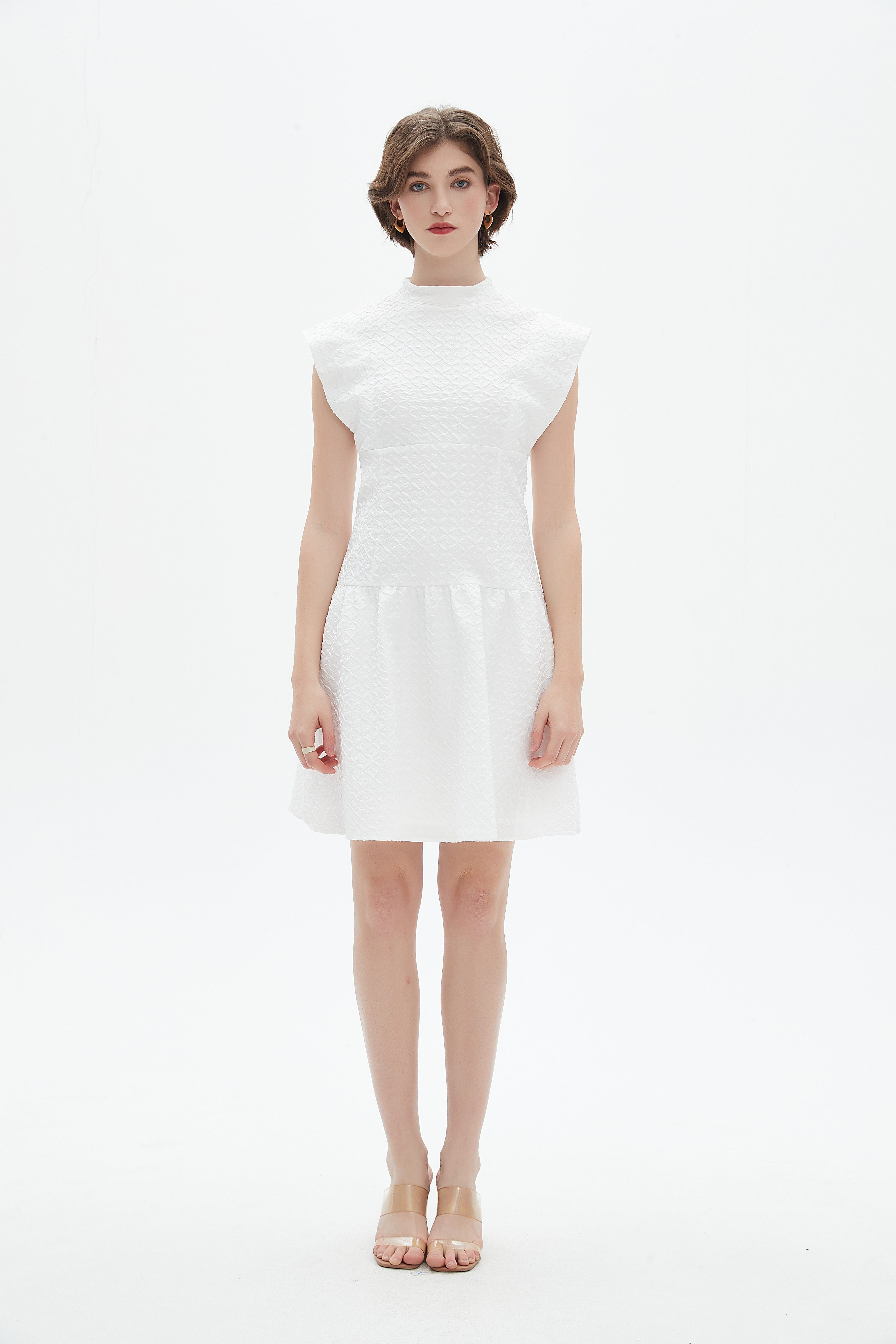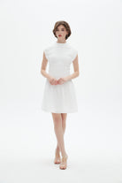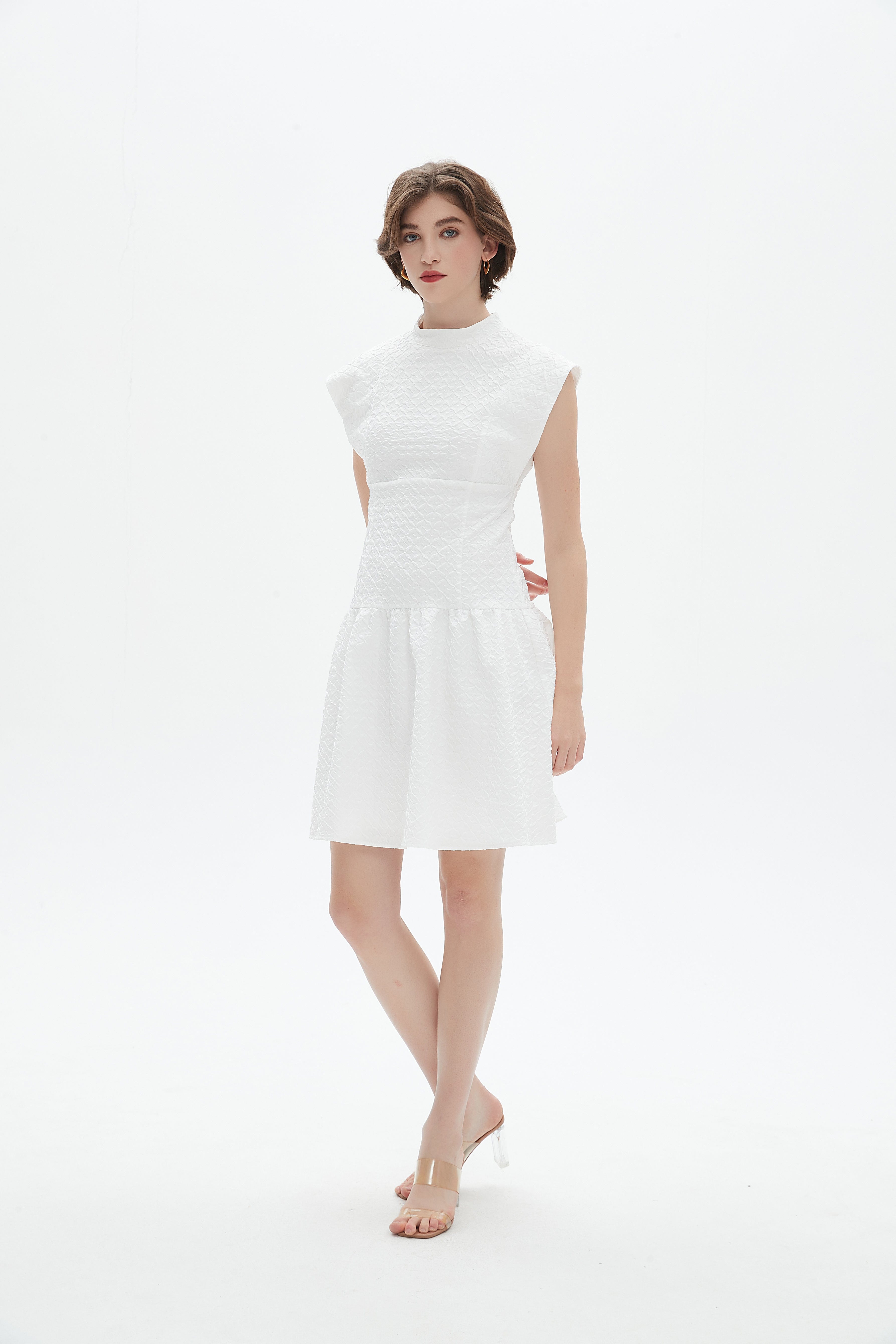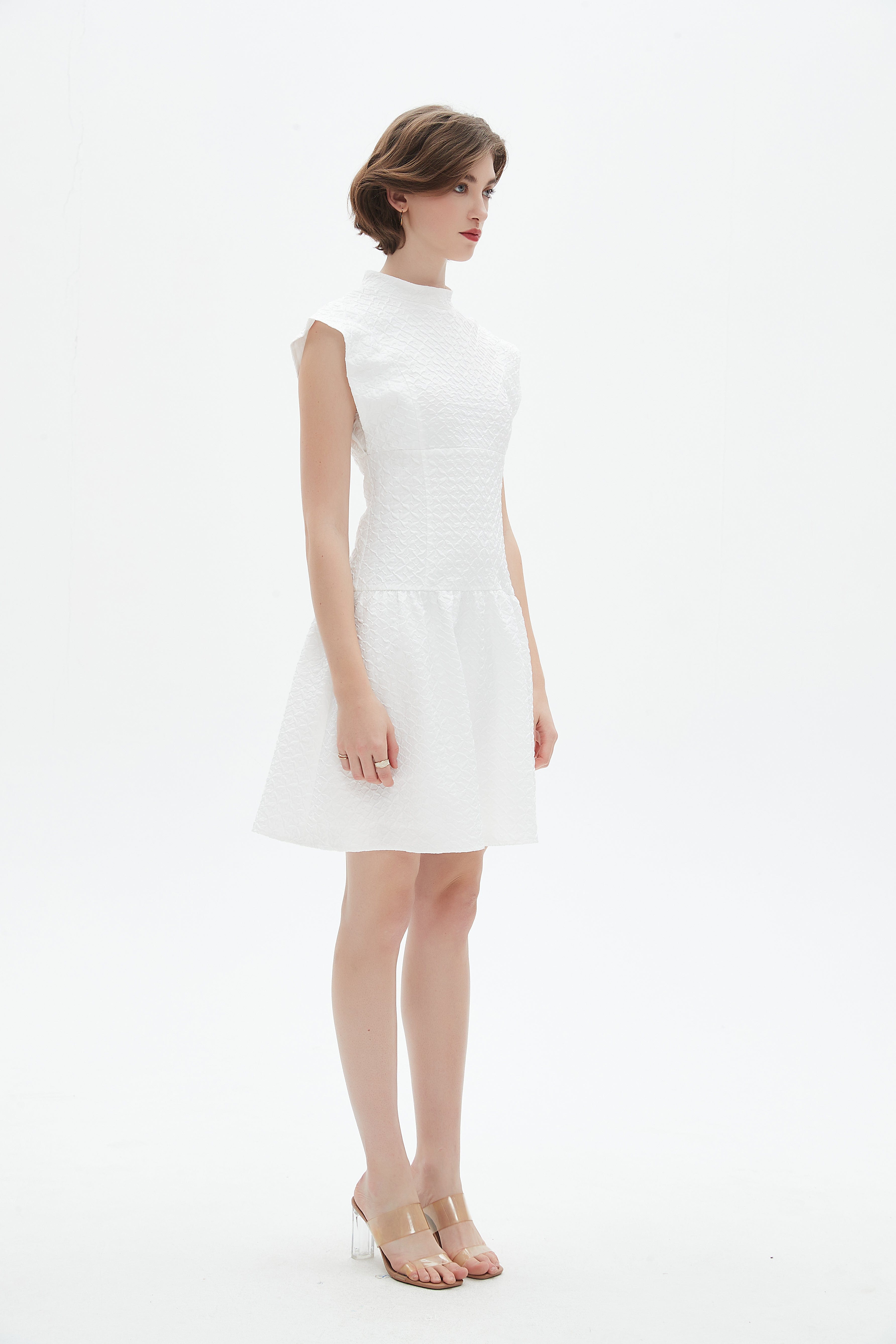 فستان نسائي مضلع قصير برقبة عالية سادة قصير