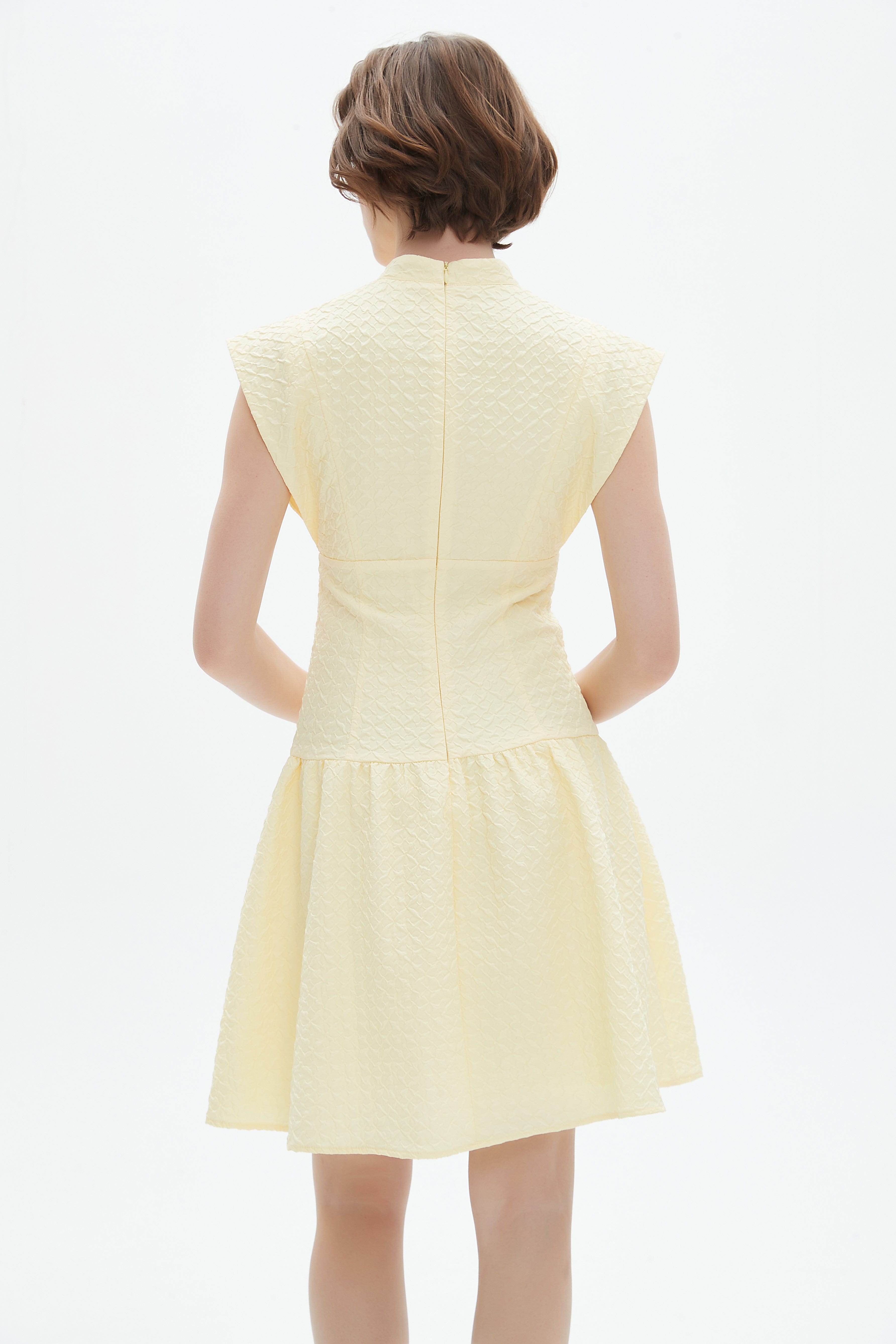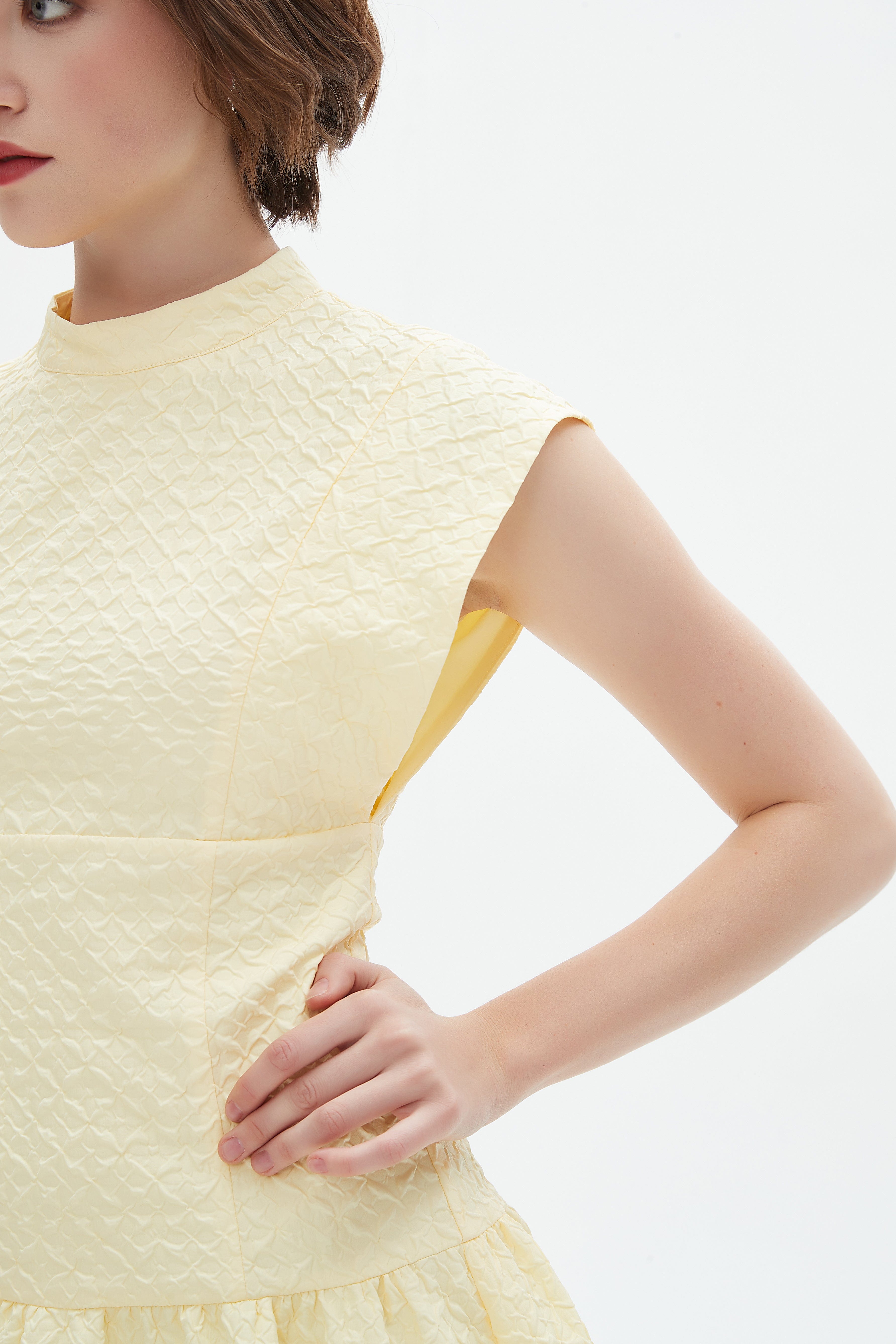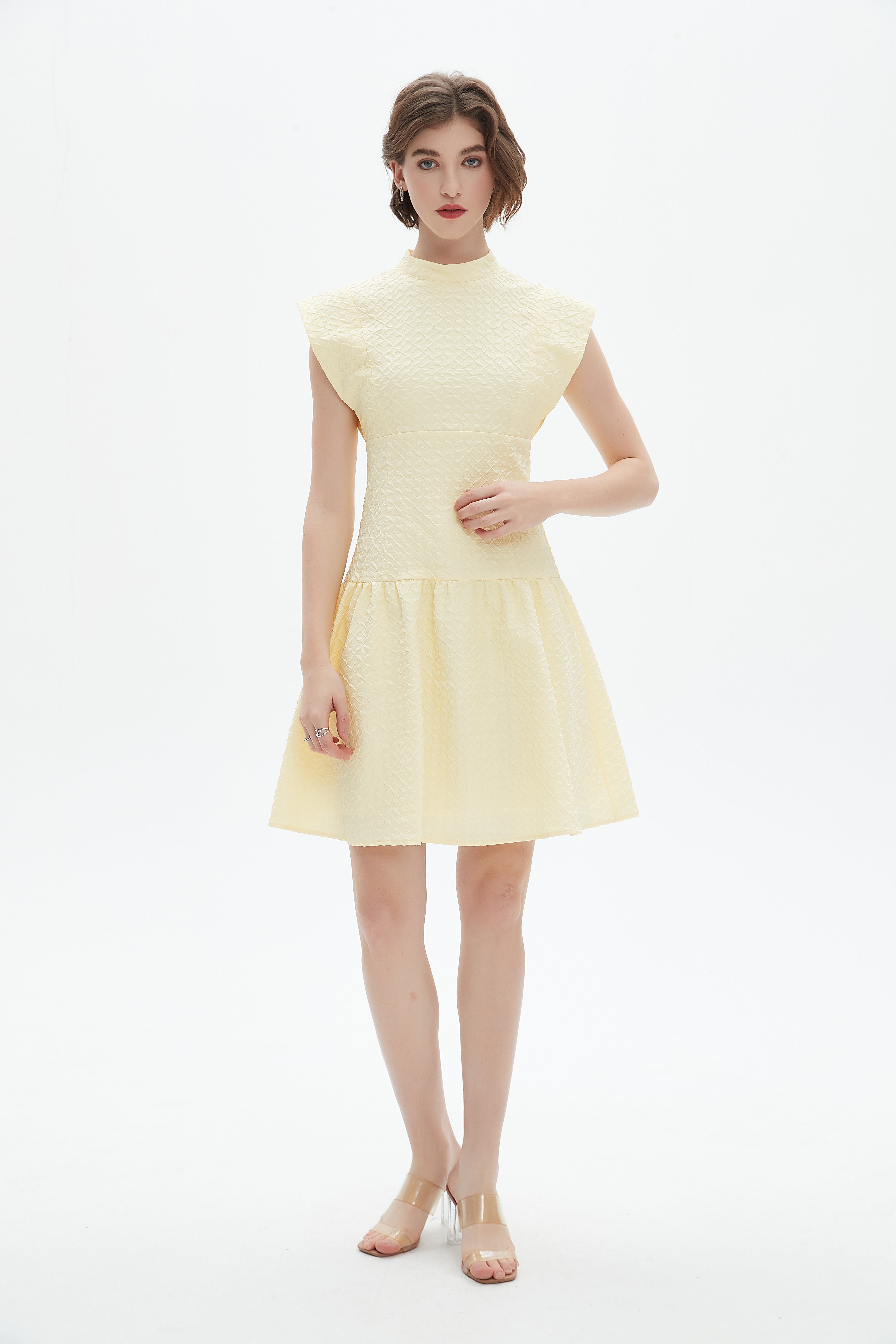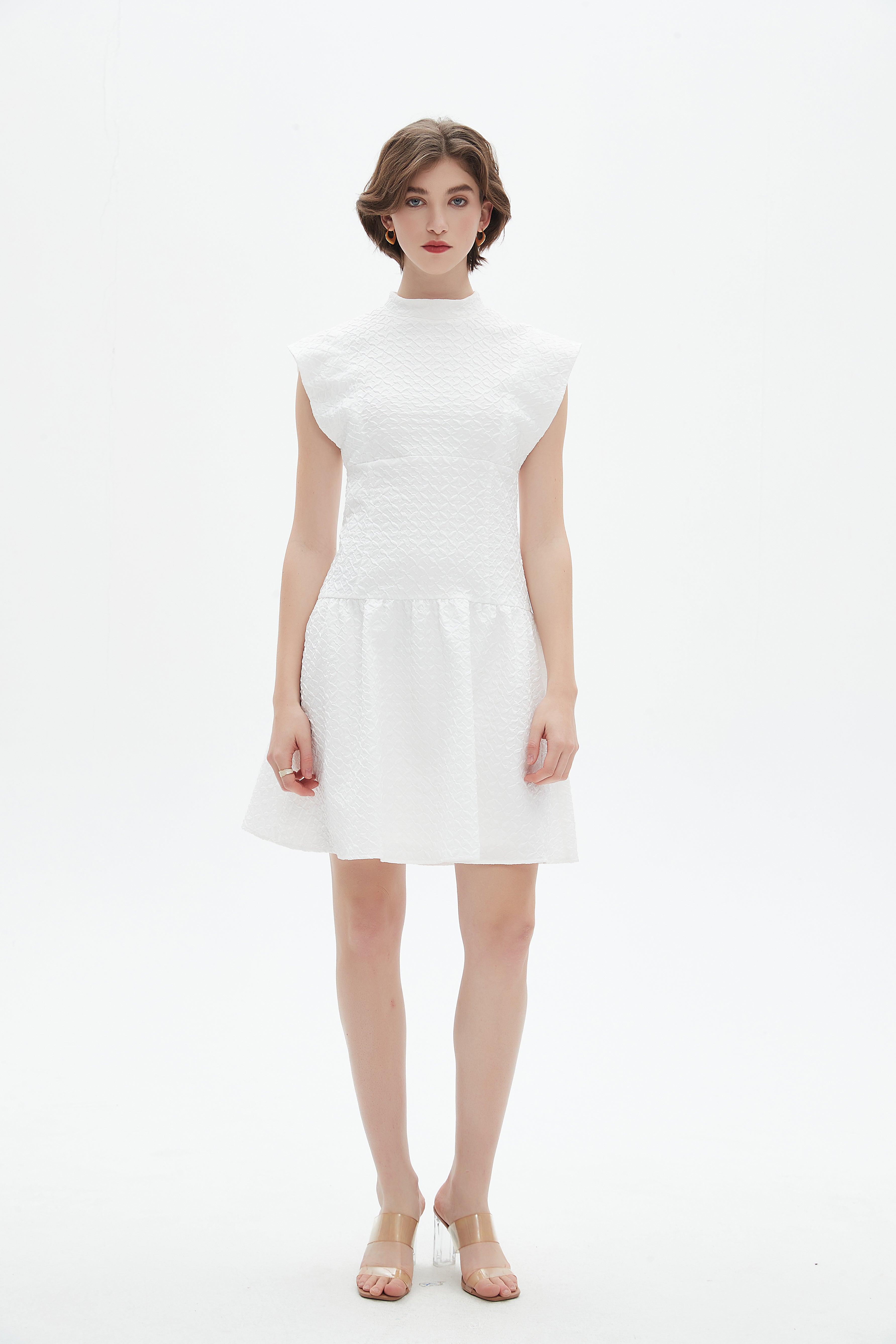 فستان نسائي مضلع قصير برقبة عالية سادة قصير