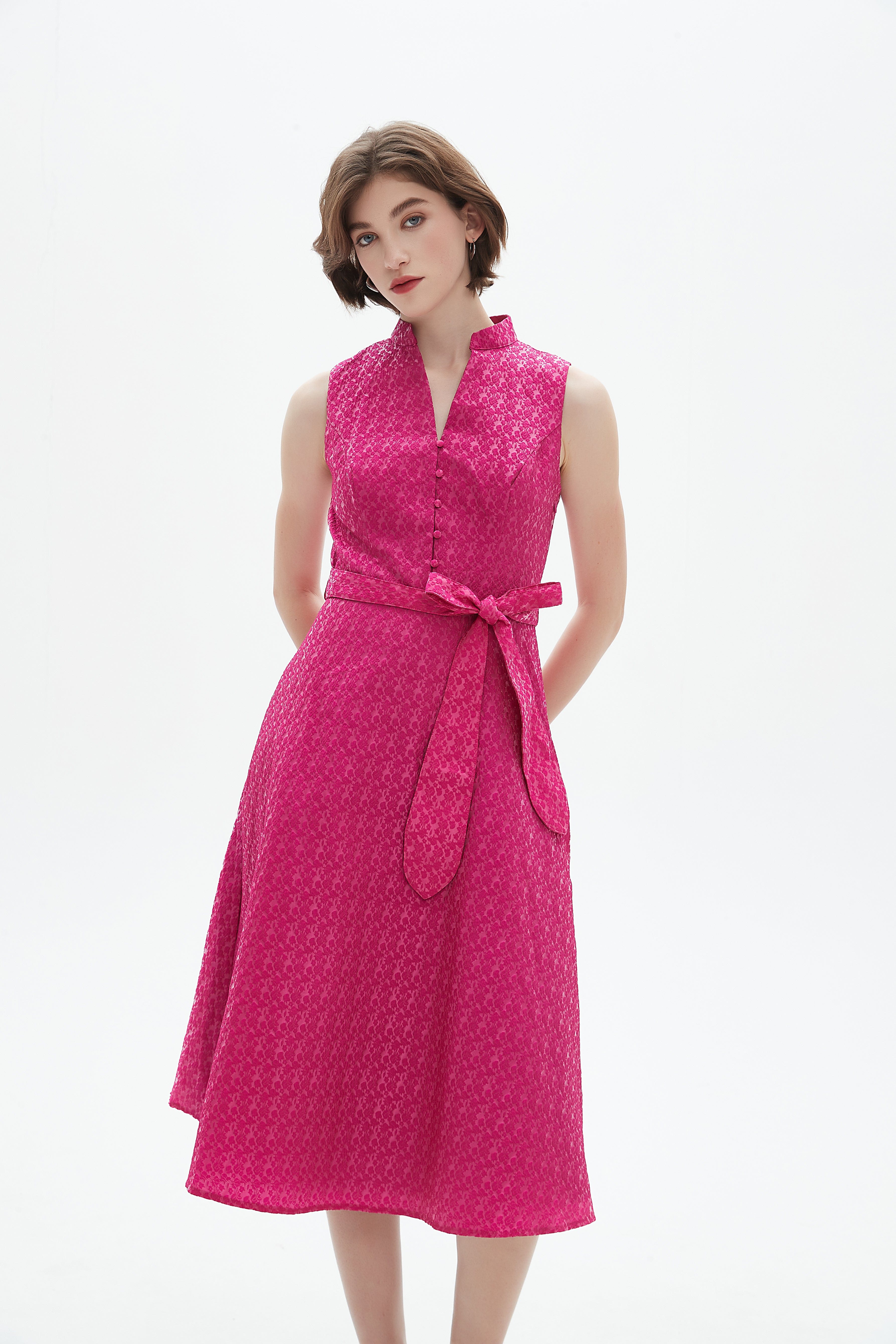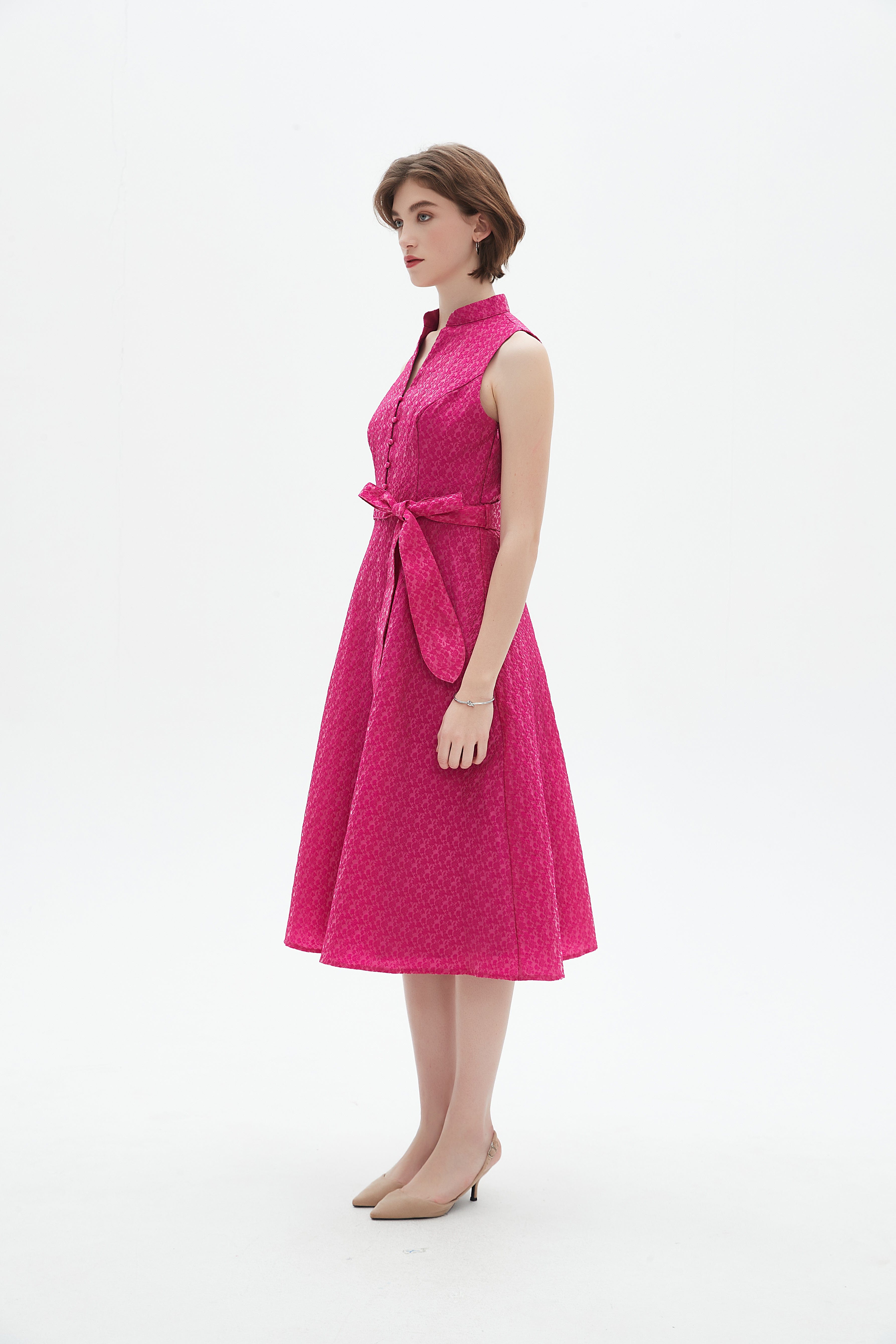 انغمسي في روعة الموضة مع فستان ميدي بدون أكمام سادة وفتحة رقبة V يتناسب مع ذوقك الشخصي وتكوني محط الأنظار في كل مرة