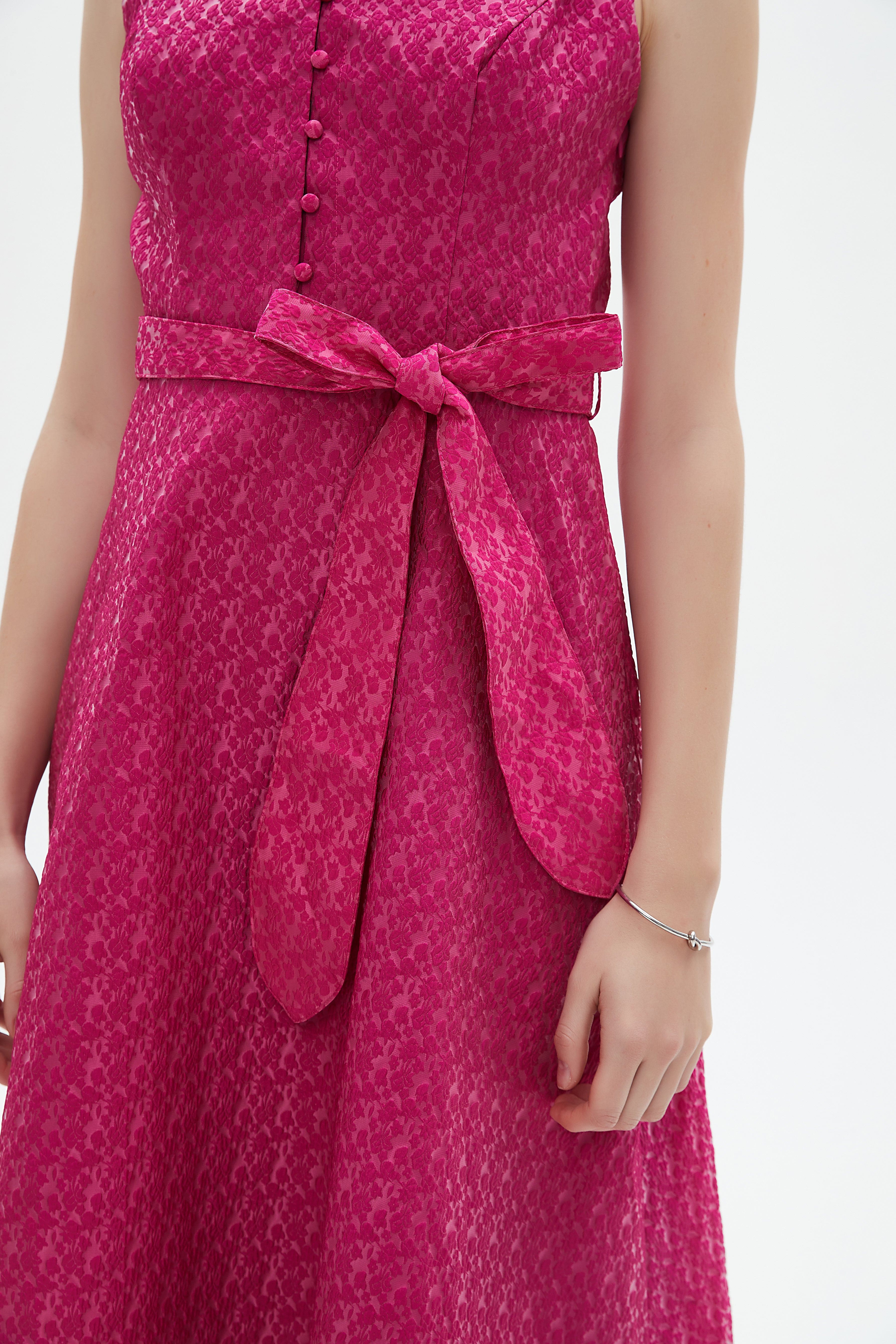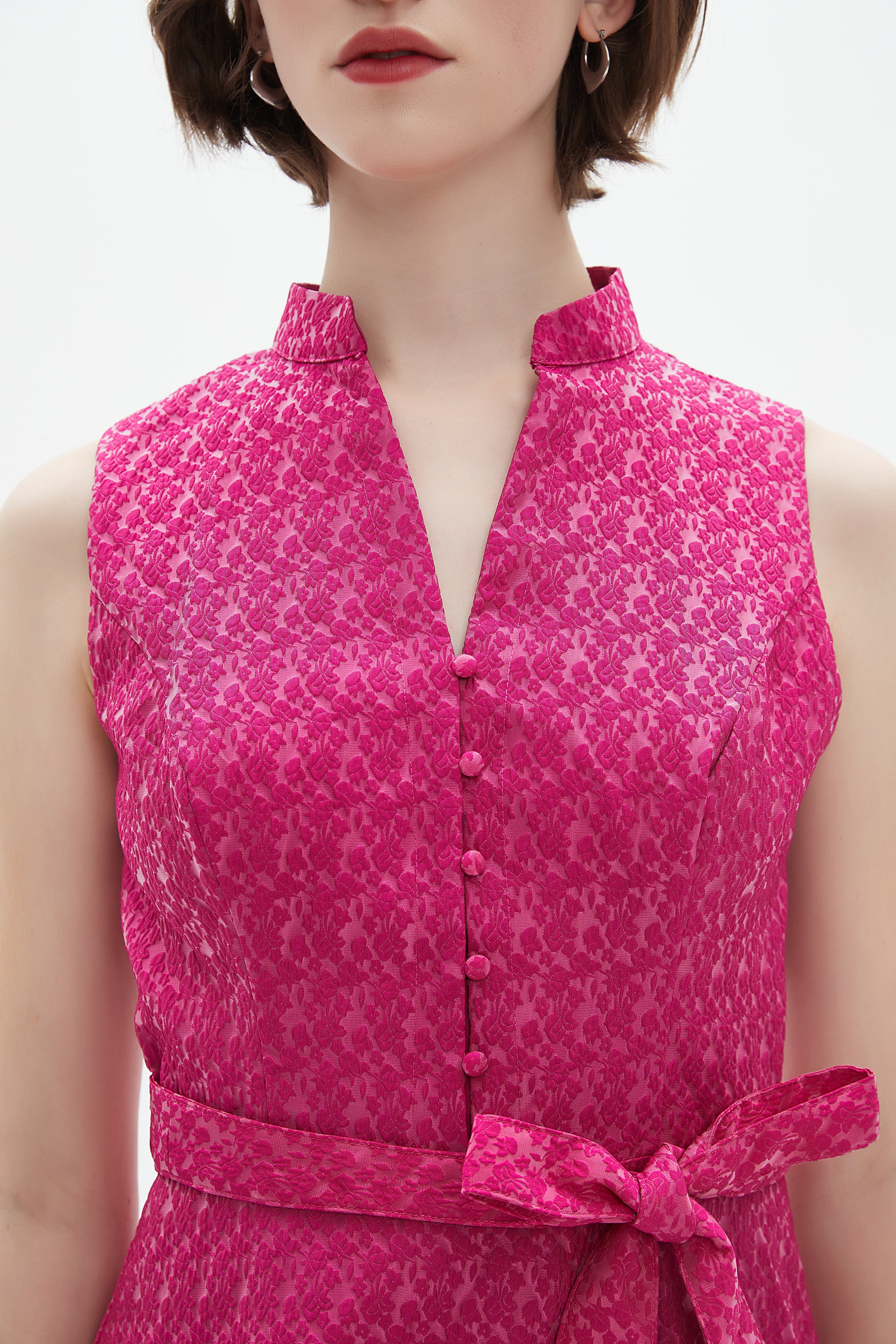 فستان ميدي بدون أكمام سادة وفتحة رقبة V
