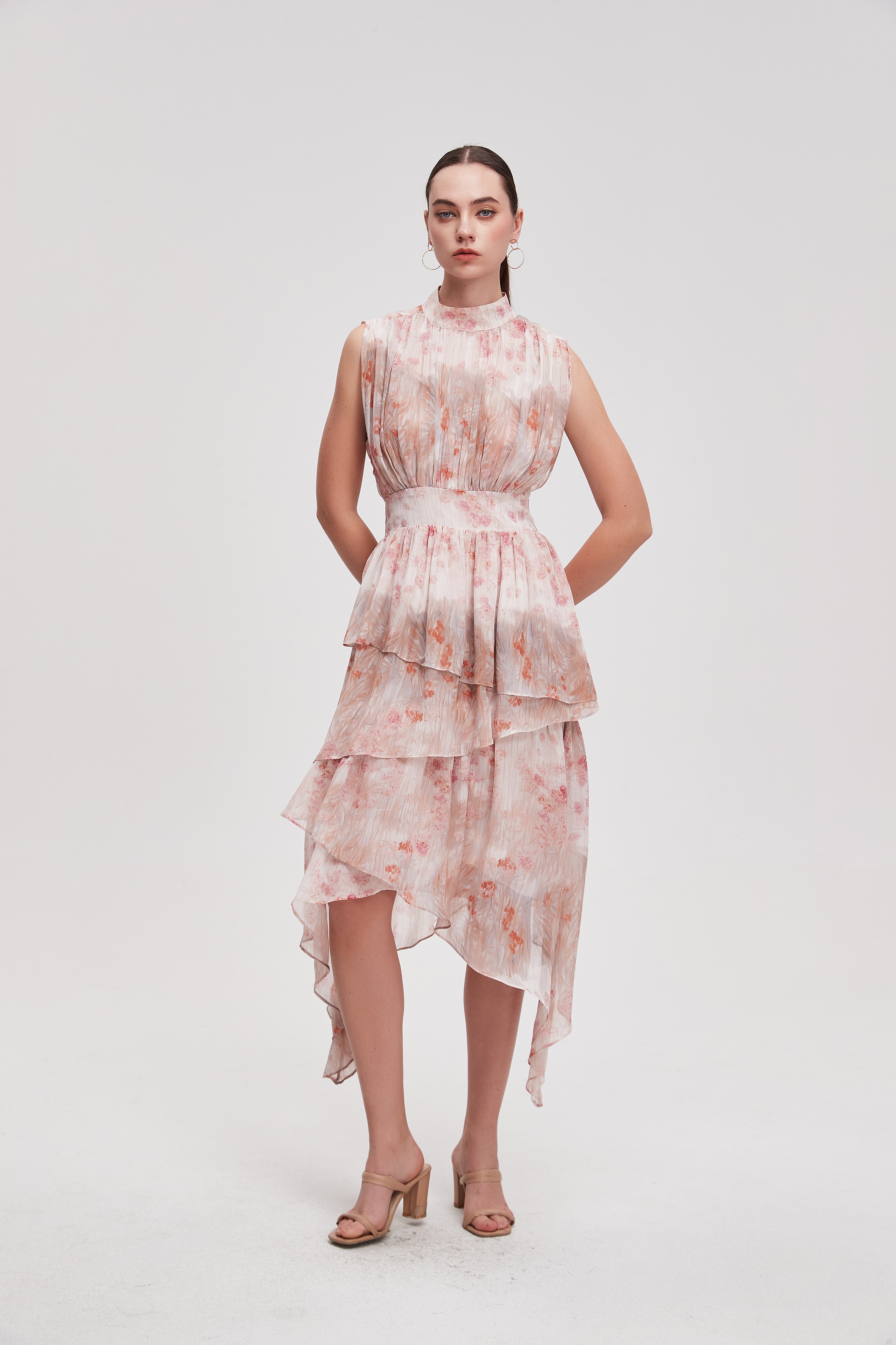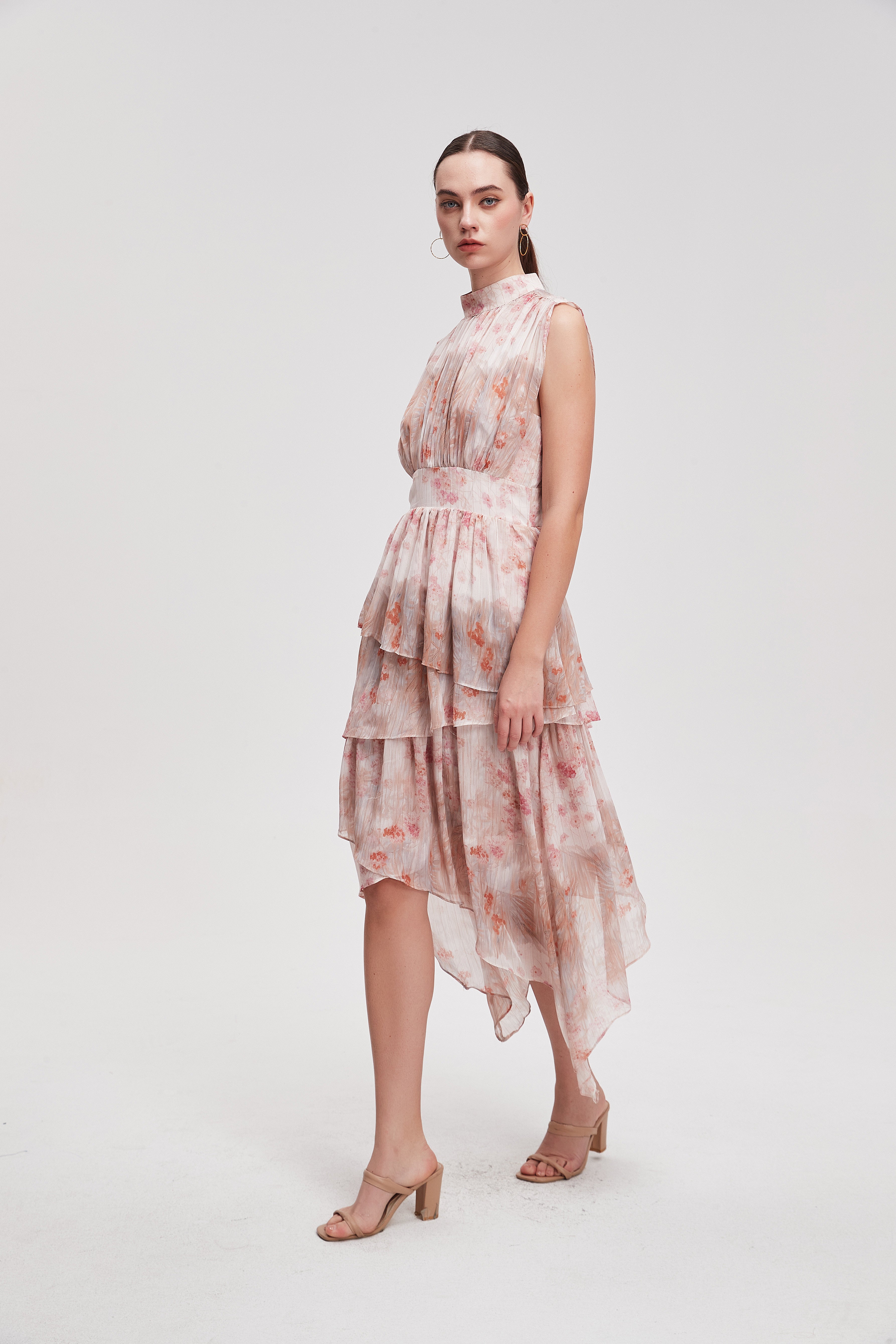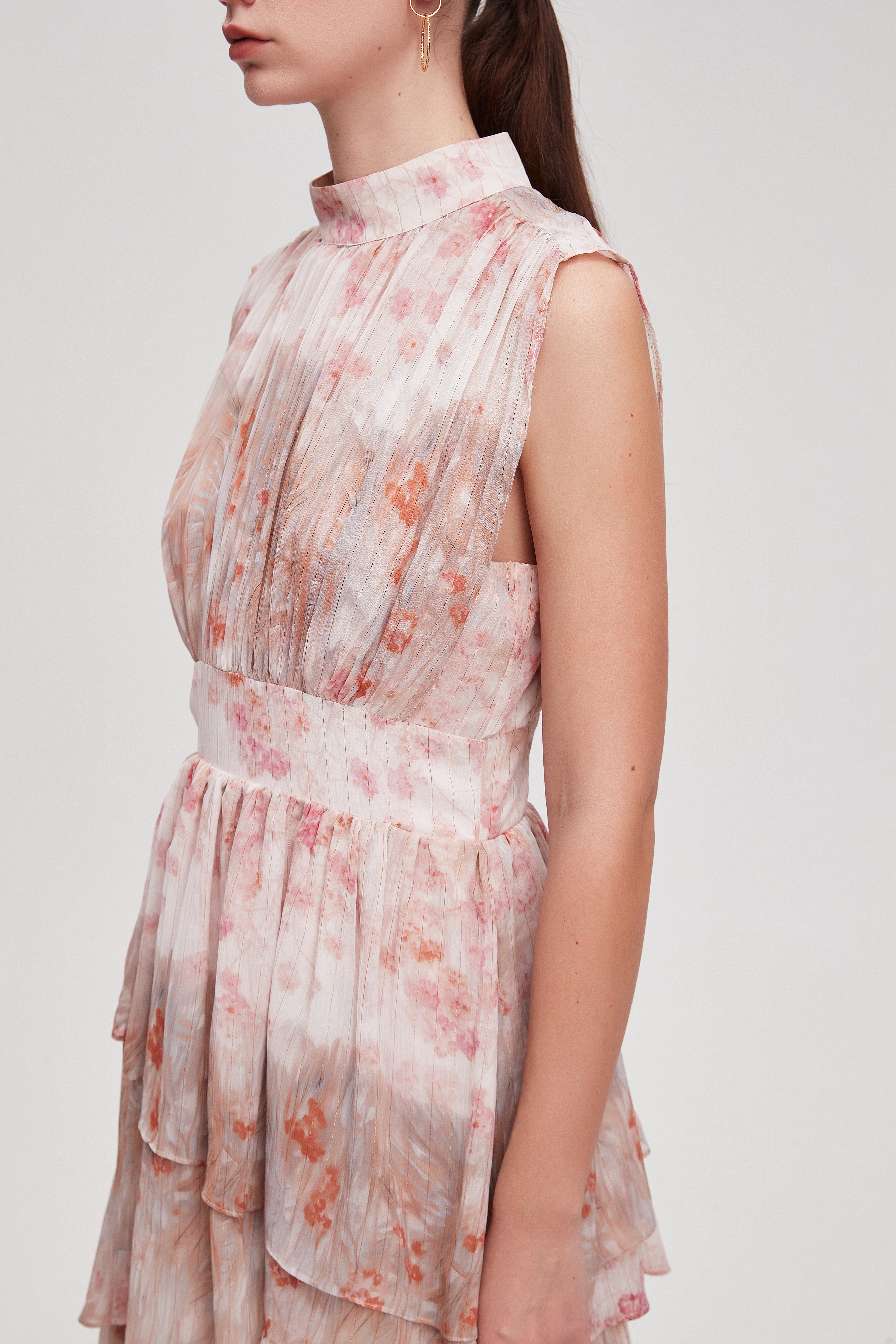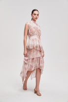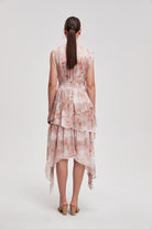 فستان ميدي منقوش مخصر بدون أكمام