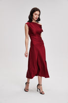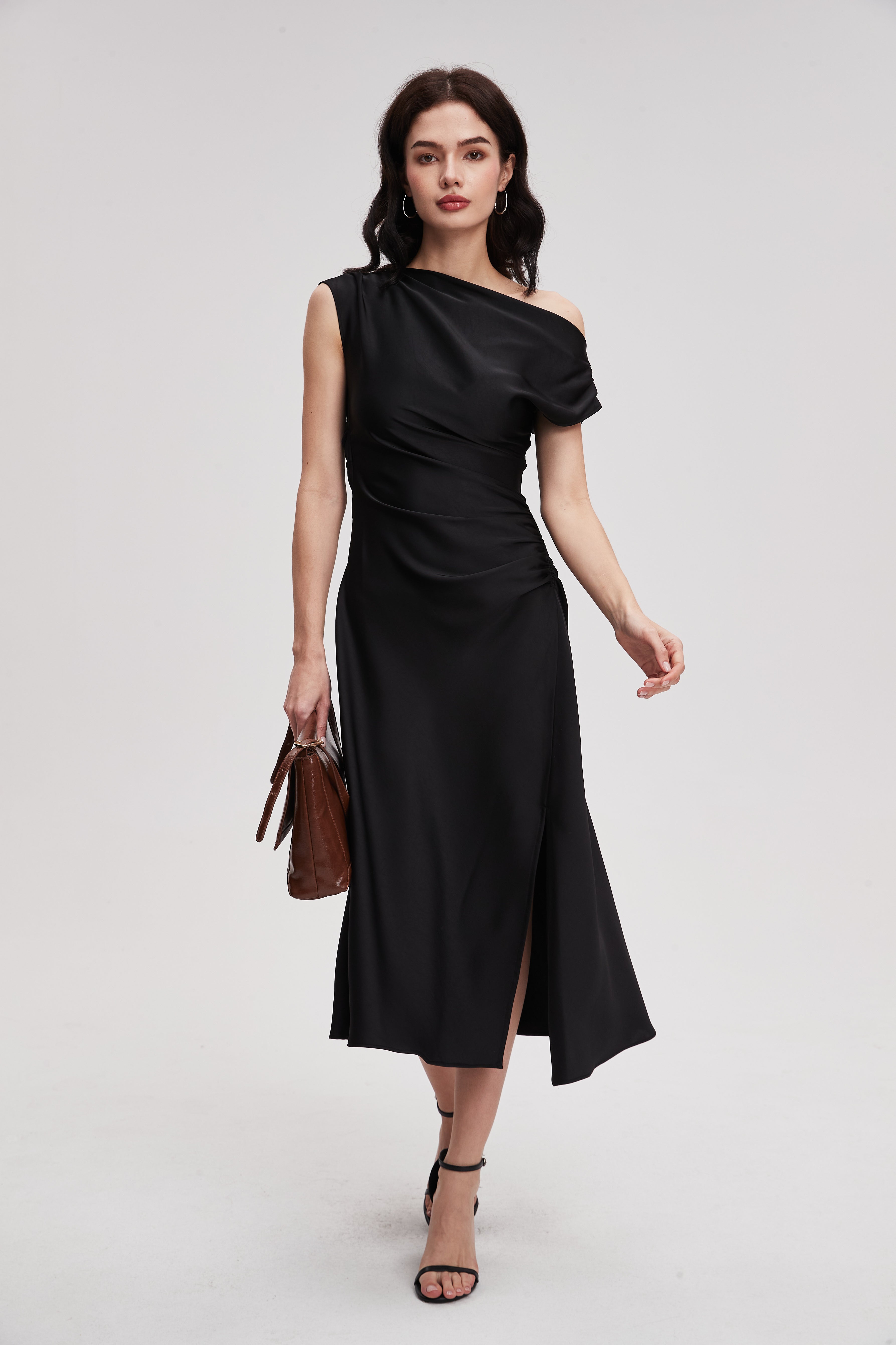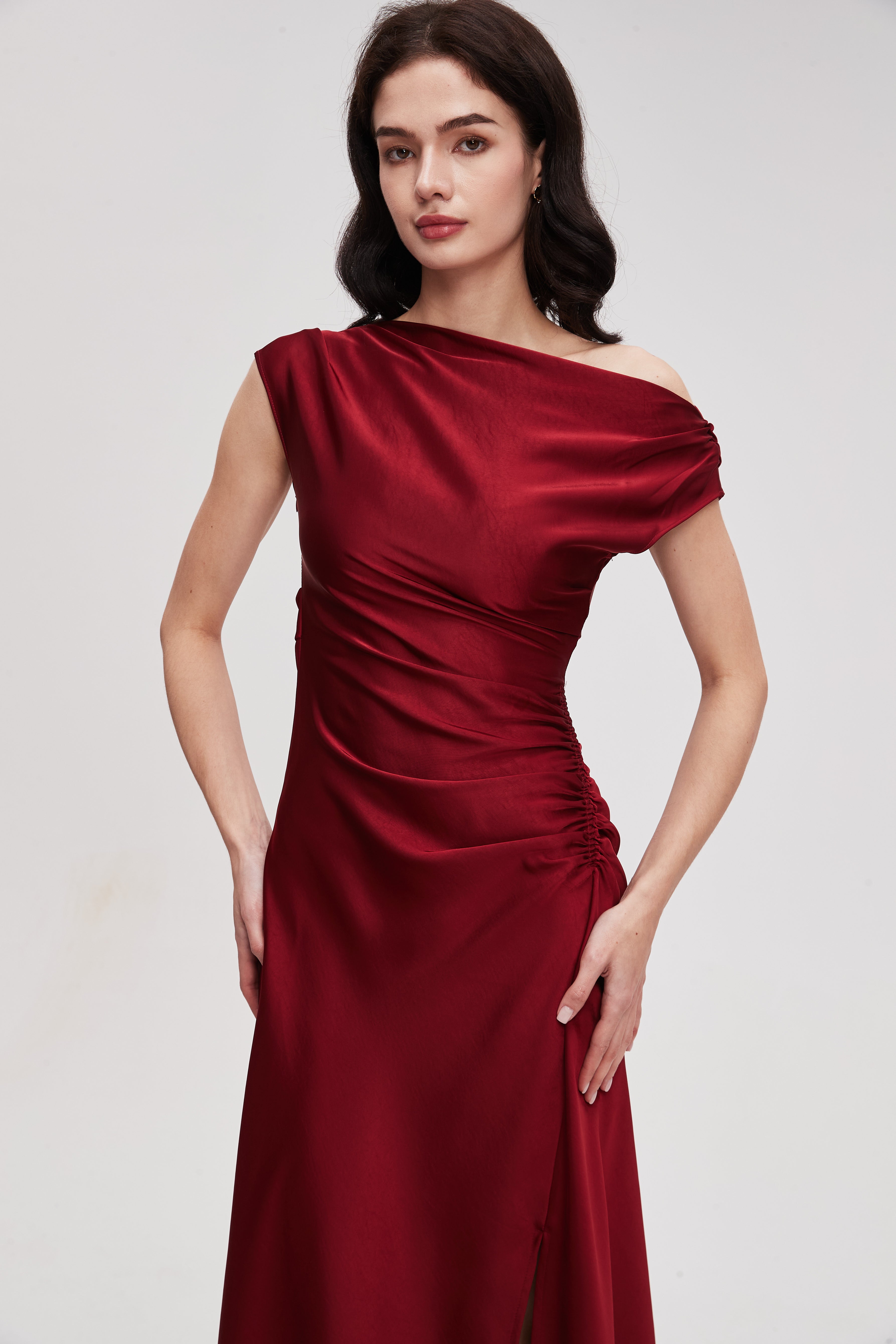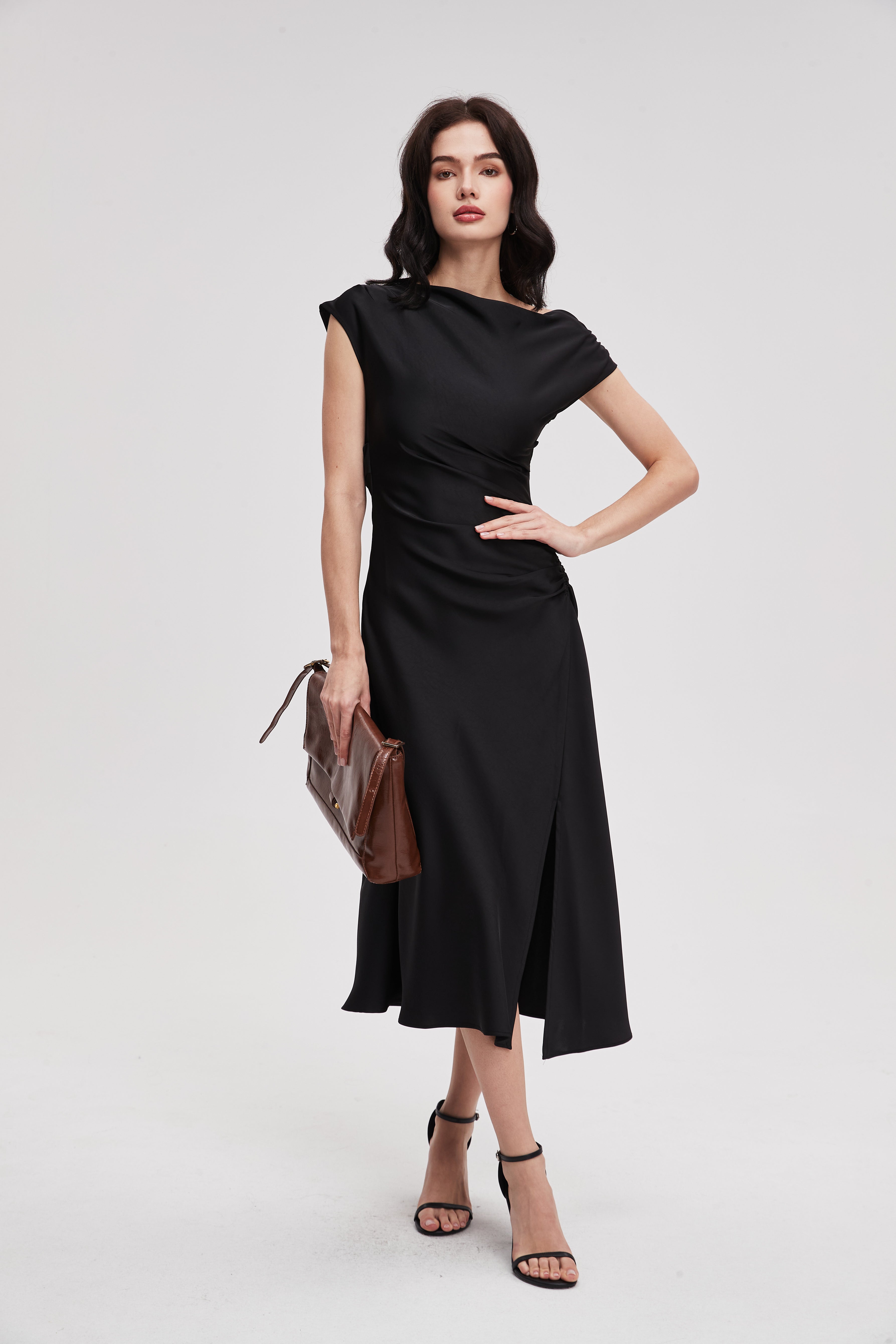 فستان ميدي سادة بأكمام قصيرة ضيق