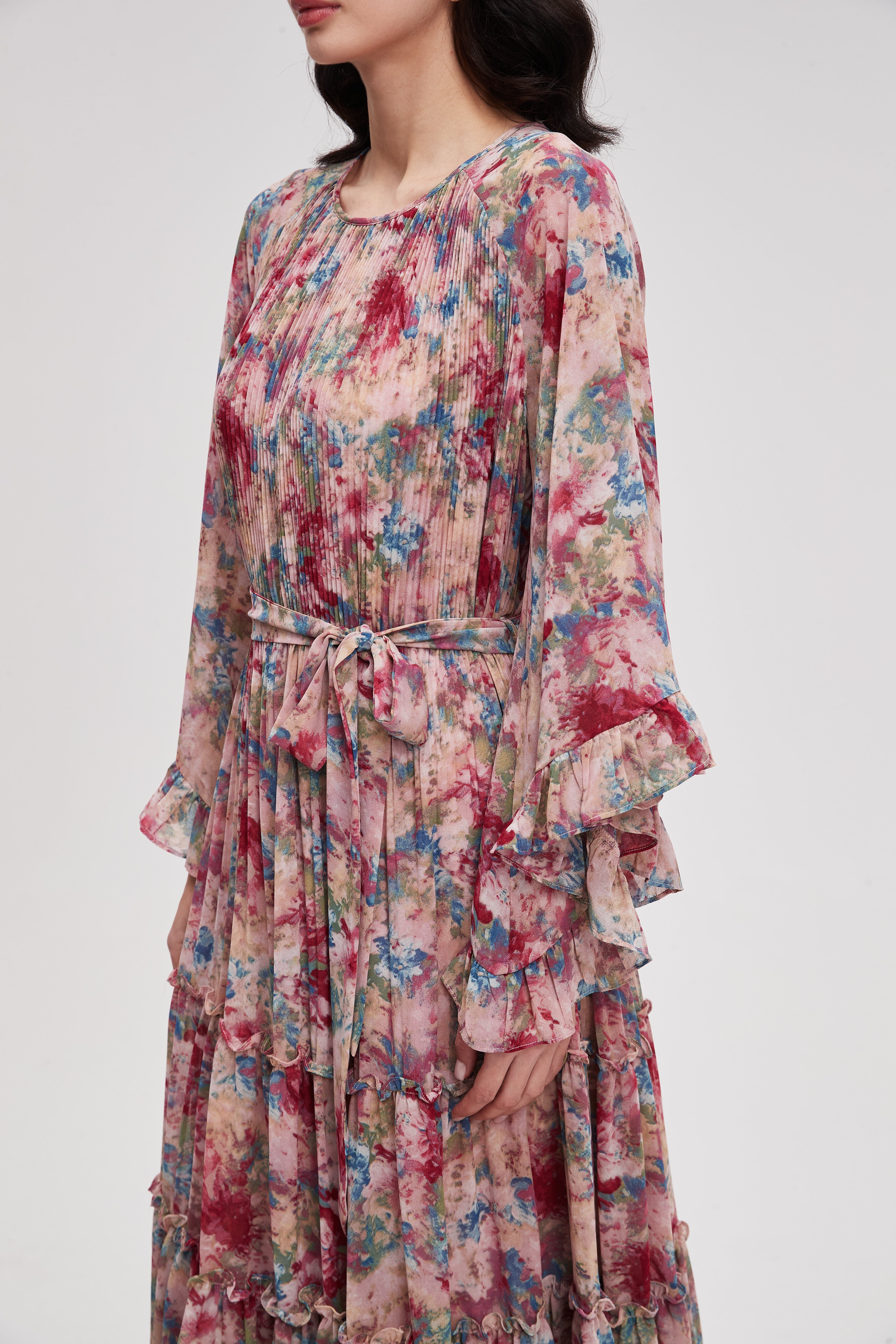 تم اختيار نسيج يجمع بين النعومة والمتانة ليوفر لكِ تجربة ارتداء مريحة للغاية. تنسدل الخامة بخفة وانسيابية على الجسم وتسمح للبشرة بالتنفس، مما يجعلها خياراً ممتازاً للاستخدام المتكرر في مختلف الأجواء. تتميز بمقاومتها للتجعد وسهولة العناية بها، لتبقى محتفظة برونقها وشكلها الأصلي حتى بعد الغسيل. استثمار في قطعة تدوم سنوات وتبقى جميلة كاليوم الأول.