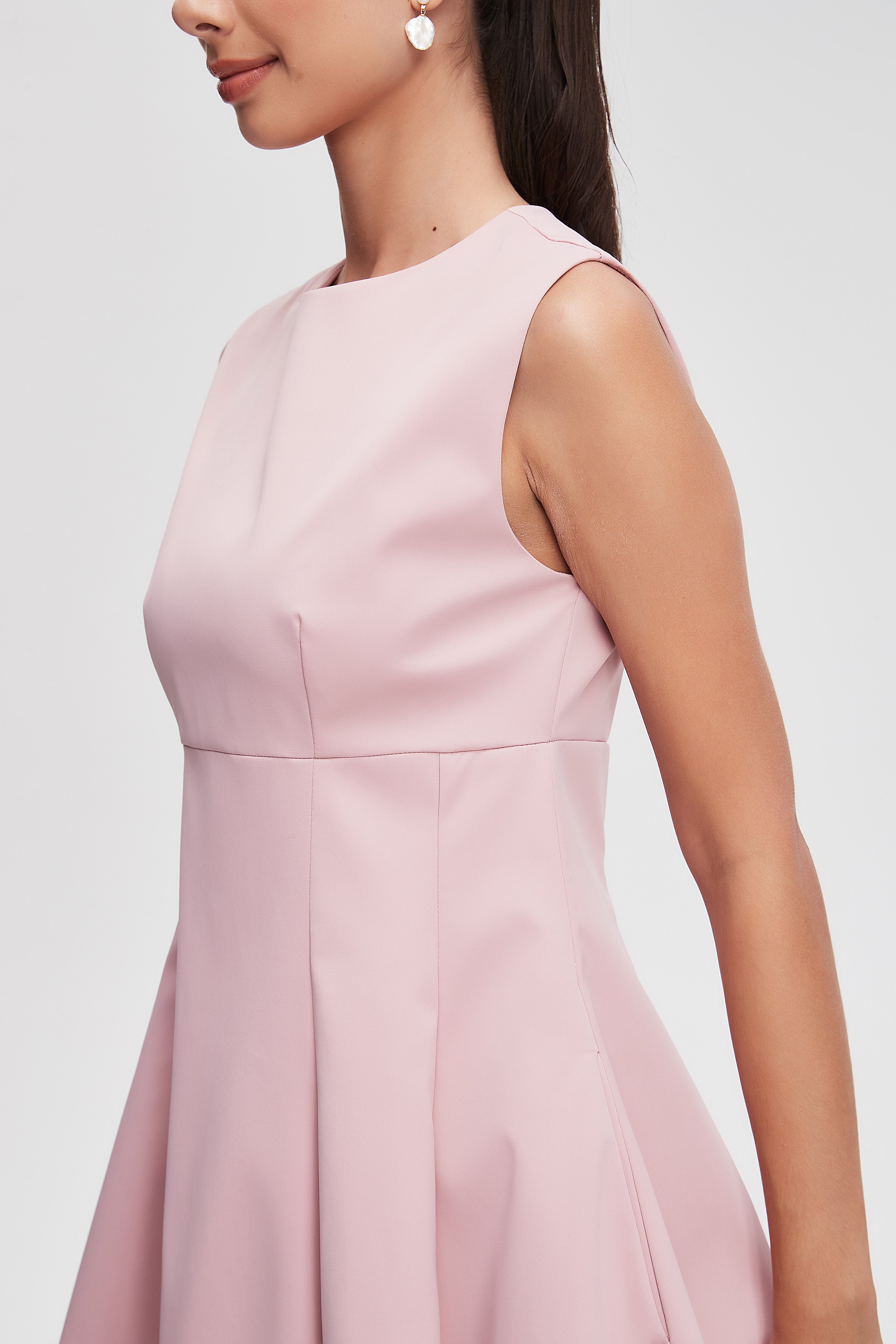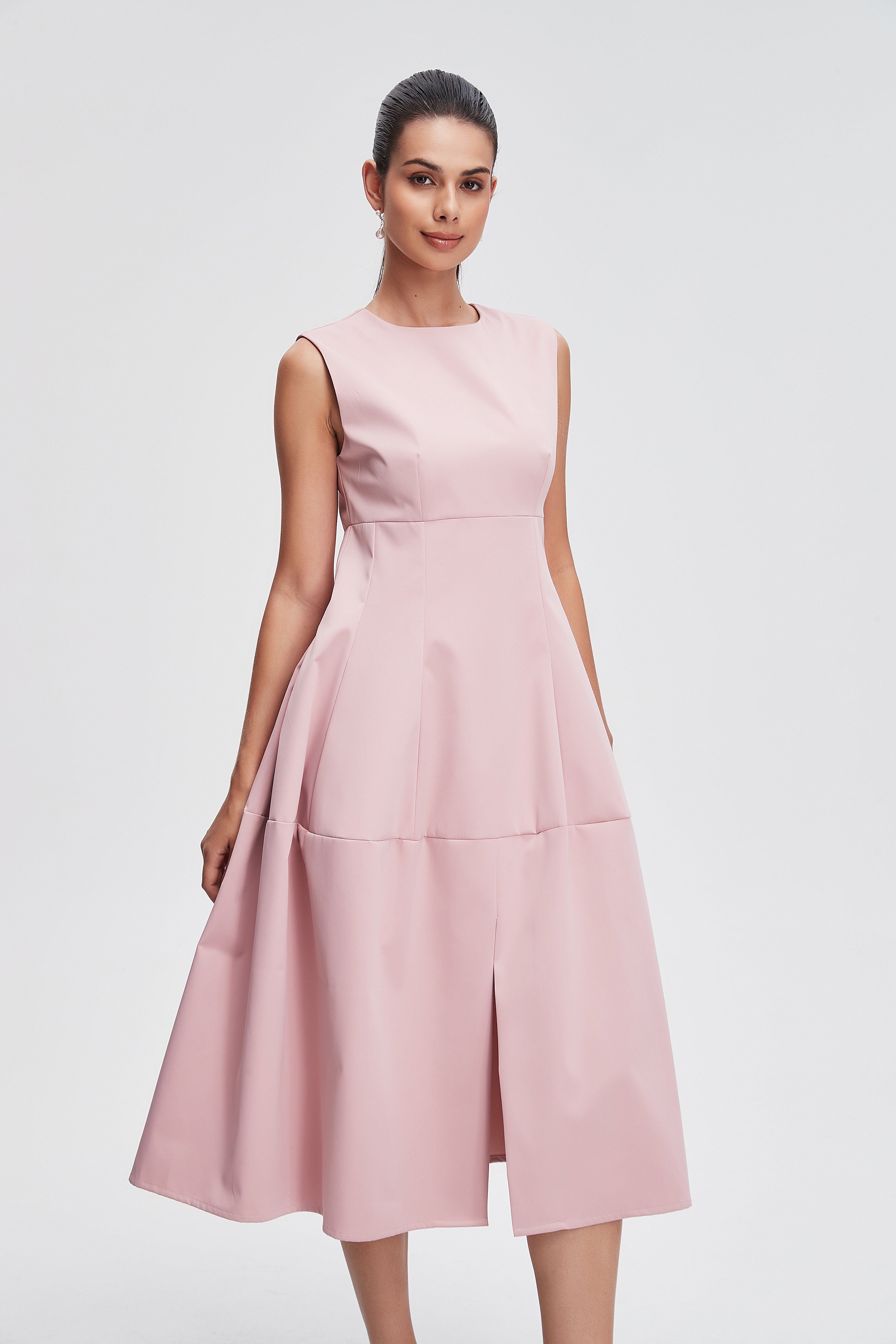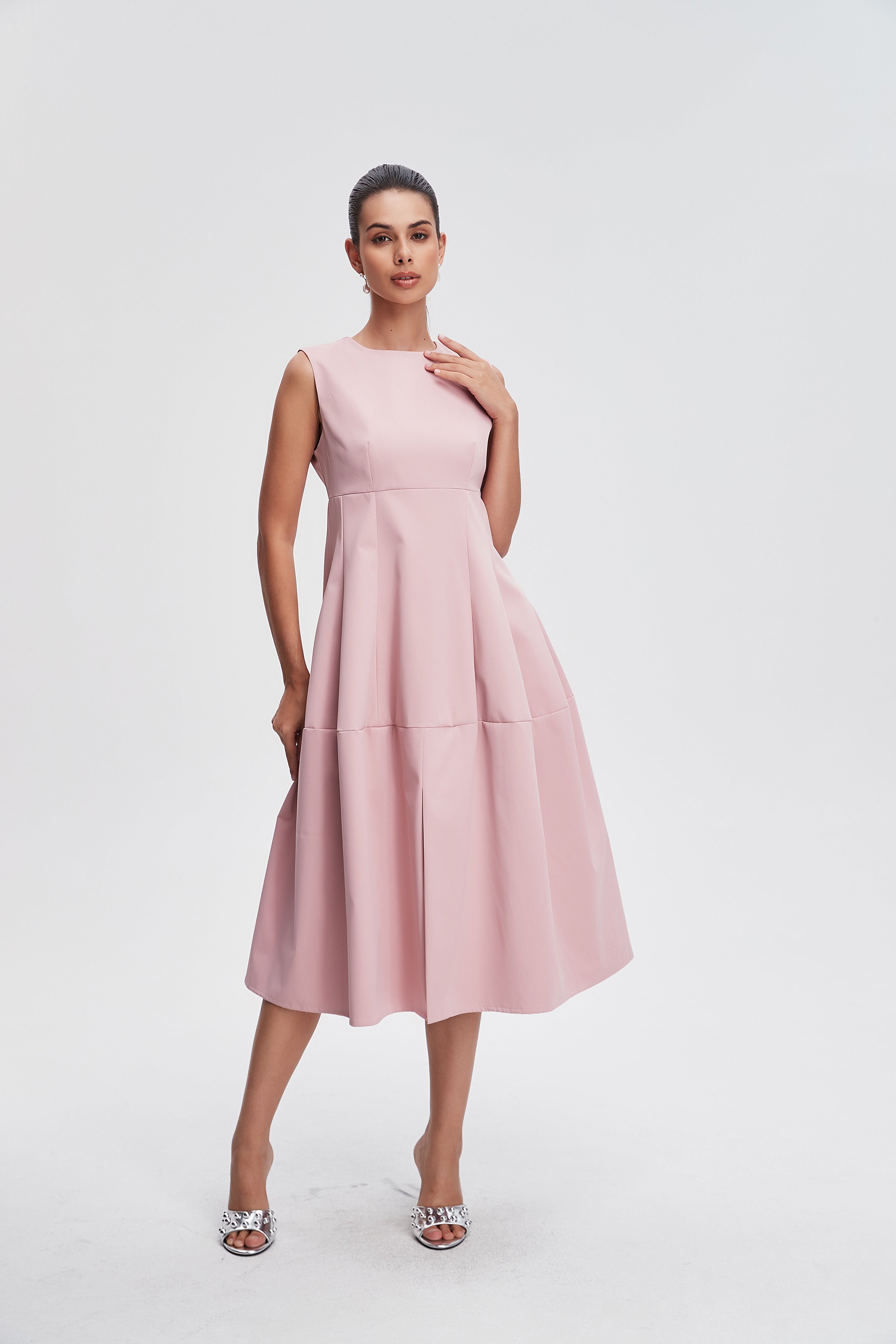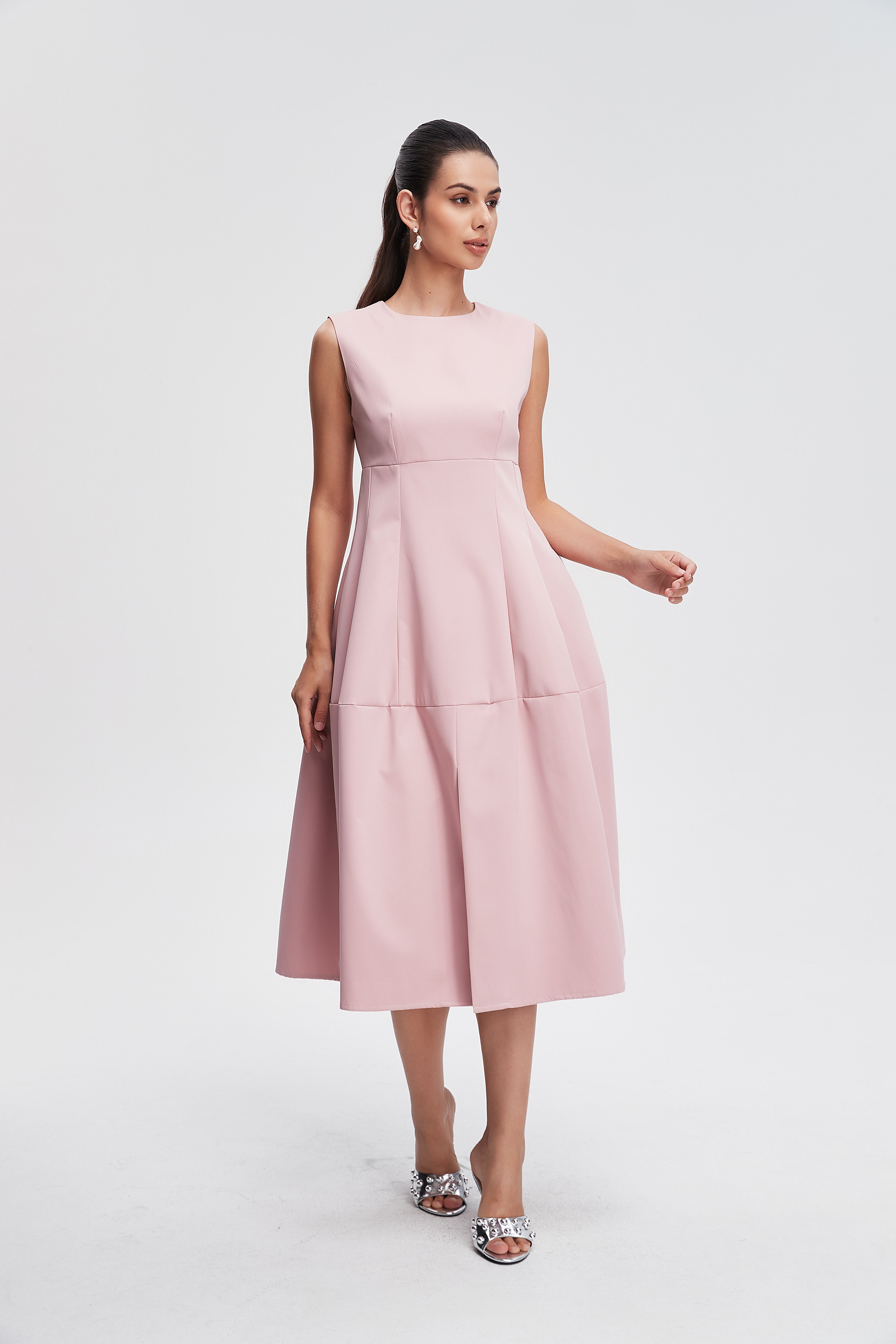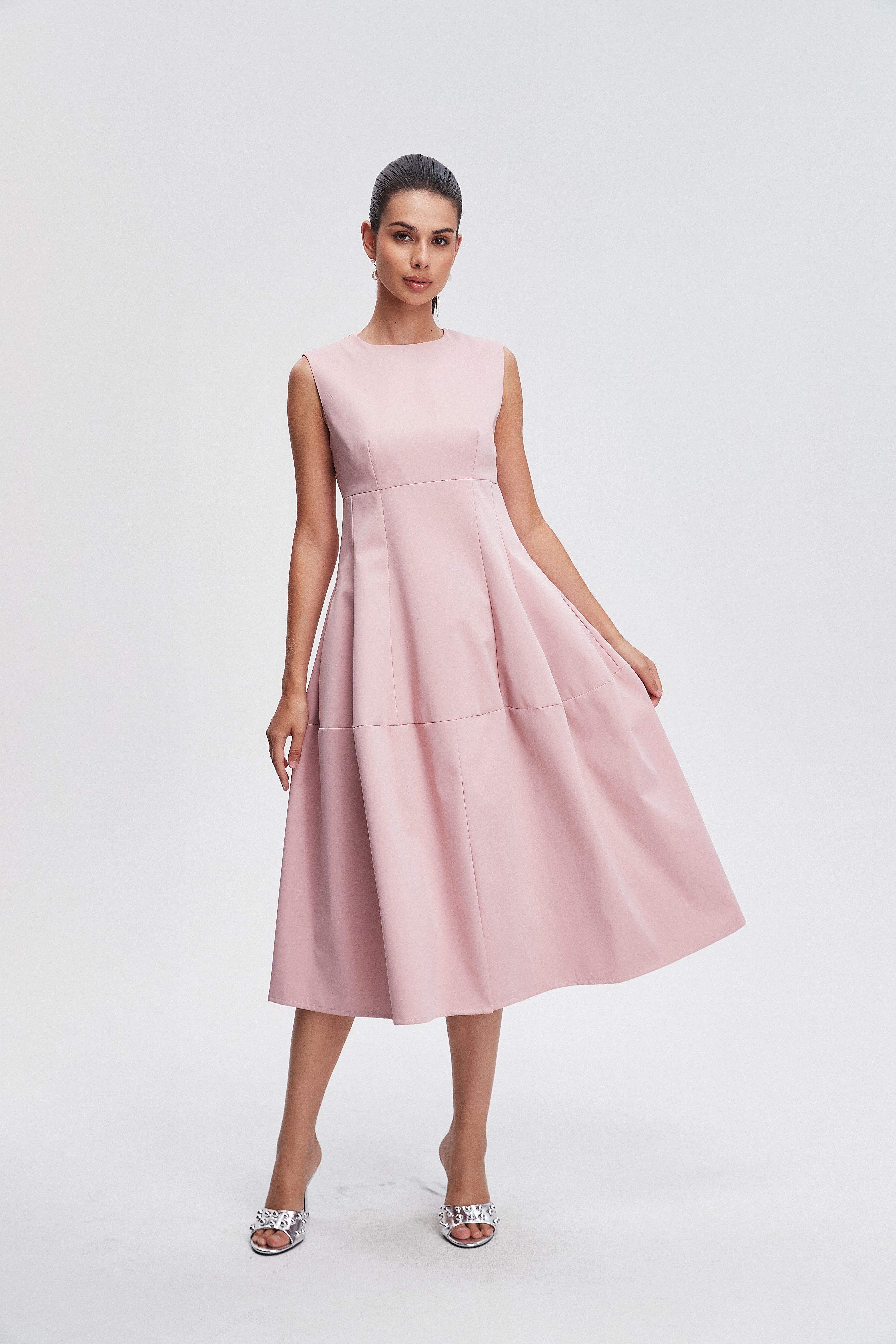فستان ميدي بدون كم سادة منفوش