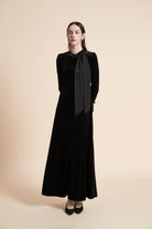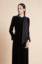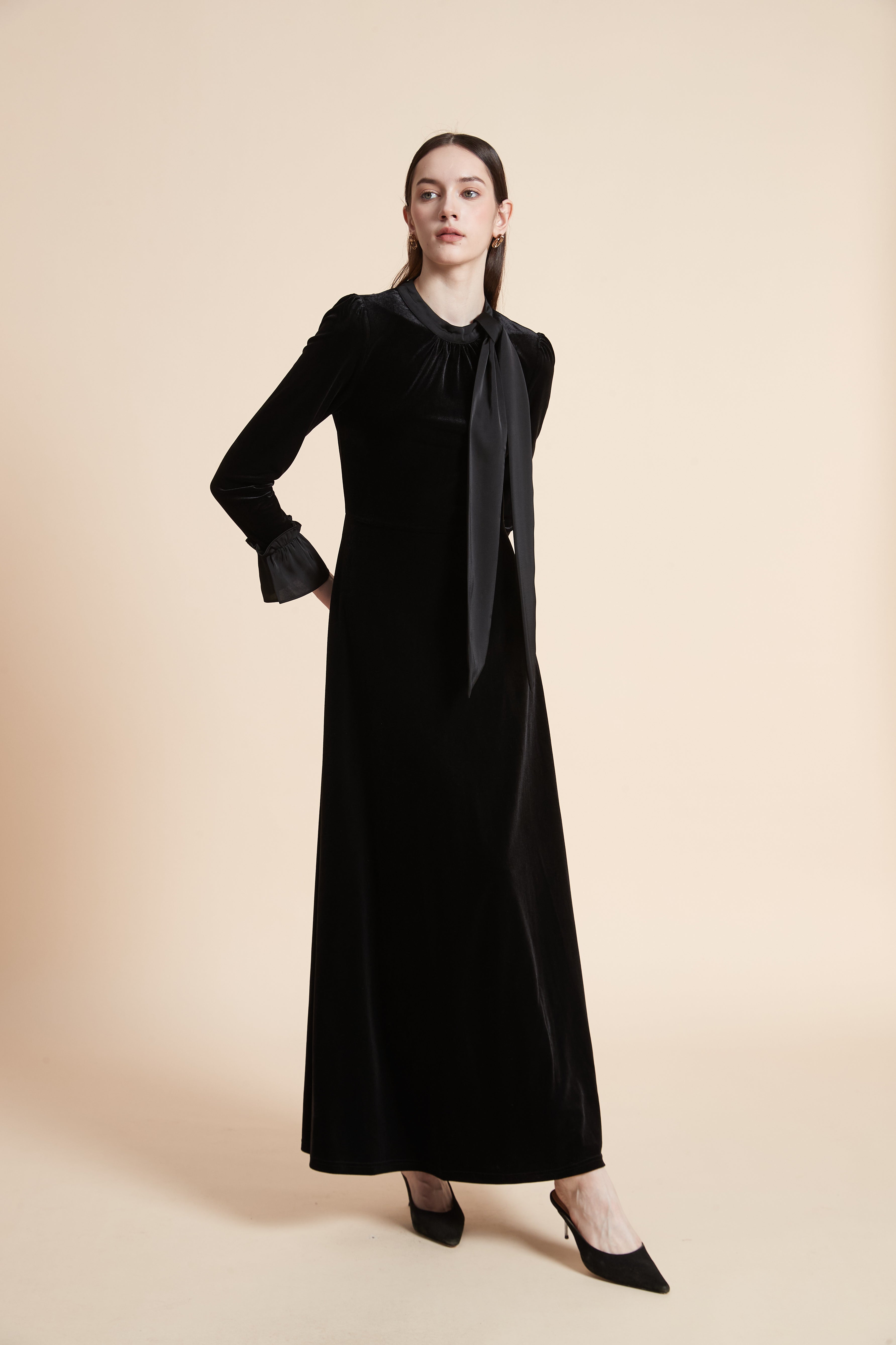 فستان ماكسي سادة بأكمام طويلة بربطة عنق