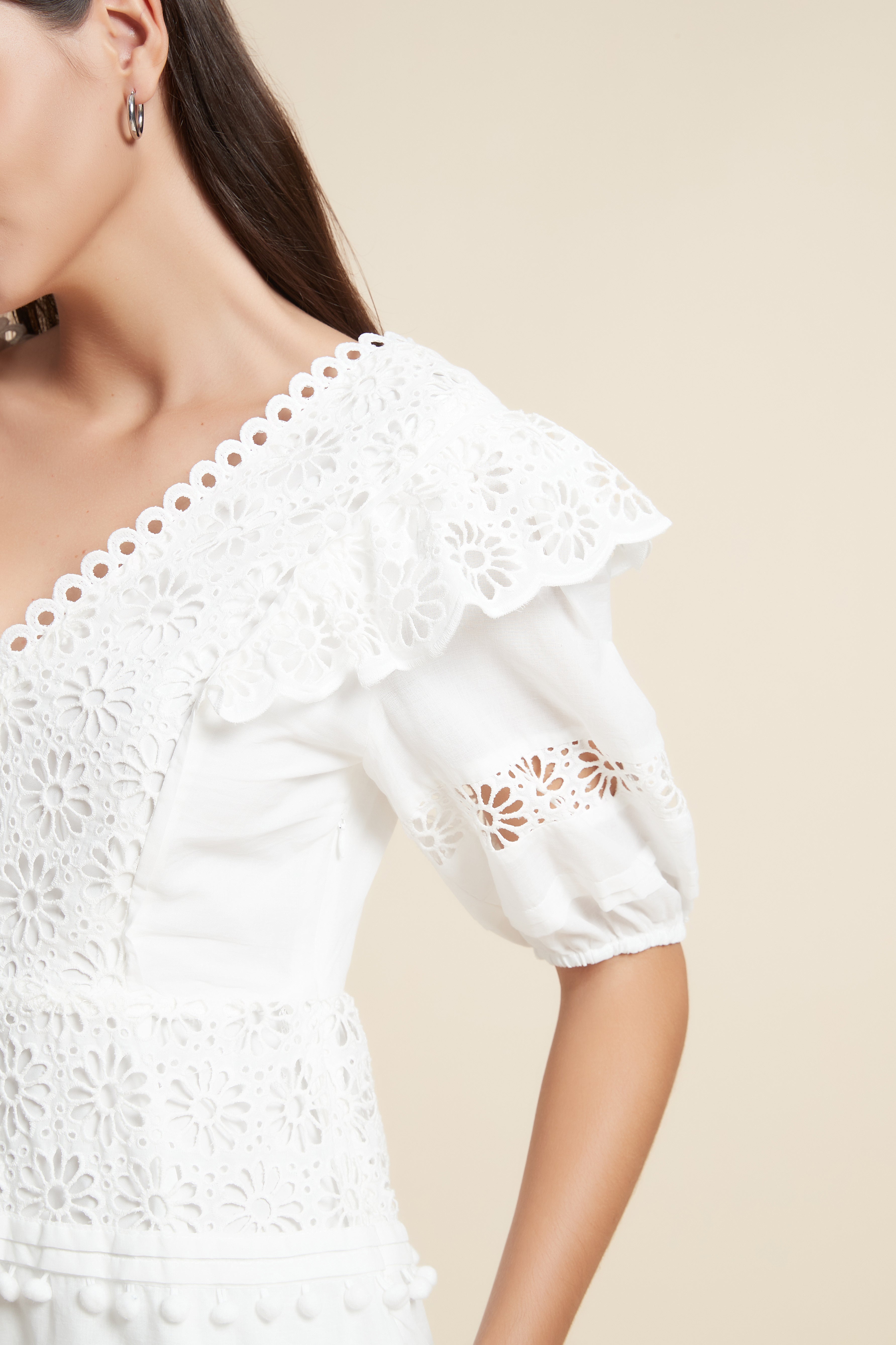 - ياقة V وأكمام منفوشة قصيرة لتفاصيل أنثوية
