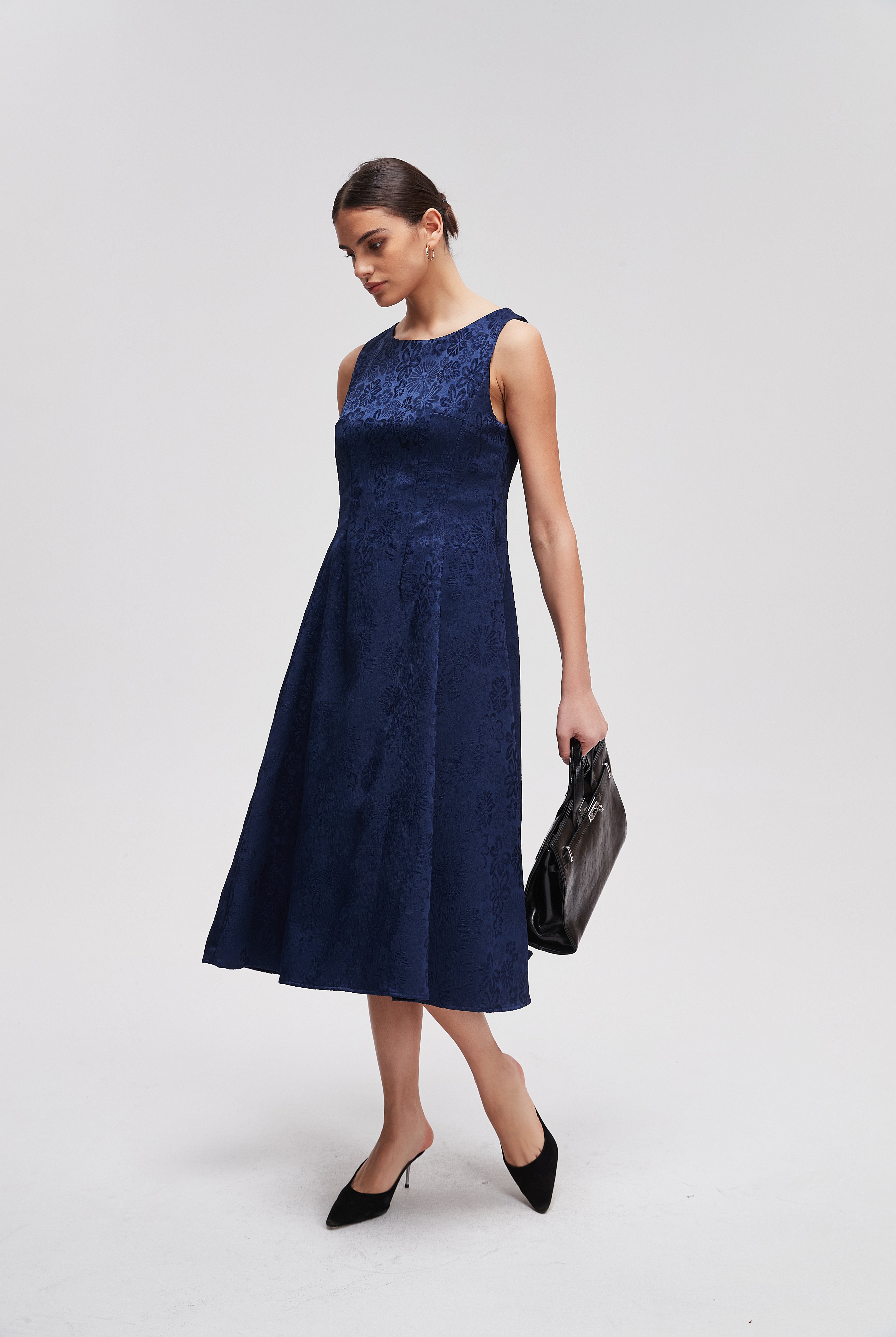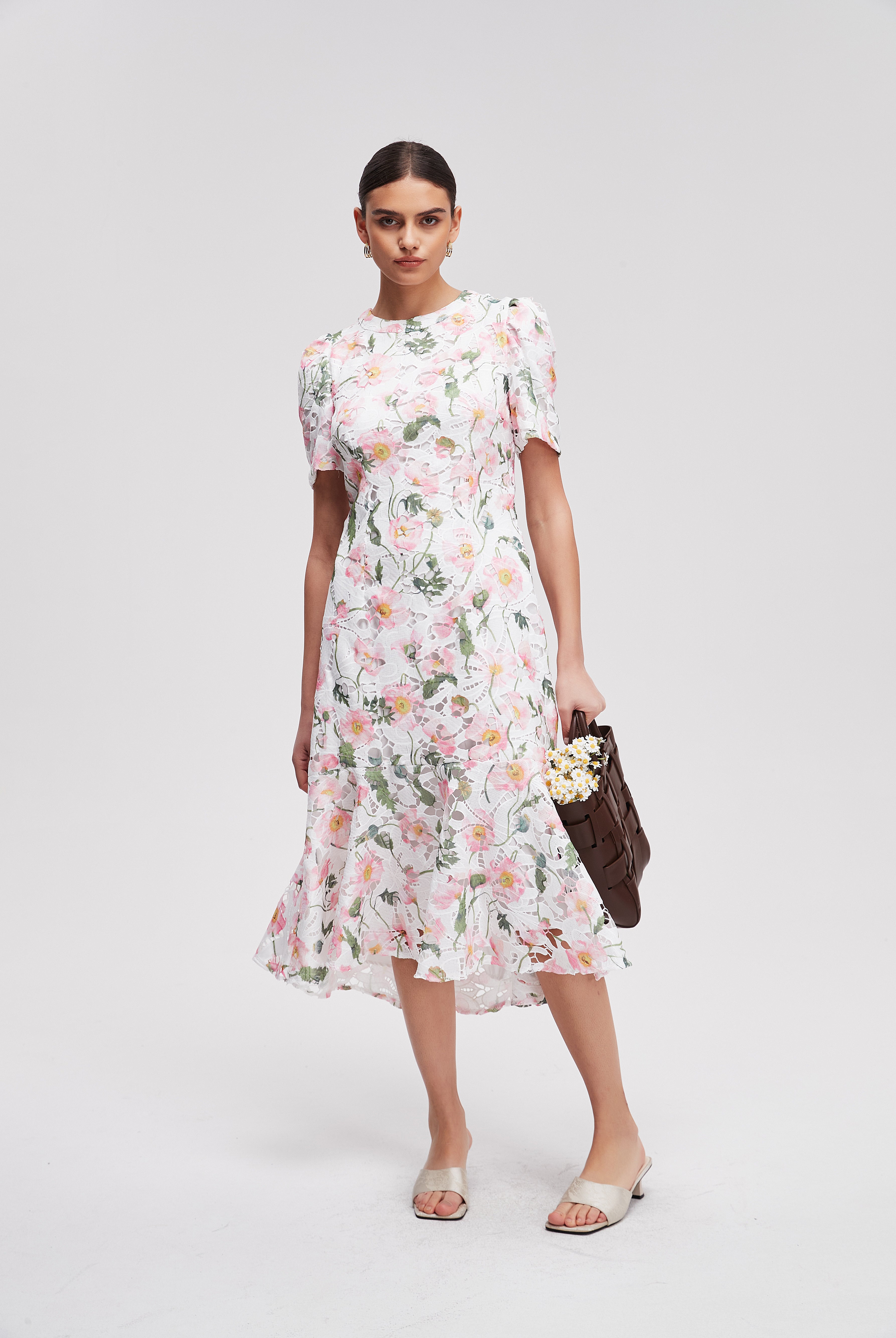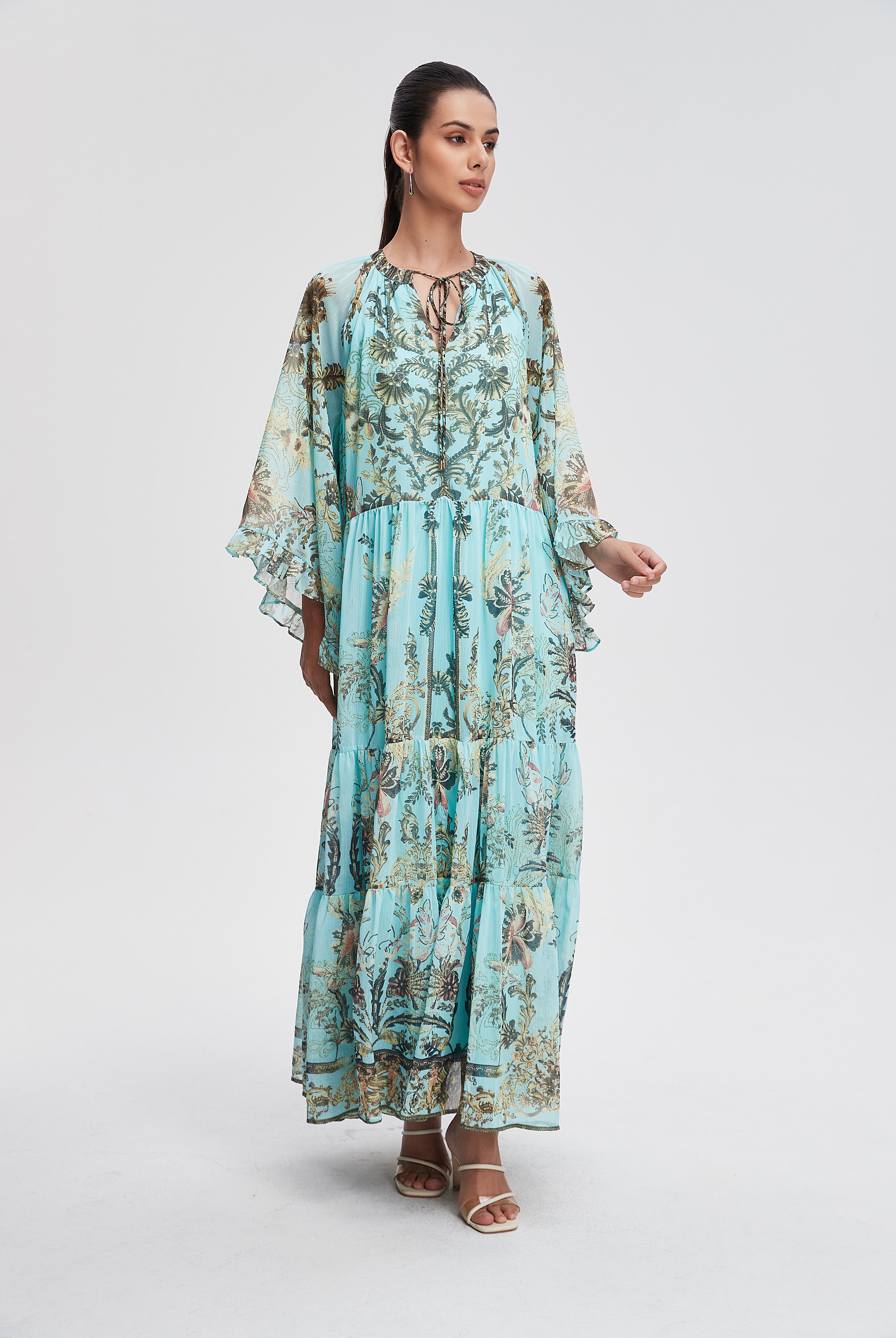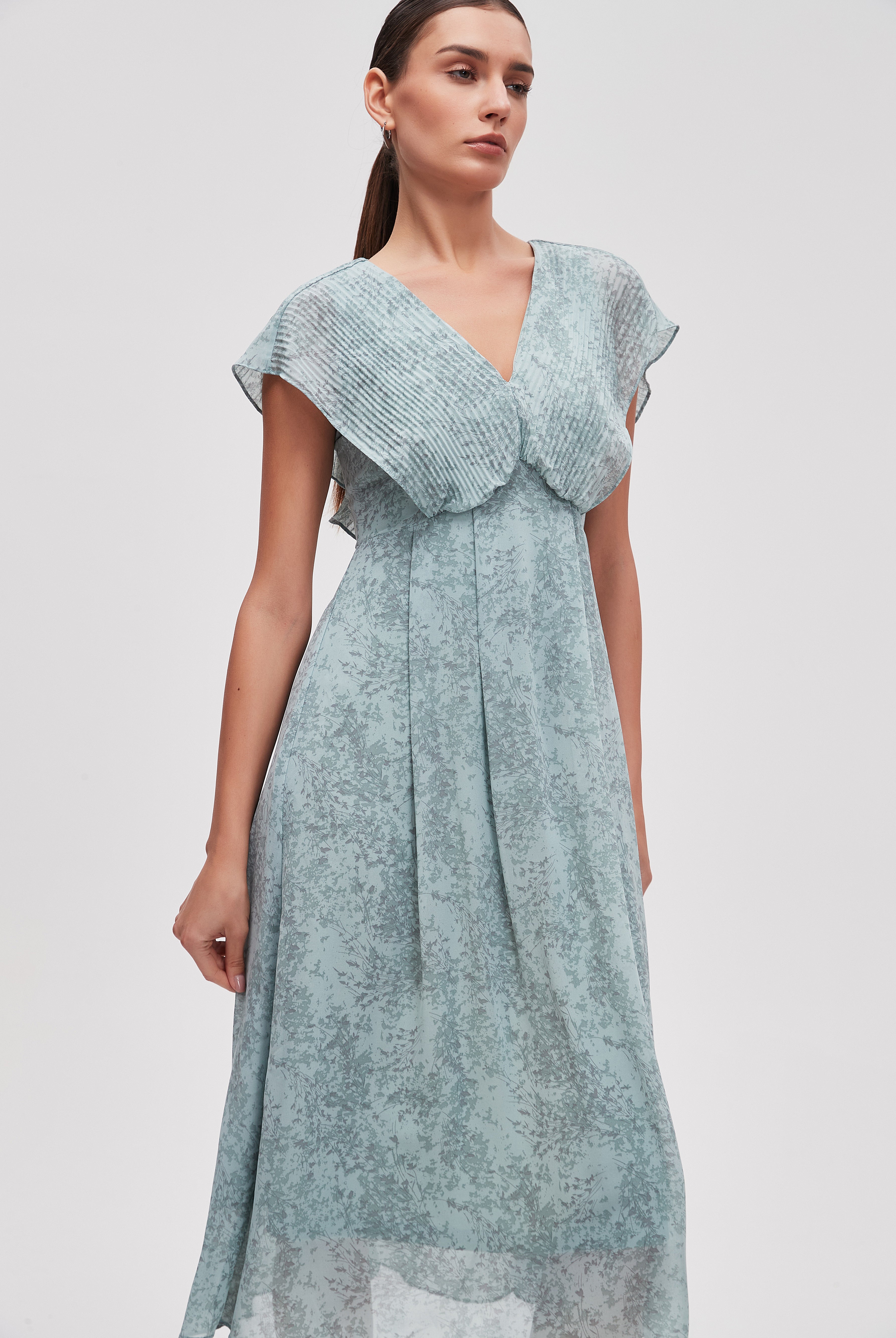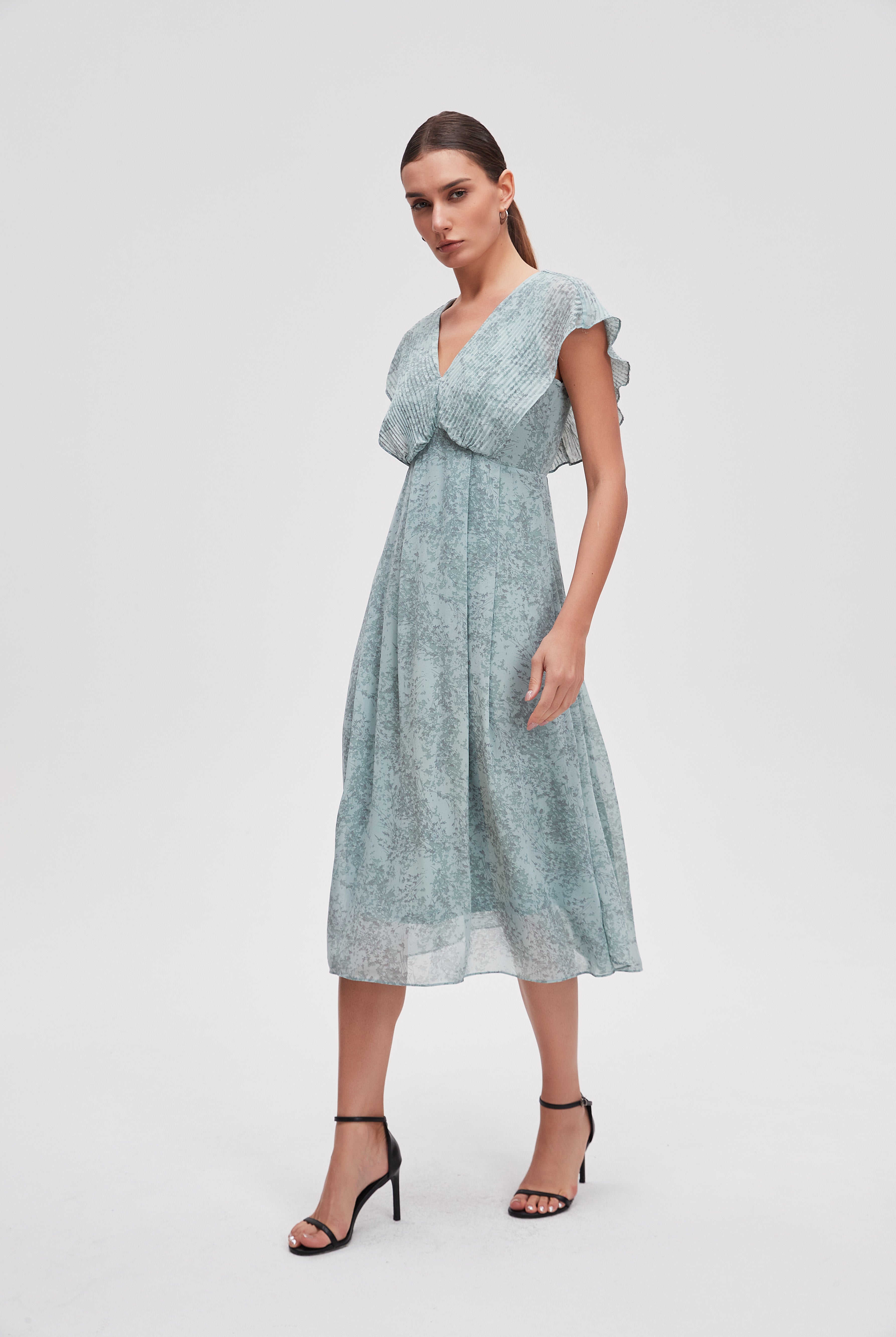 فستان ميدي منقوش نصف كم