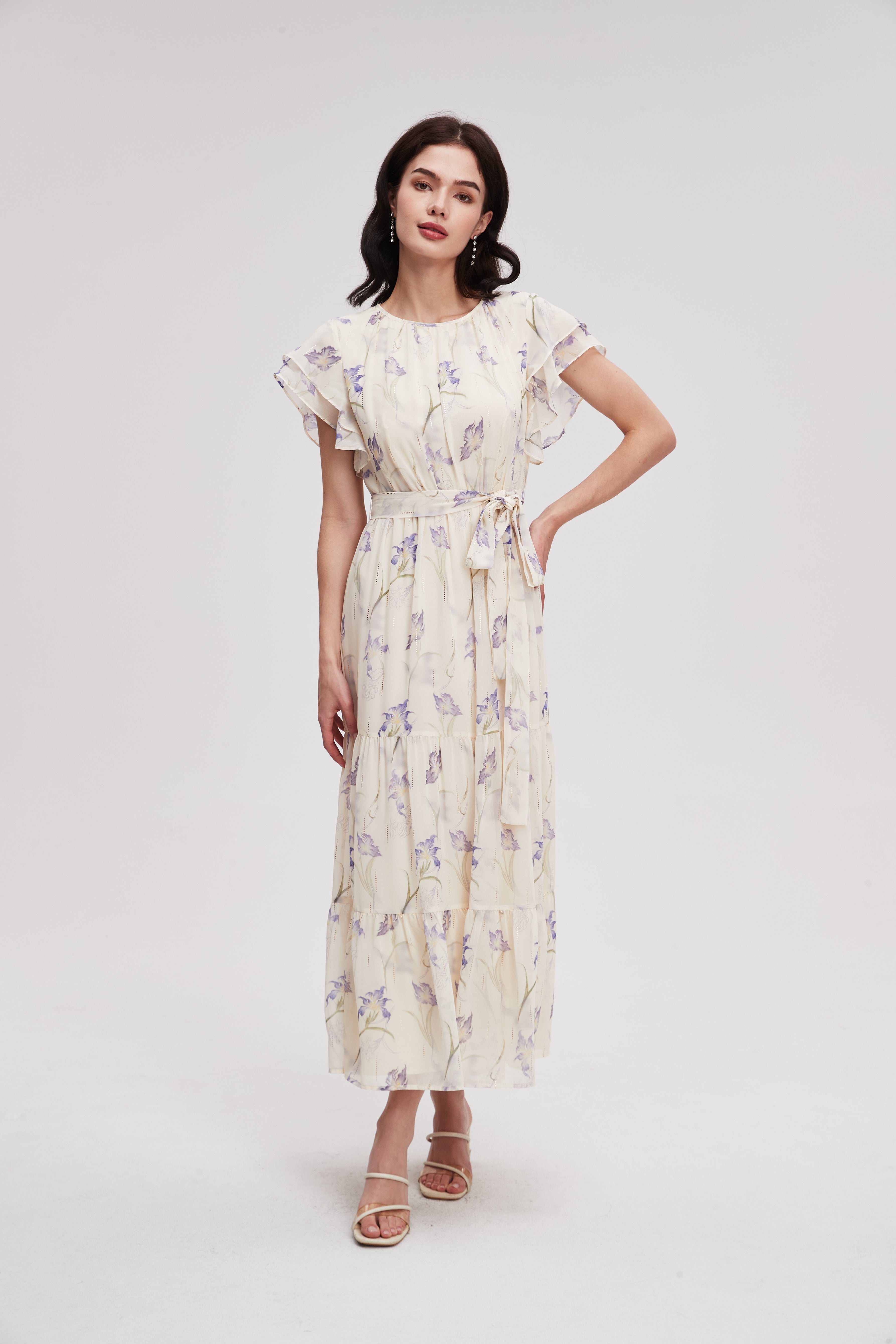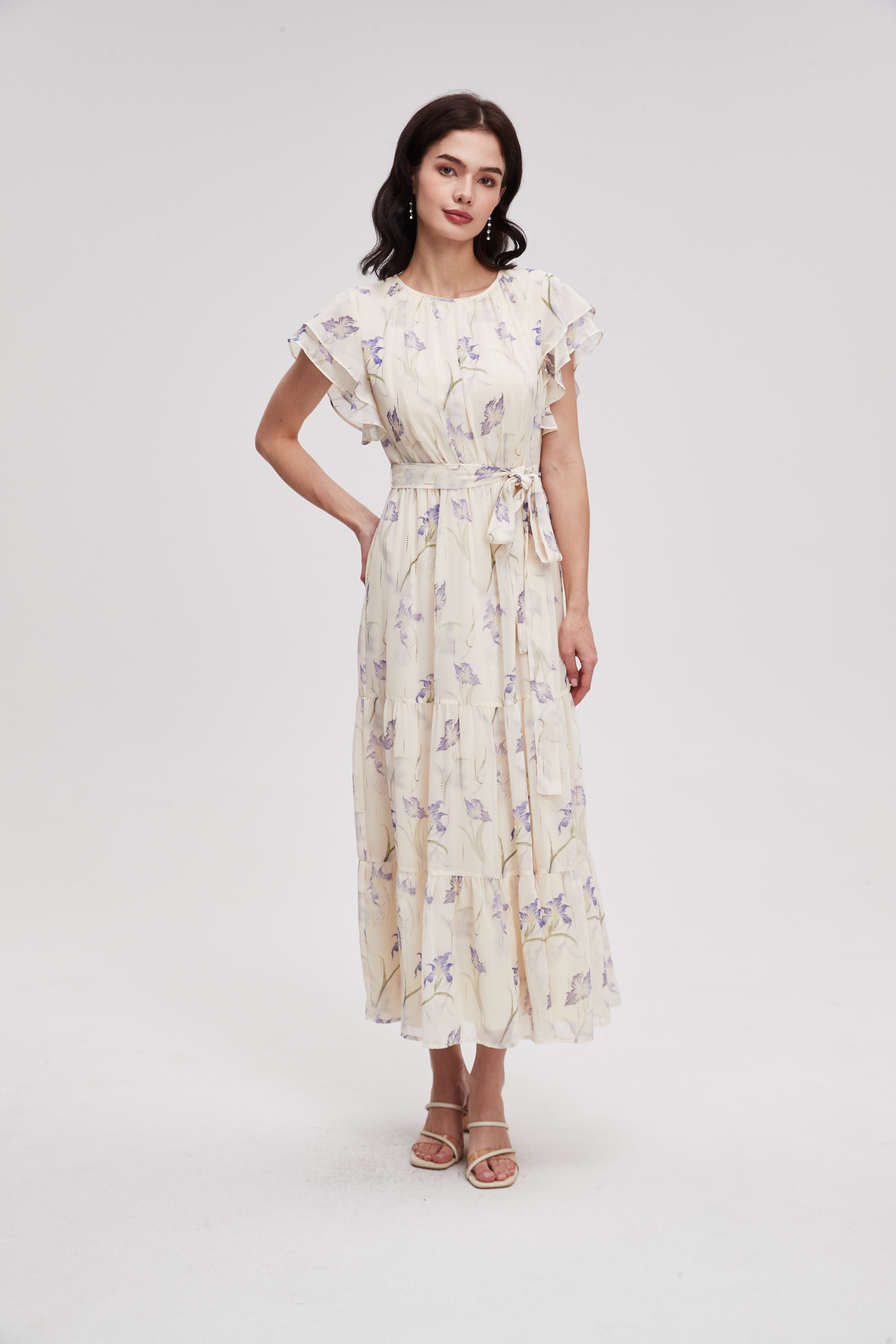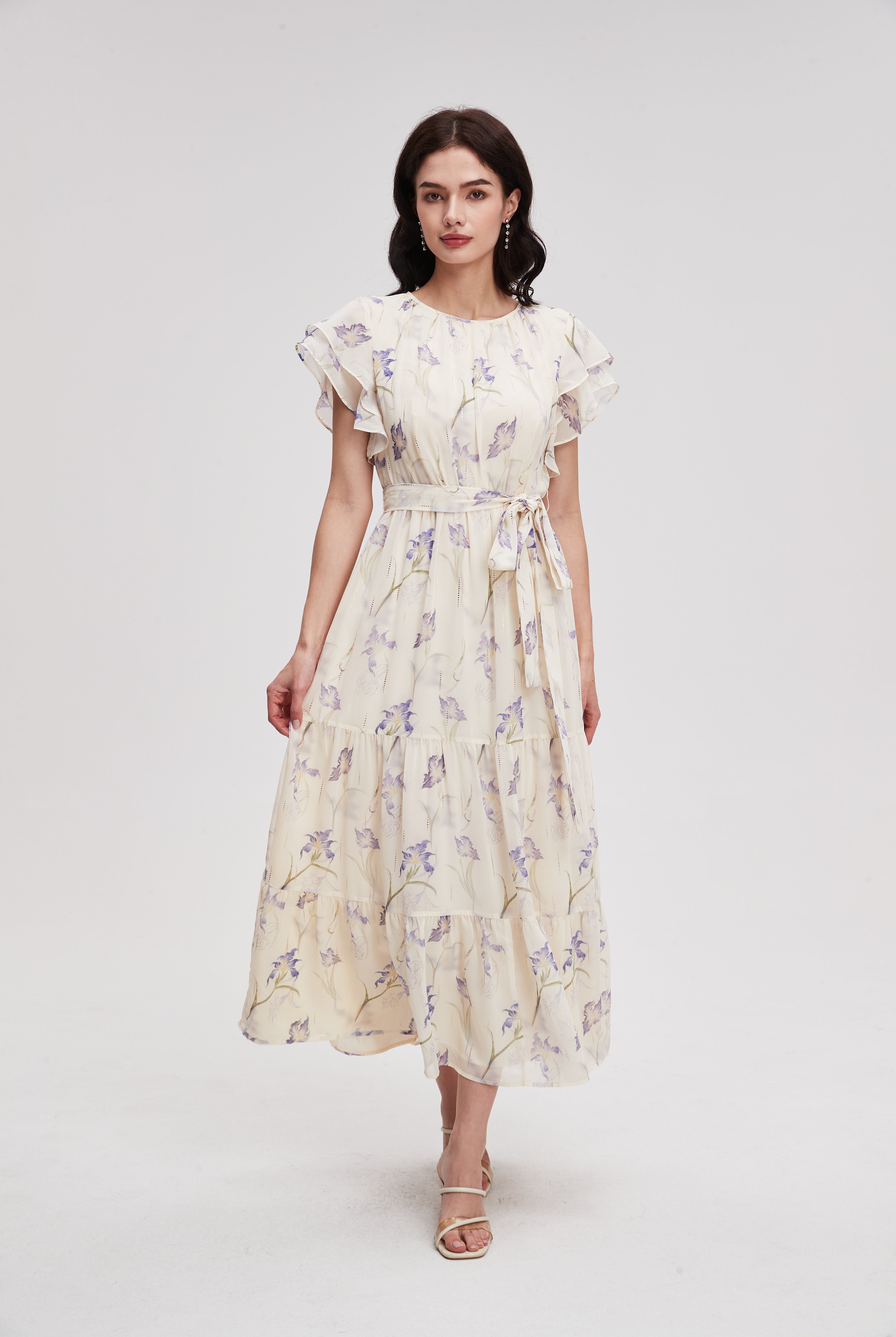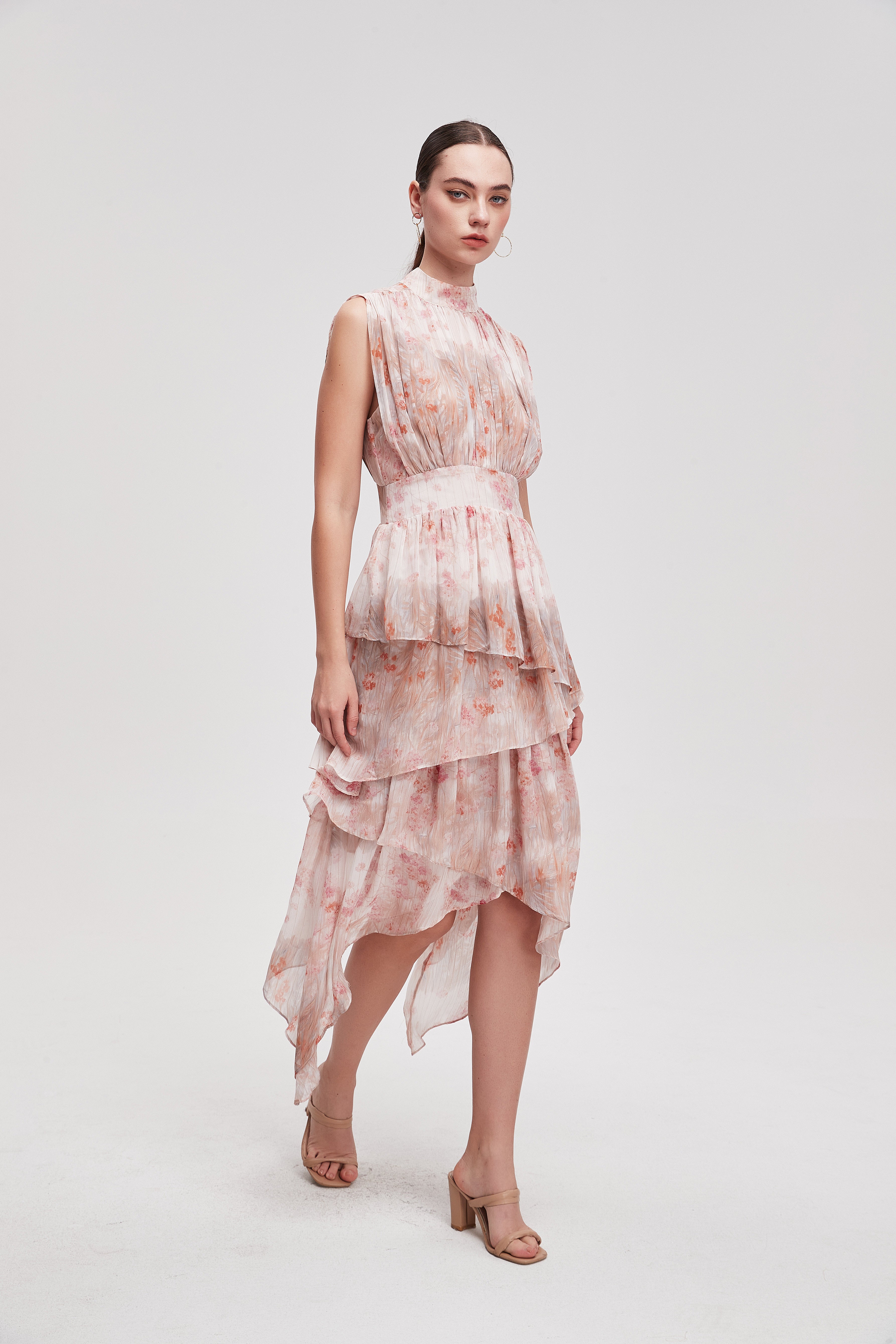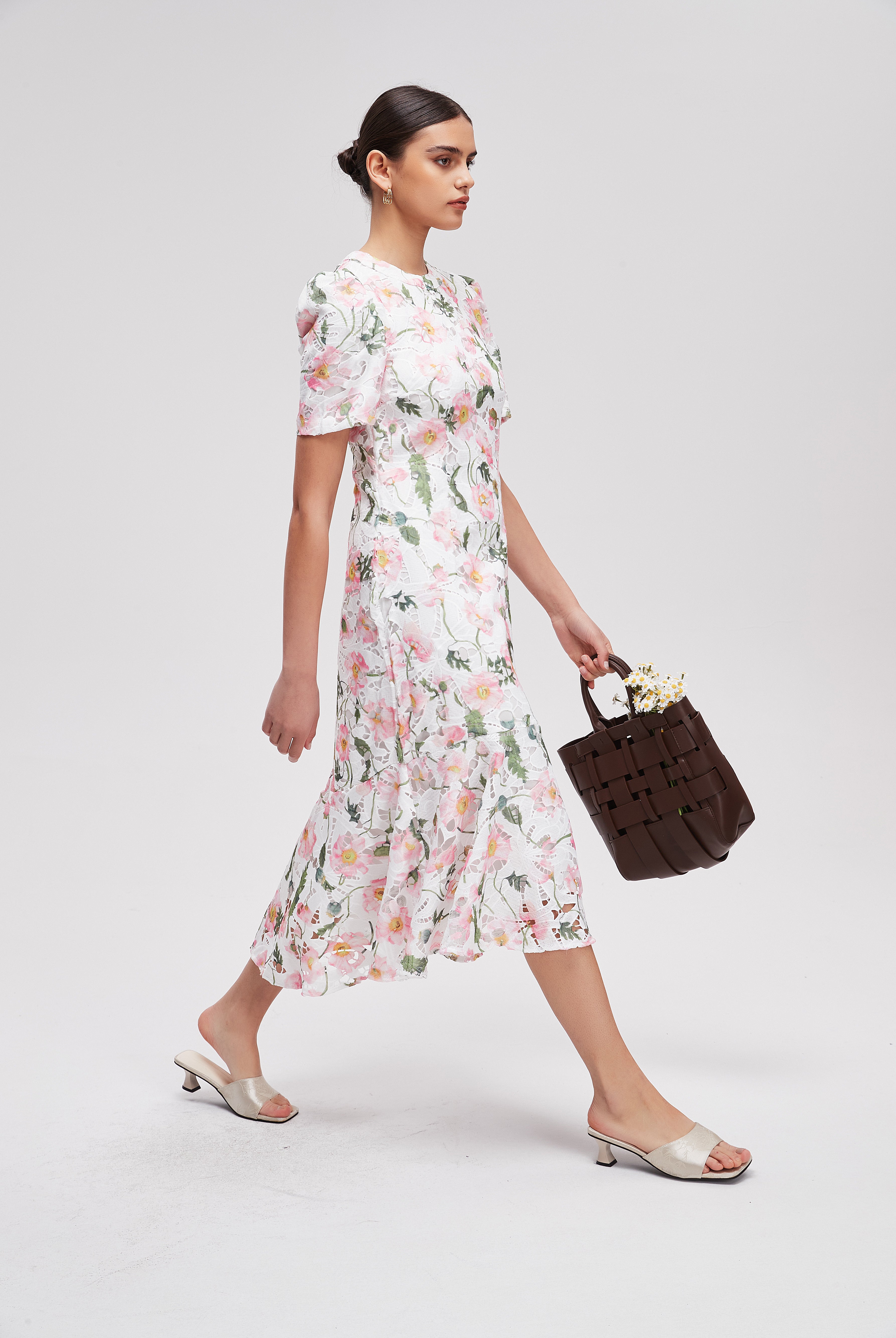 فستان ميدي منقوش نصف كم