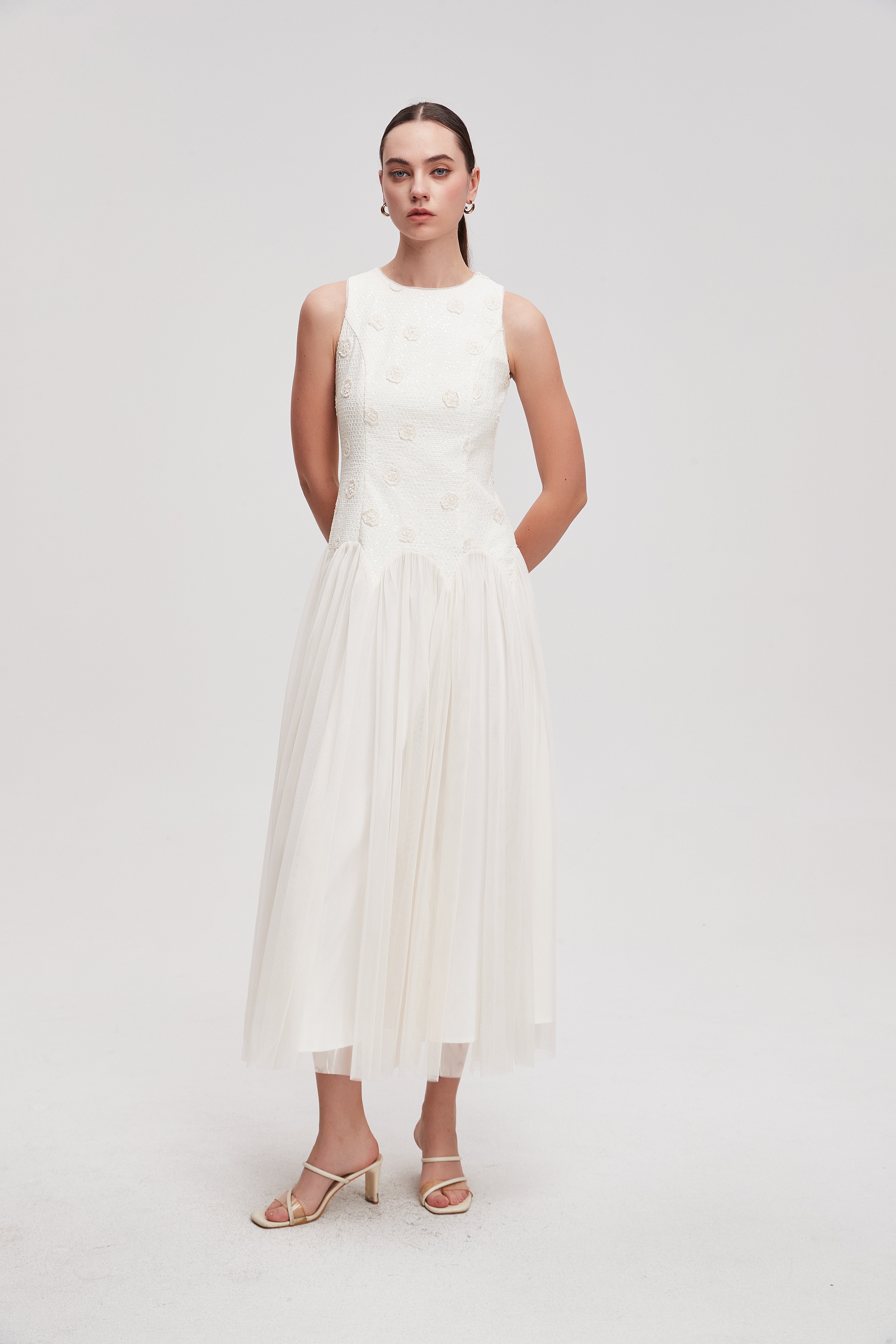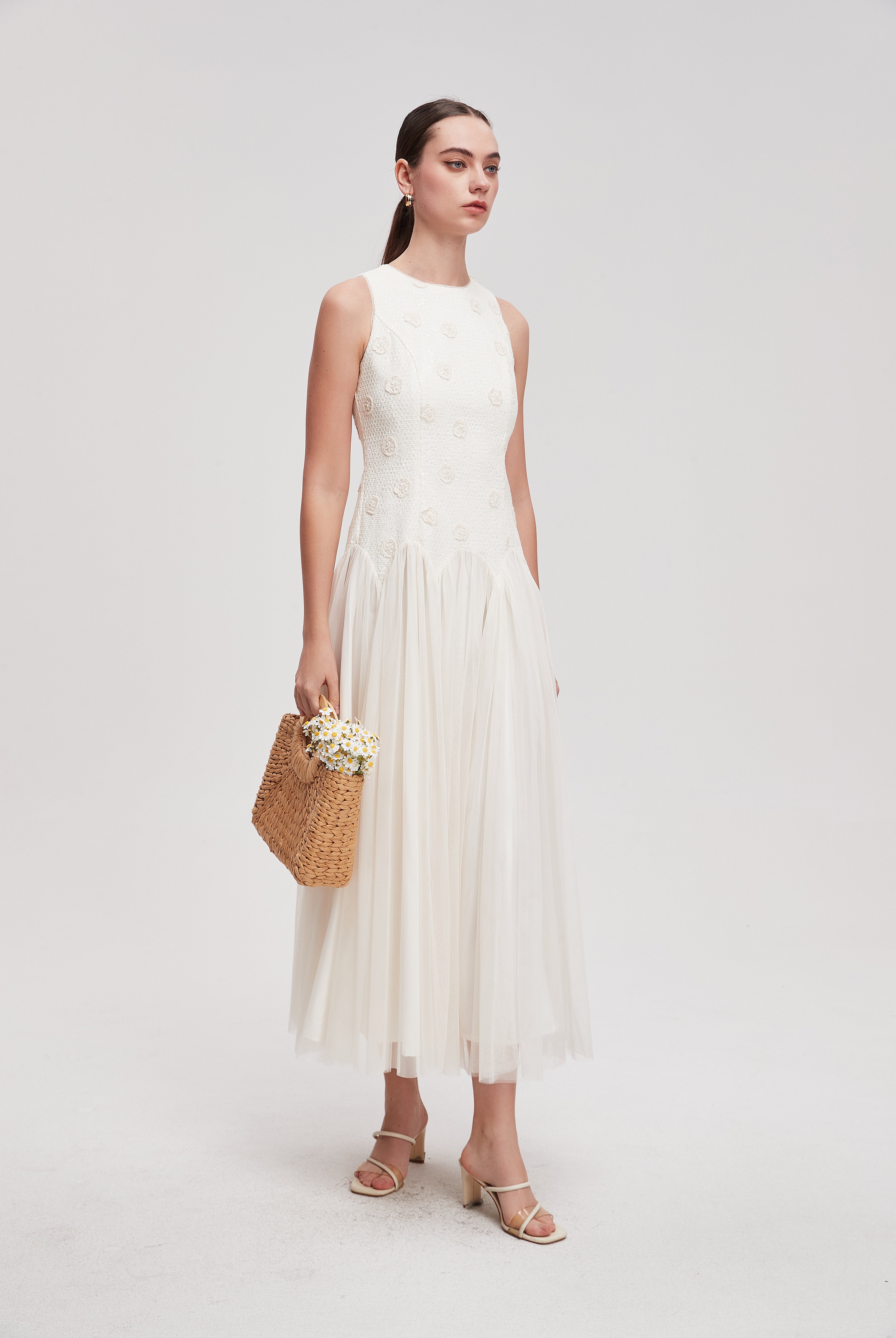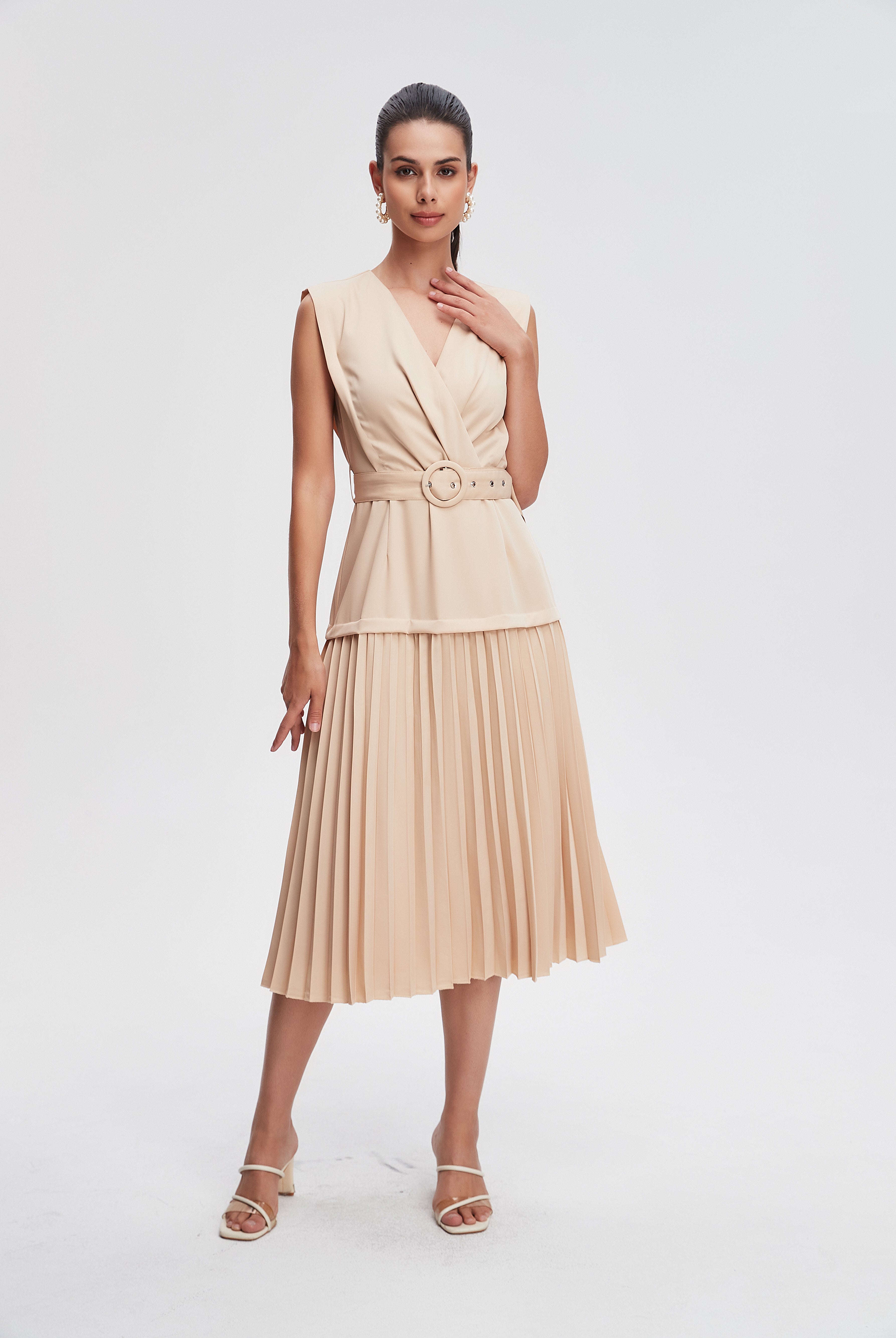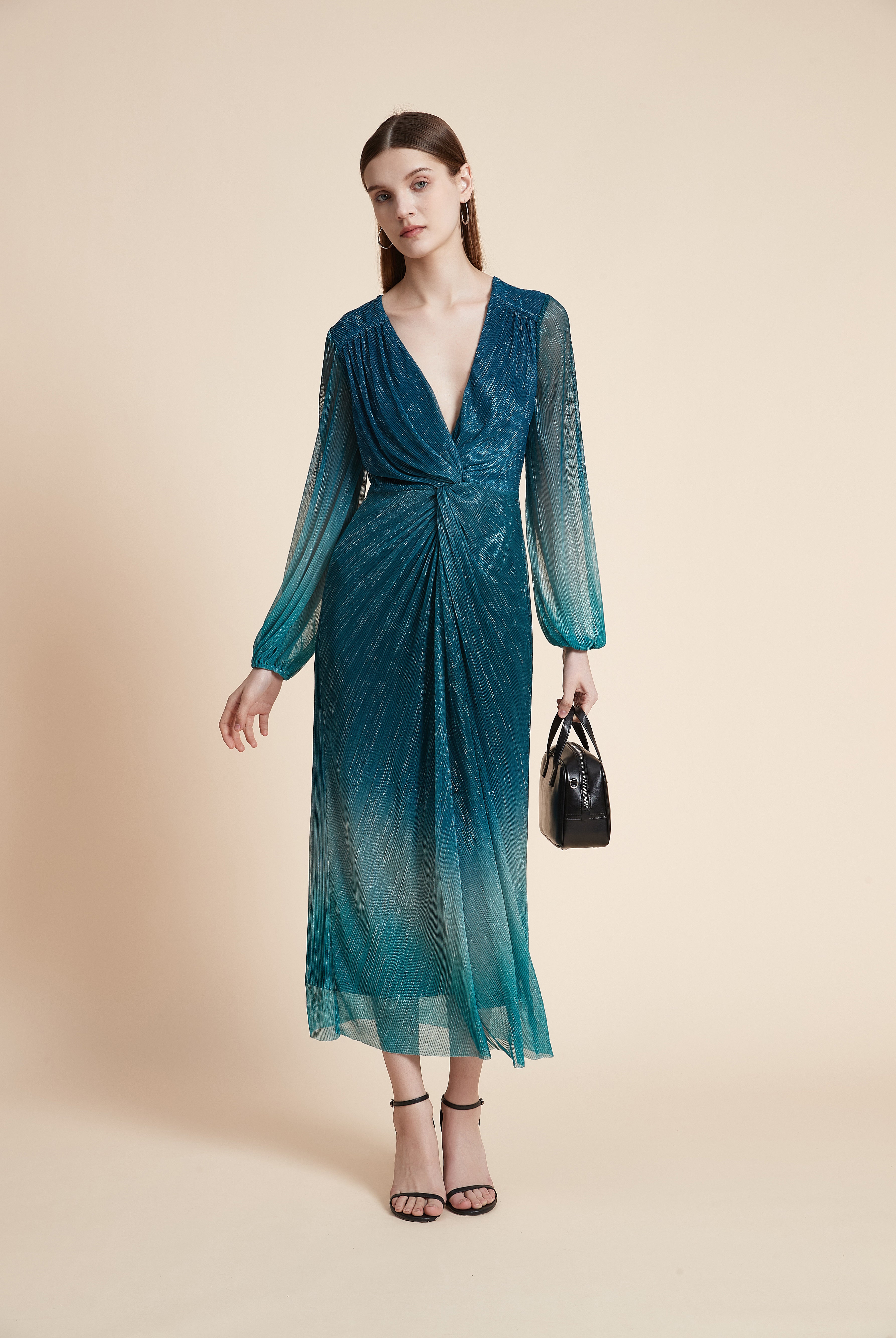 فستان سهرة ميدي حمالات