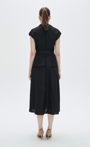 فستان ميدي بكسرات كم طويل برباط على الخصر
