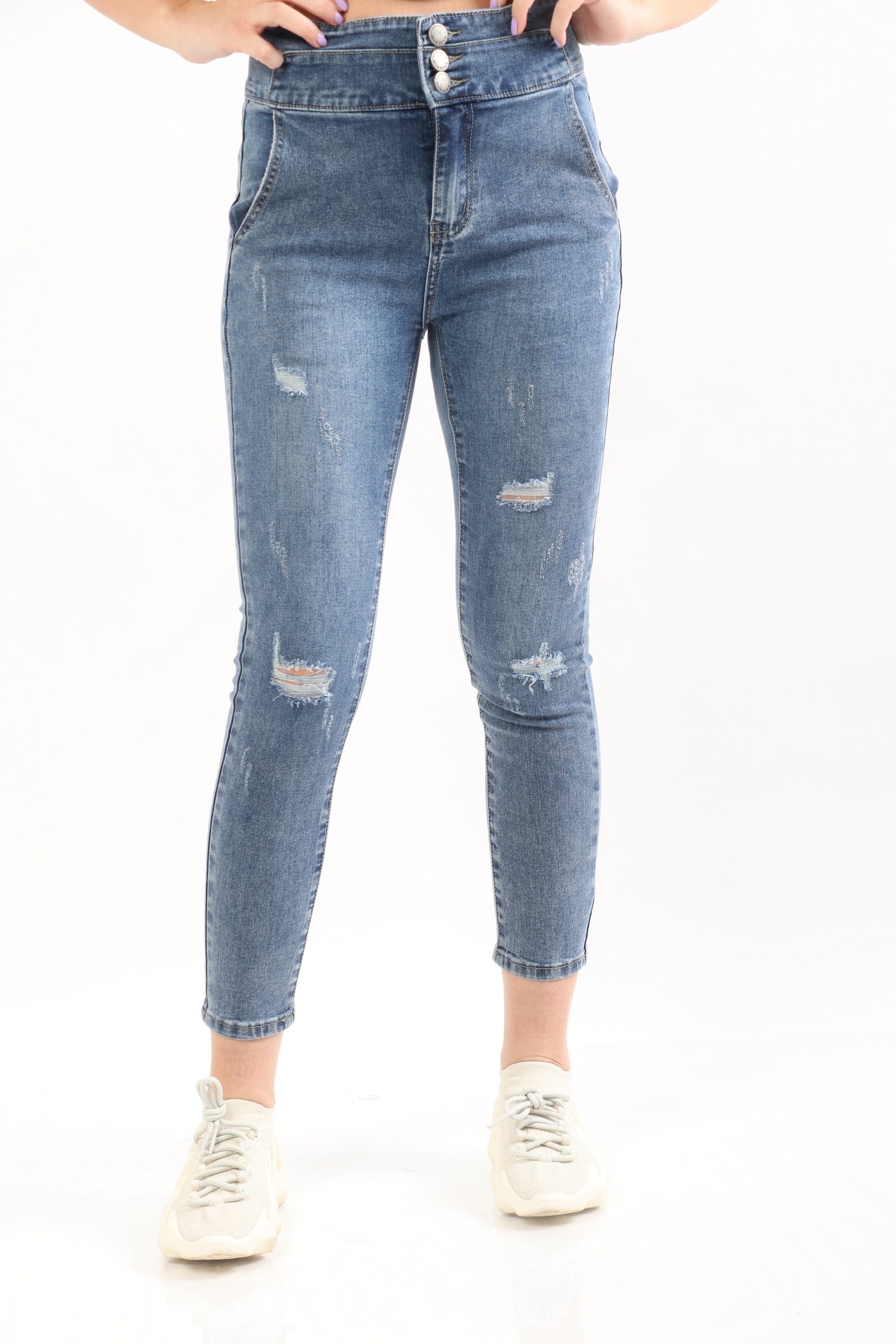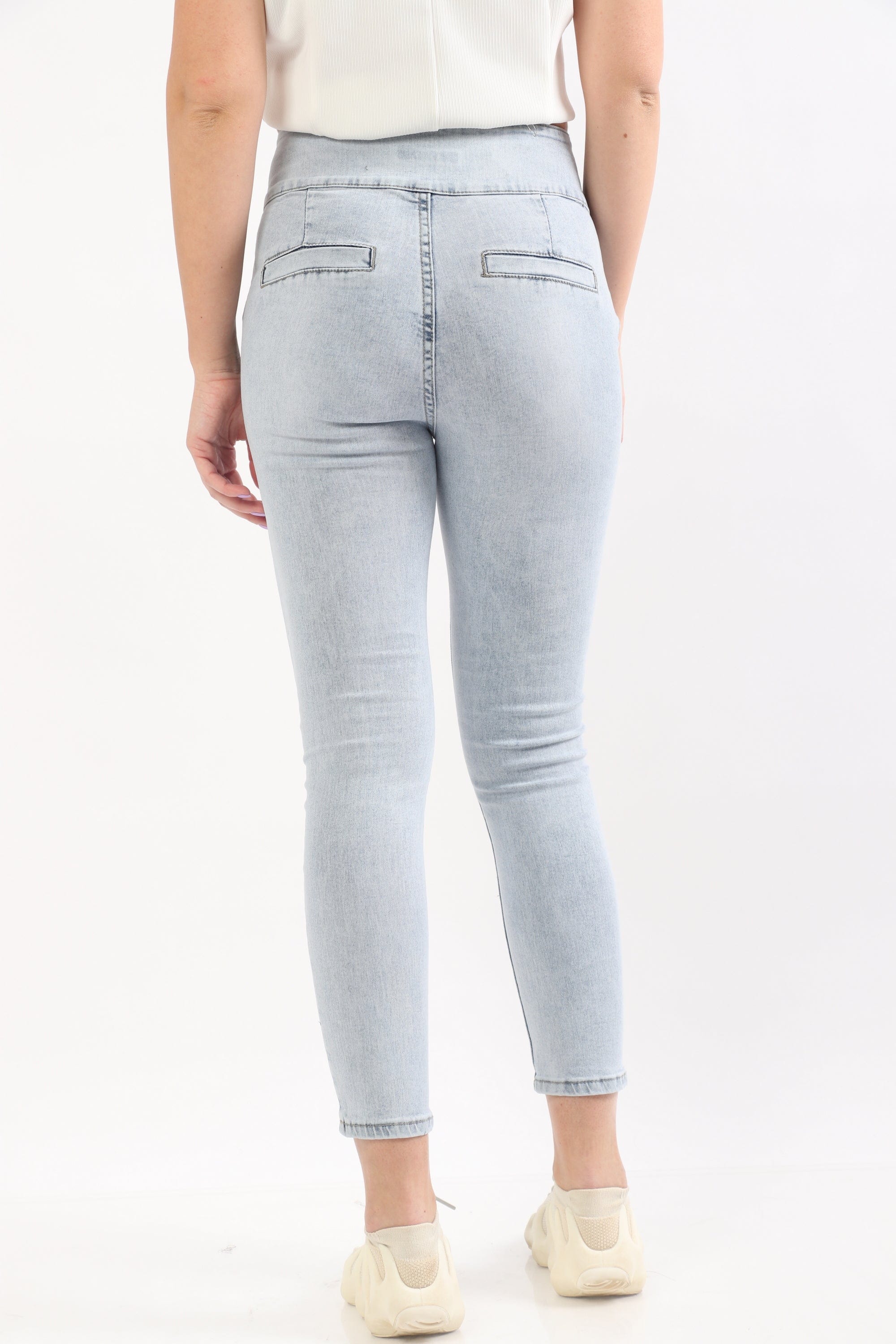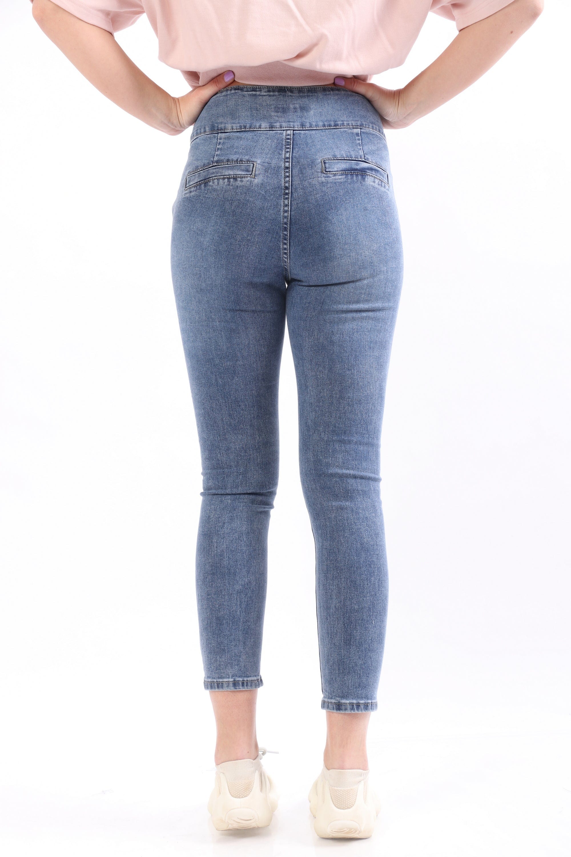 بنطلون جينز هاي ويست سكيني مقطع طويل نسائي