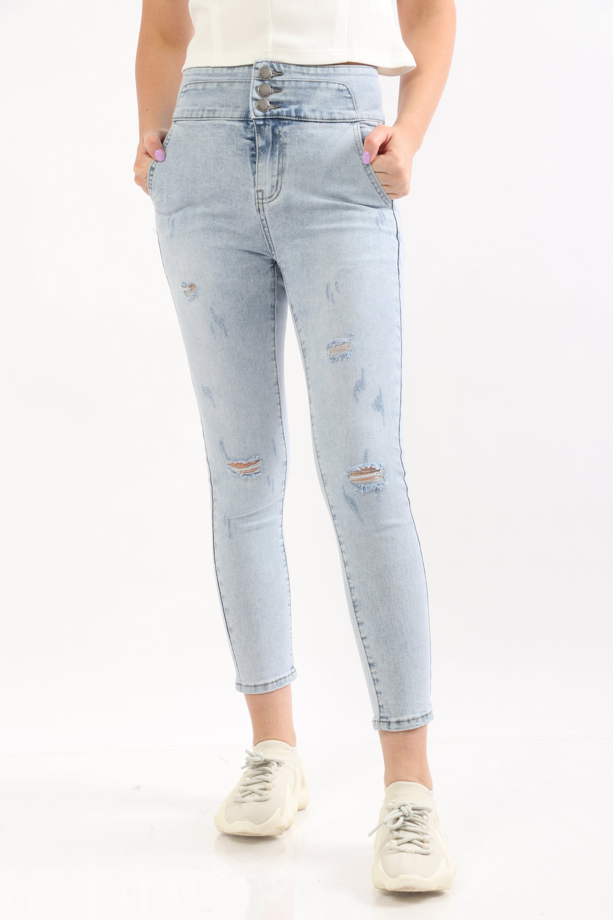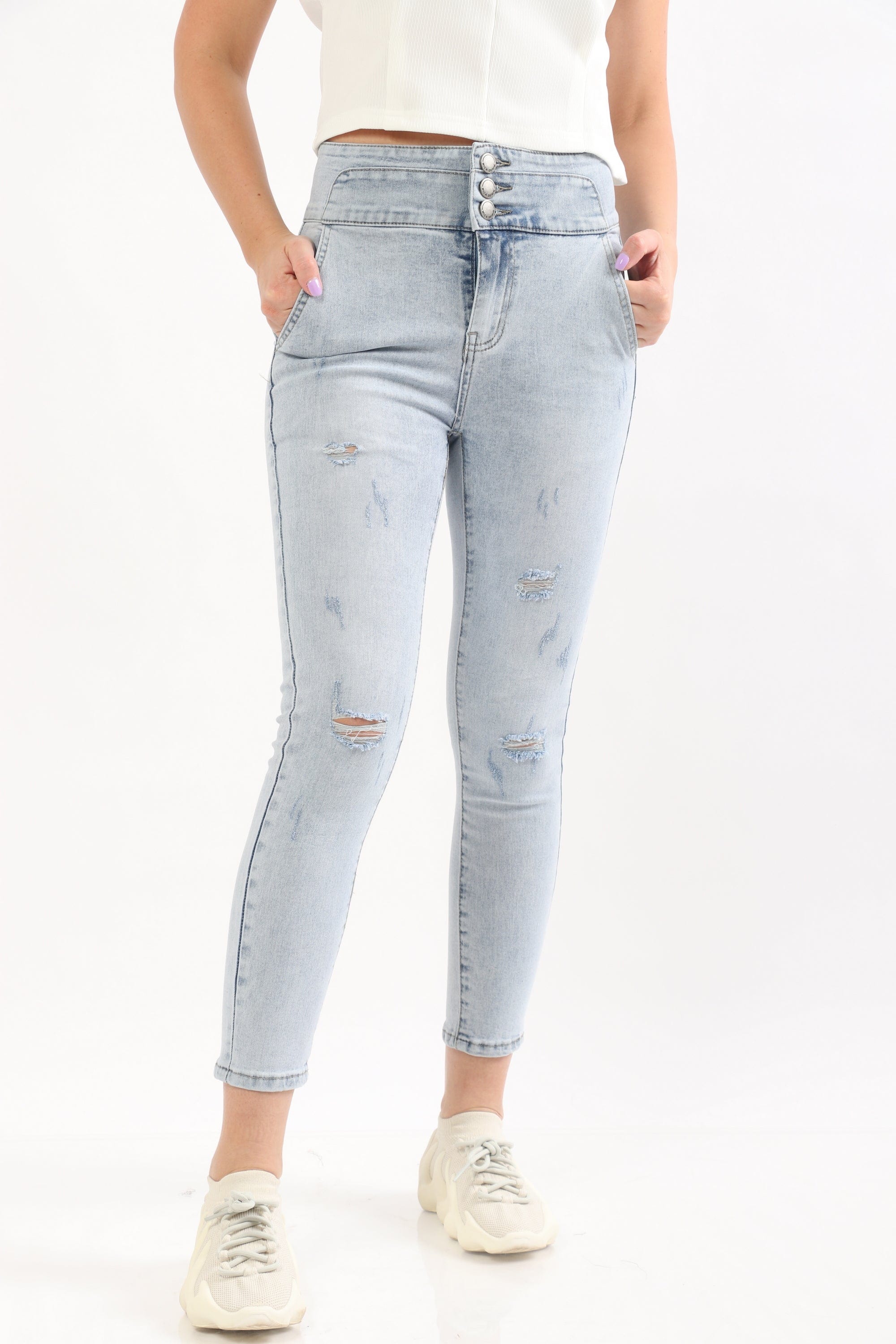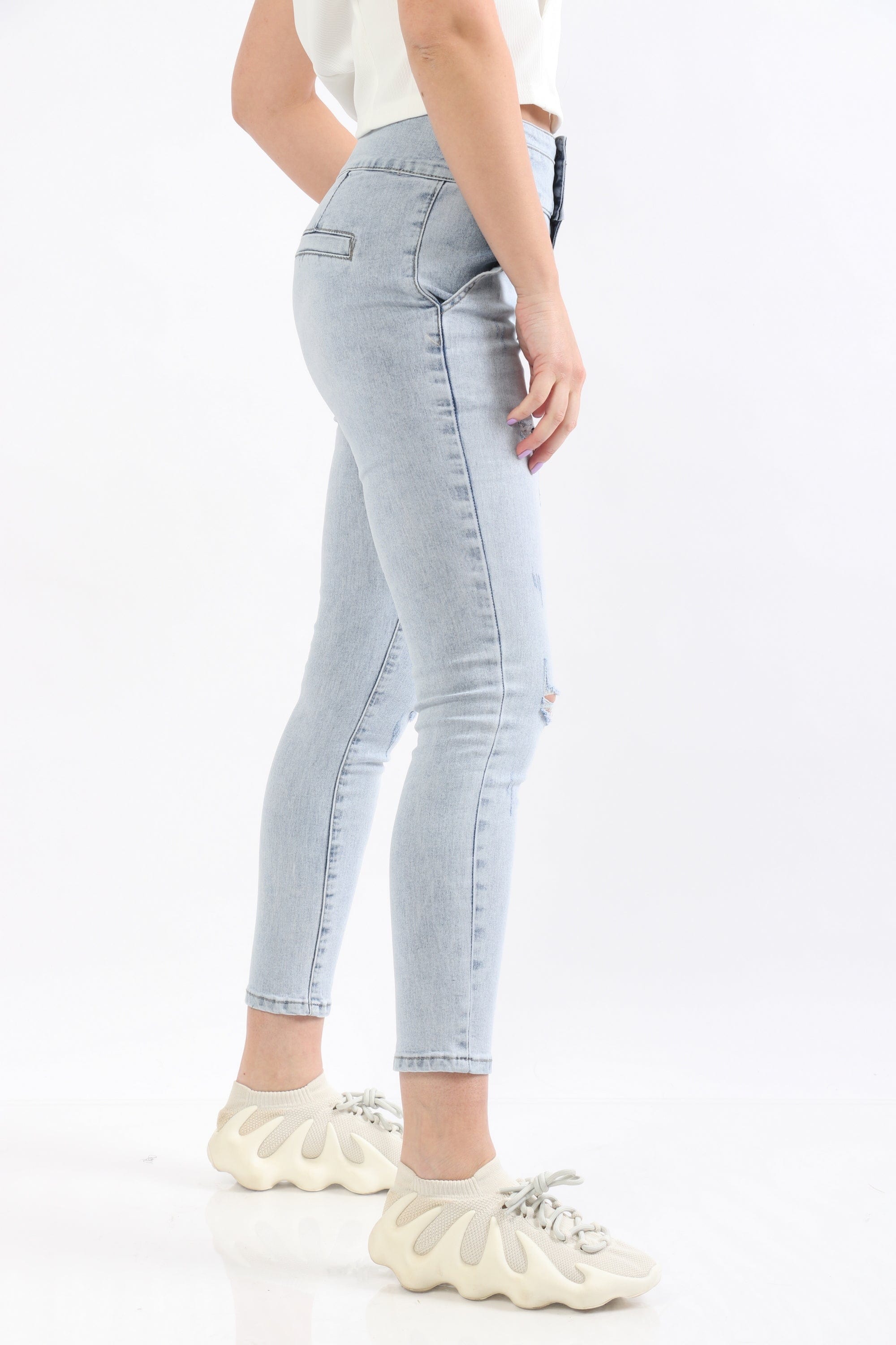بنطلون جينز هاي ويست سكيني مقطع طويل نسائي