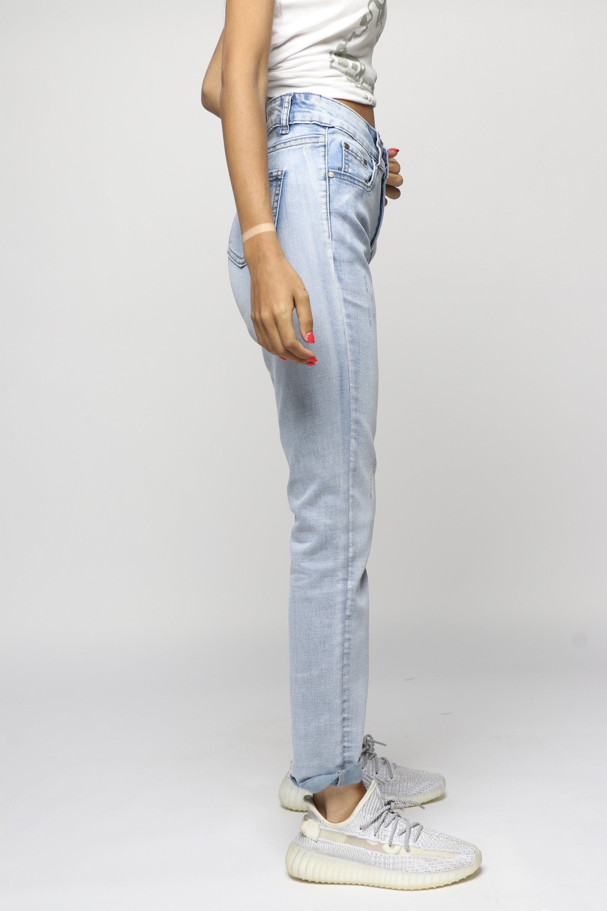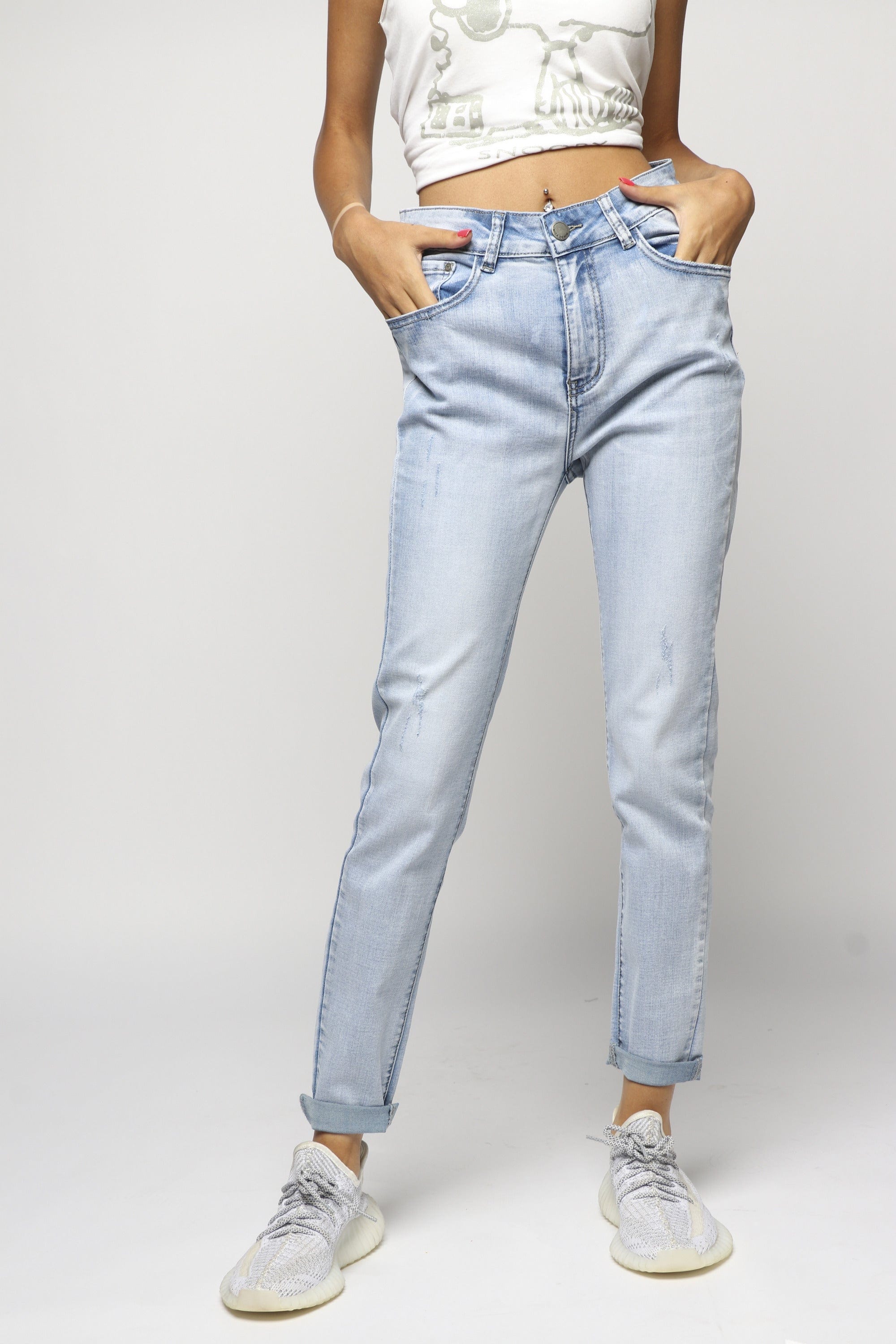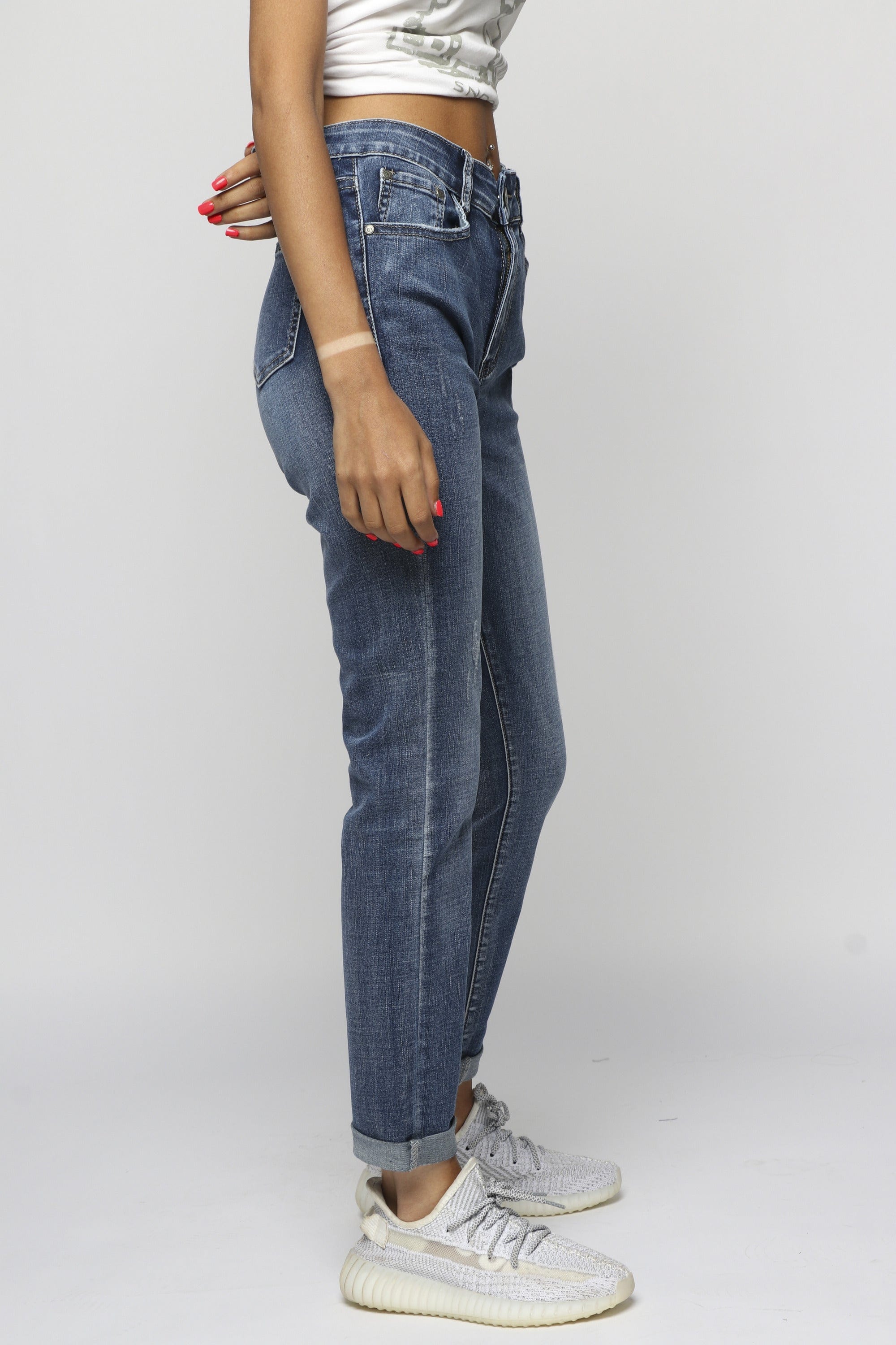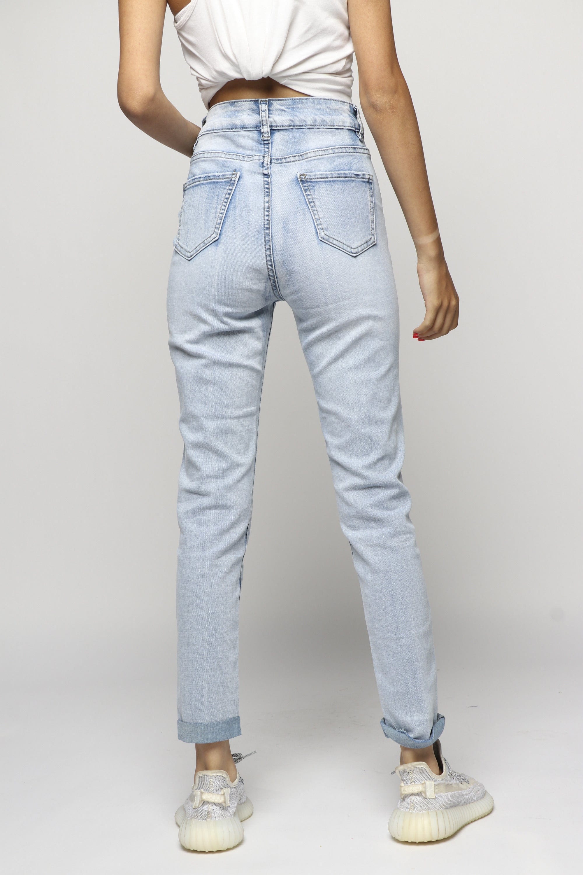 بنطلون جينز هاي ويست بسحاب وزرار طويل نسائي