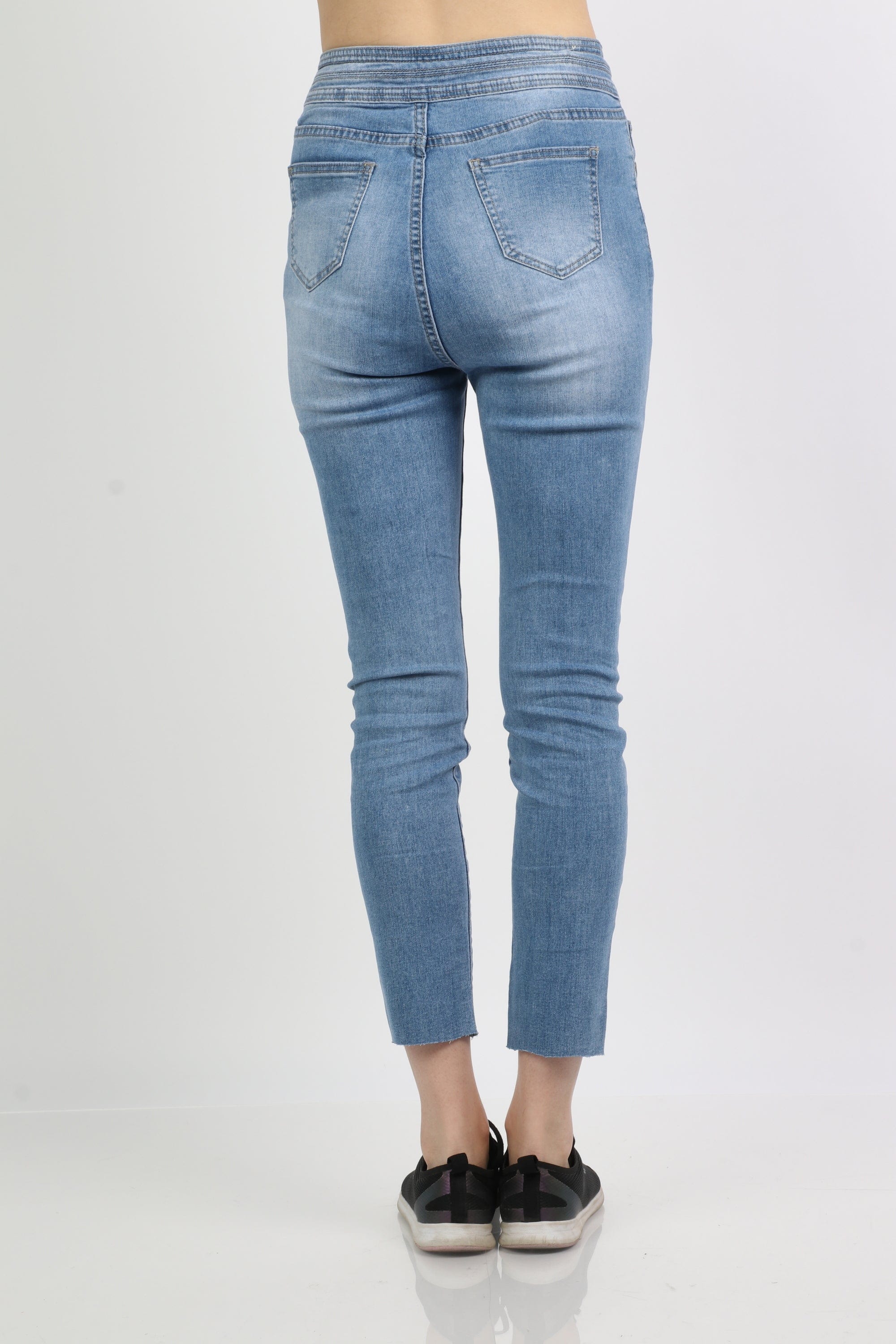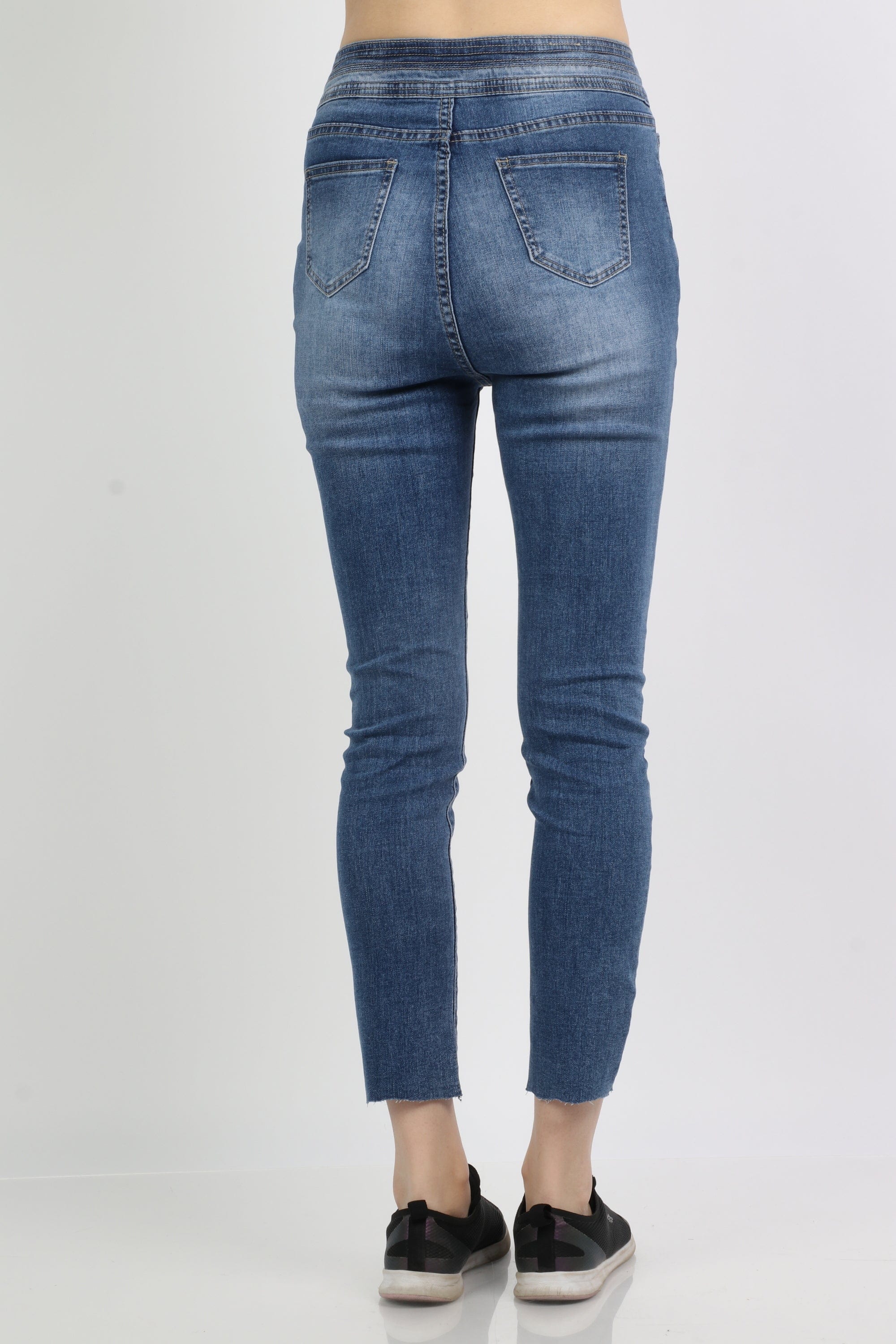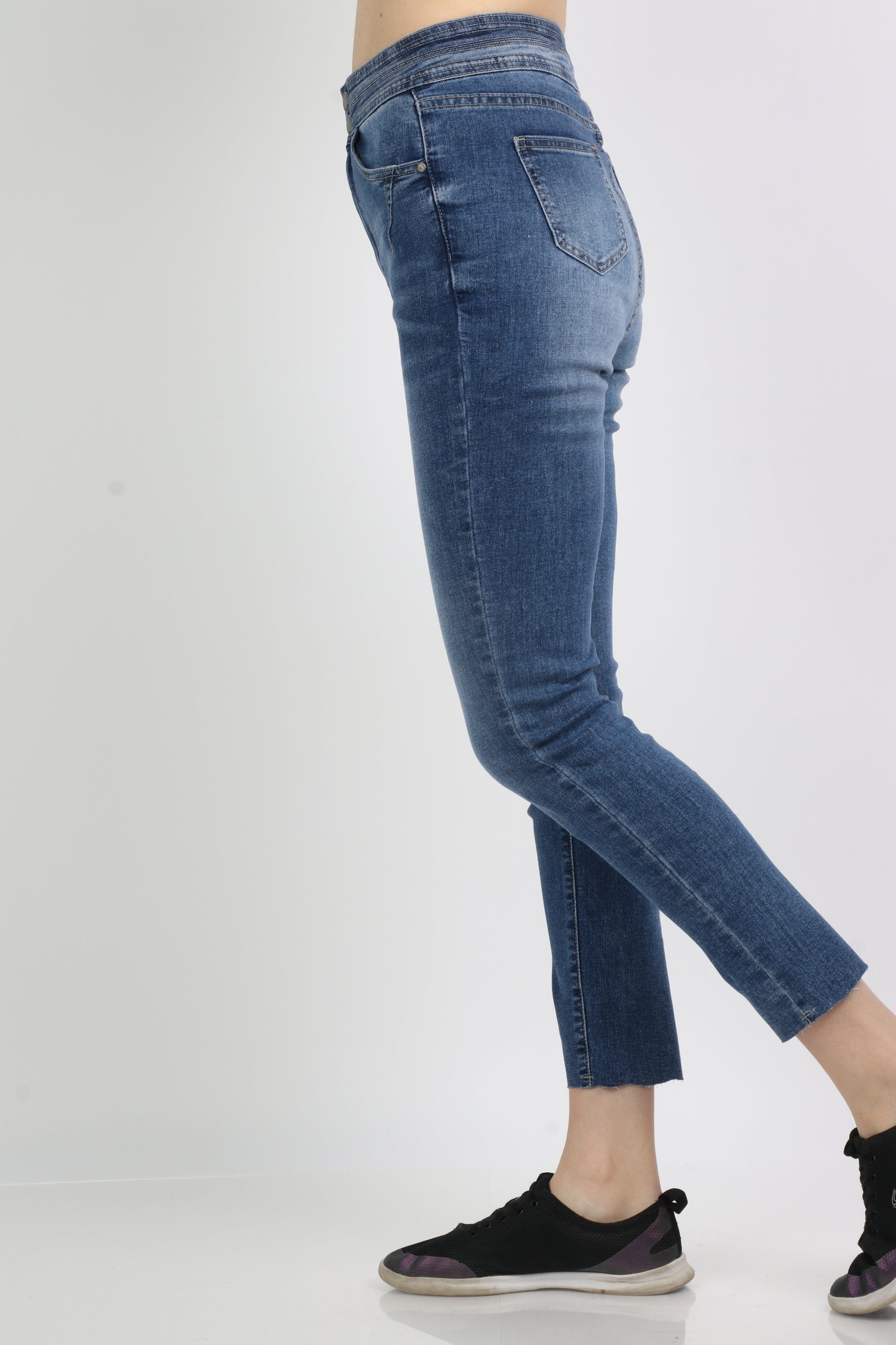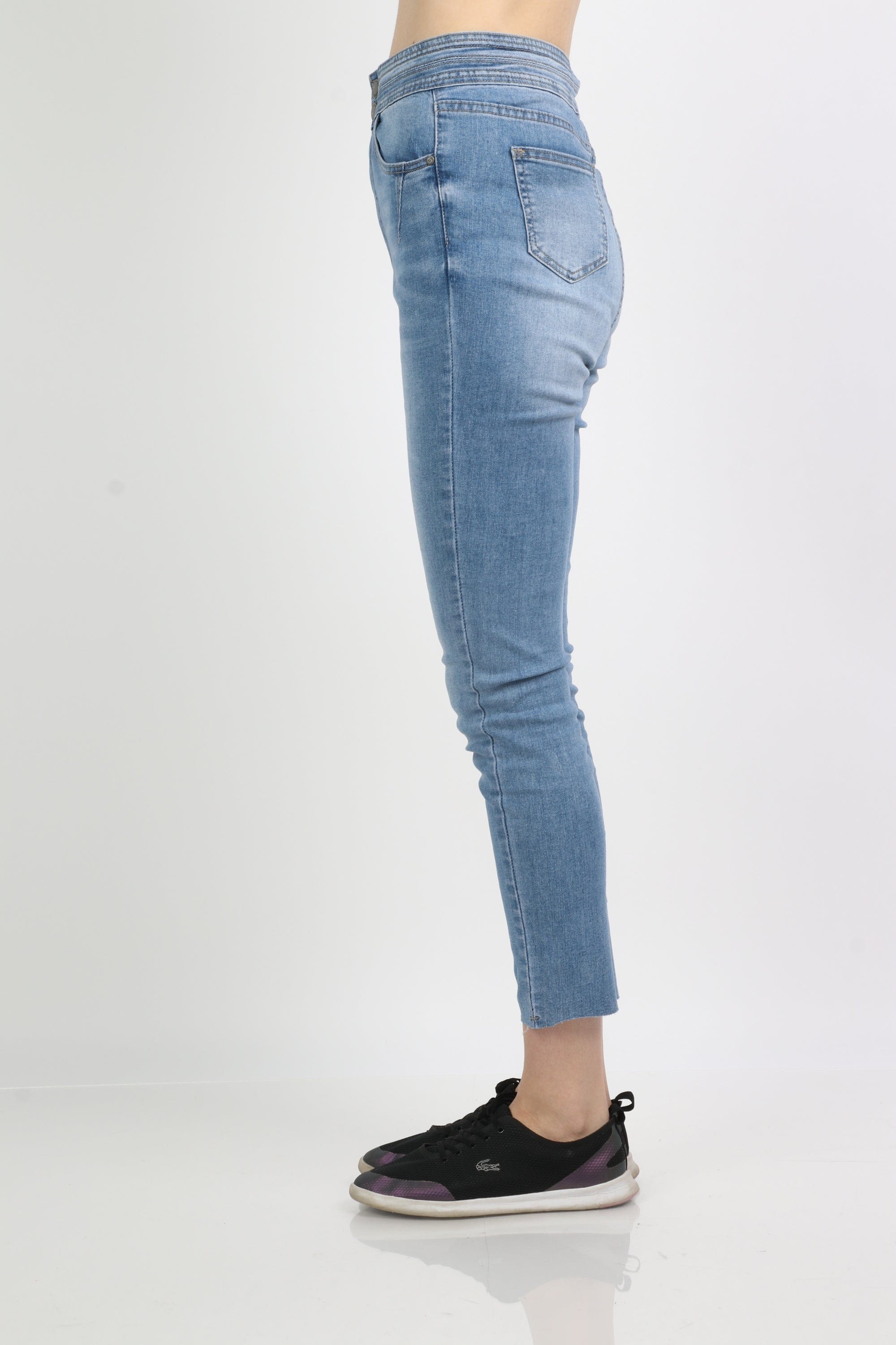 بنطلون جينز هاي ويست سكيني بسحاب وزرارين وجيوب أمامية طويل نسائي