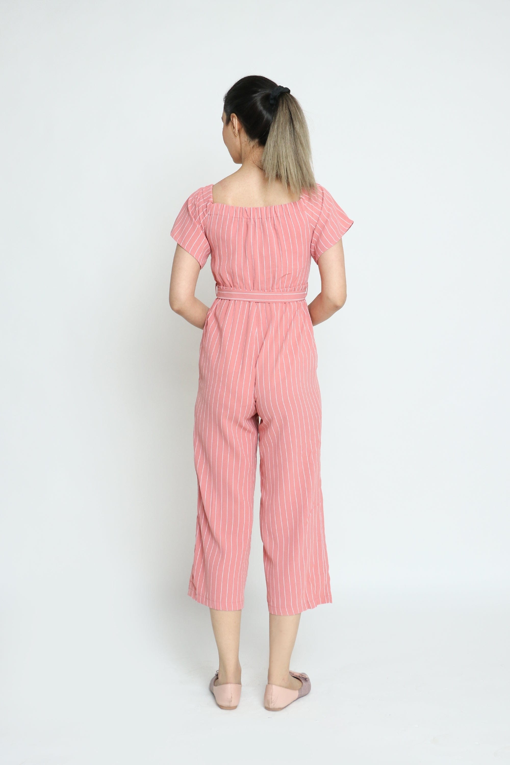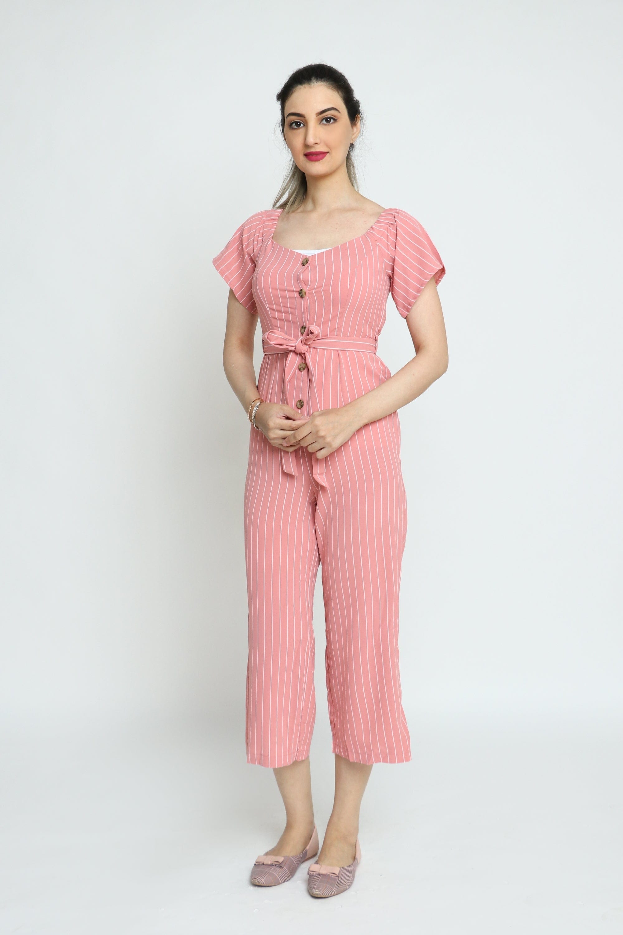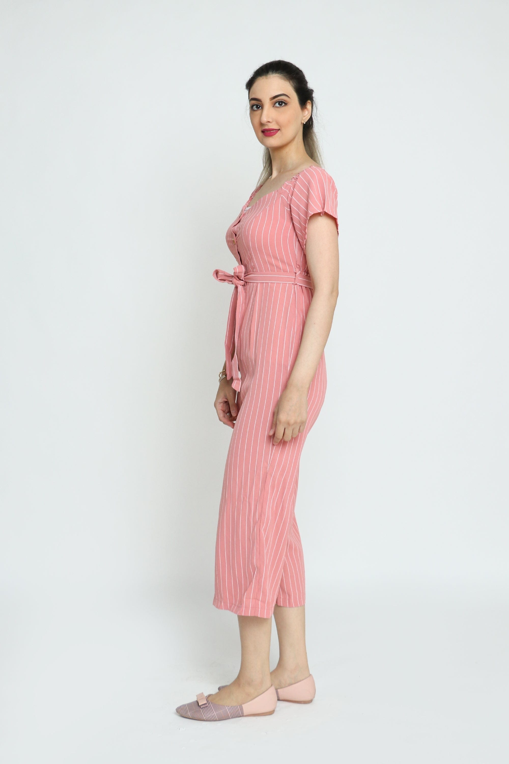 جمبسوت مخططة بالطول مع رباط على الخصر كم قصير نسائي