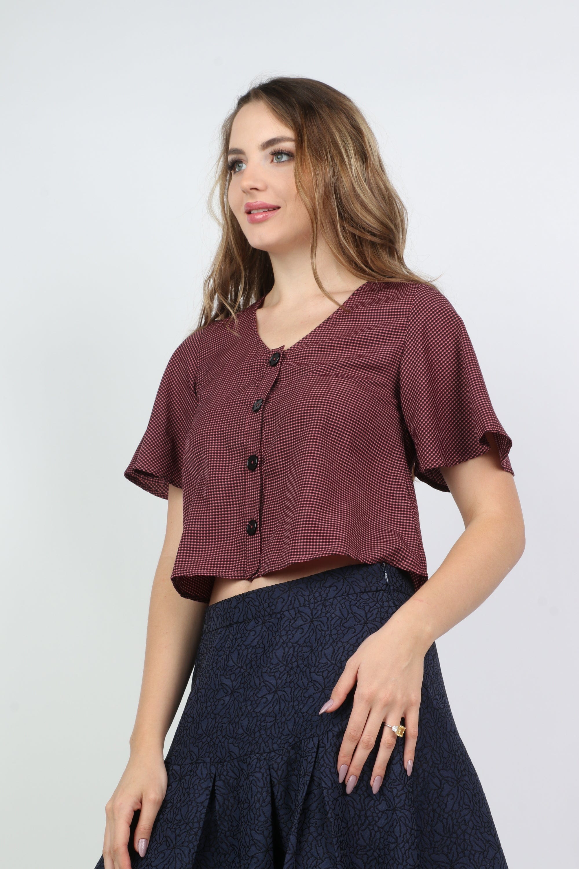 بلوزة بأكمام قصيرة بنمط عش نملي