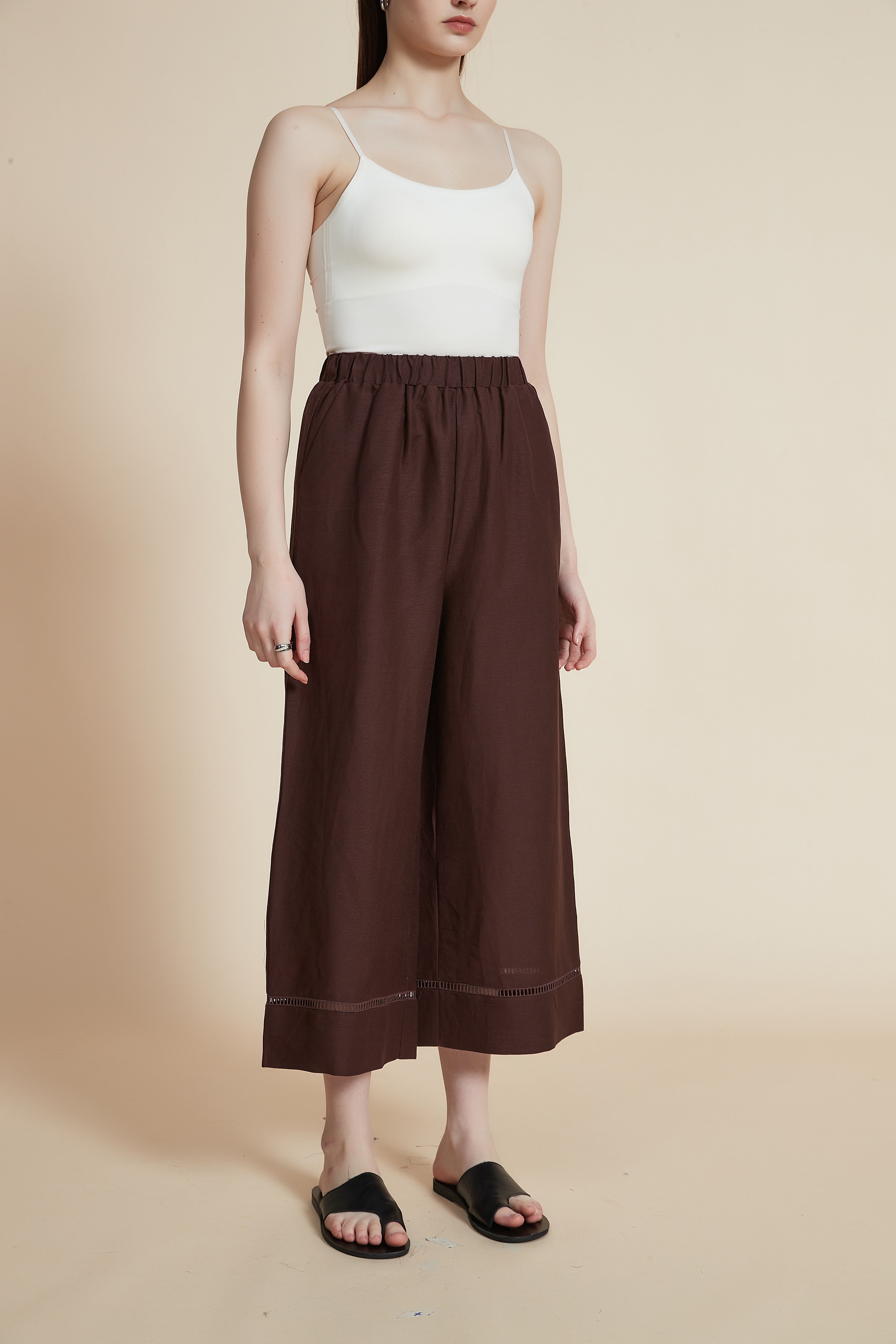 بنطلون ميدي مخرم نسائي واسع فضفاض سادة