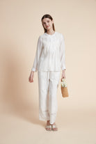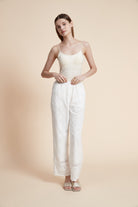 نسقي هذا البنطال الأبيض الأنيق مع بلوزة حريرية وكعب عالٍ لإطلالة عمل راقية، أو مع قميص أبيض كلاسيكي وحذاء مسطح لمظهر أنيق ومريح. لأسلوب كاجوال، ارتديه مع تيشيرت فضفاض وحذاء رياضي لإطلالة عصرية ومريحة في نهارك المليء بالأنشطة، أو مع سترة خفيفة في المساء.- يُغسل في الغسالة بماء بارد.