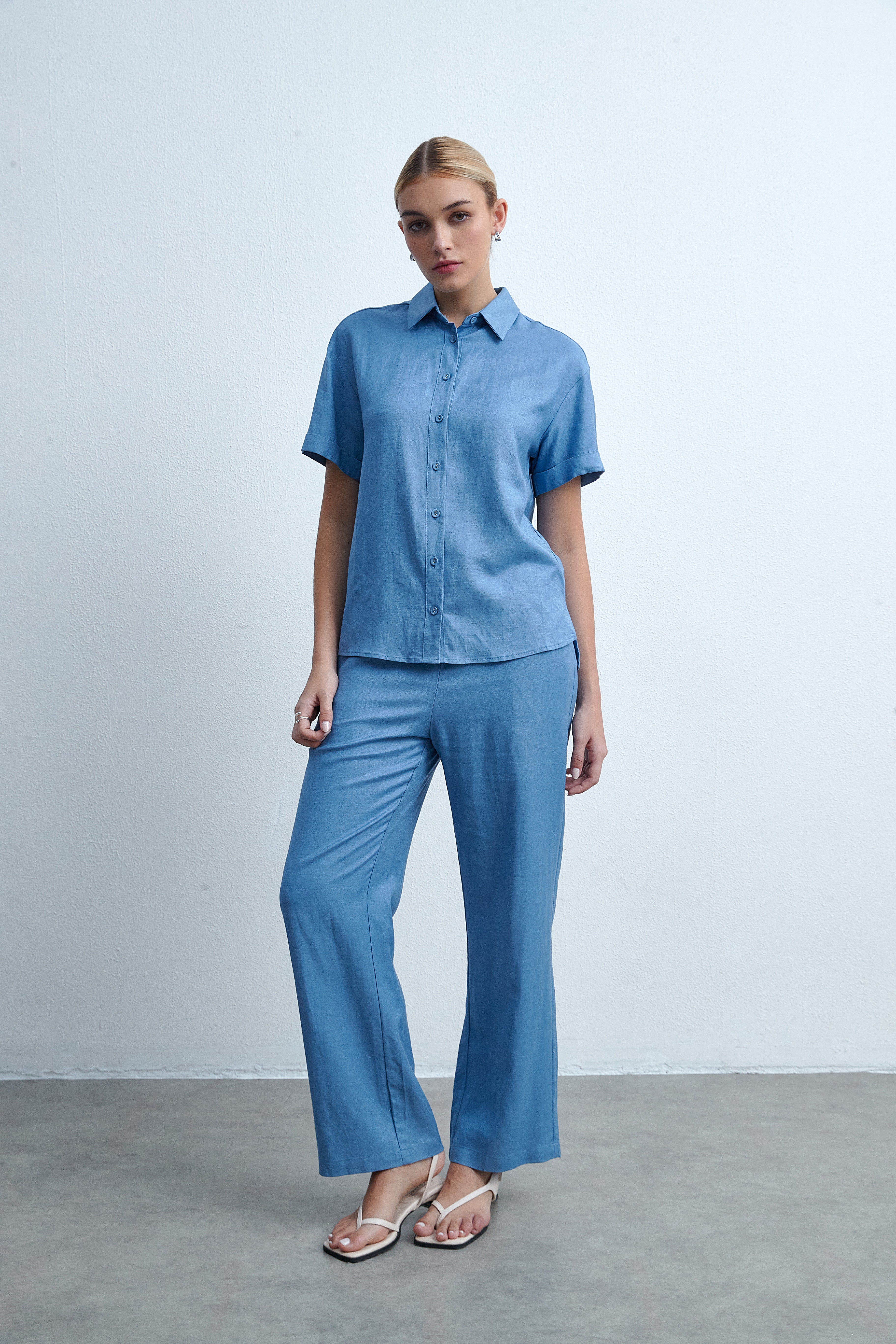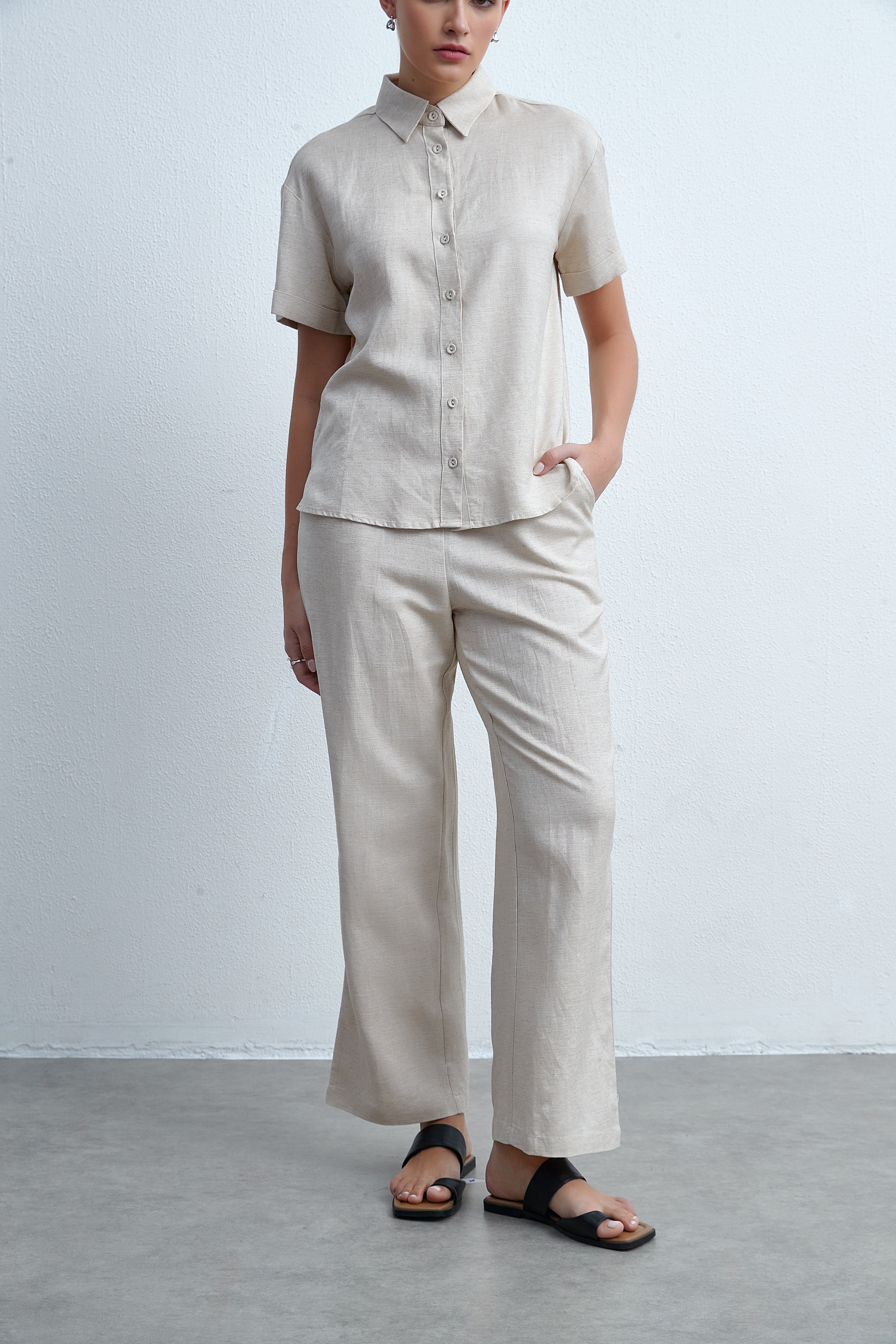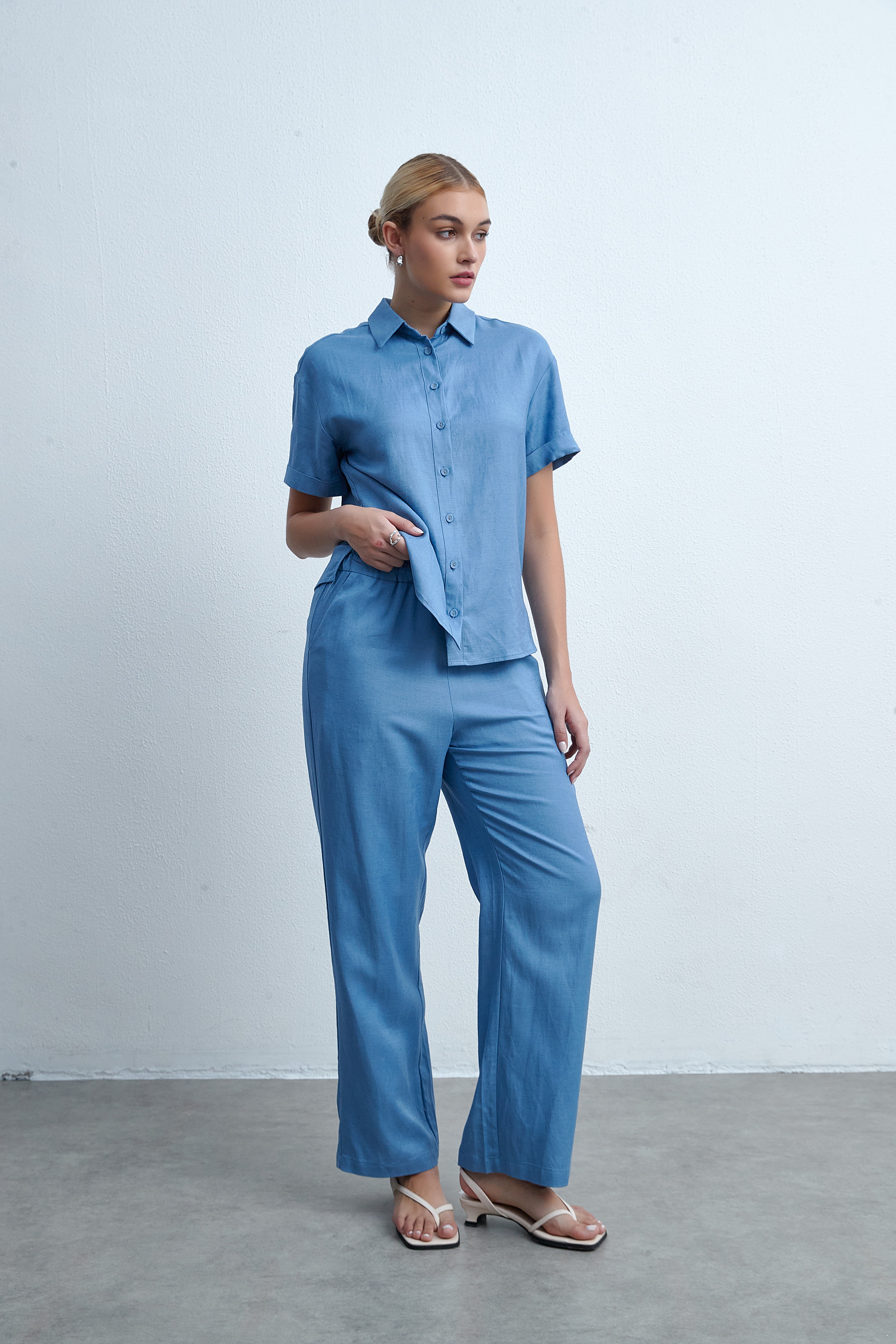 بنطلون طويل برجل واسعة سادة