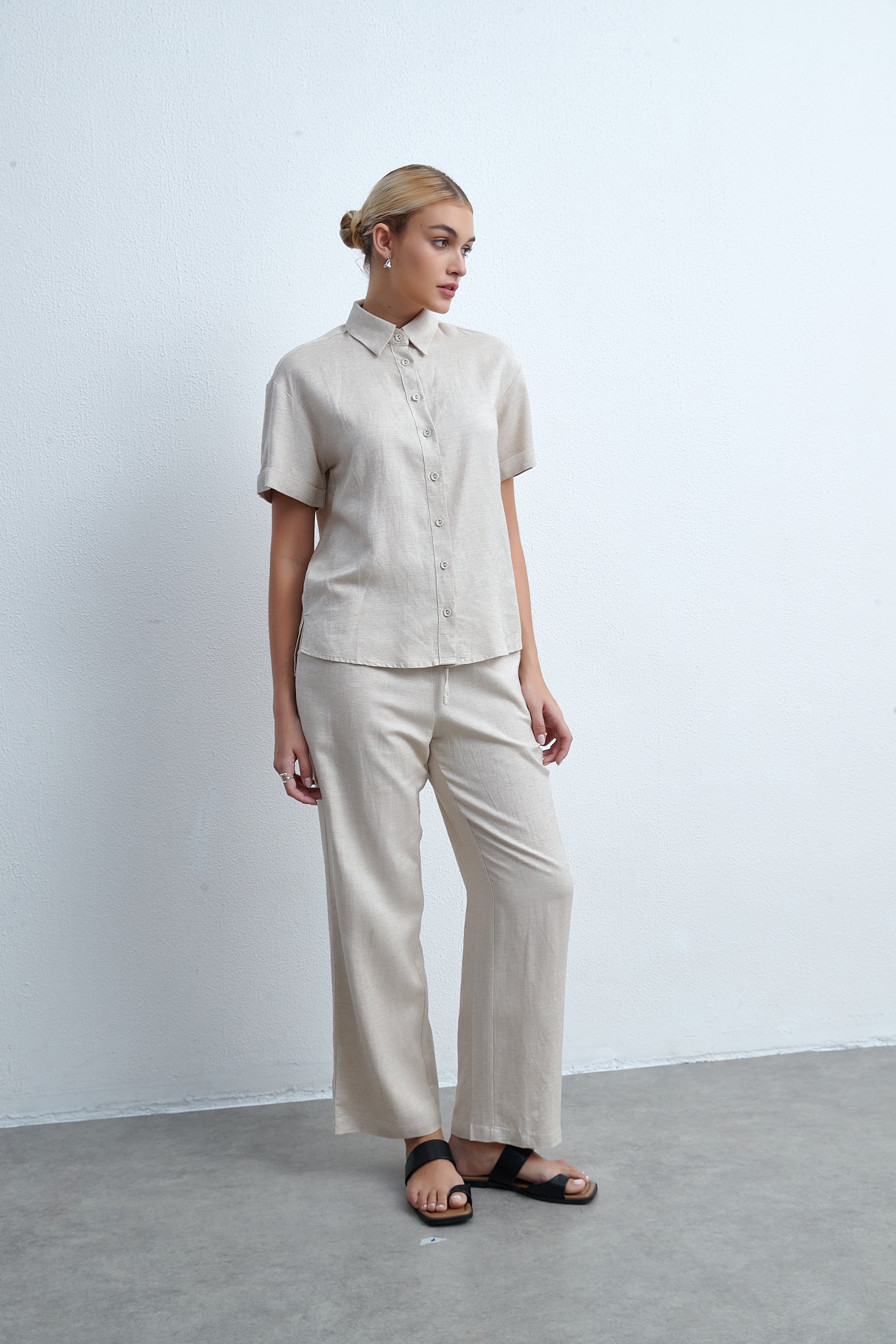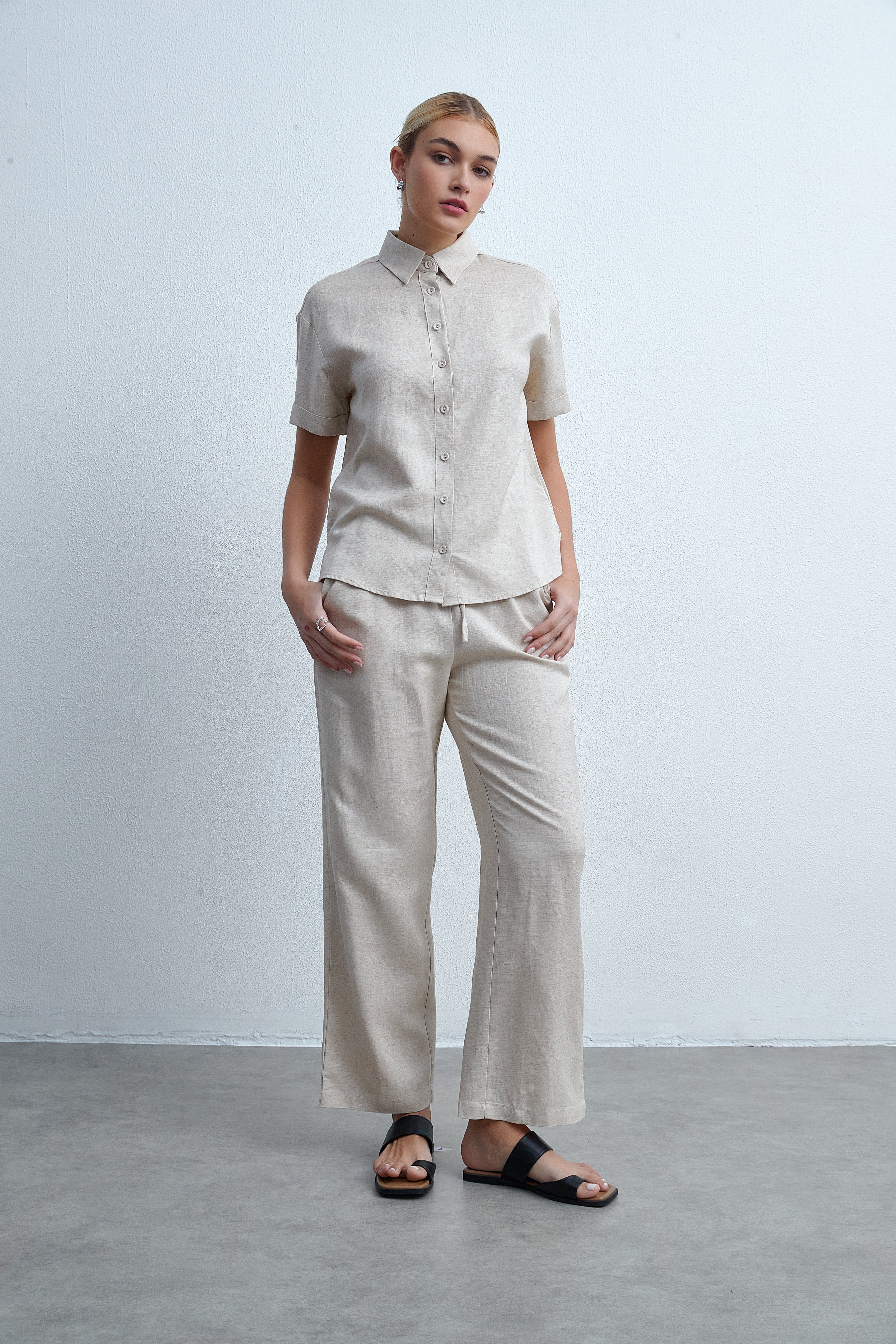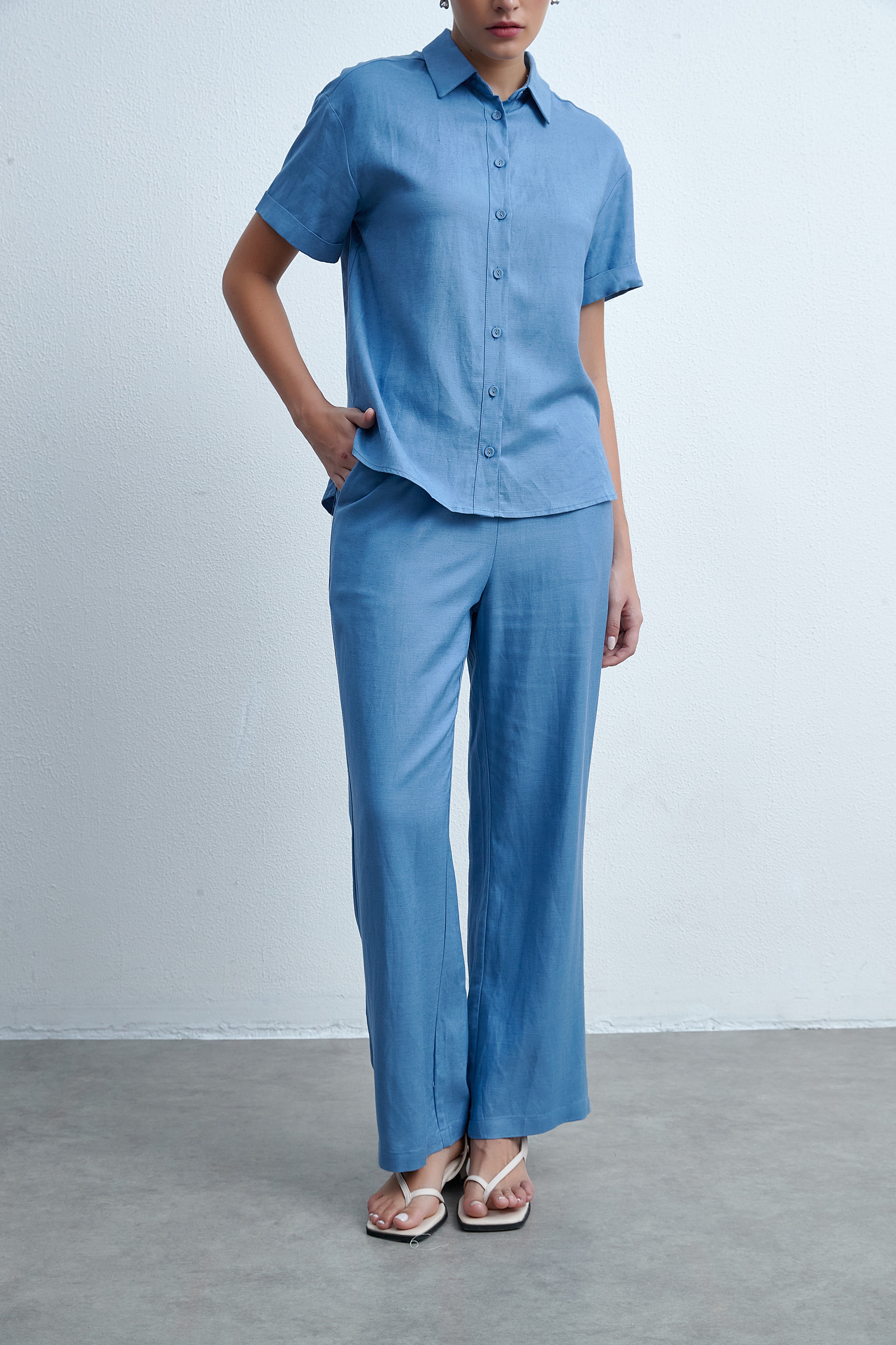 بنطلون طويل برجل واسعة سادة