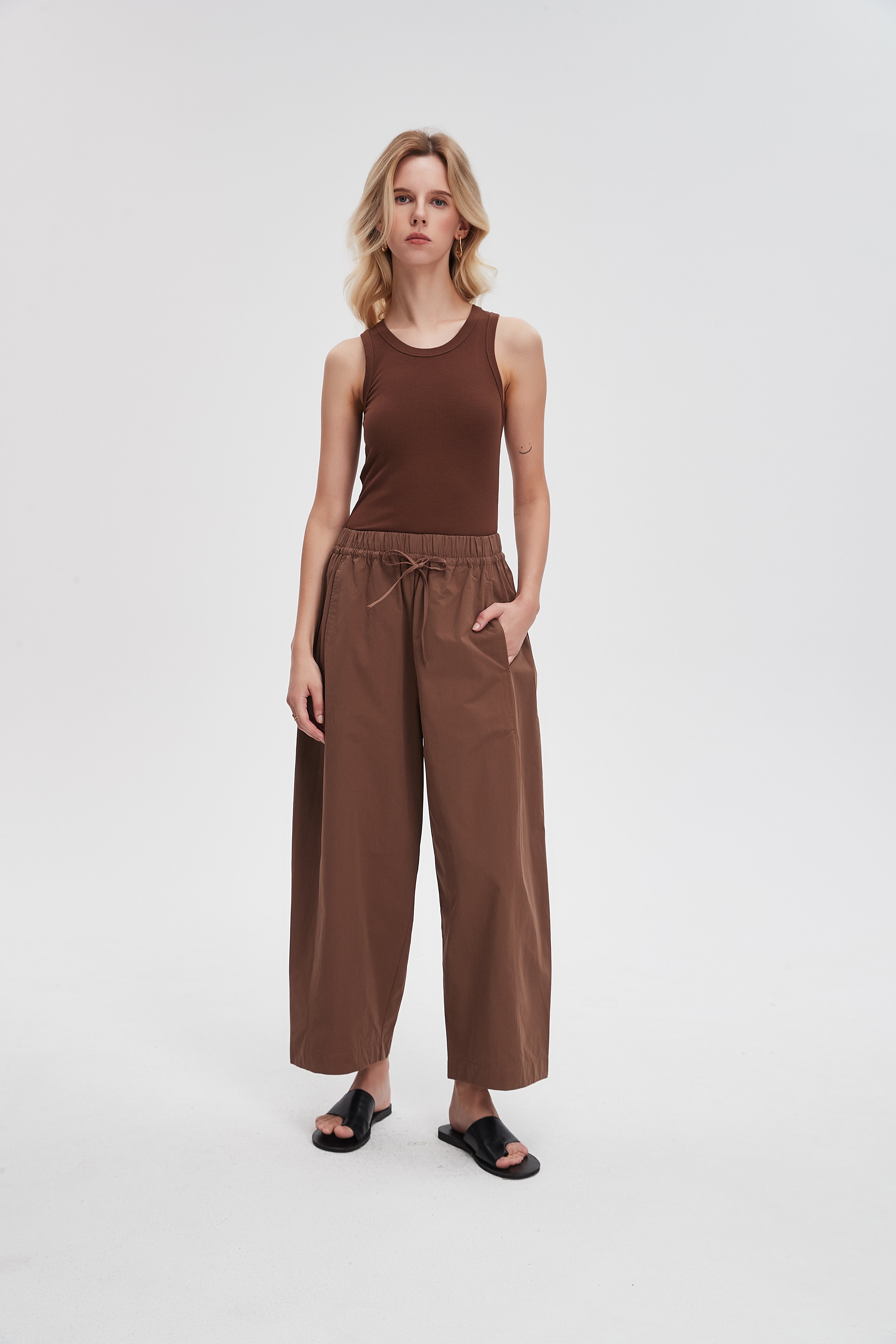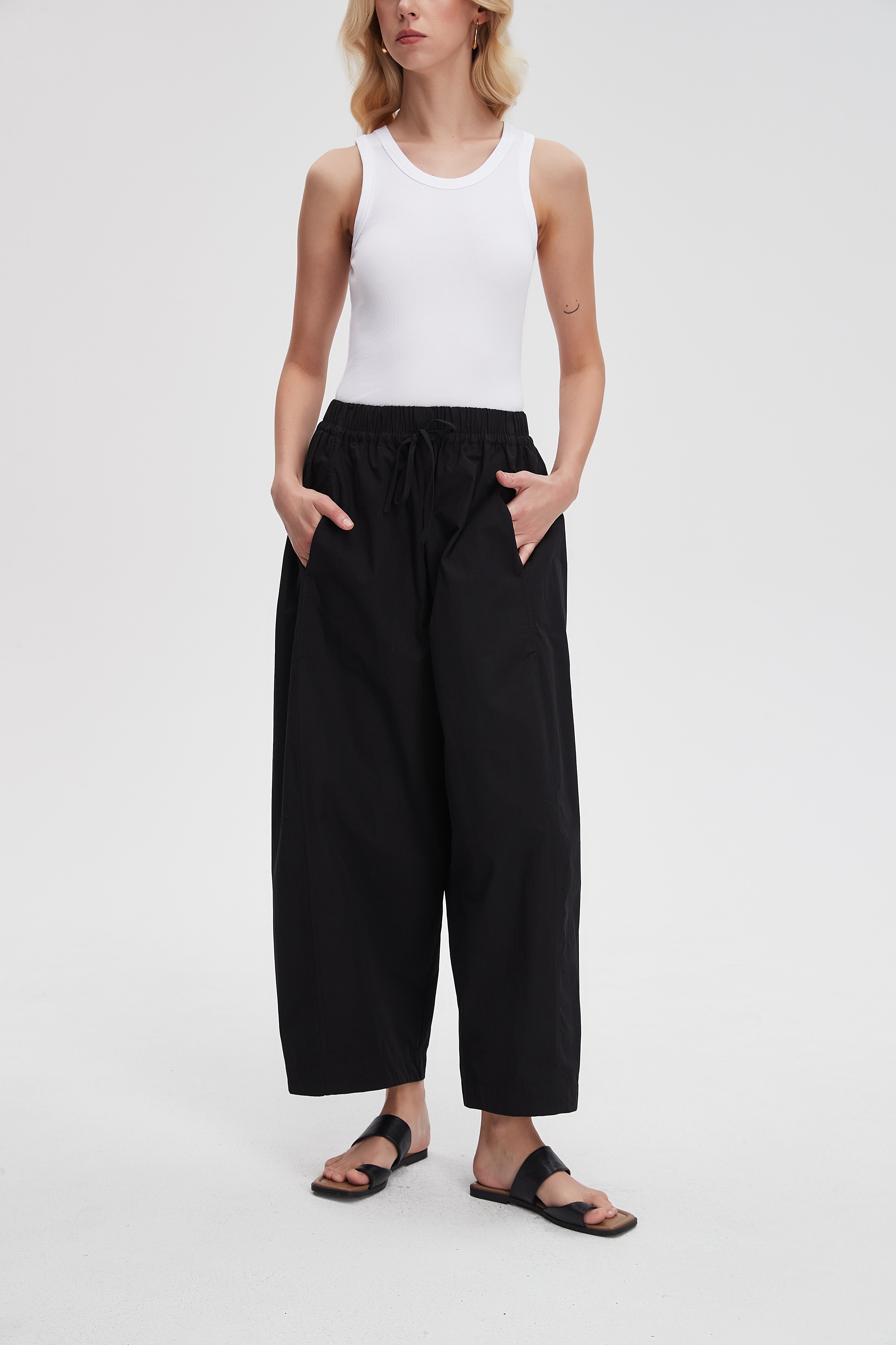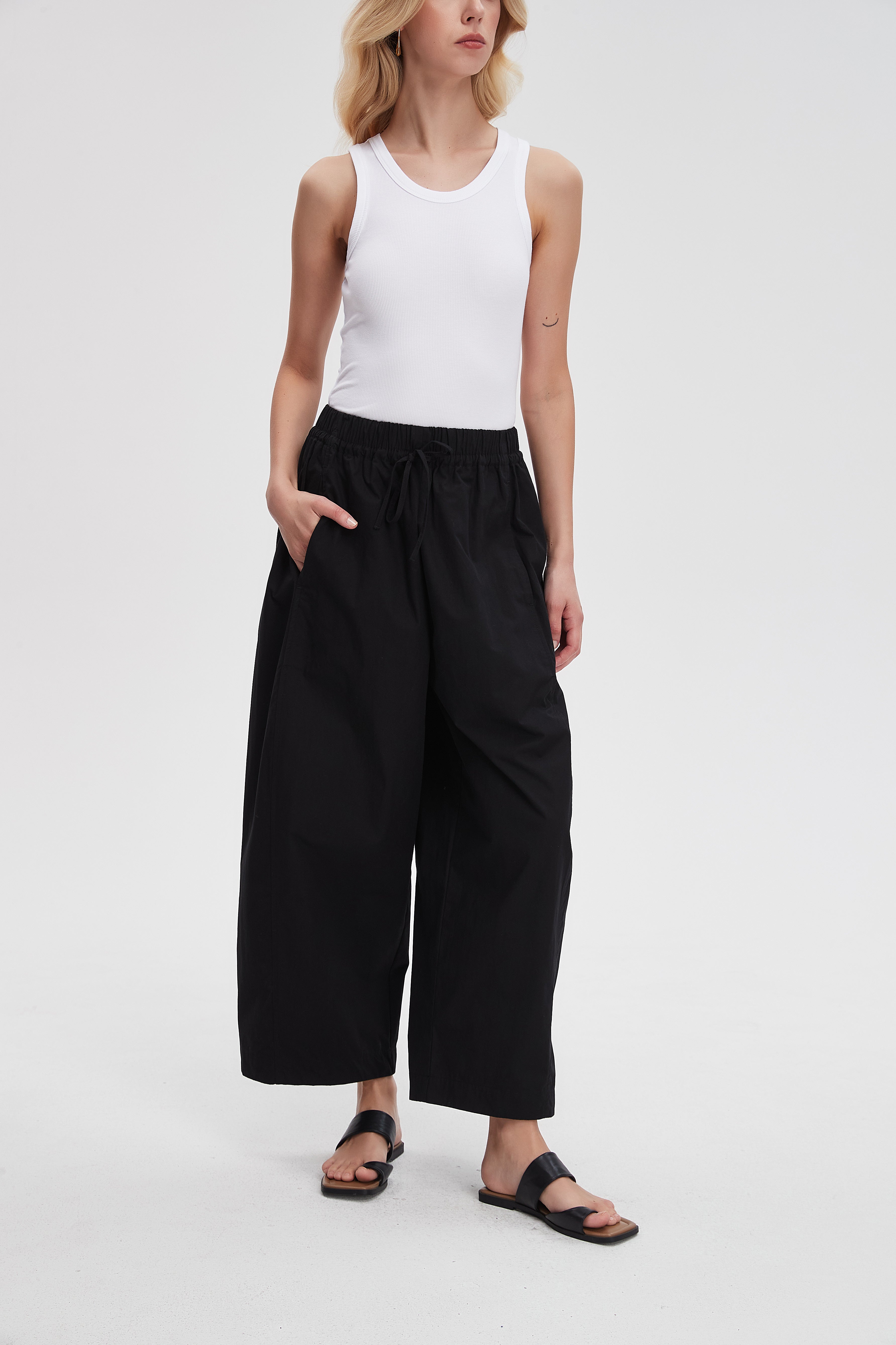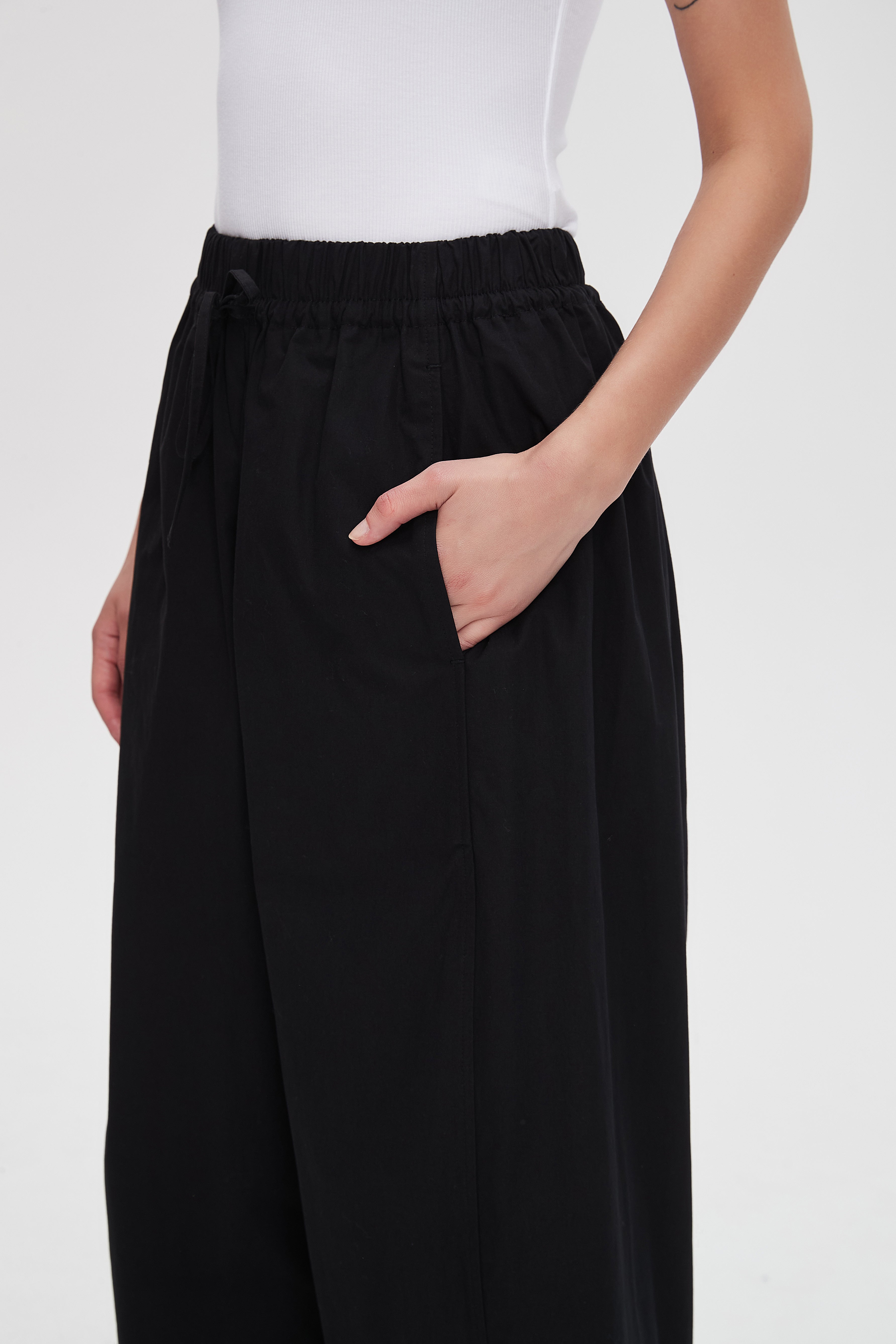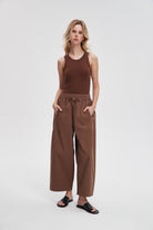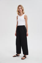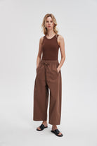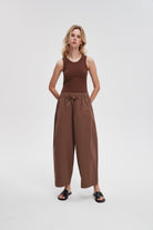 بنطلون وايد ليج طويل برباط خصر