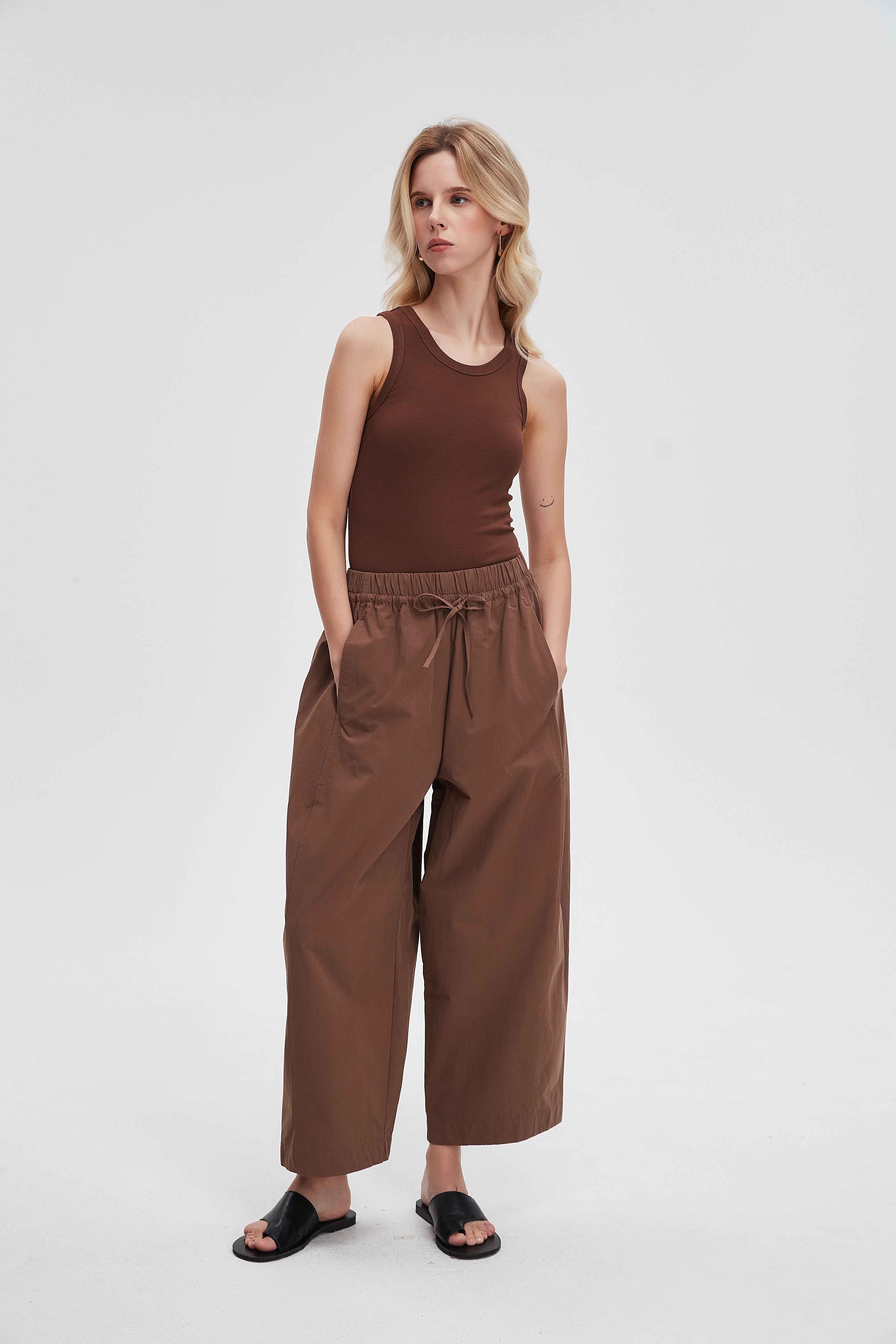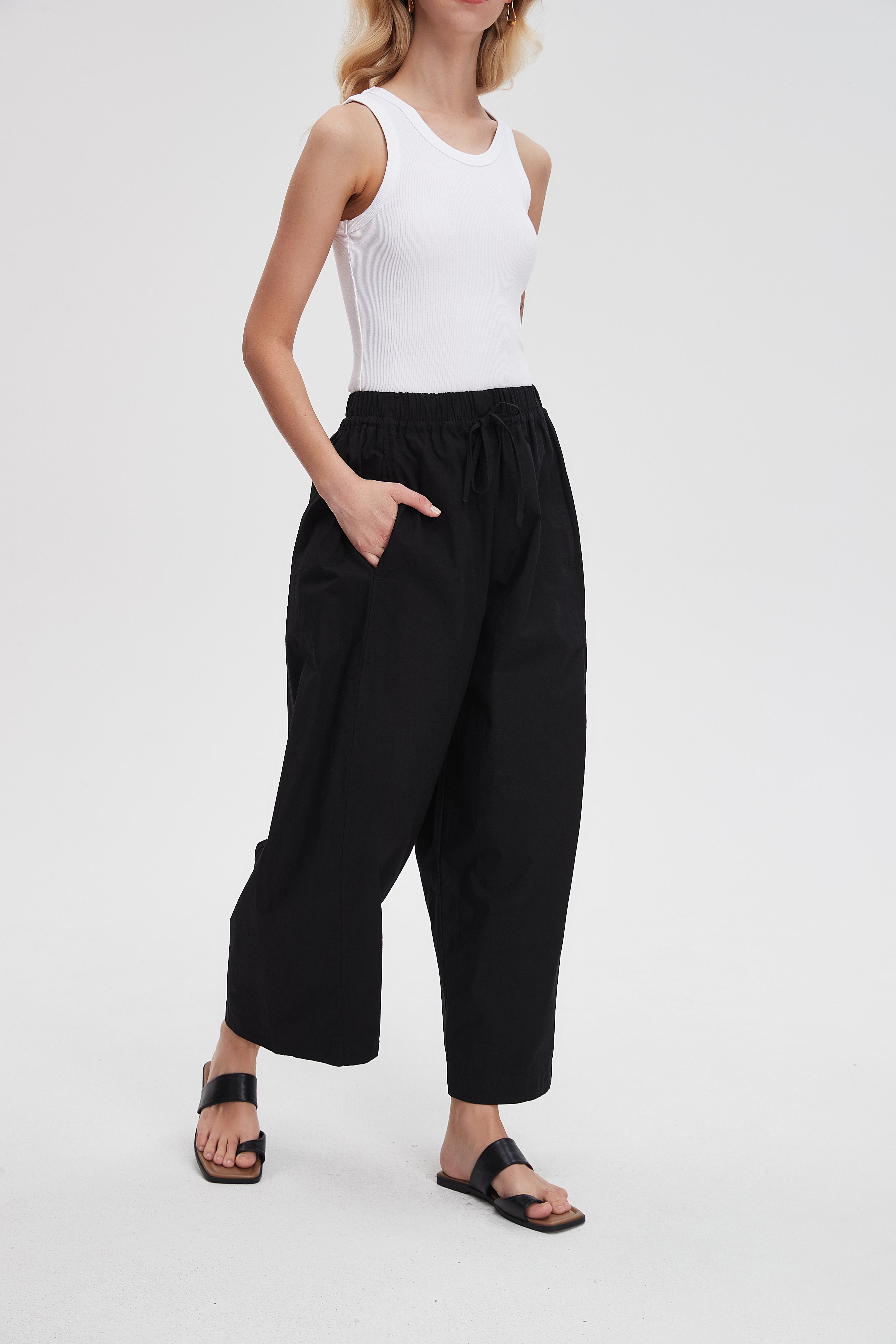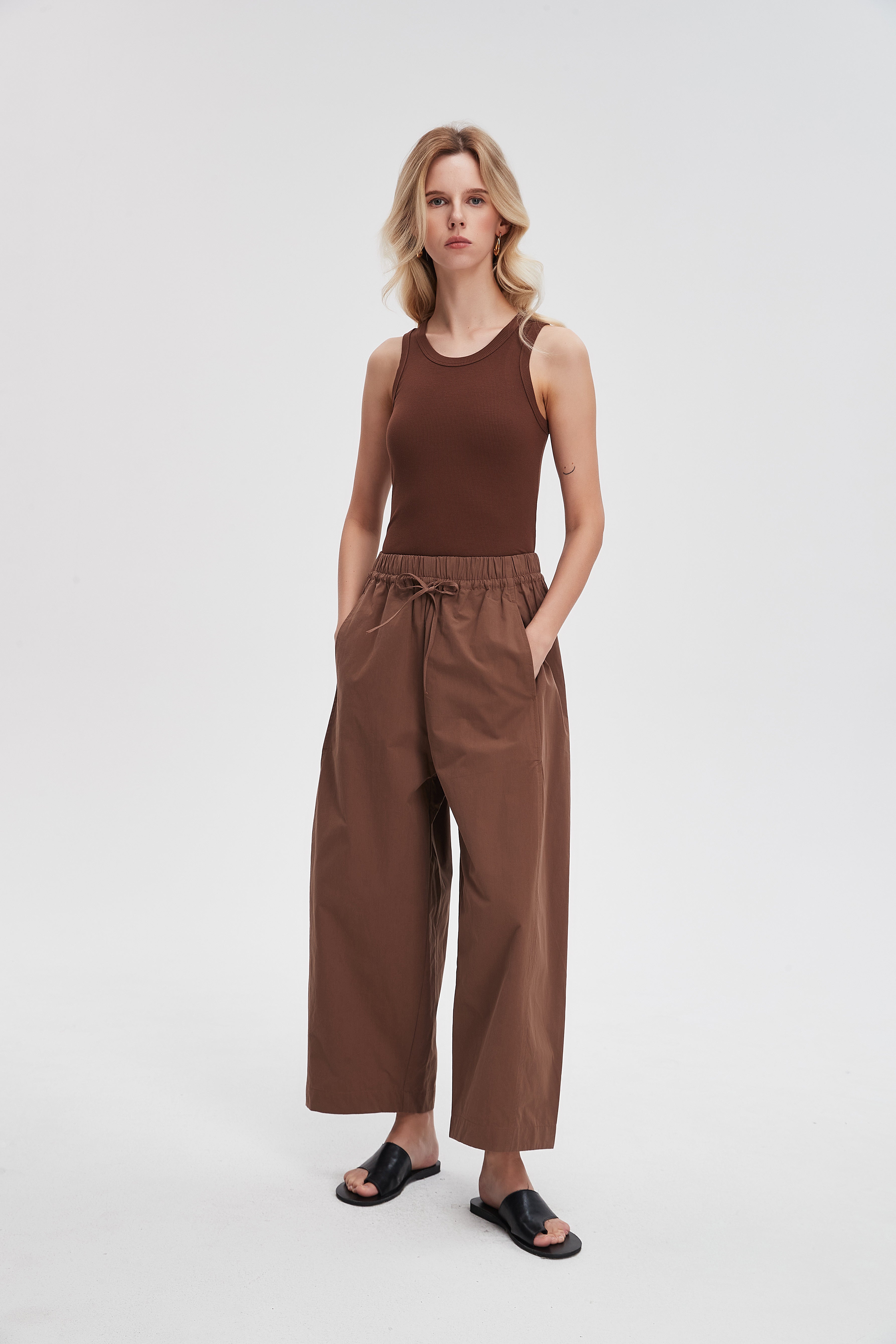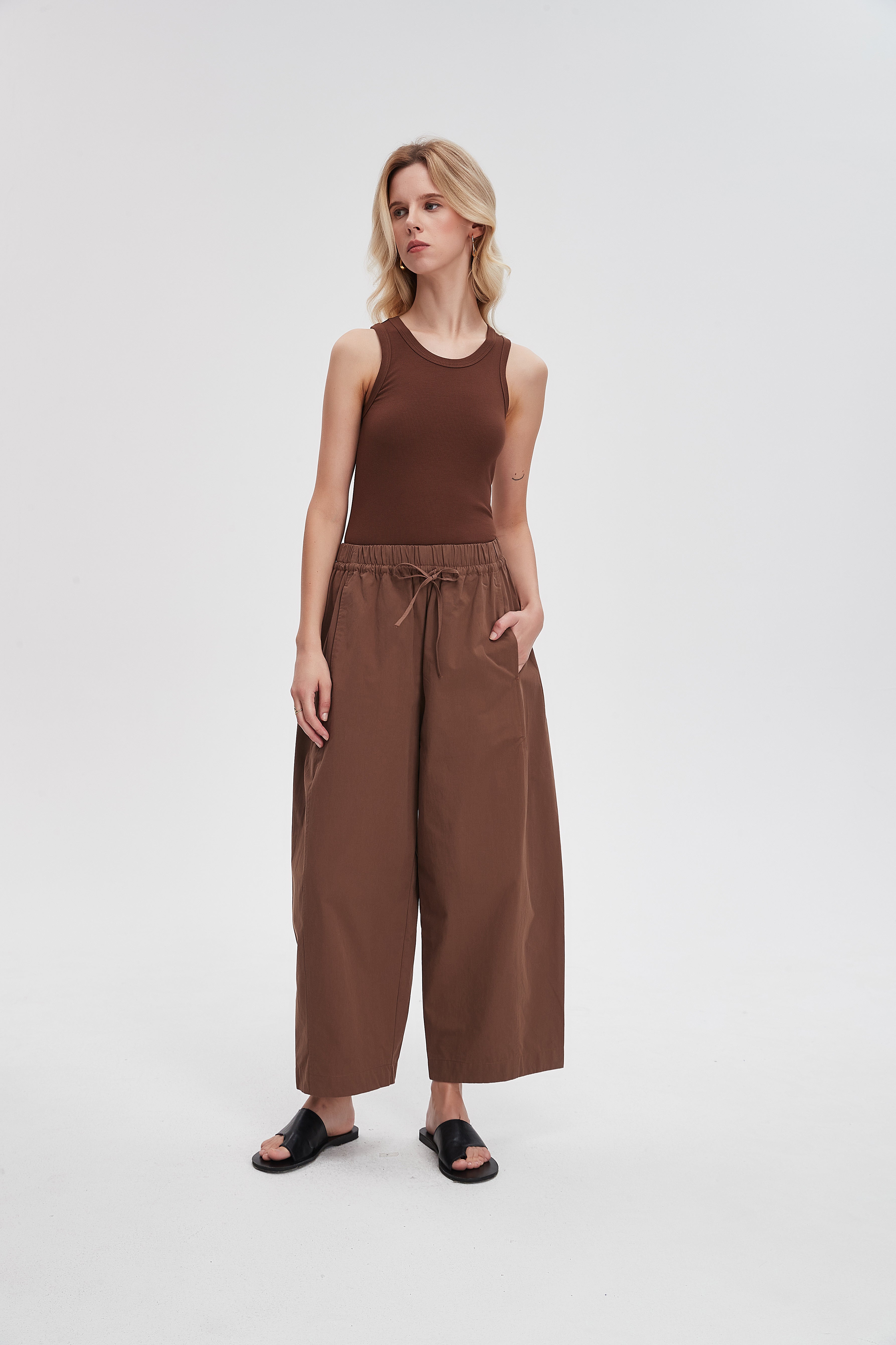 بنطلون وايد ليج طويل برباط خصر