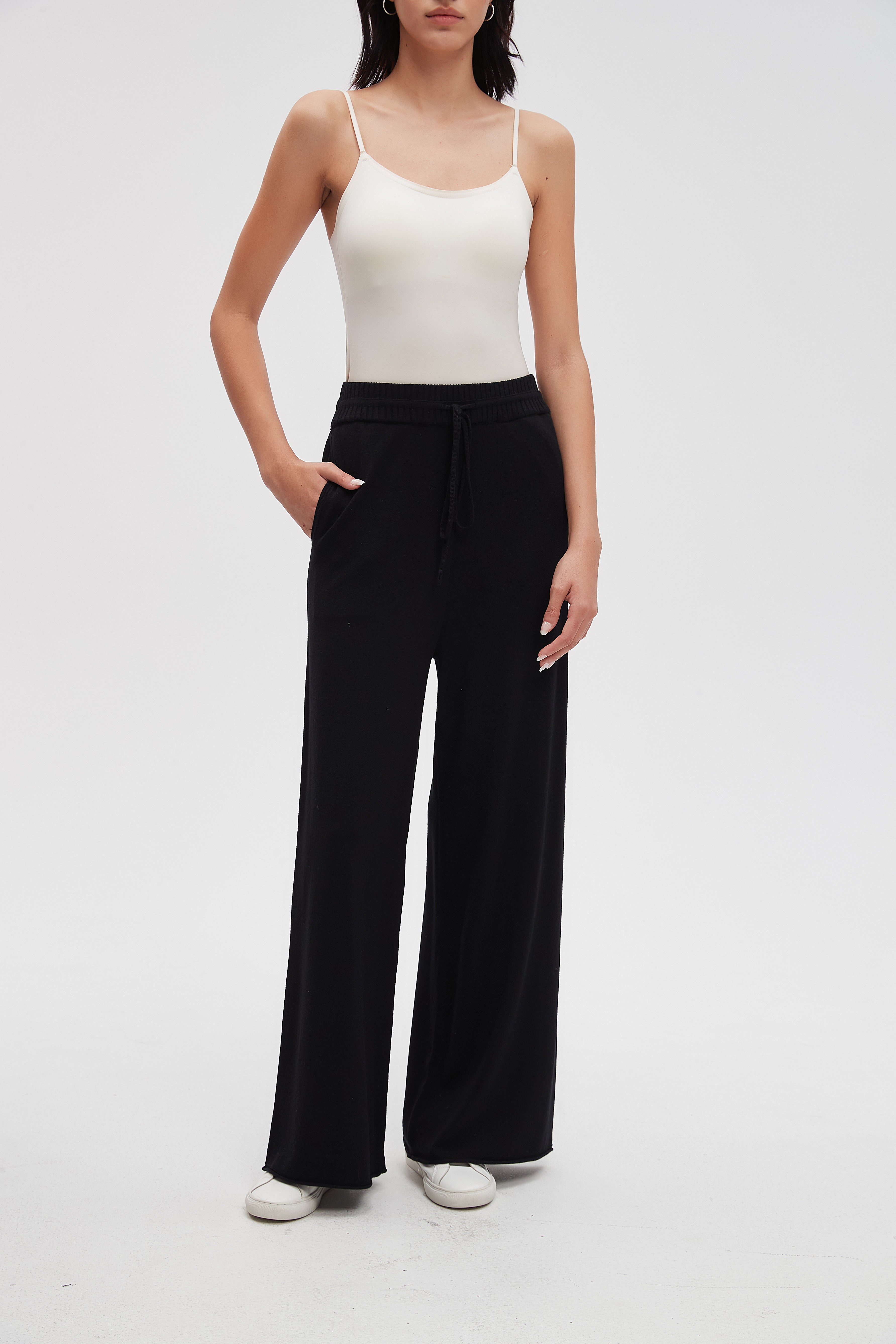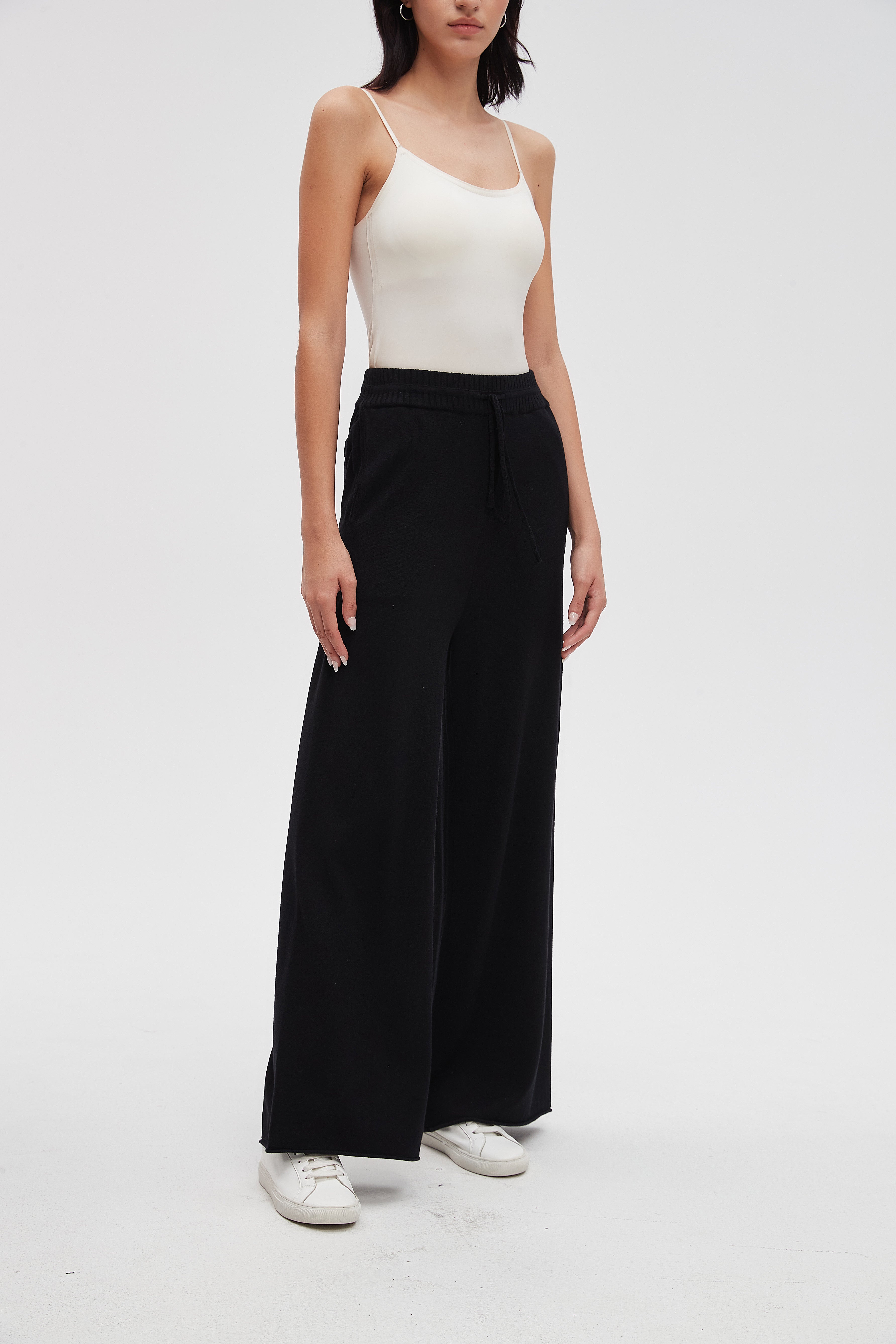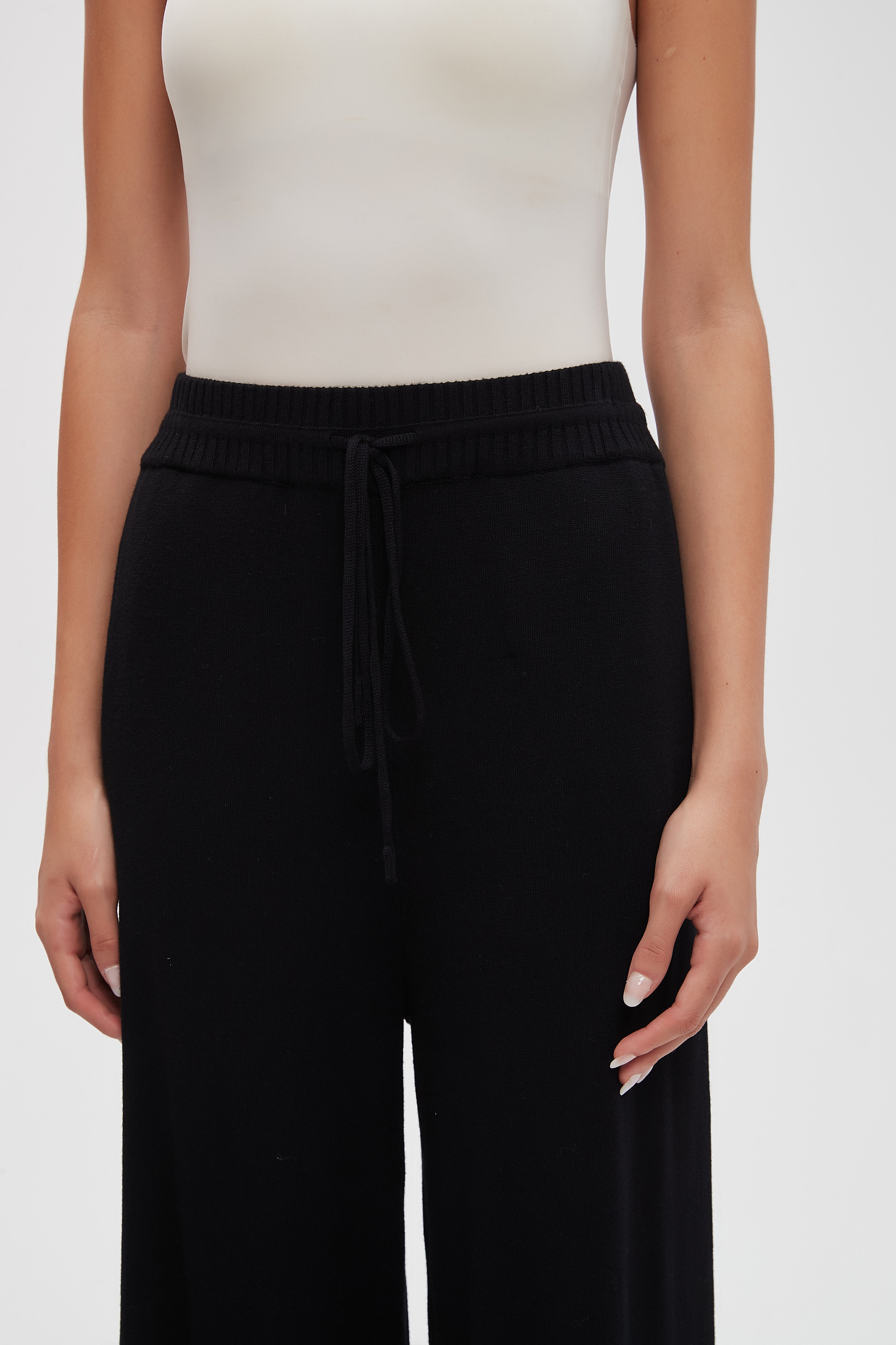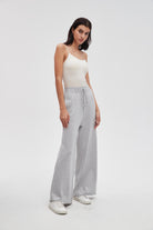 بنطلون طويل سادة واسع برباط على الخصر