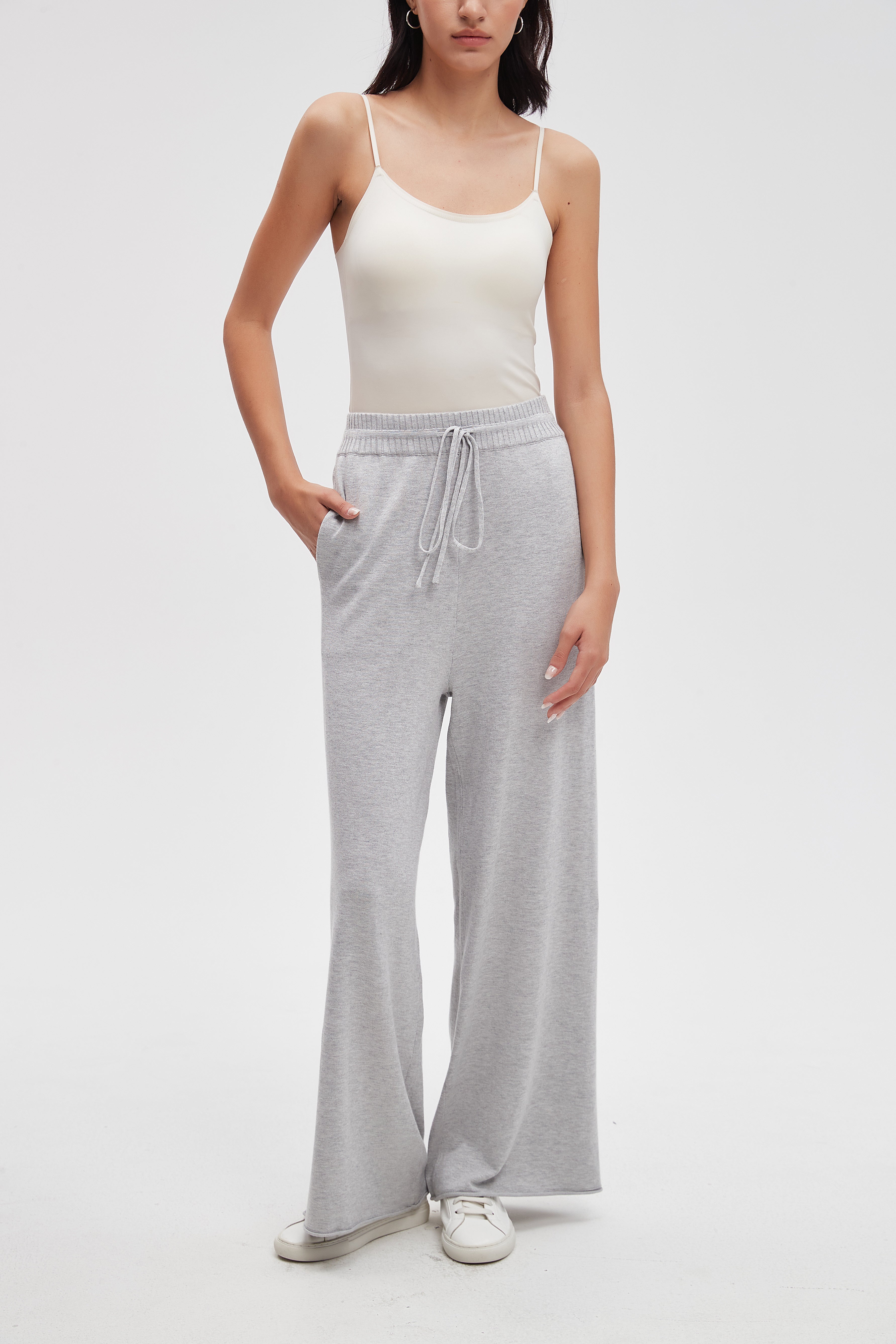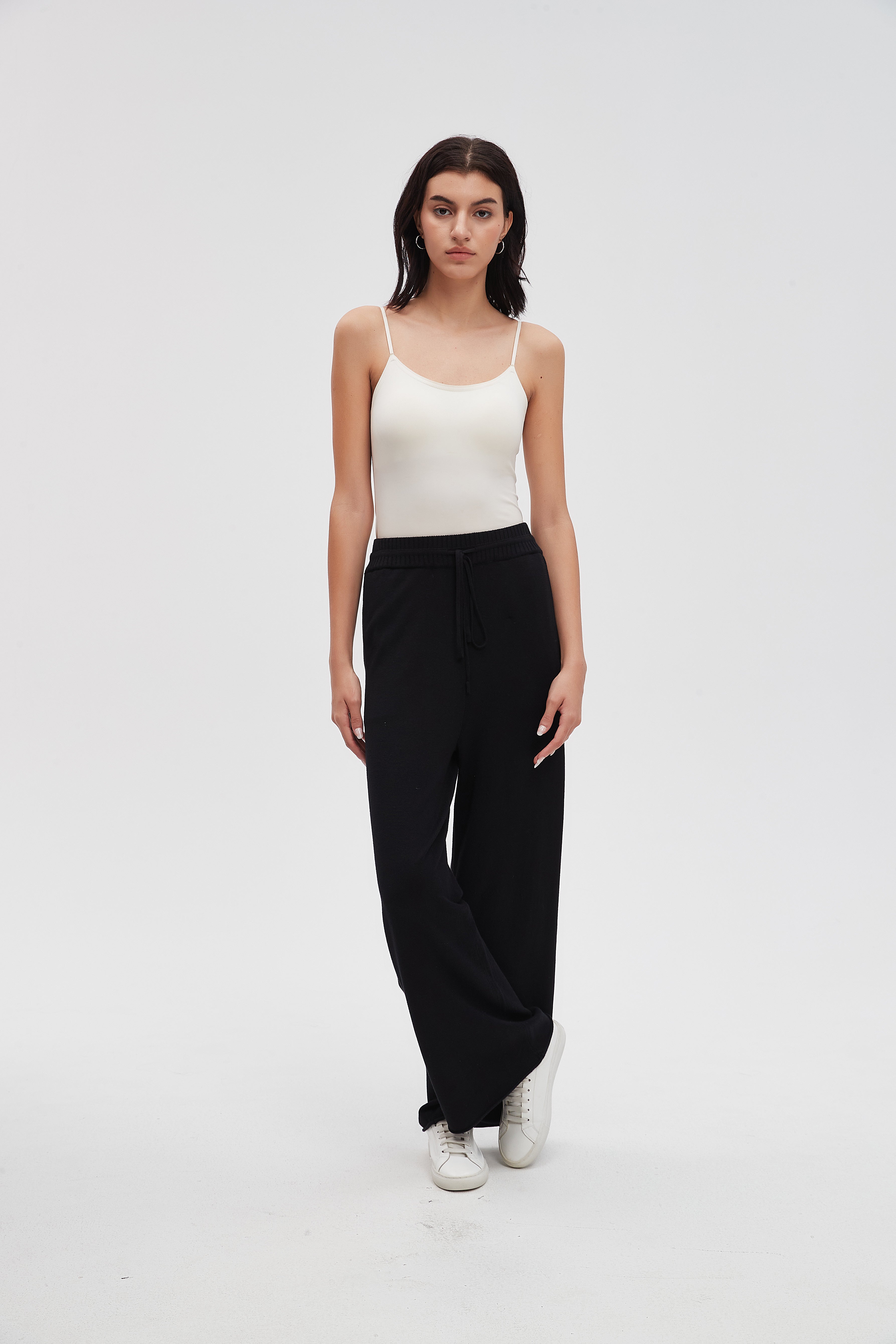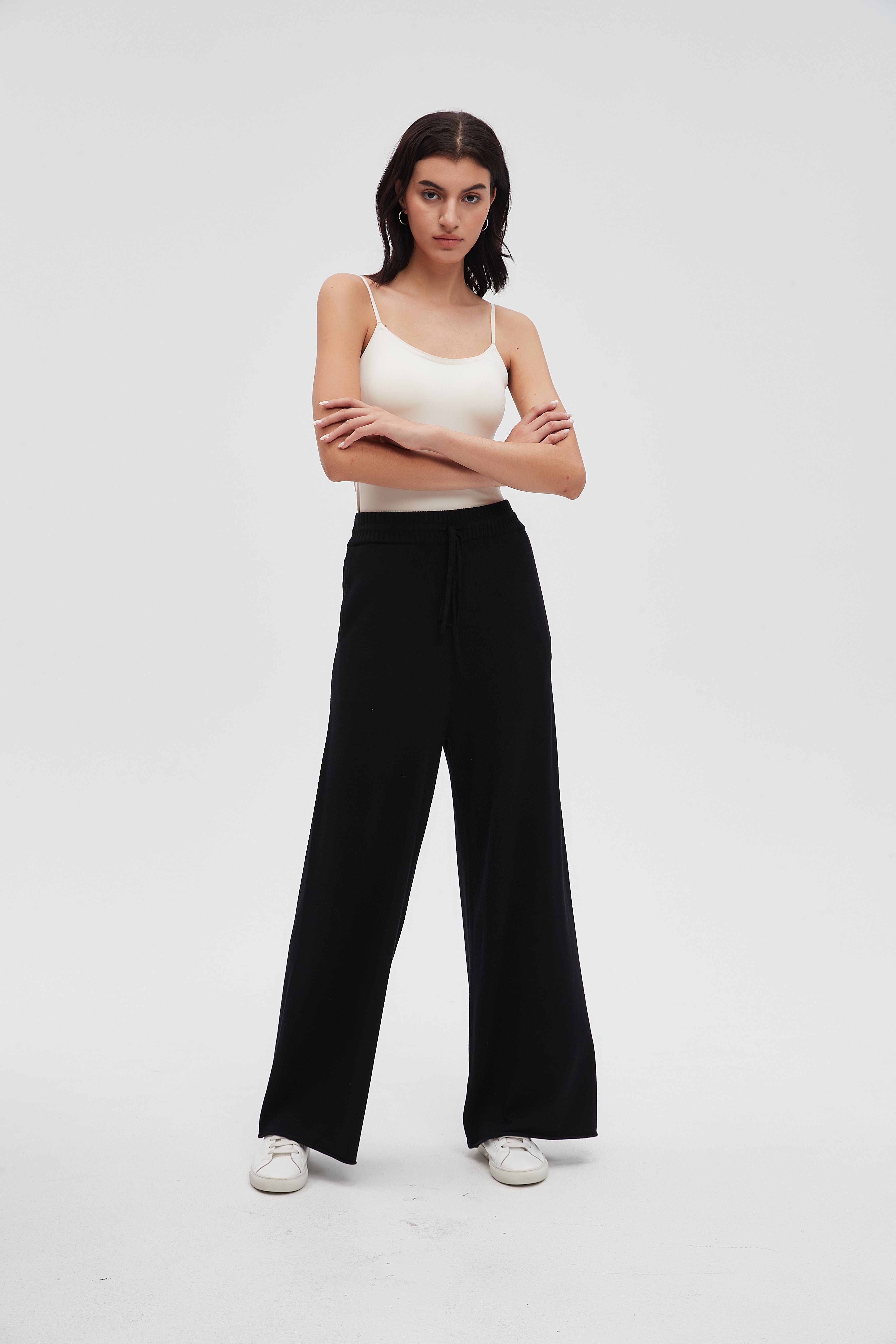 بنطلون طويل سادة واسع برباط على الخصر