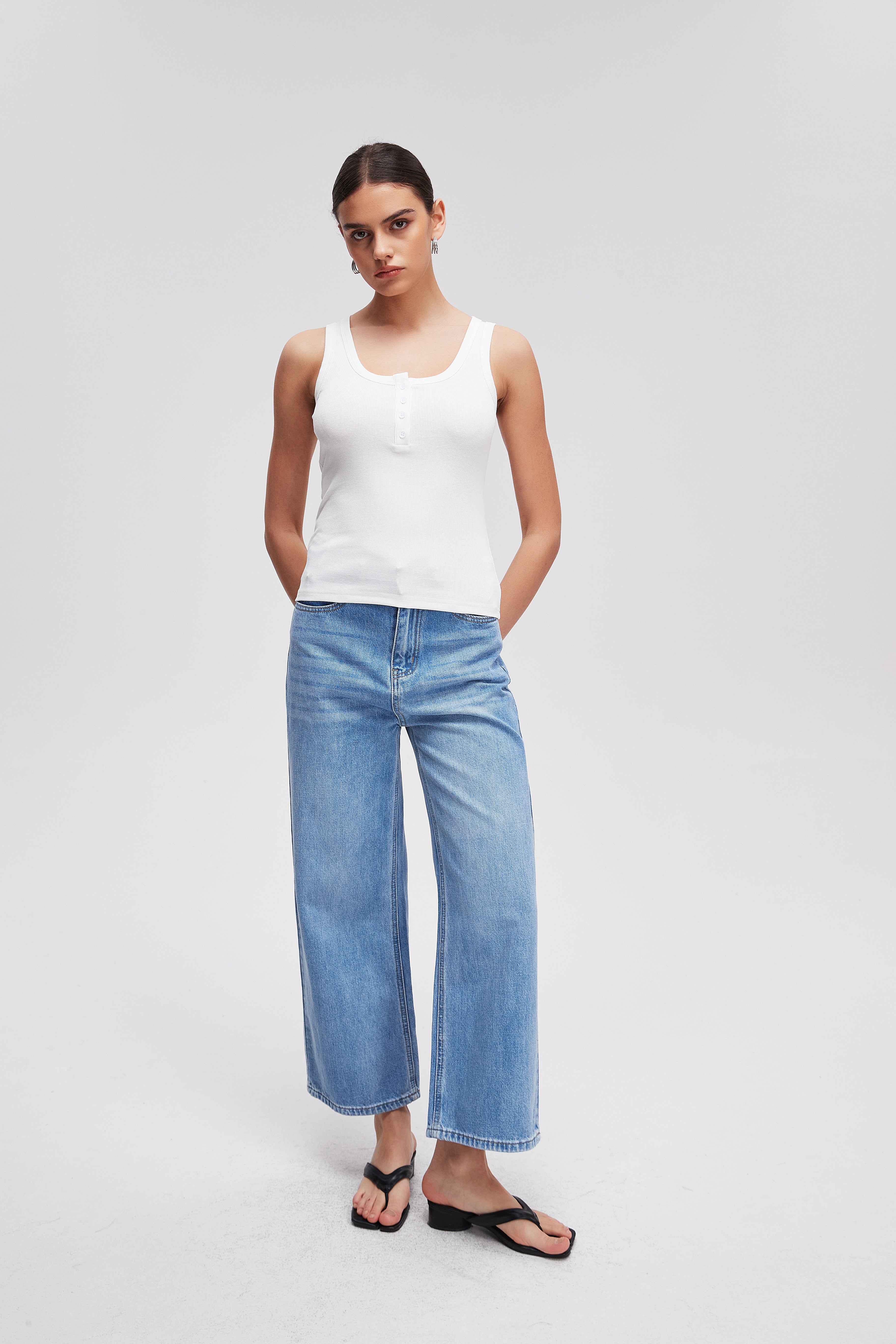 إذا كنت تبحثين عن قطعة مريحة وأنيقة تضيف لمسة من الجاذبية إلى خزانة ملابسك، فبنطلون الجينز برجل واسعة سادة هو الخيار المثالي لك. يتميز هذا البنطلون بتصميمه العصري الذي يجمع بين الراحة والأناقة، مما يجعله مثالياً للاستخدام اليومي أو للمناسبات. يمكن تنسيقه بسهولة مع مختلف أنواع البلوزات والأحذية، مما يجعله خيارًا مثاليًا لكل امرأة تبحث عن الأناقة بدون عناء. لا تفوتي الفرصة لتكوني جزءًا من صيحات الموضة، واطلبي الآن عبر الإنترنت لتجديد إطلالتك! رقم المنتج: nh26q1fl001