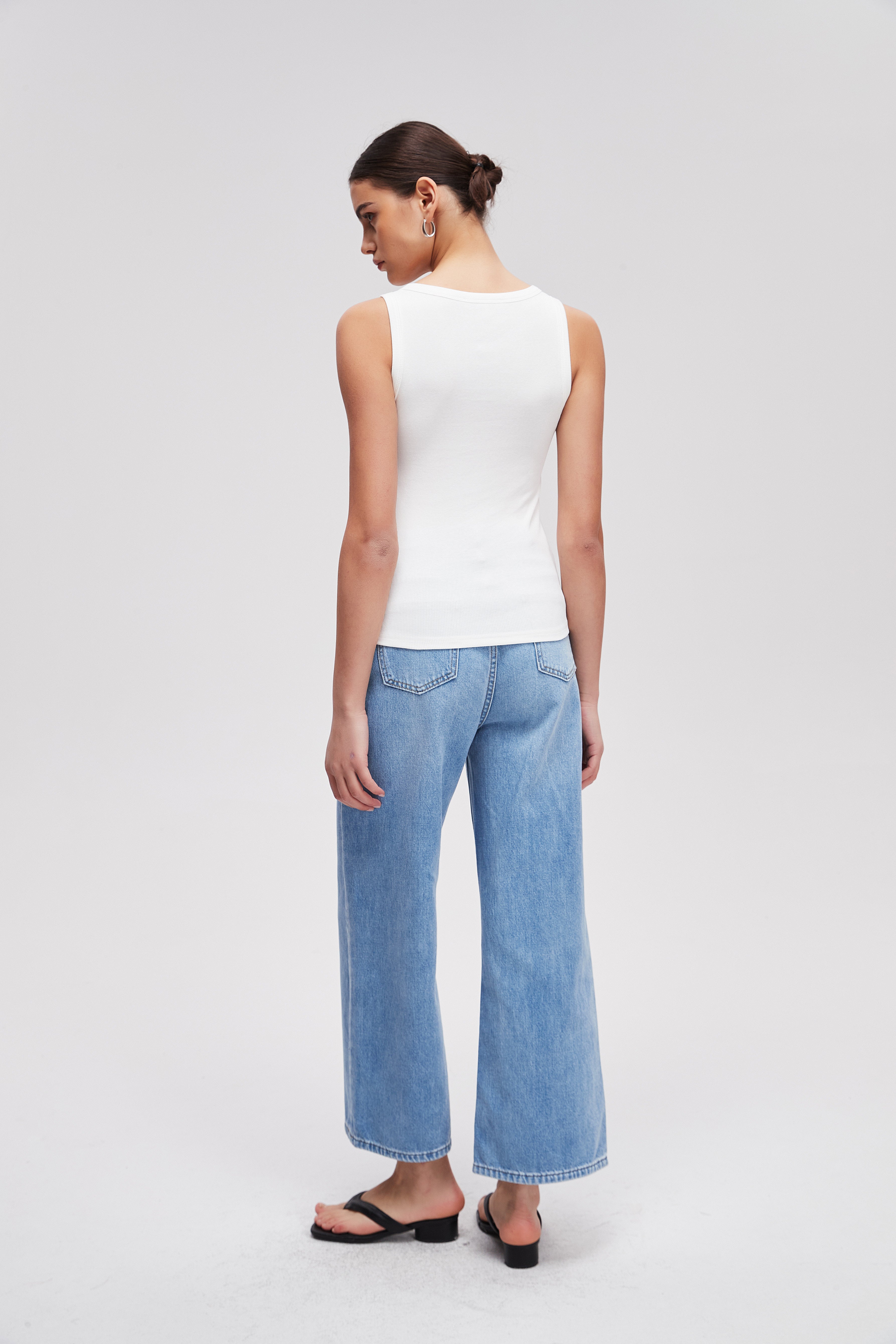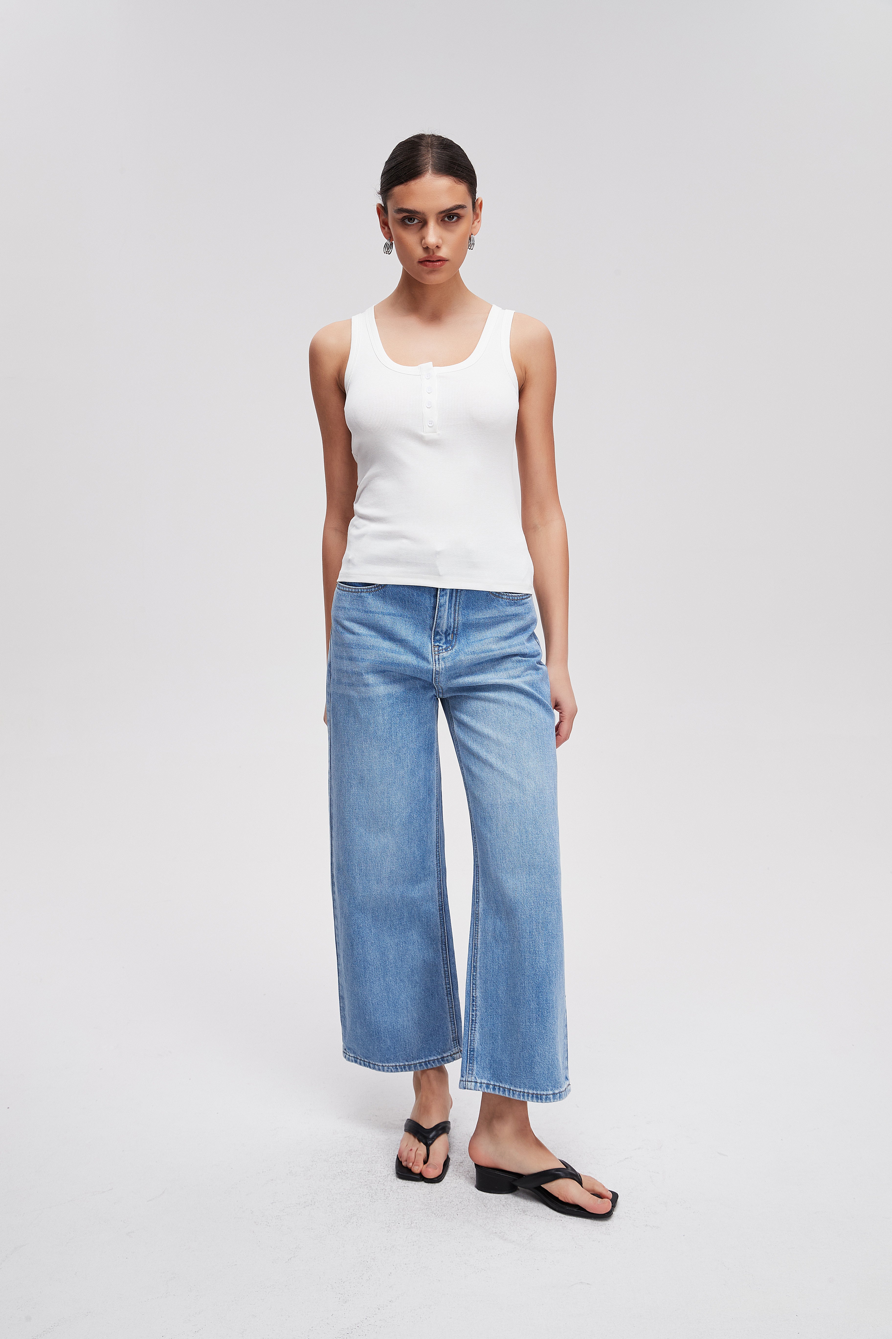 بنطلون جينز برجل واسعة سادة