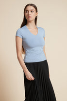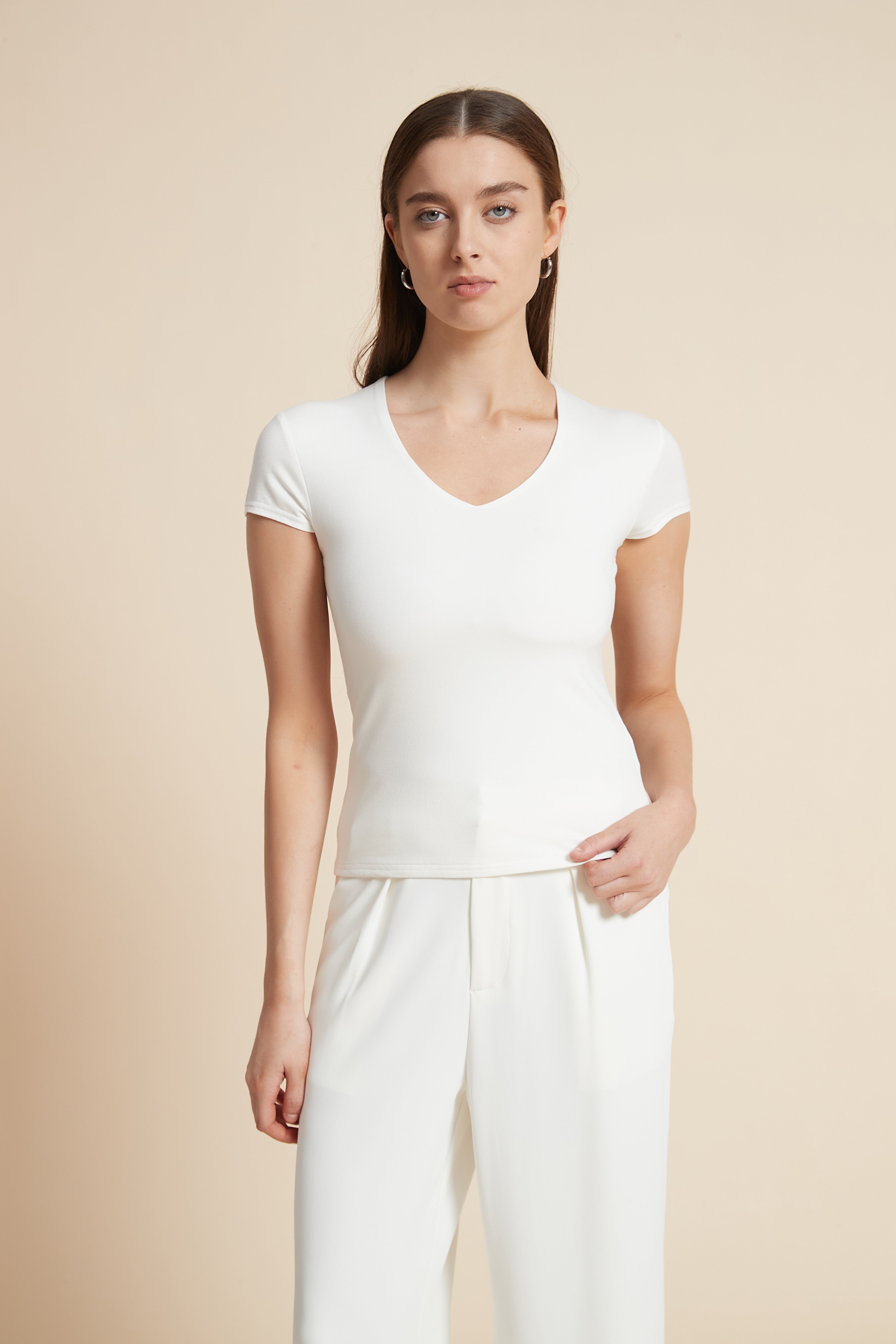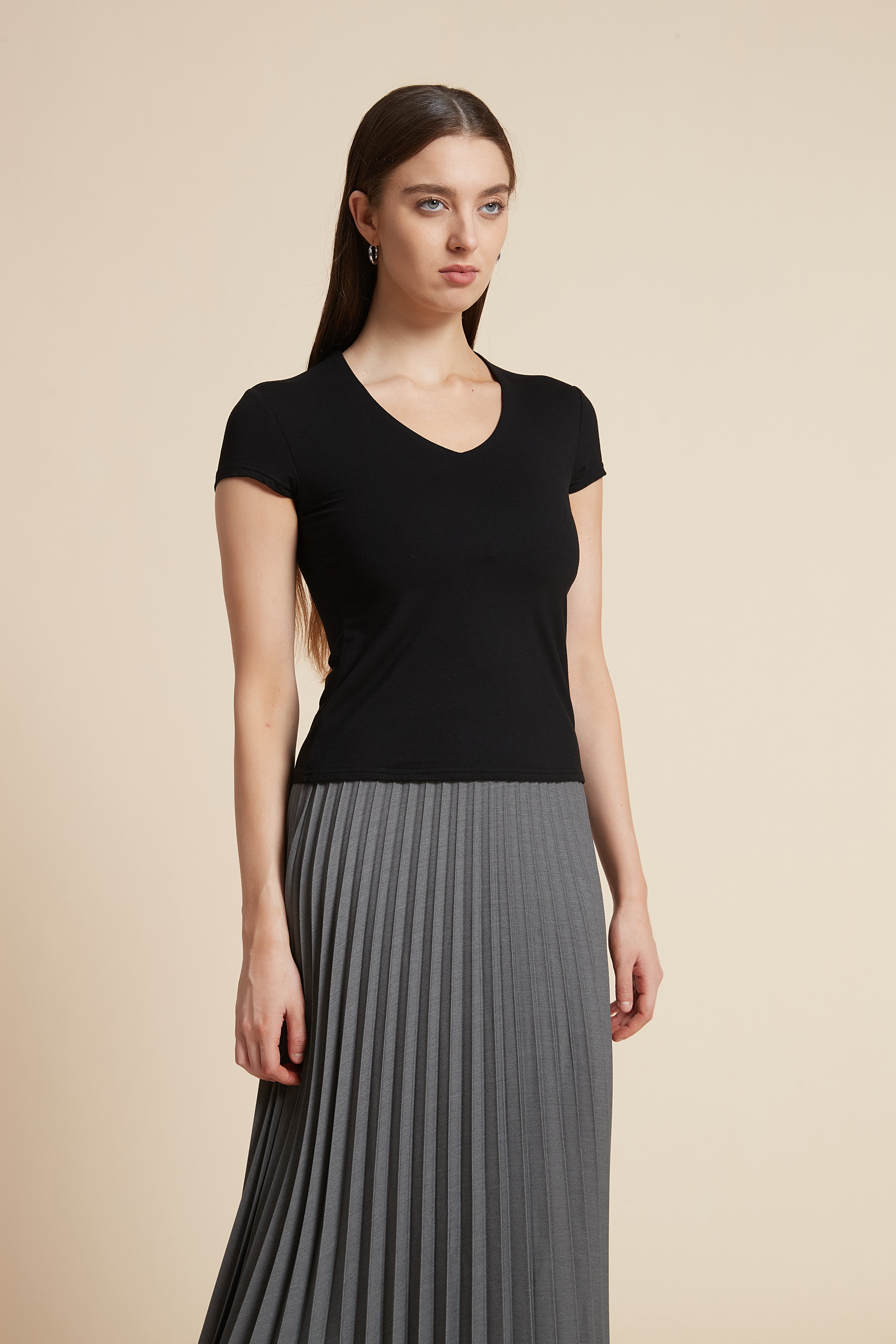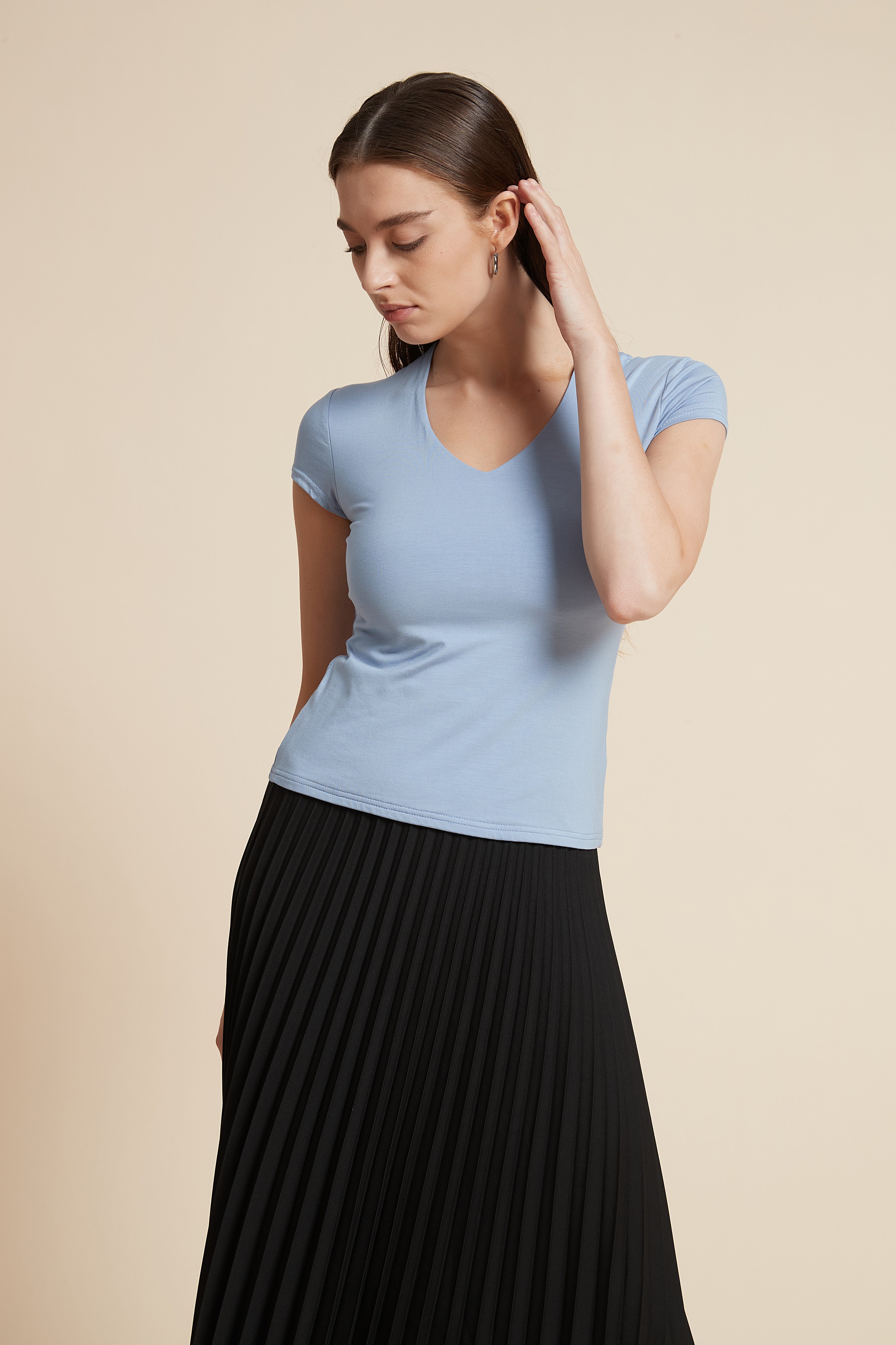 بلوزة بكم قصير سادة بلوزة بطول الخصر