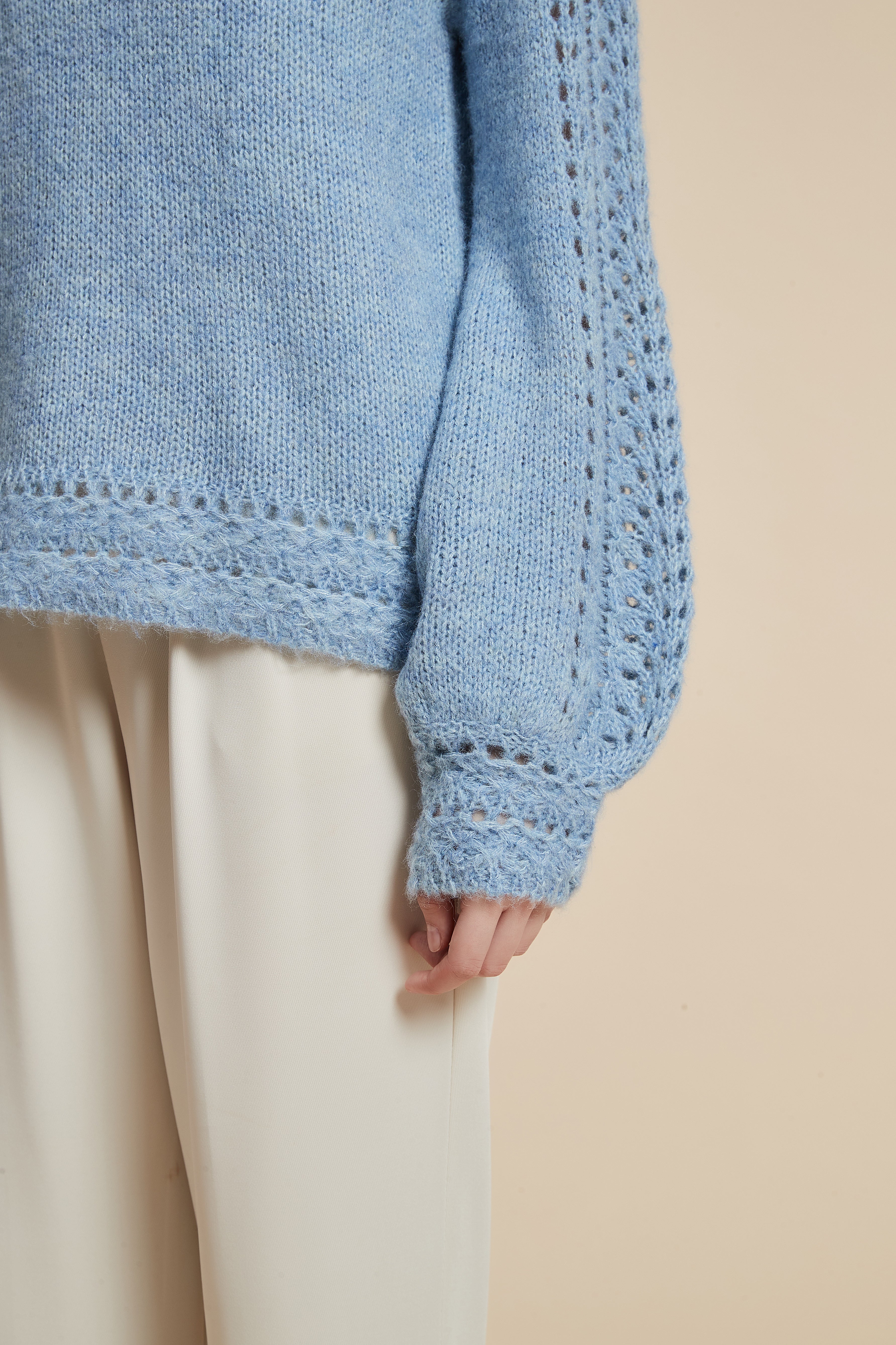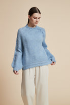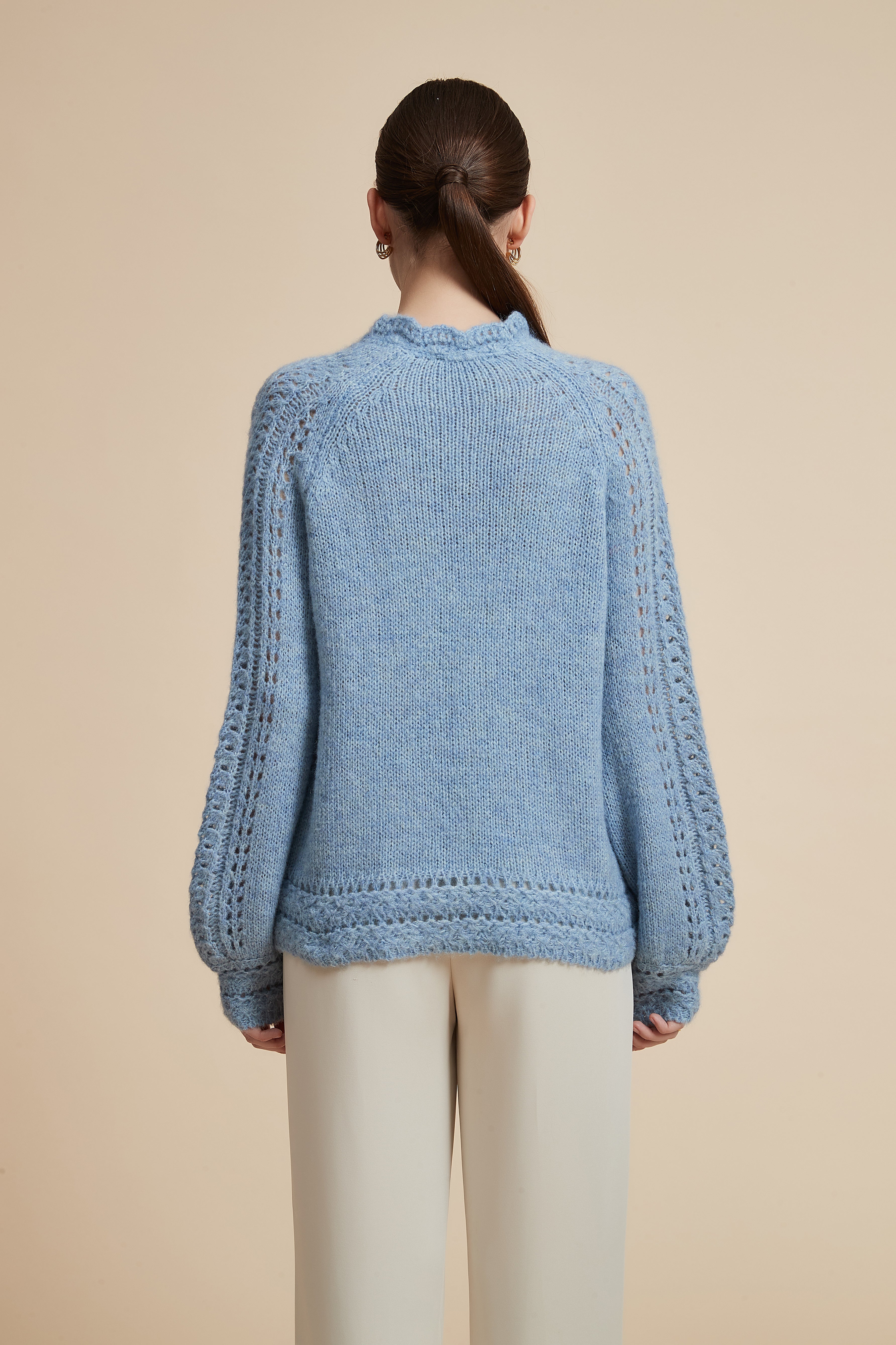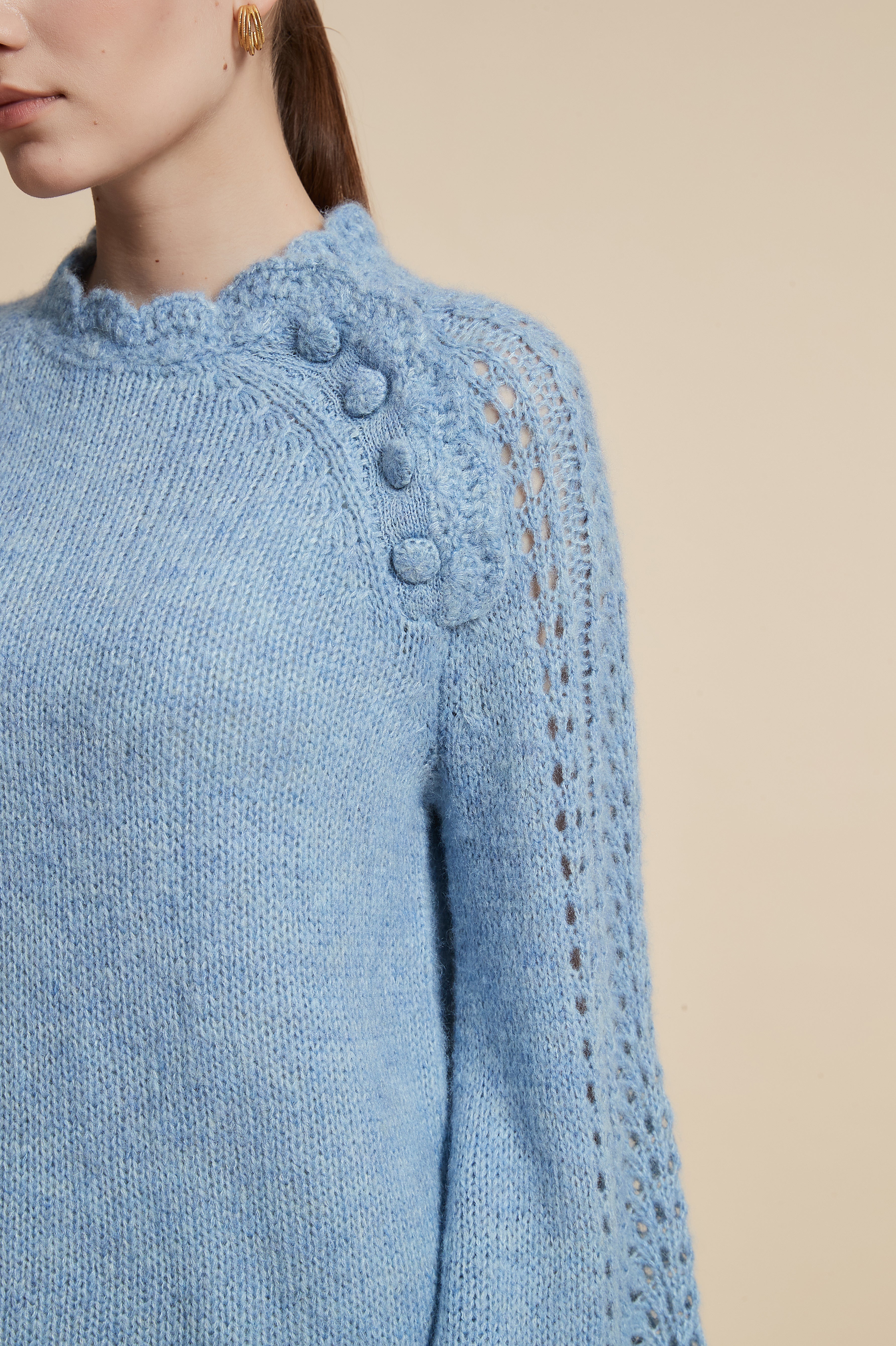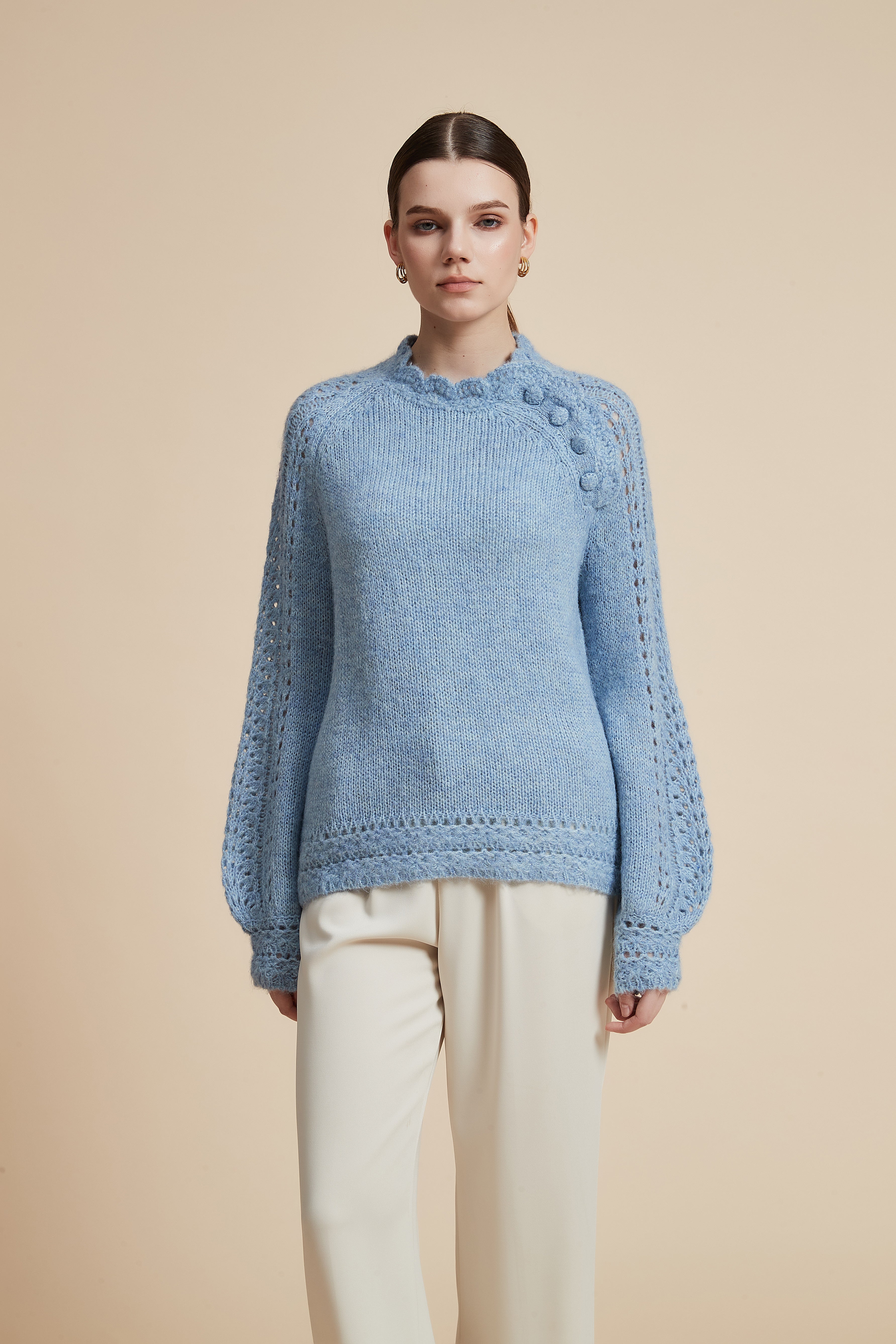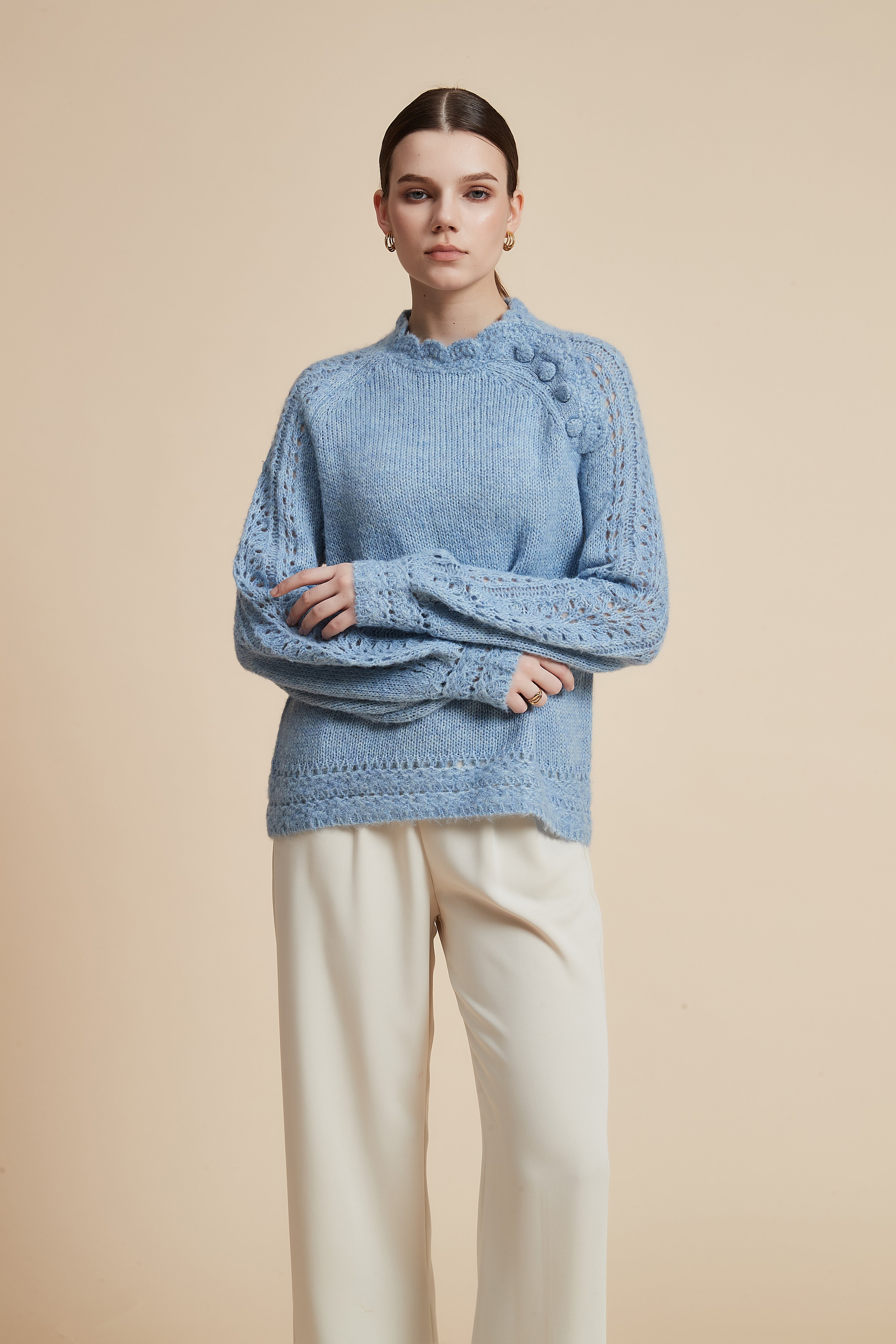 كنزة بكم طويل مخرمة بأزرار على الكتف